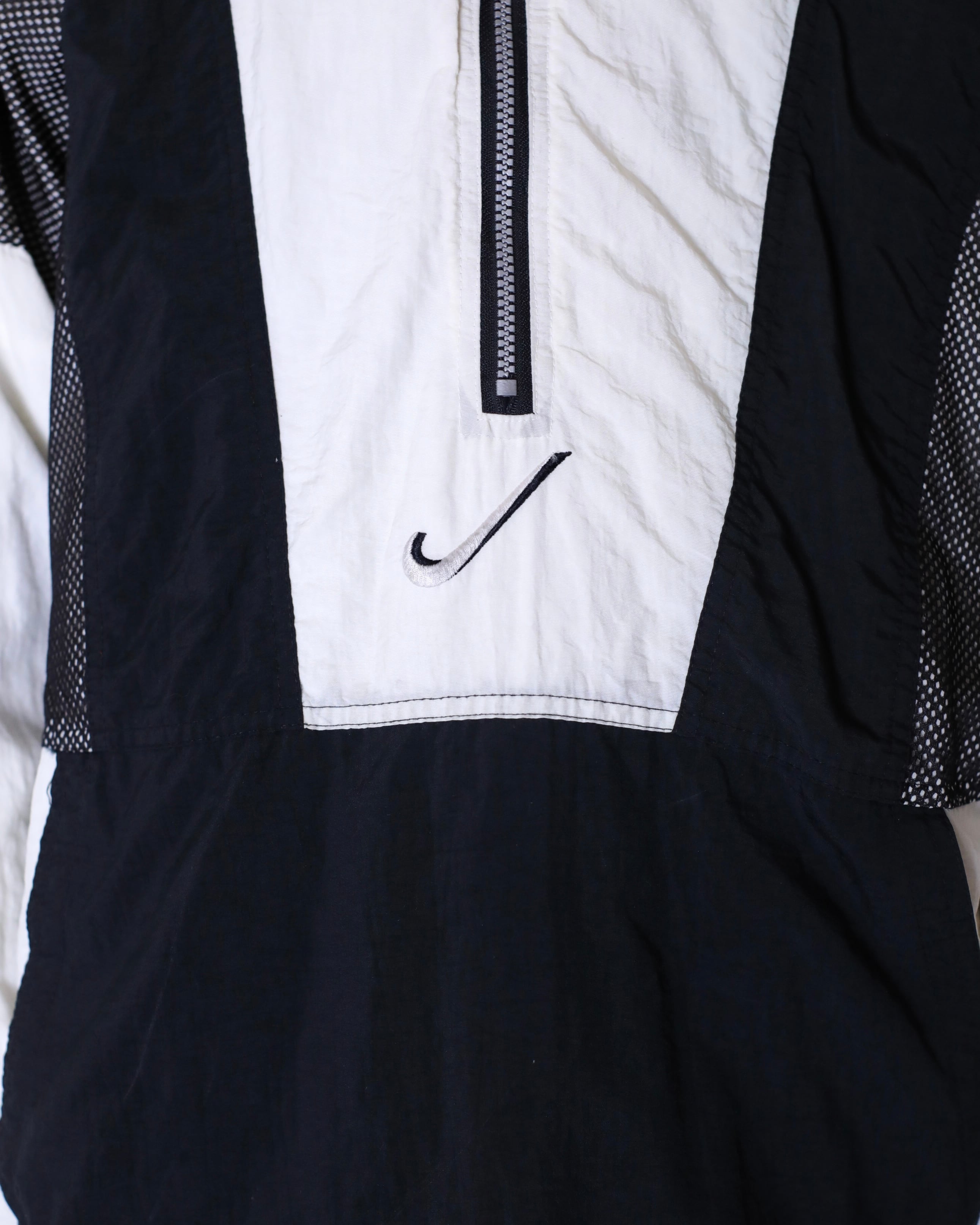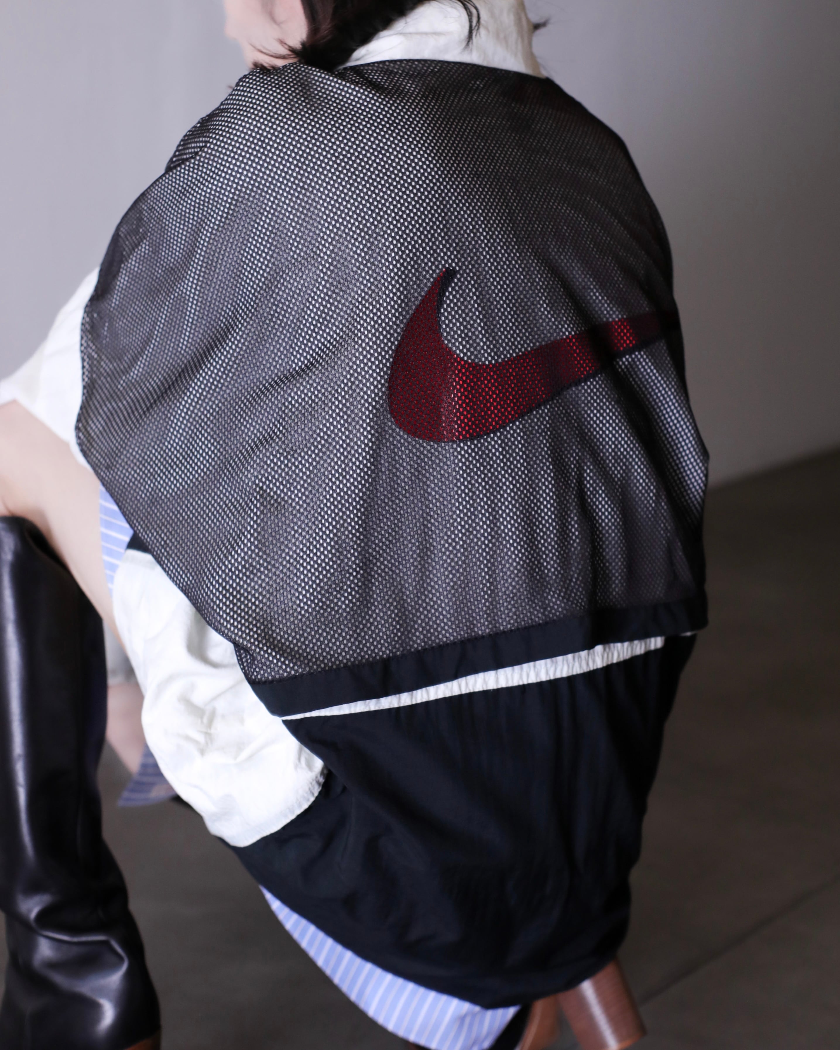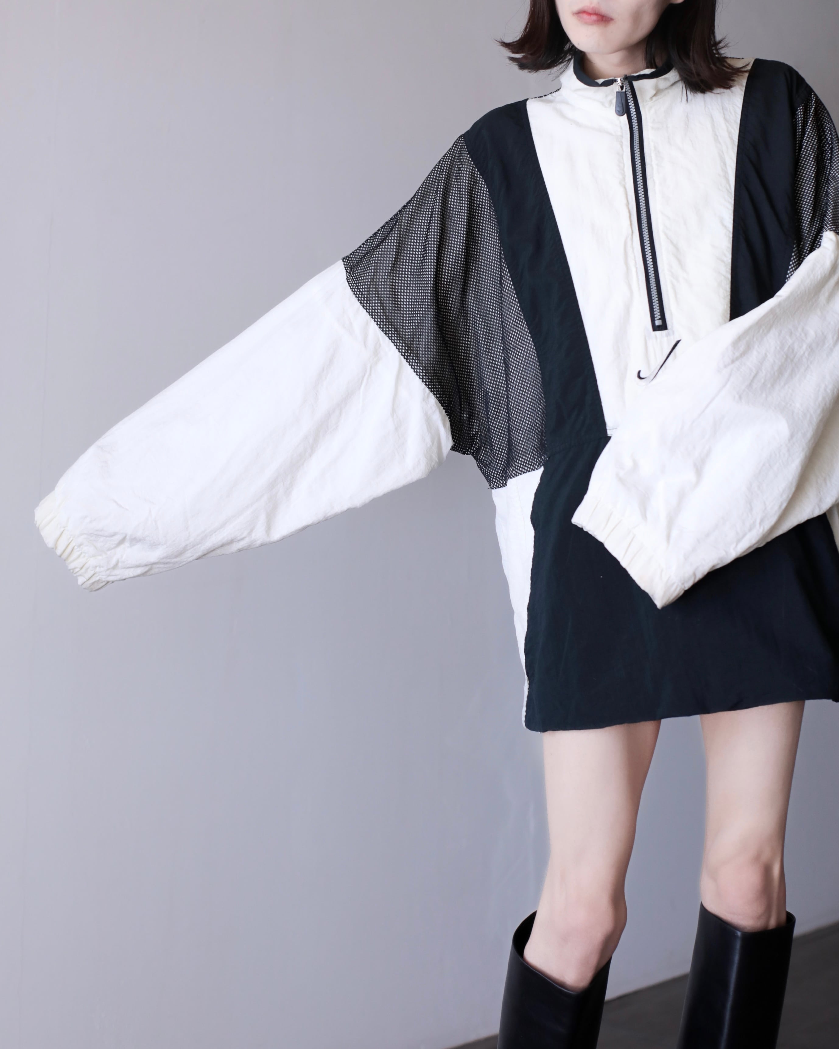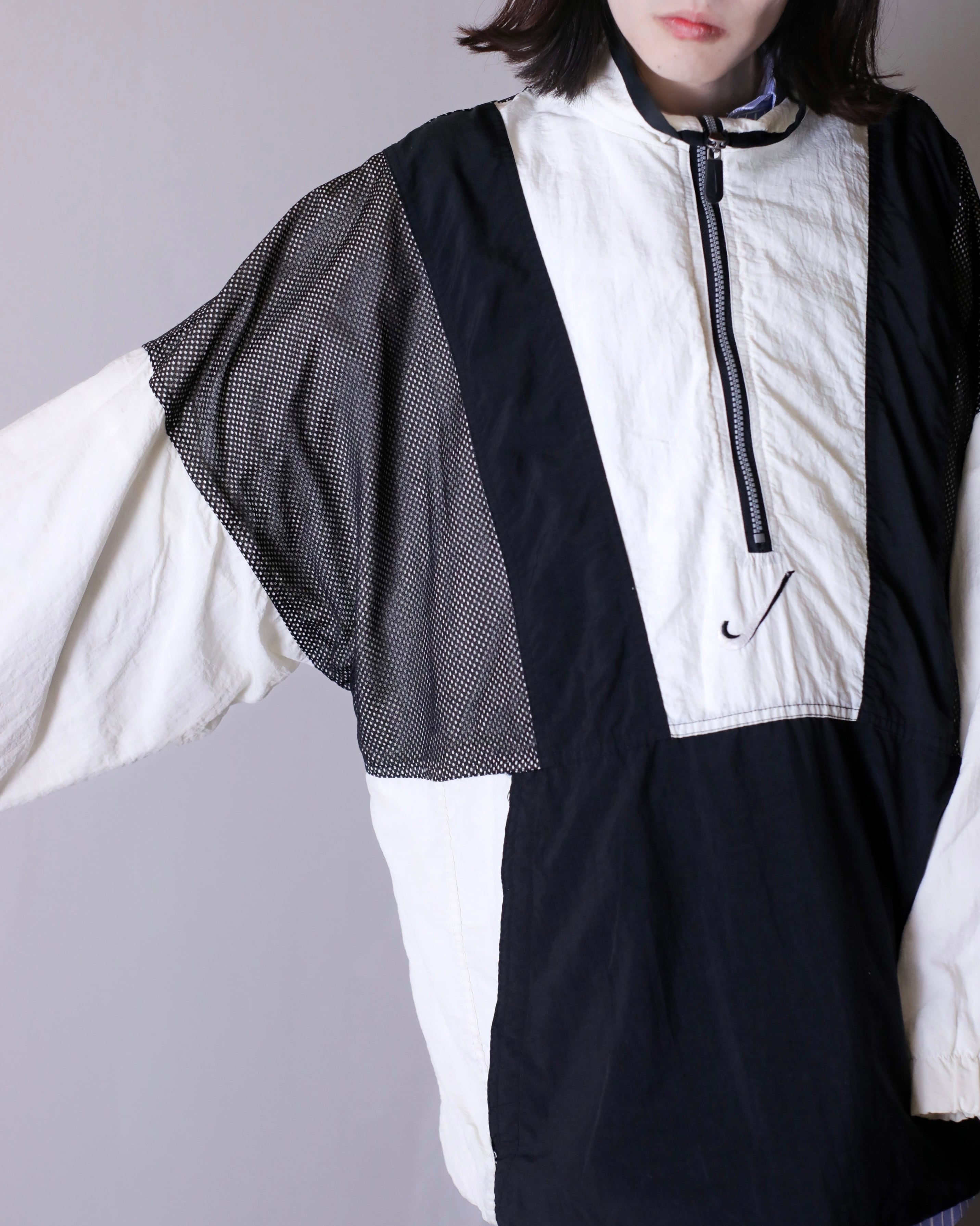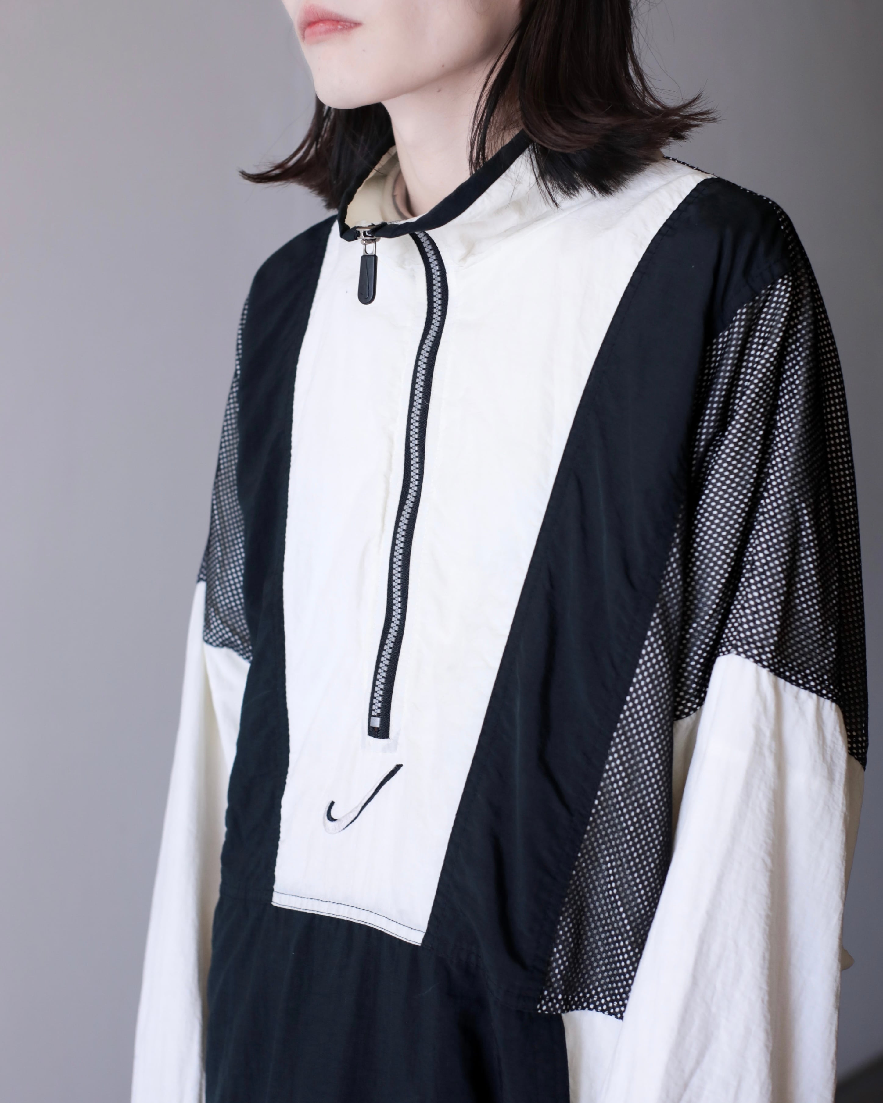 1990s NIKE big swoosh mesh layered design nylon half zip pullover top