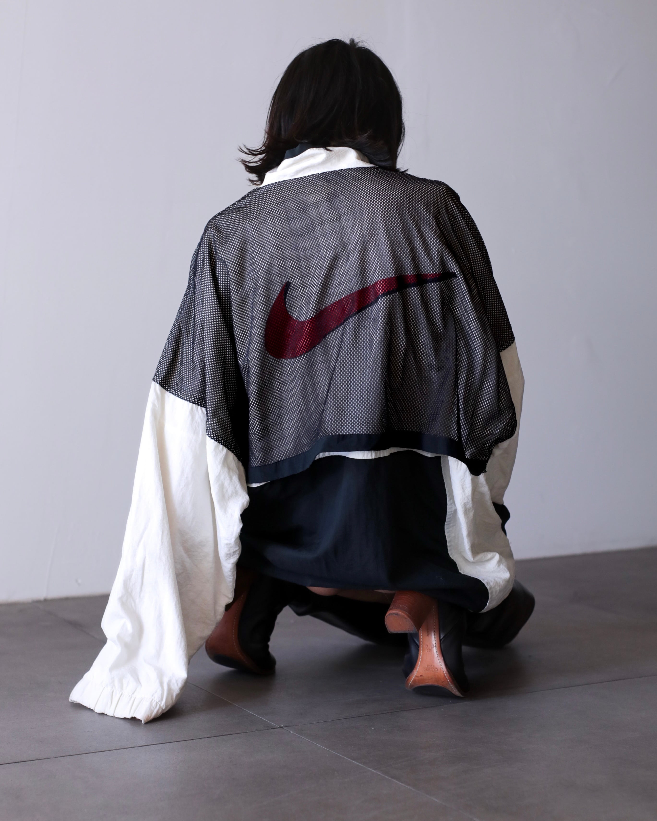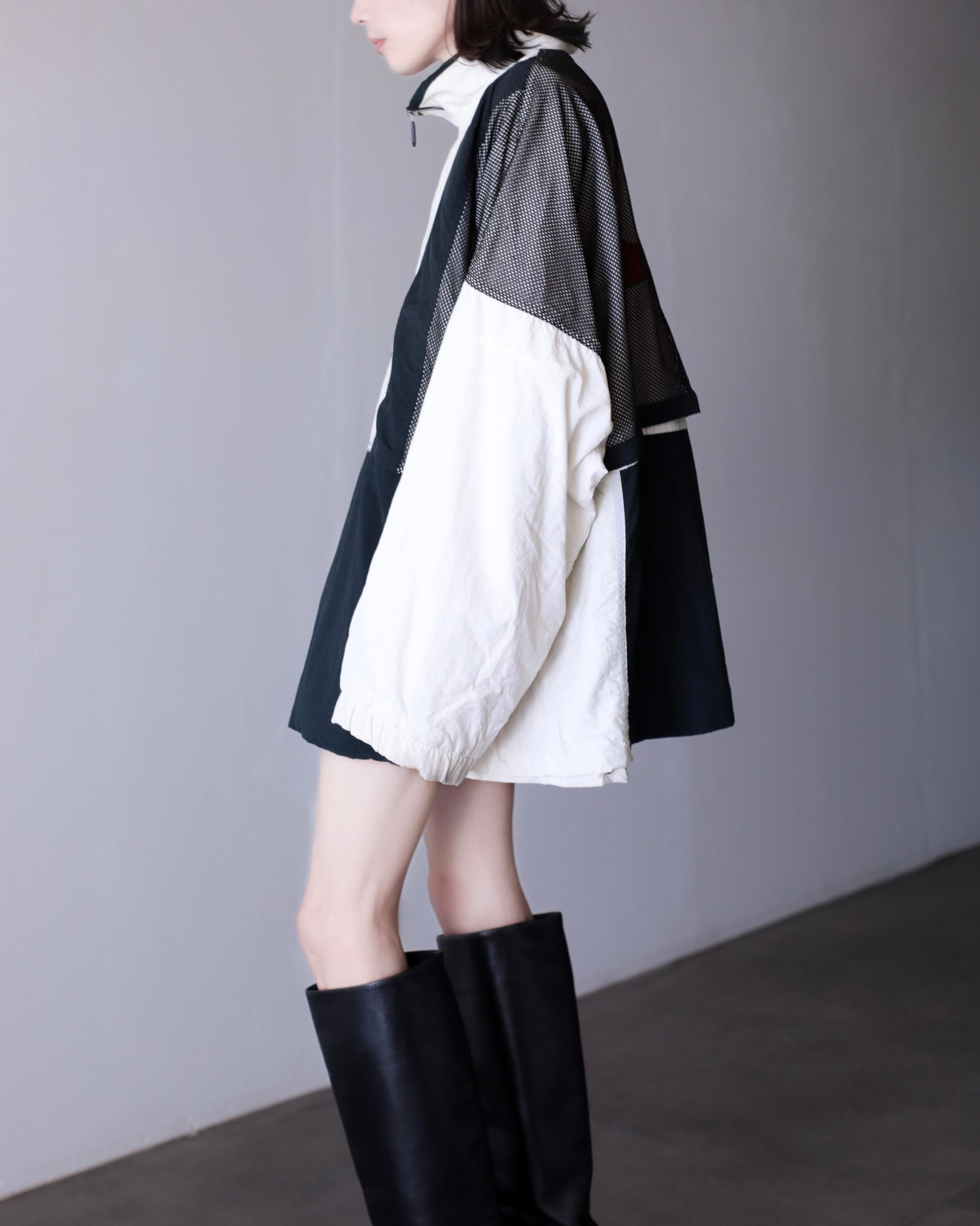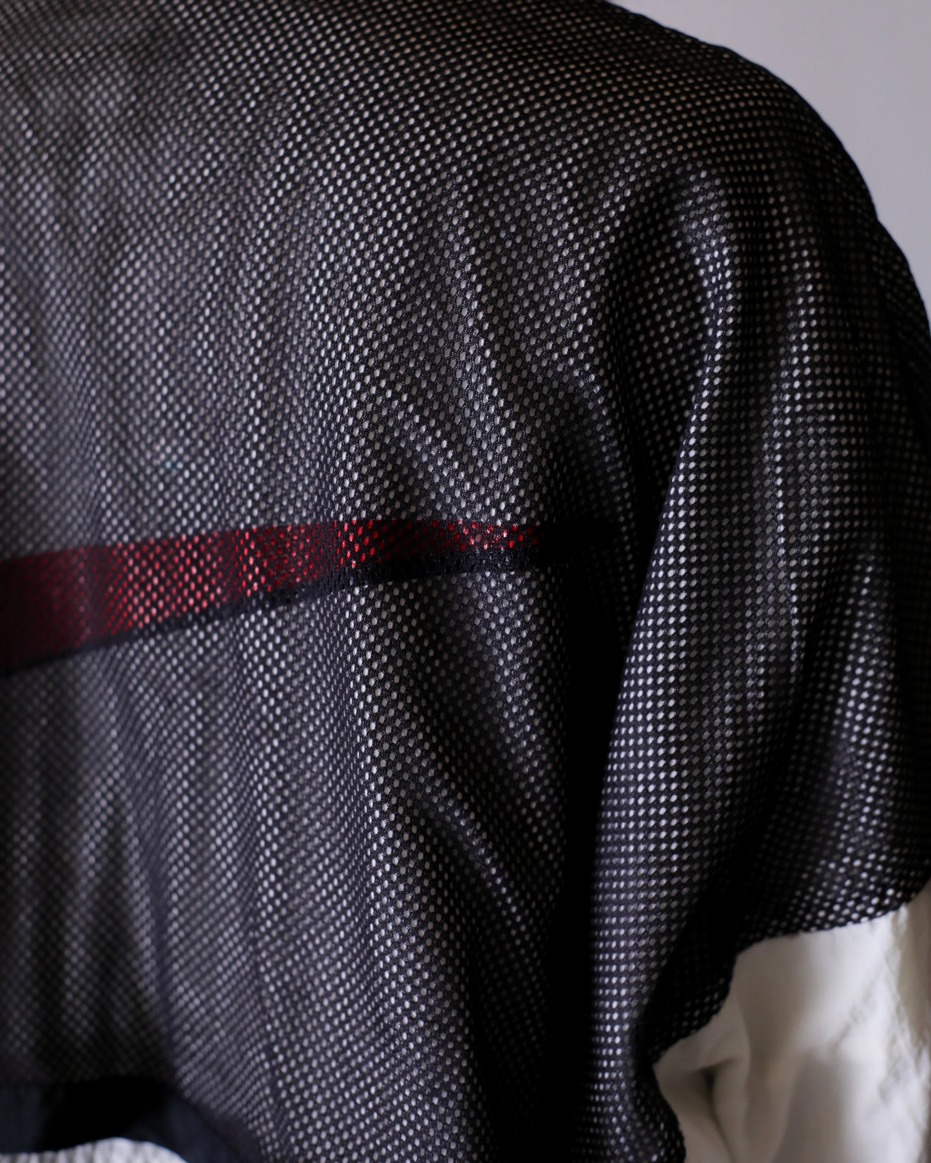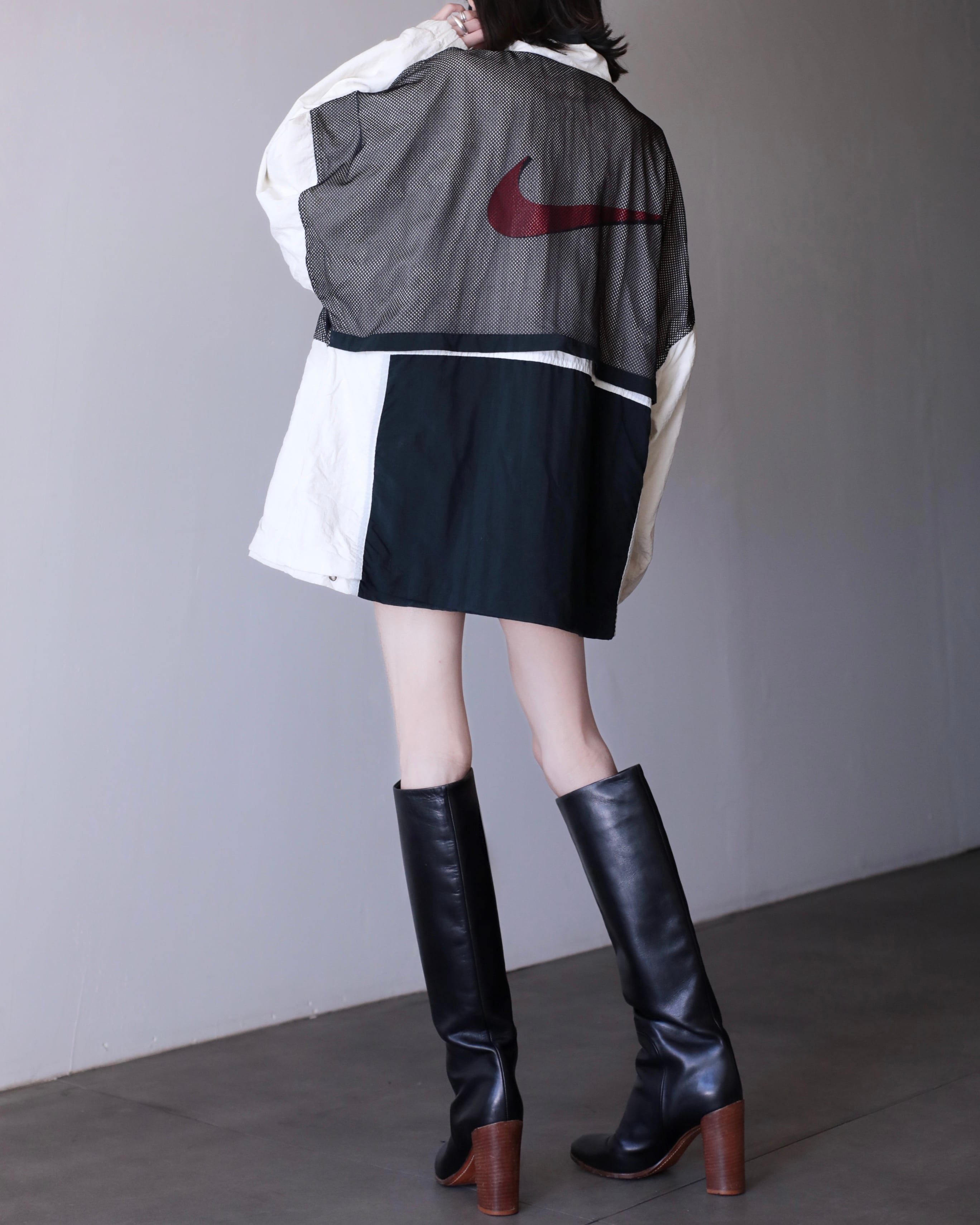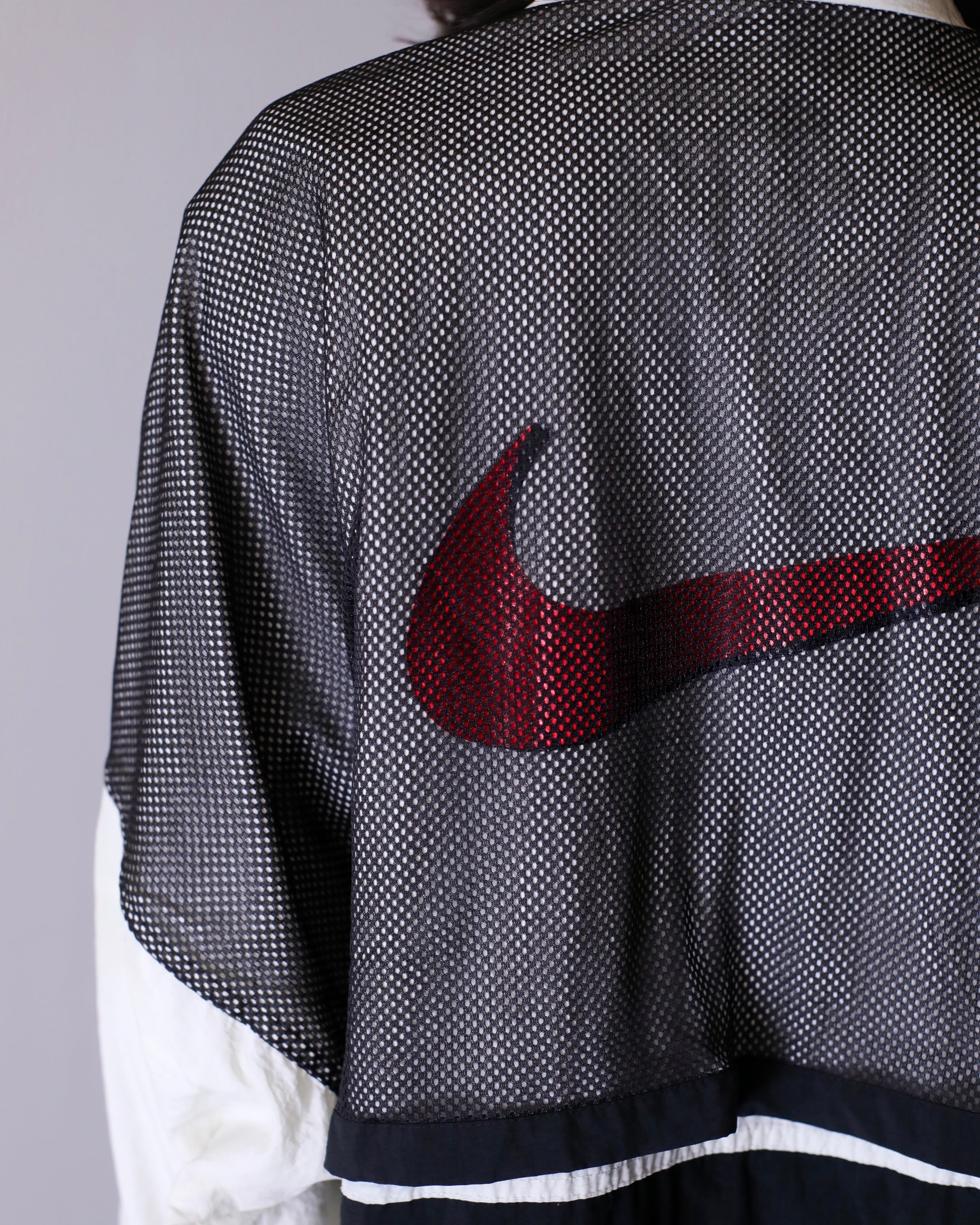 1990s NIKE big swoosh mesh layered design nylon half zip pullover top