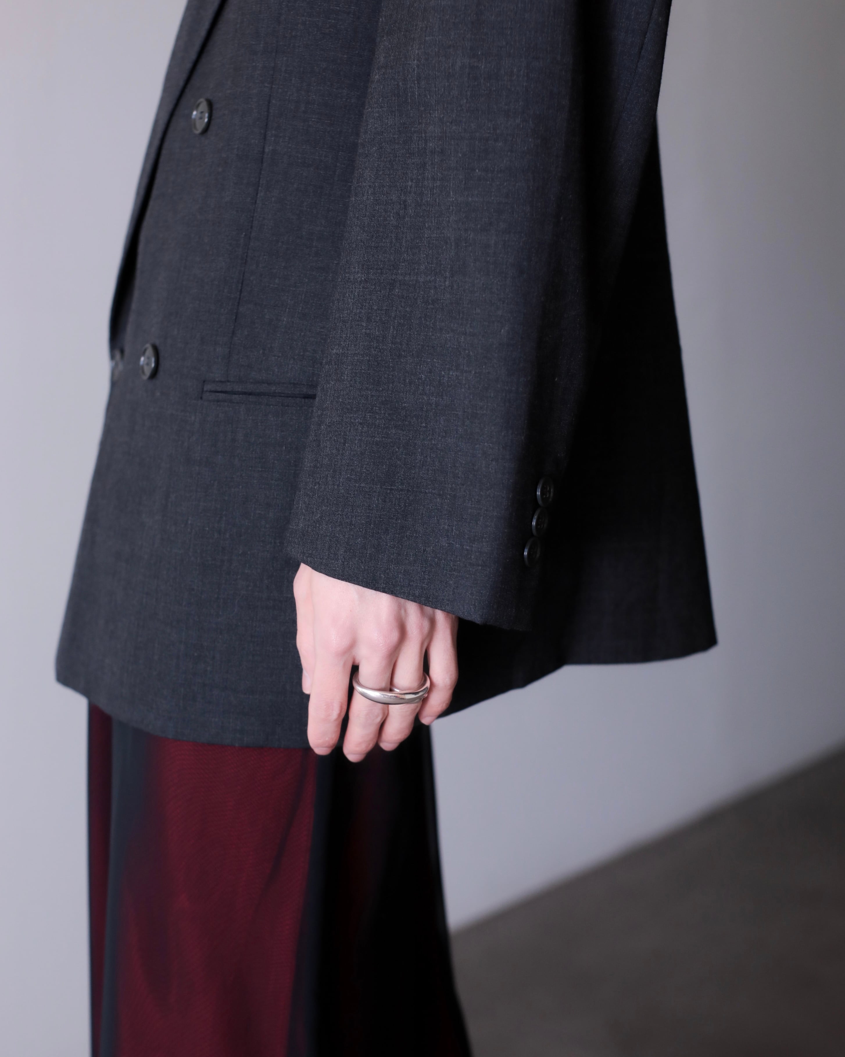 ダブルブレストのボックスオーバーシルエットでデイリーユースにも使いやすい佇まいに仕上がっております。