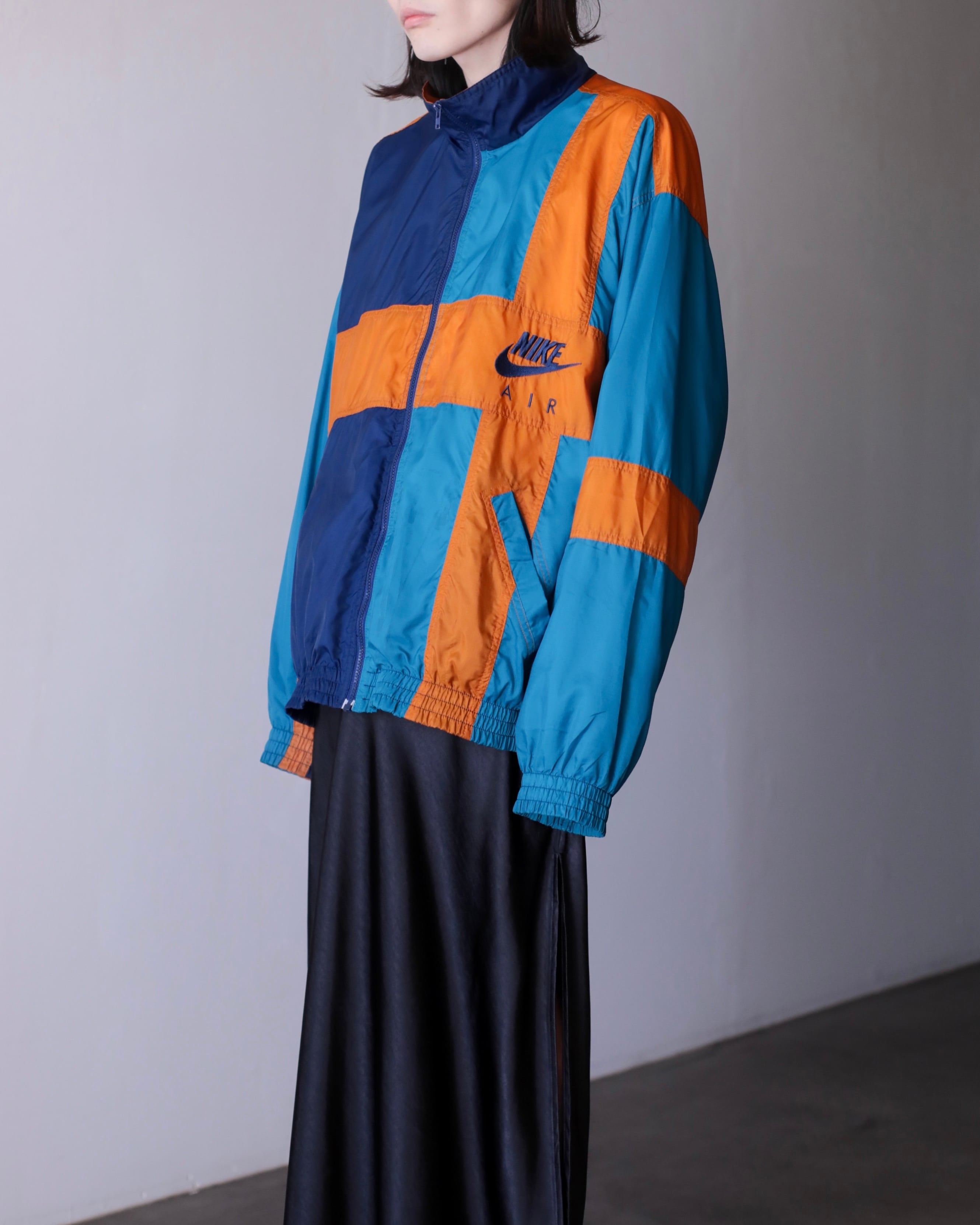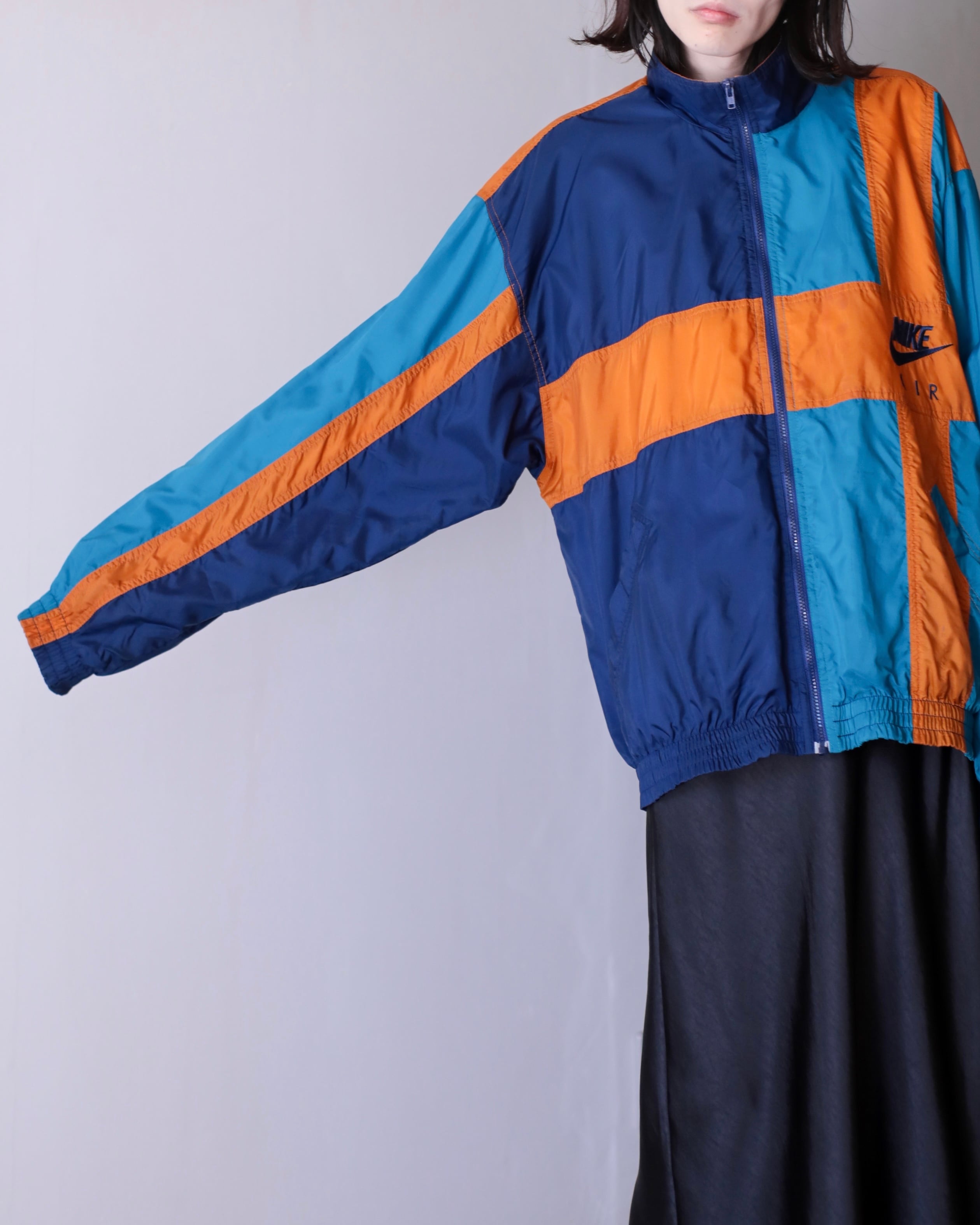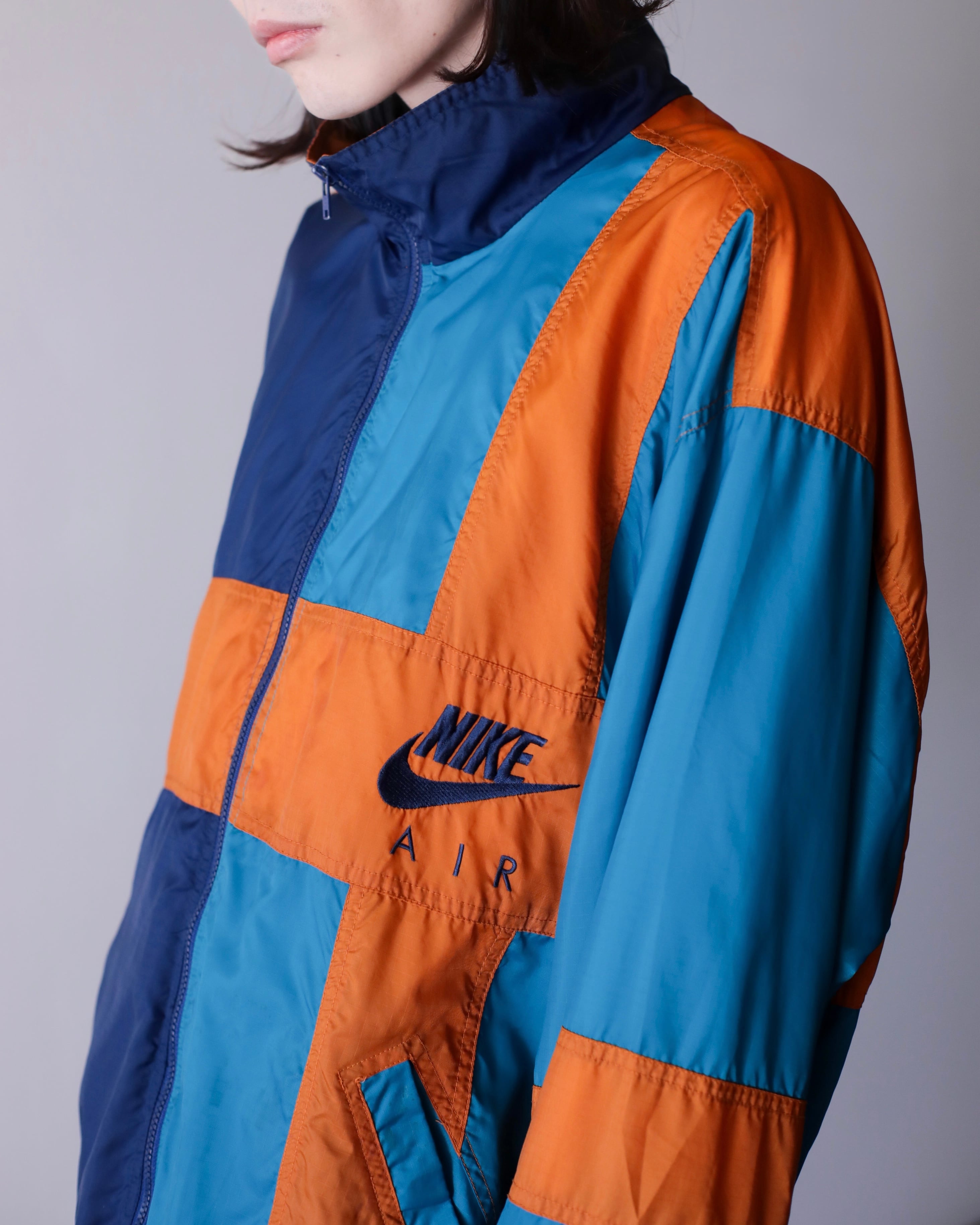 1990s NIKE mulch pattern "A I R" embroidery design hi-neck nylon jacket oversized