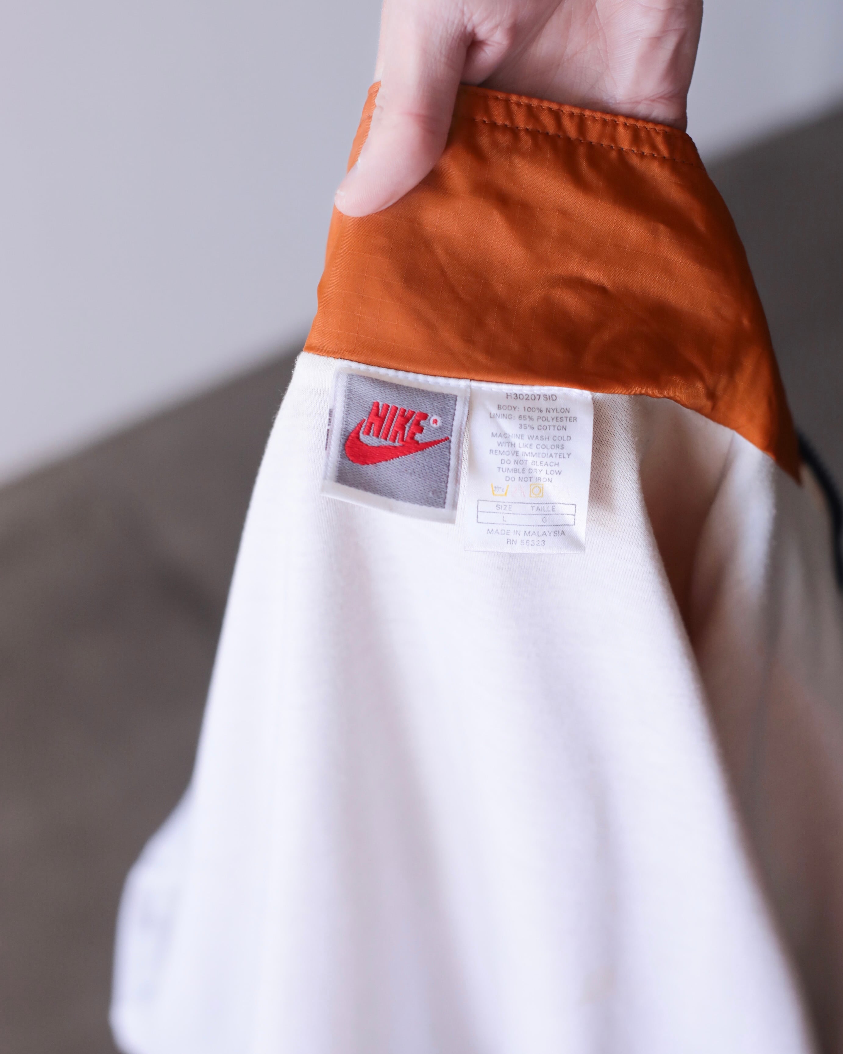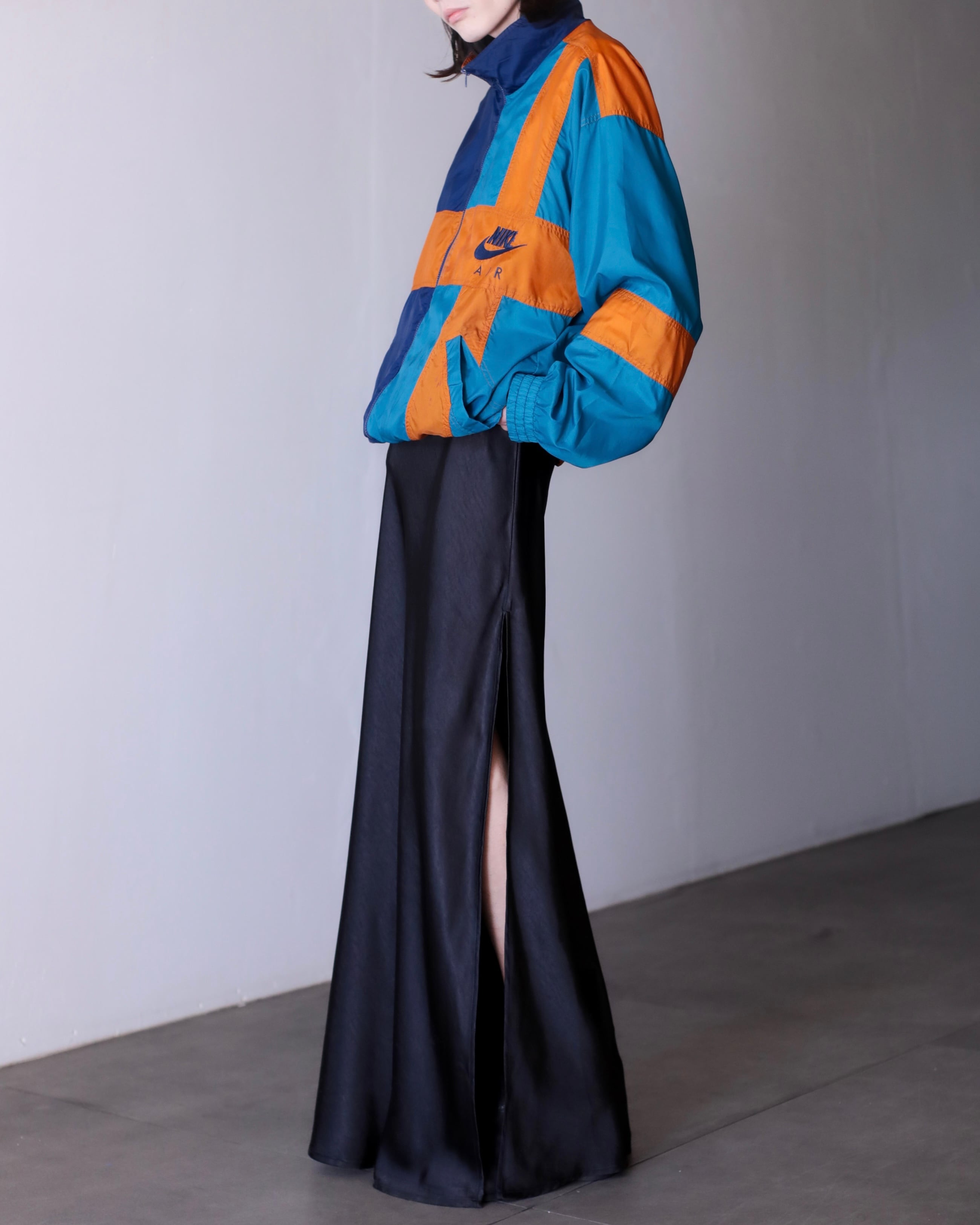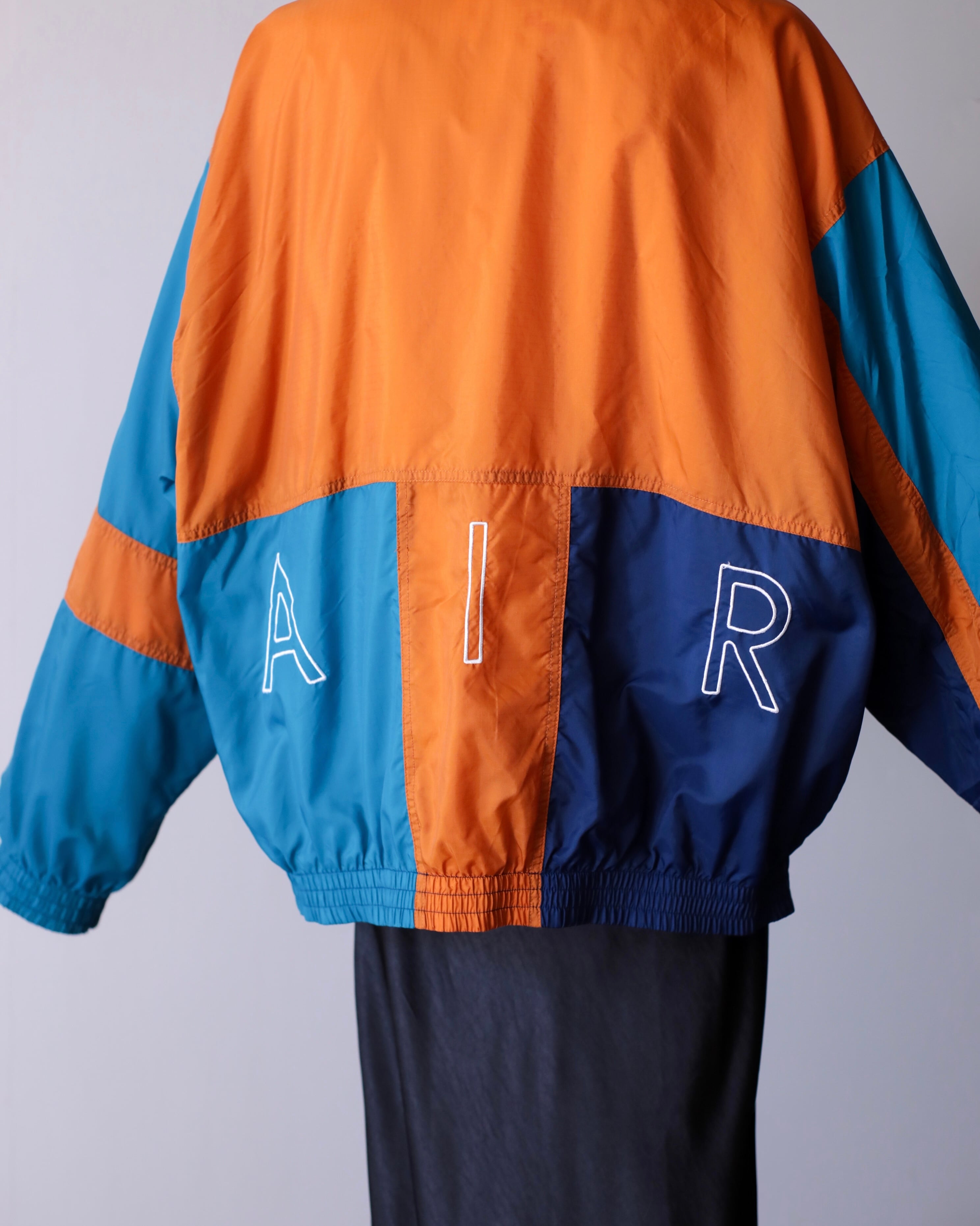 1990s NIKE mulch pattern "A I R" embroidery design hi-neck nylon jacket oversized