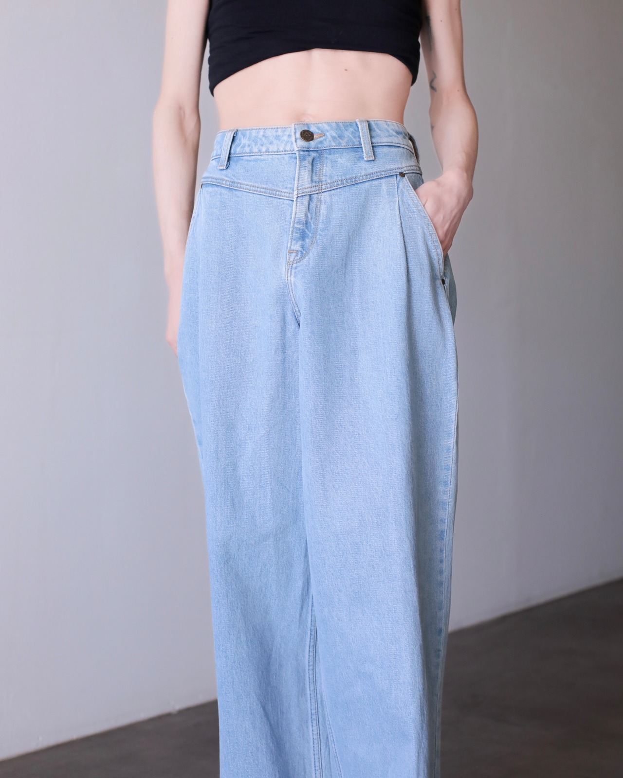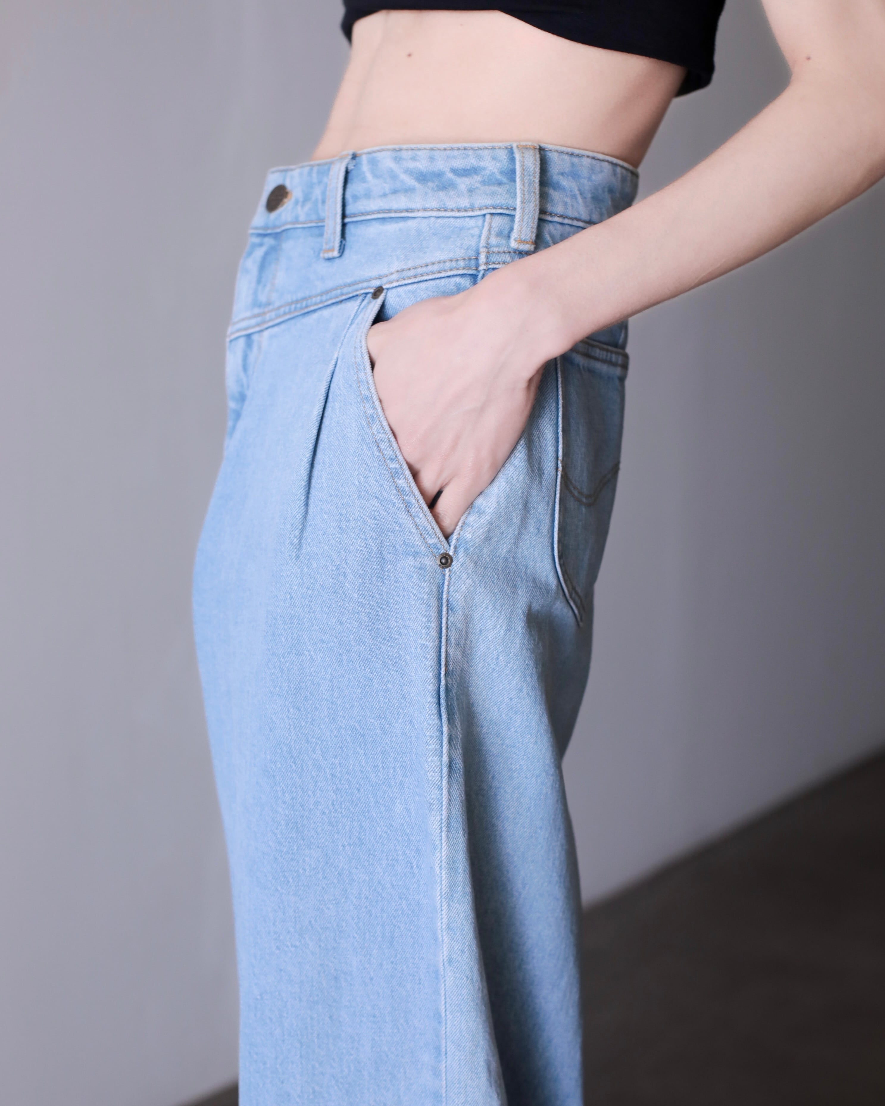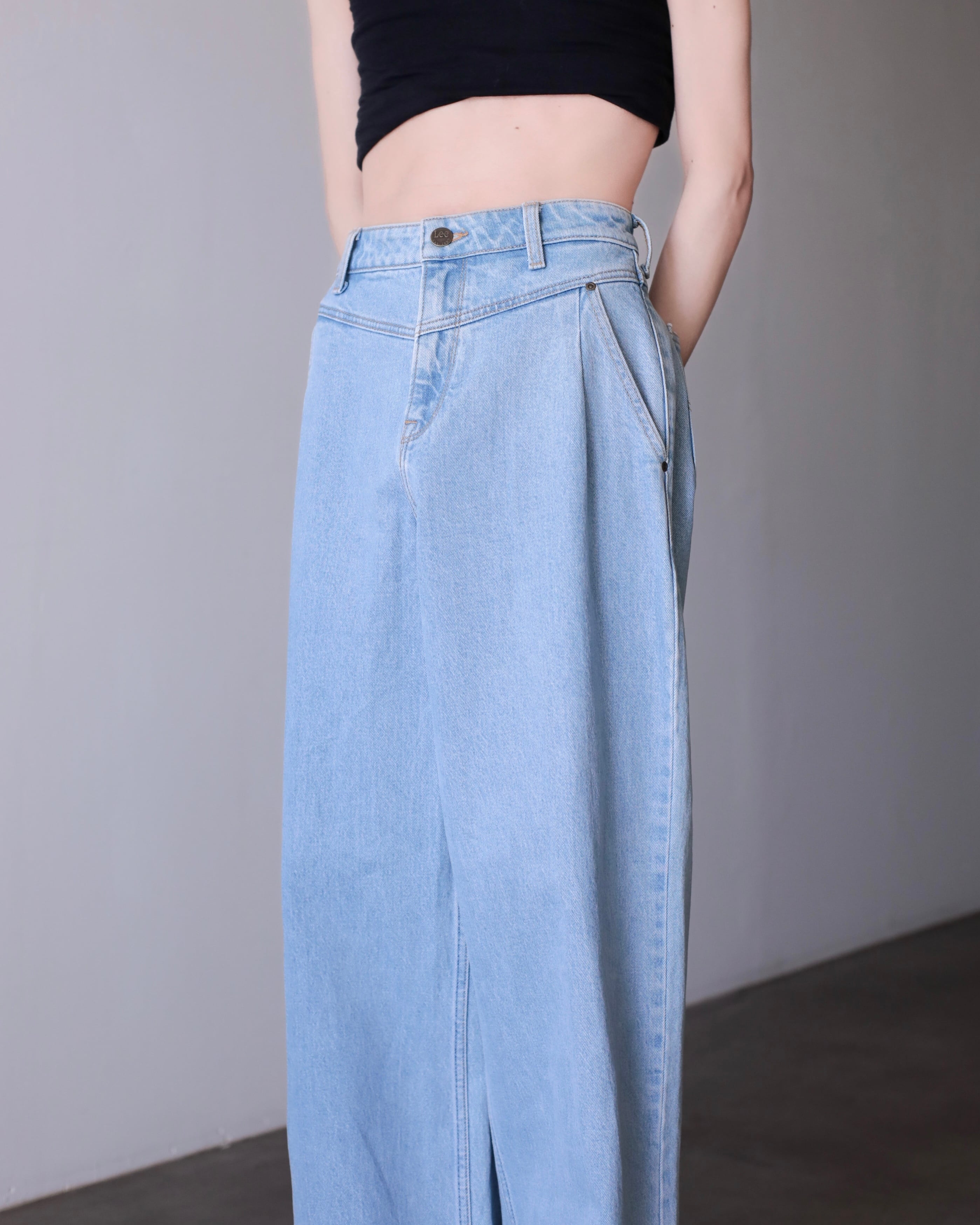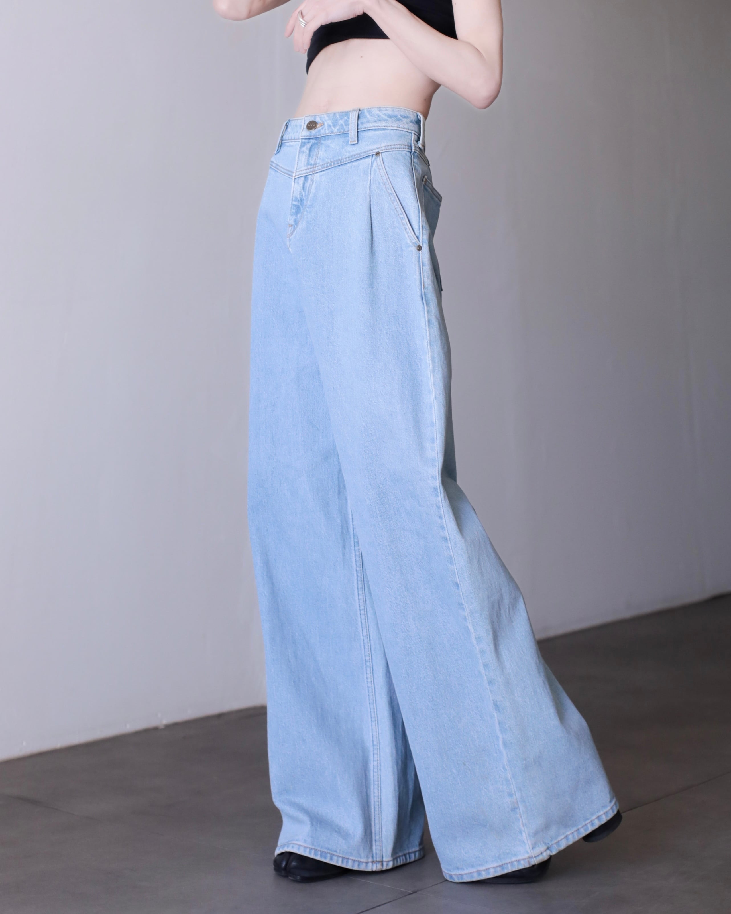 Lee "gokubuto" volume wide straight tuck design denim pants