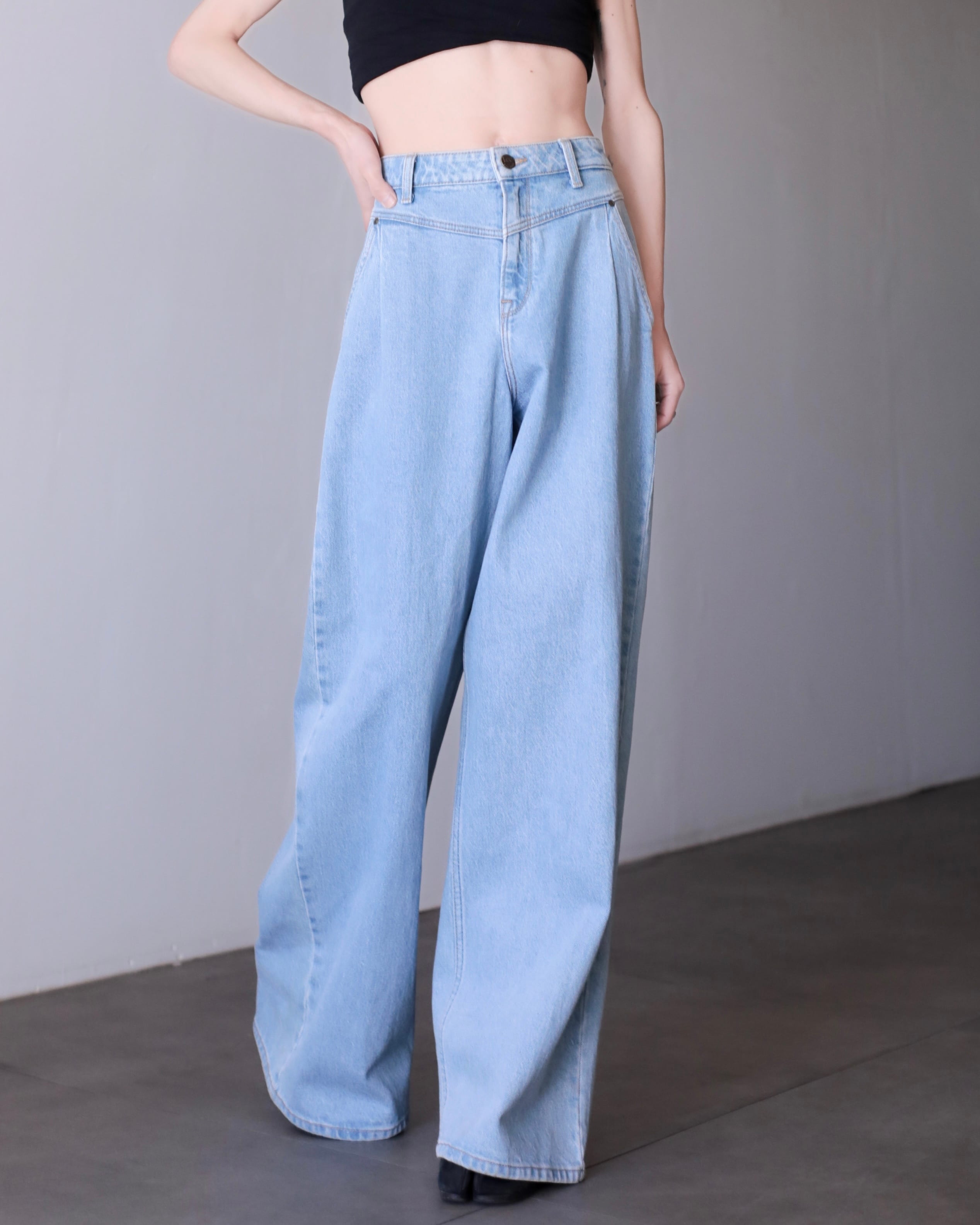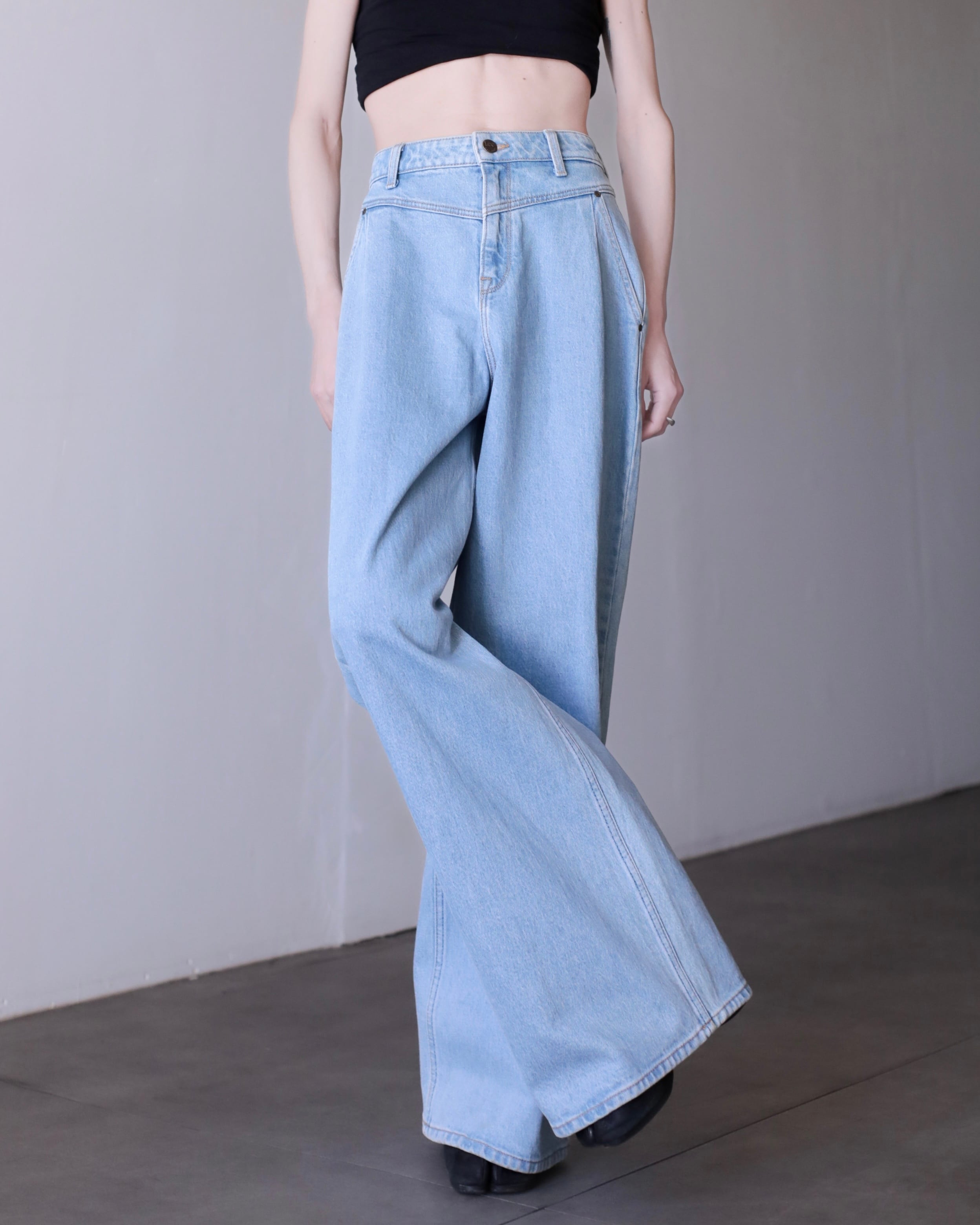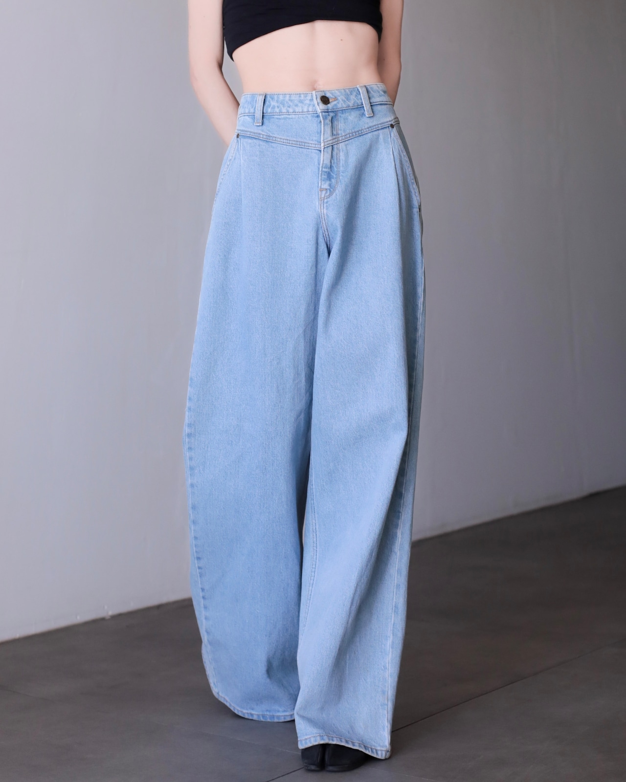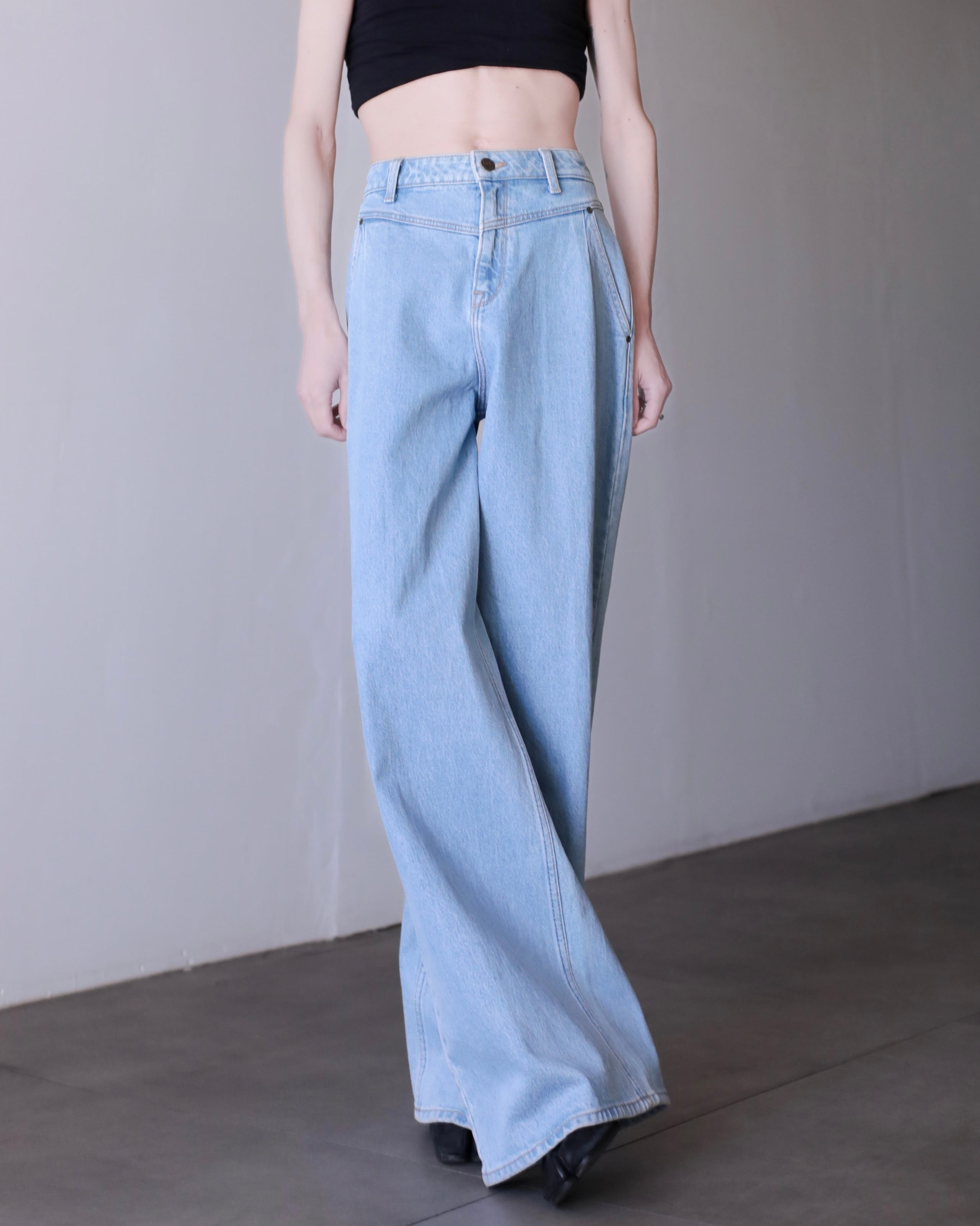 Lee "gokubuto" volume wide straight tuck design denim pants