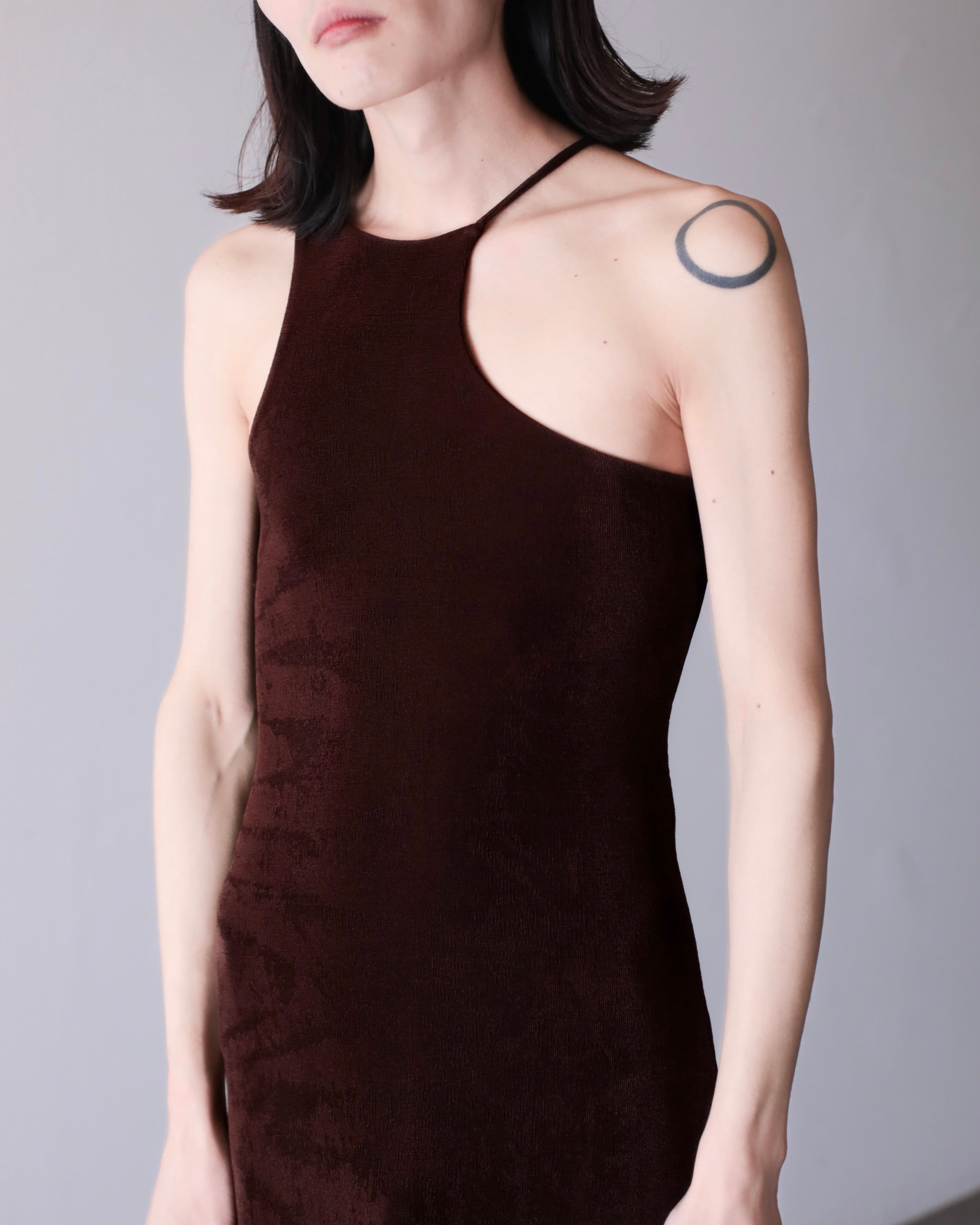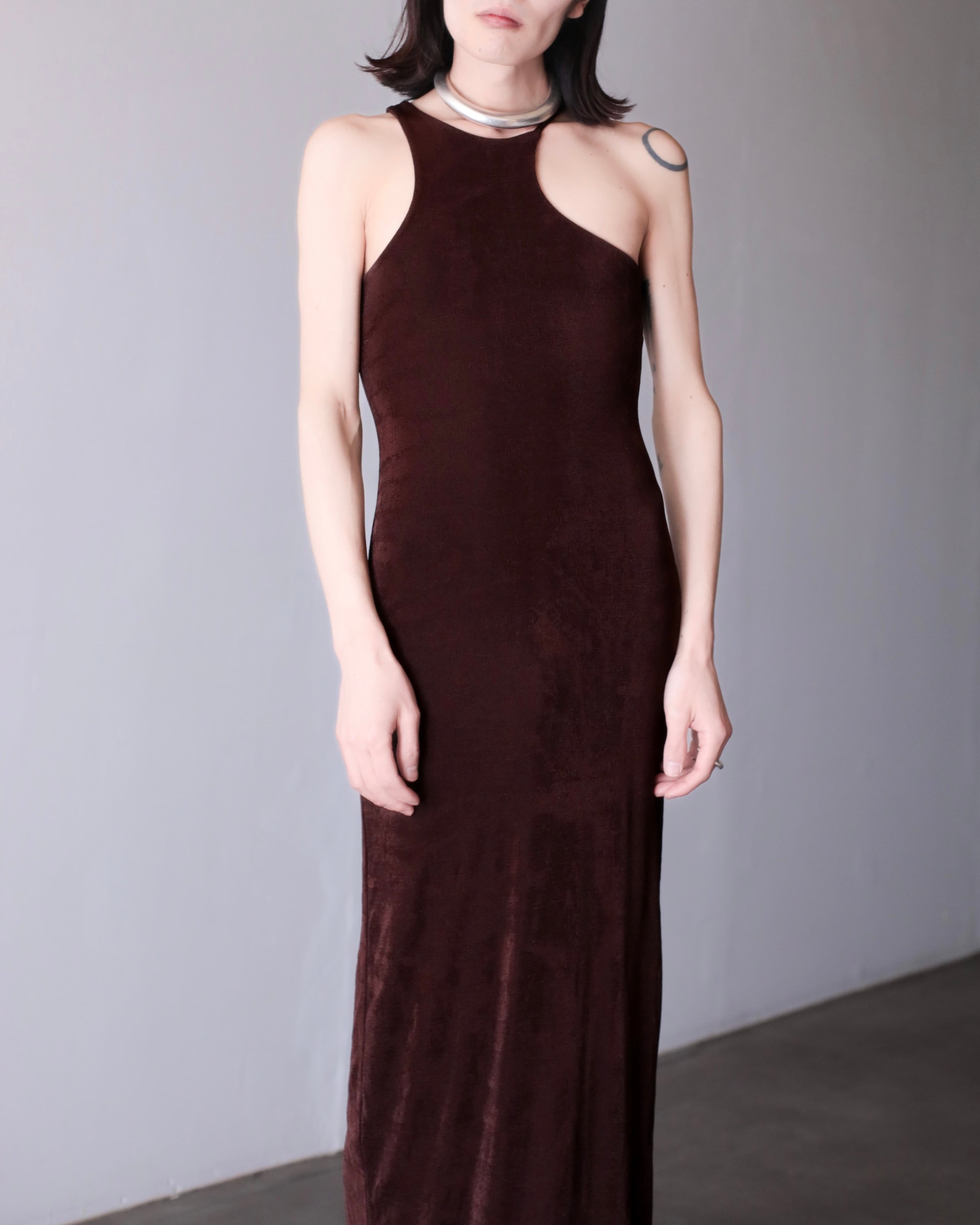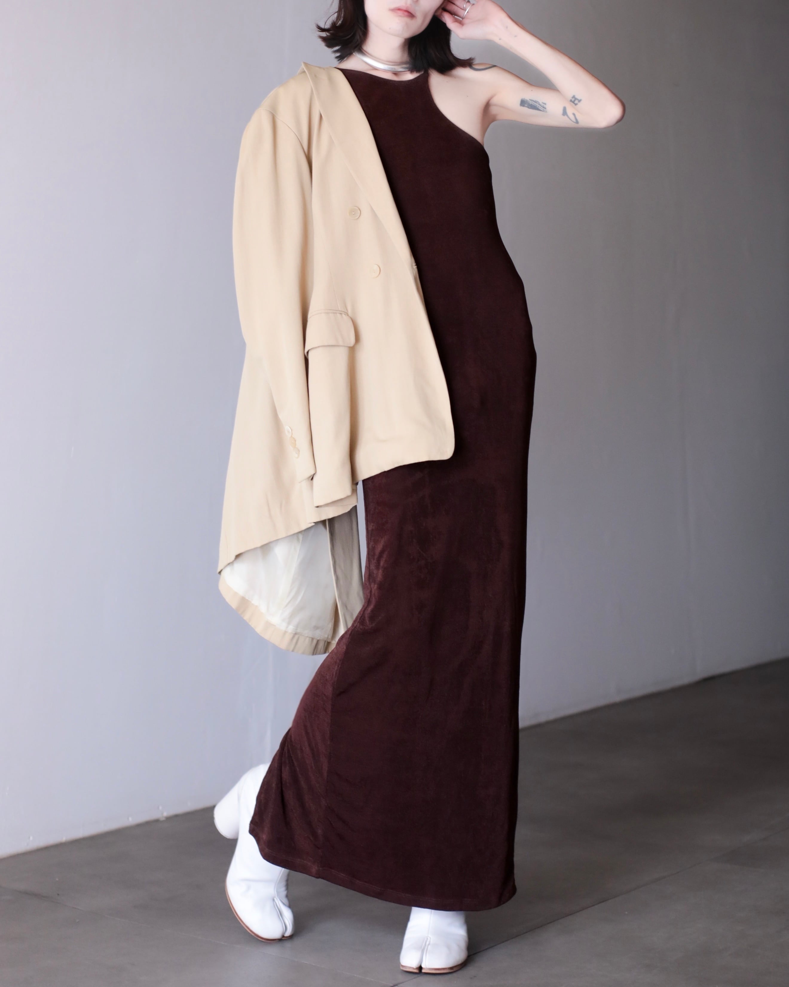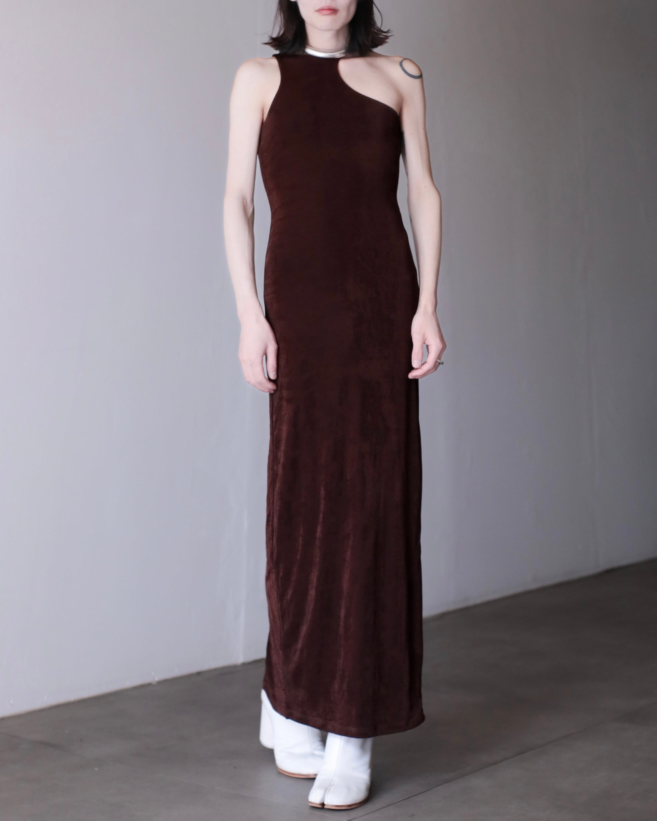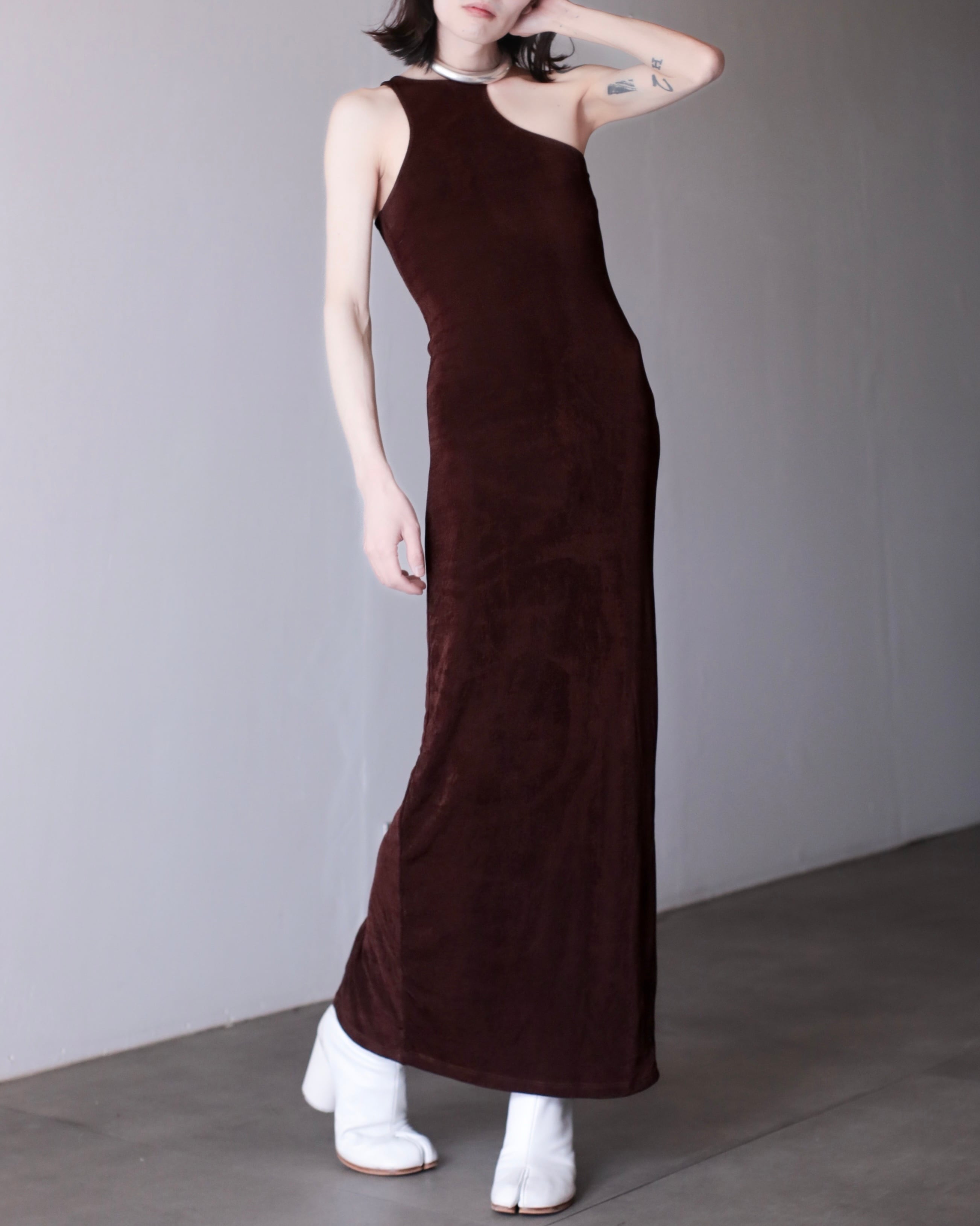 asymmetry design "dul dul" fabric maxi length dress one piece