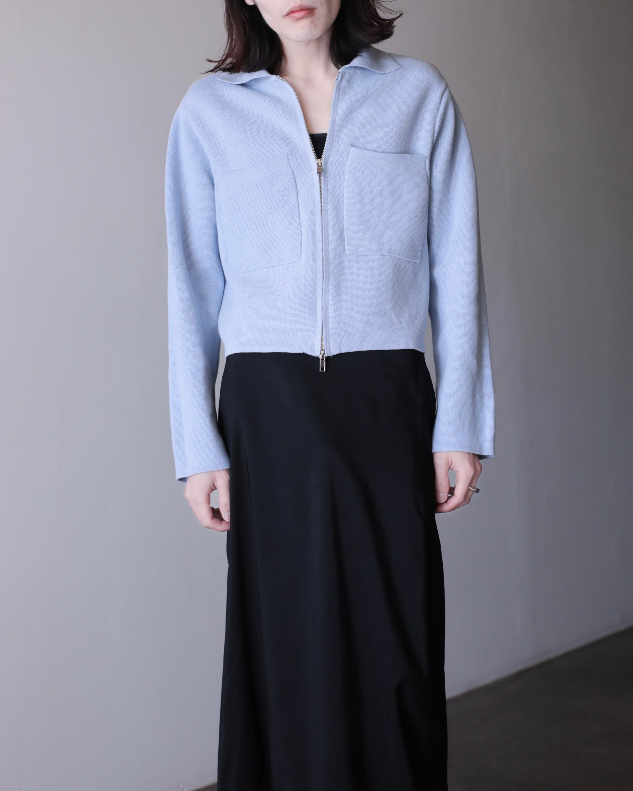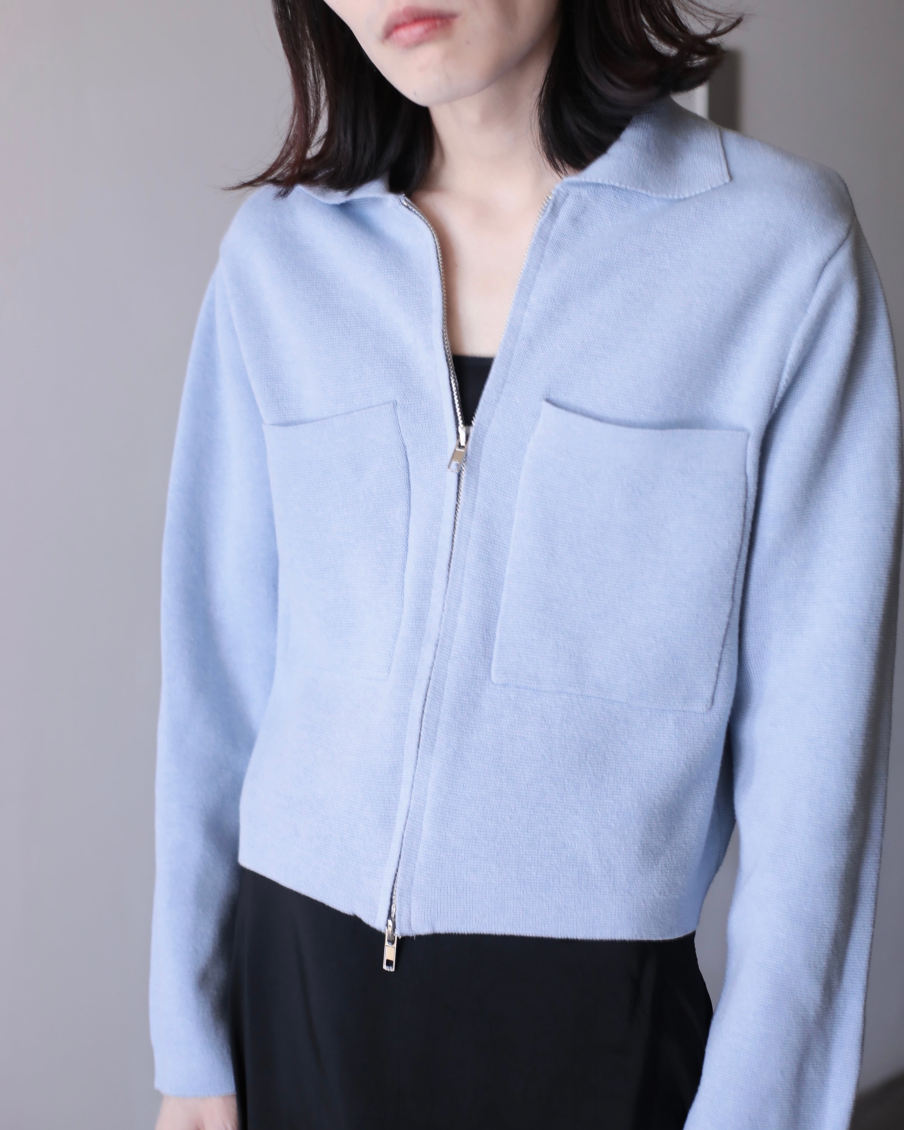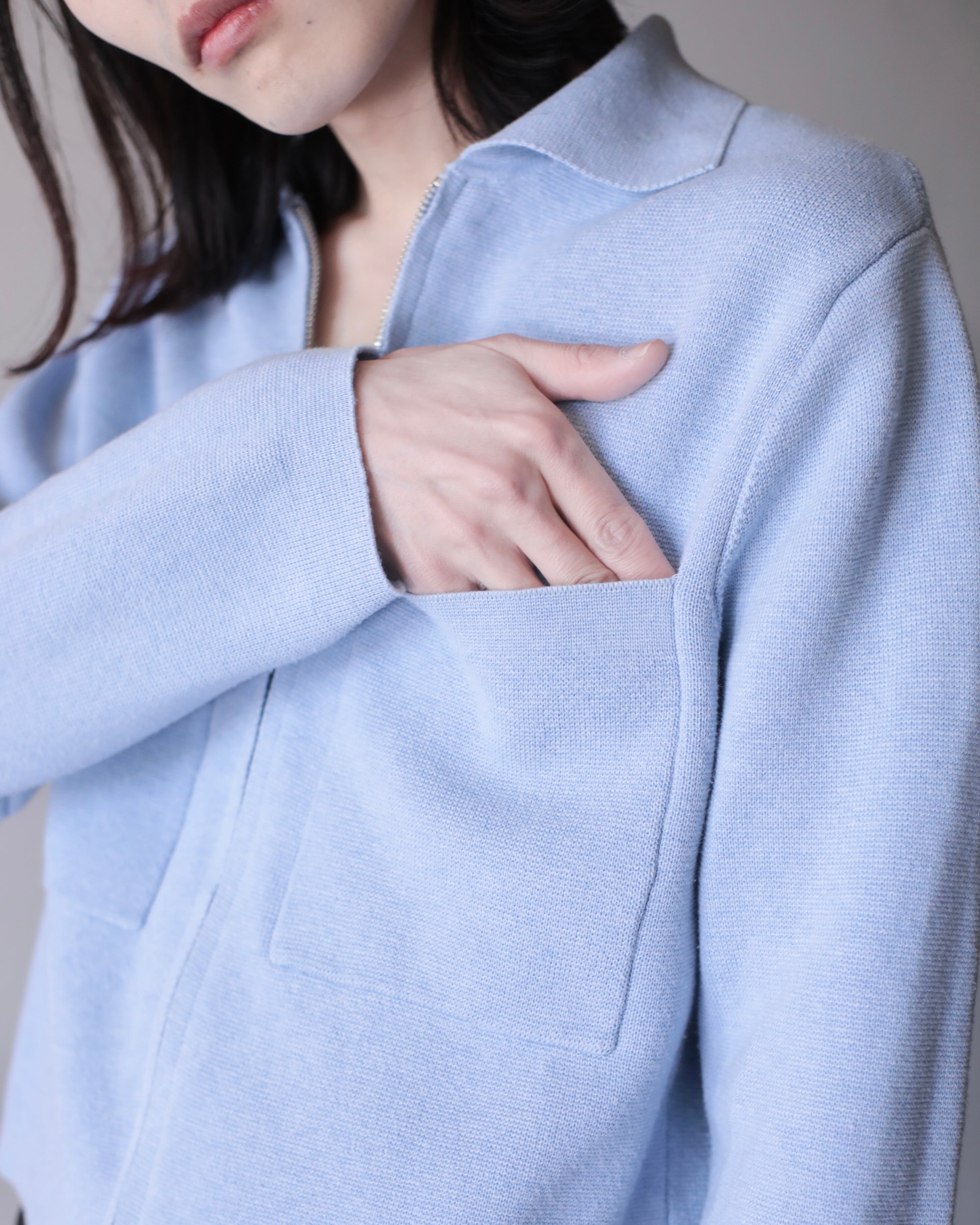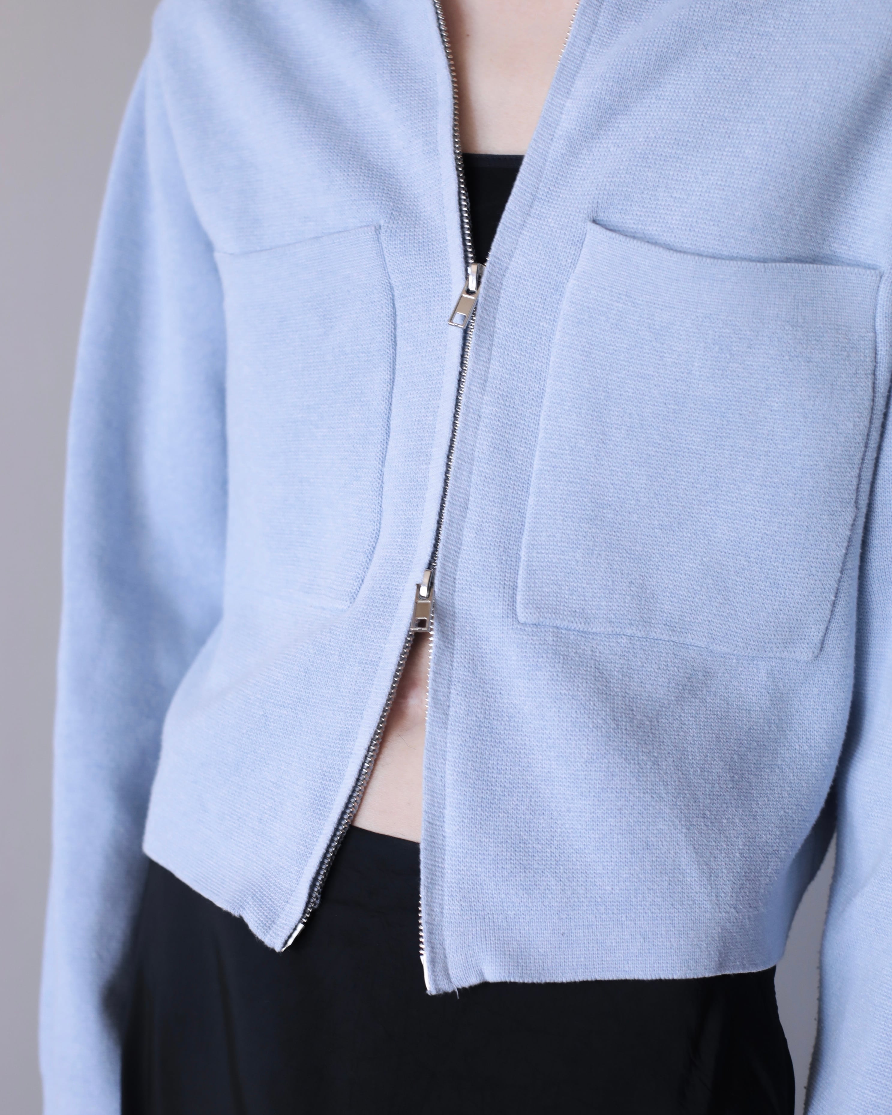 pale blue color cotton knit zip-up jacket
