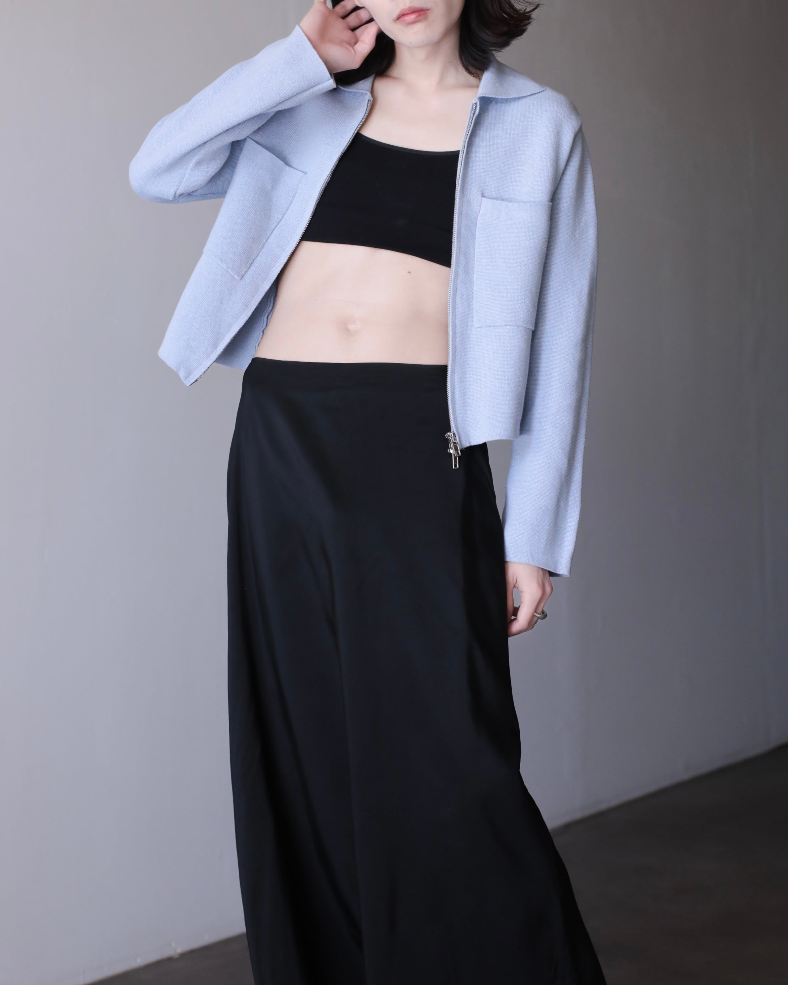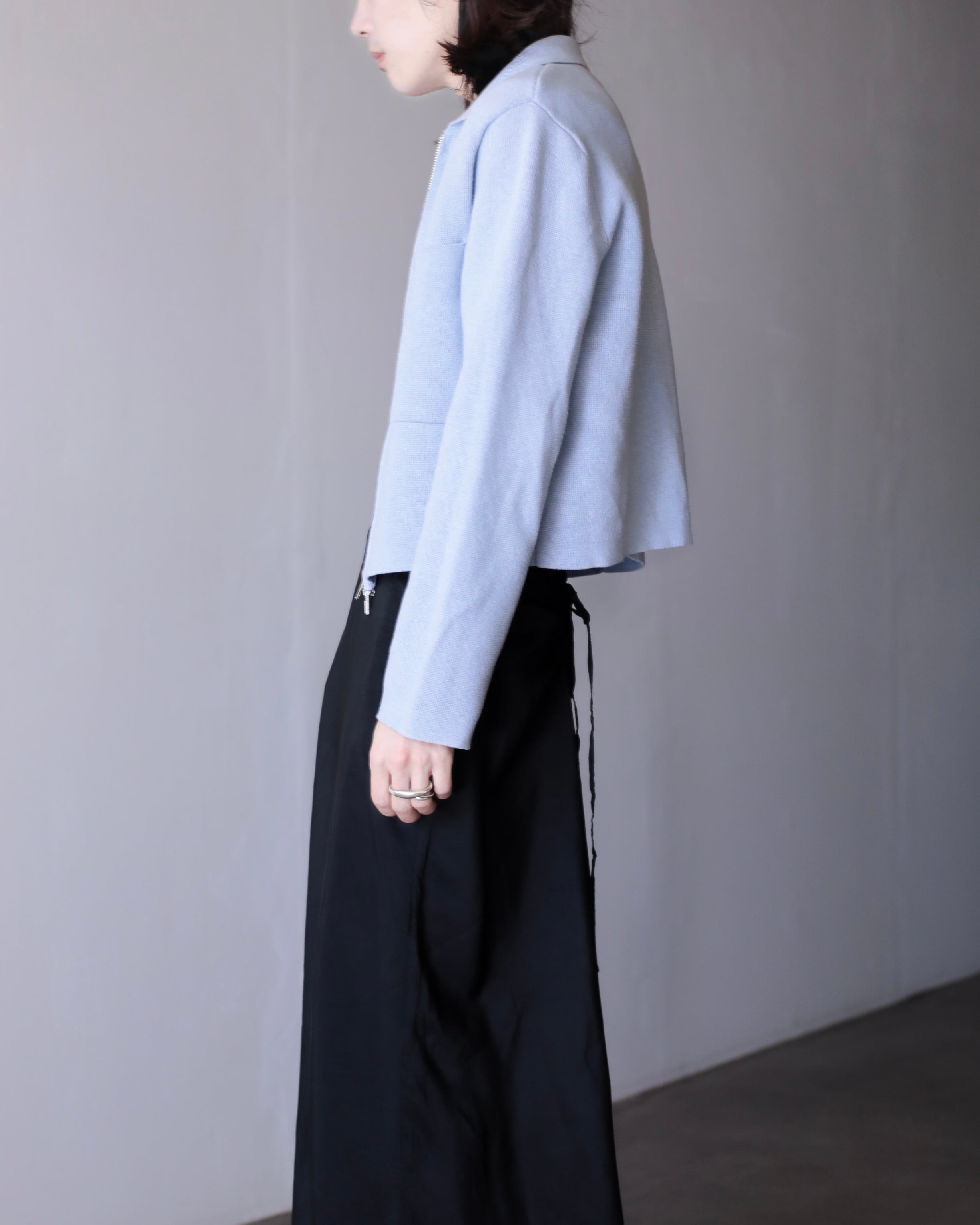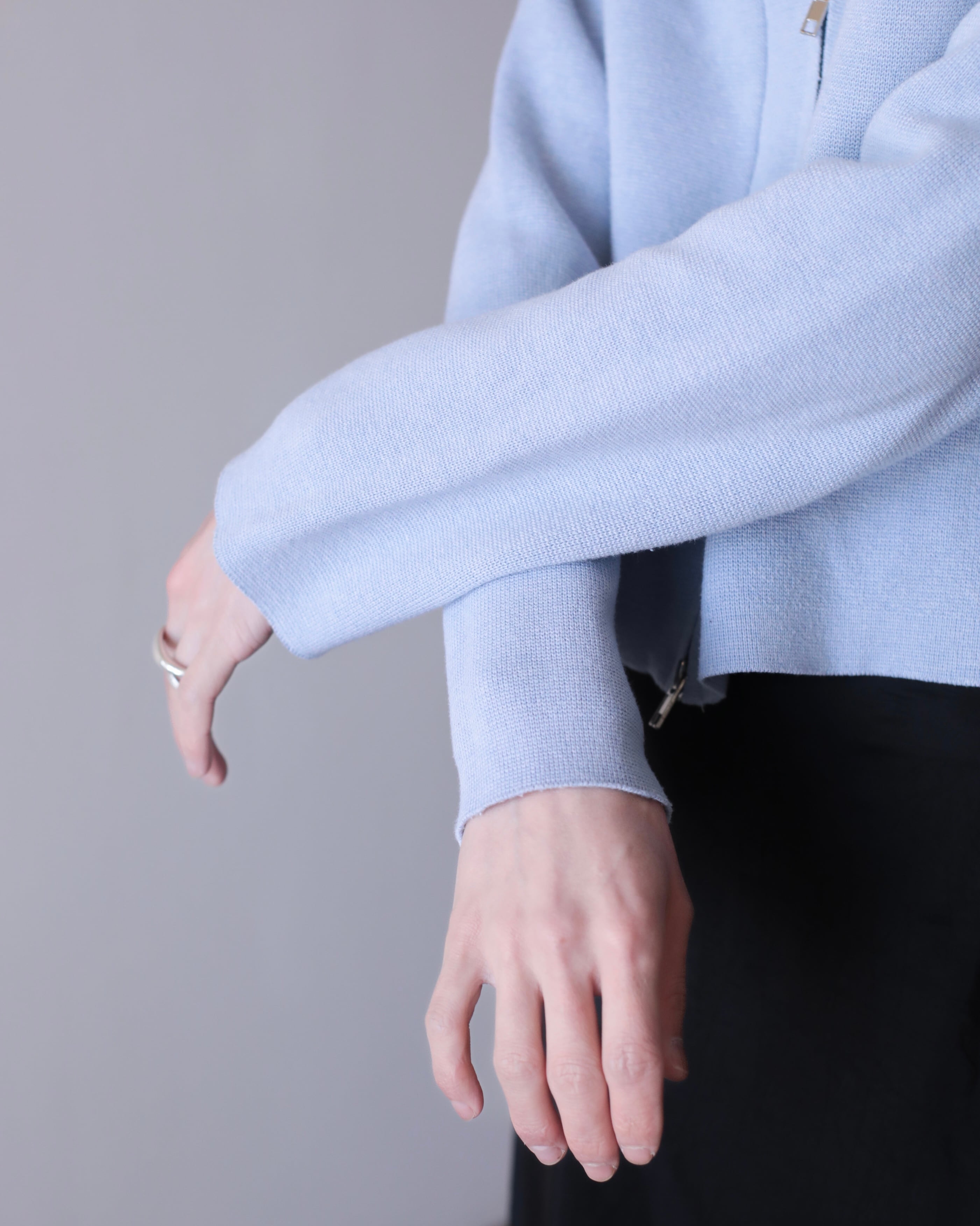 pale blue color cotton knit zip-up jacket
