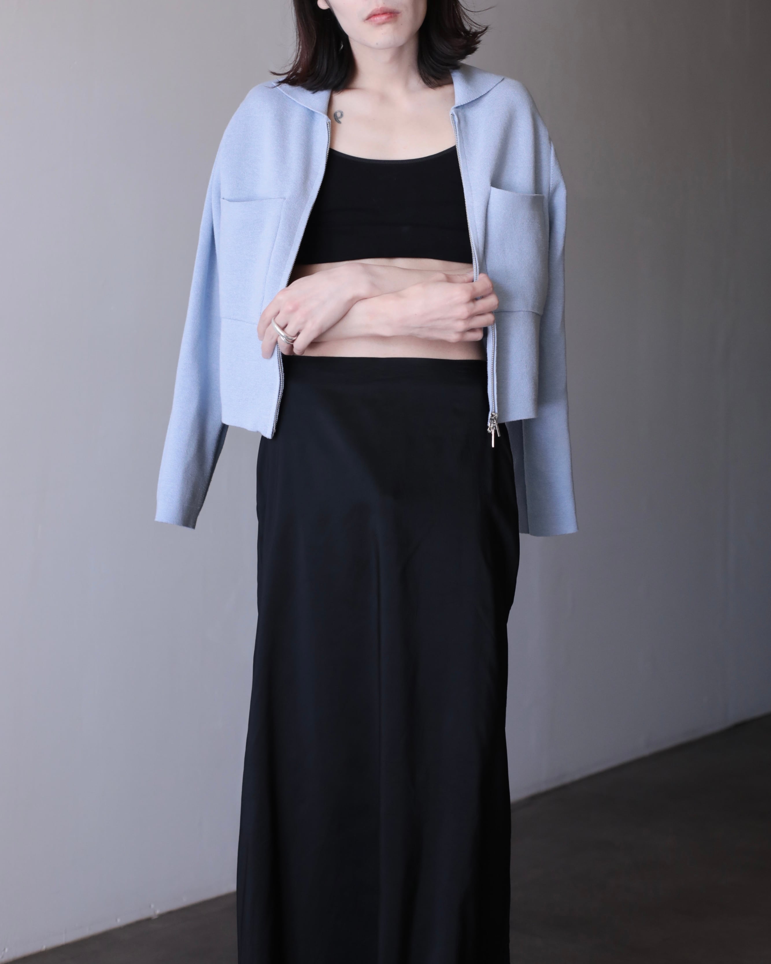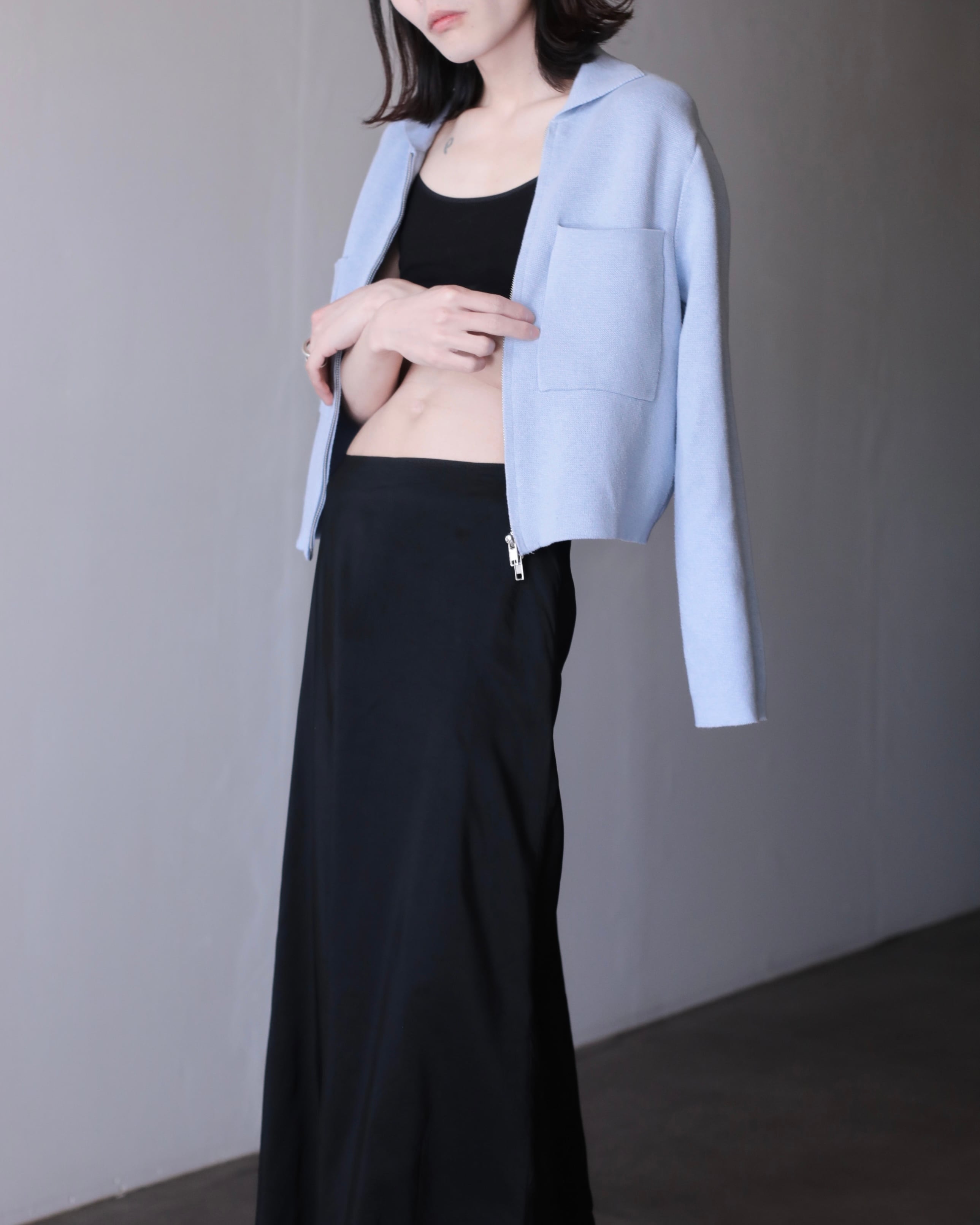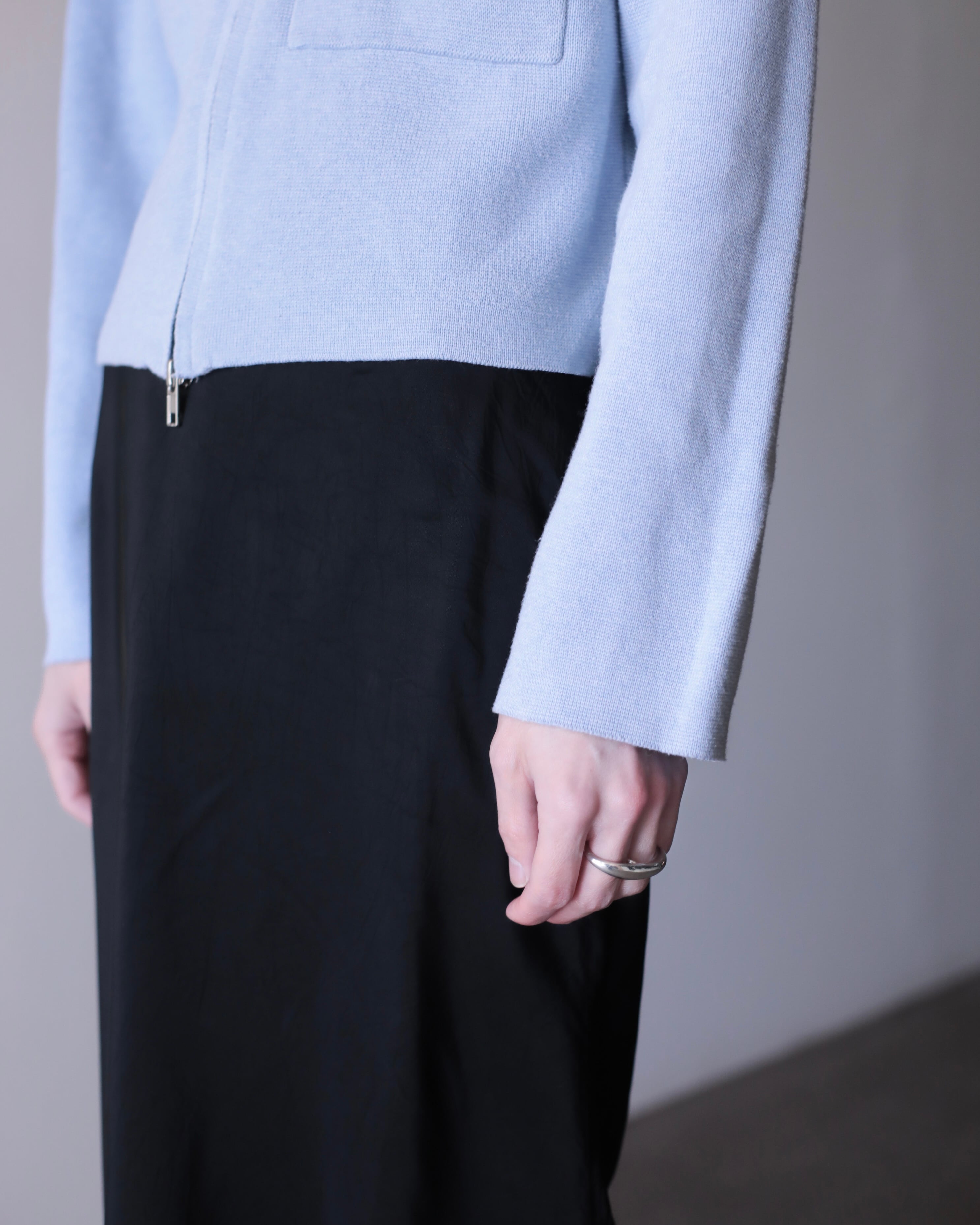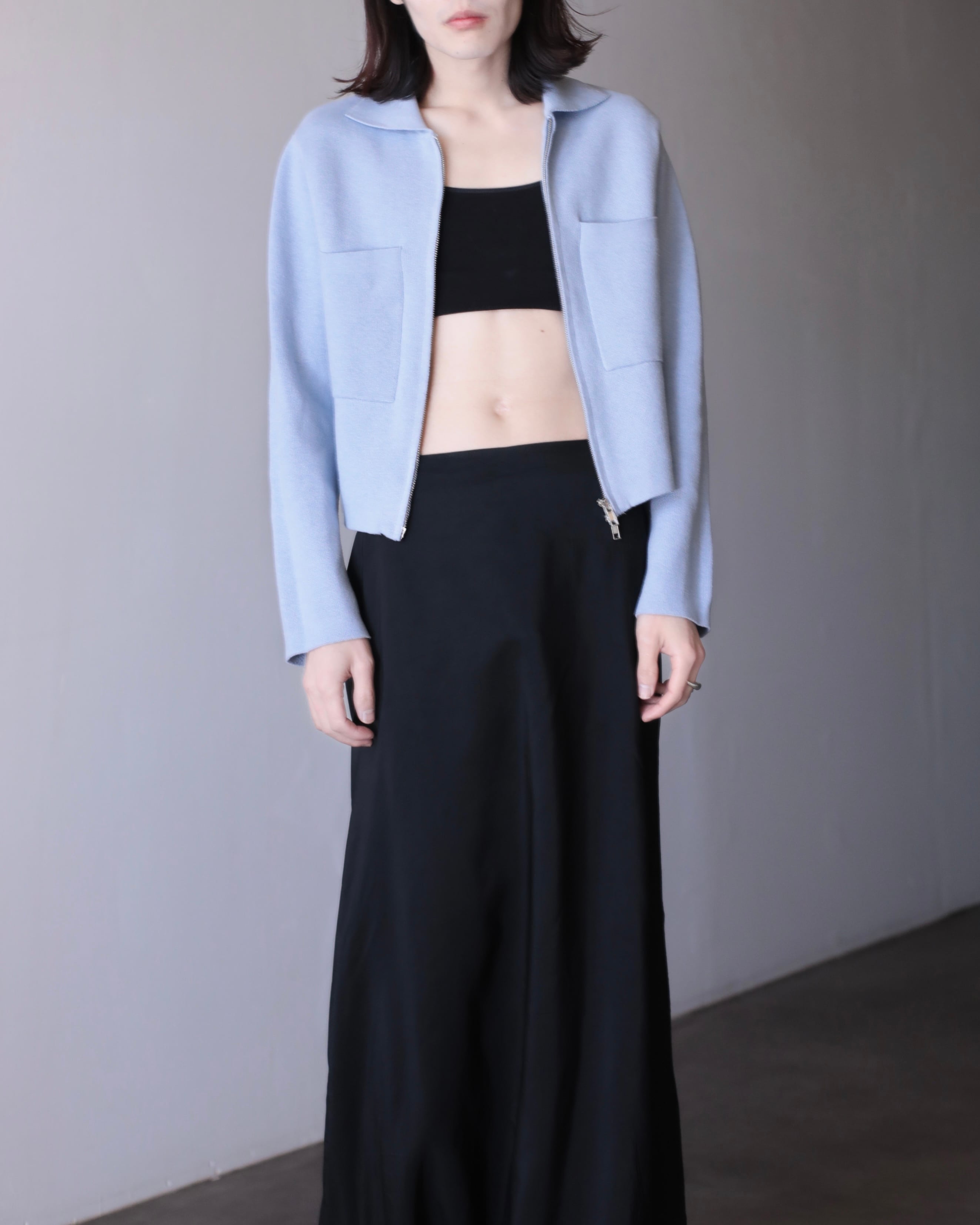 pale blue color cotton knit zip-up jacket