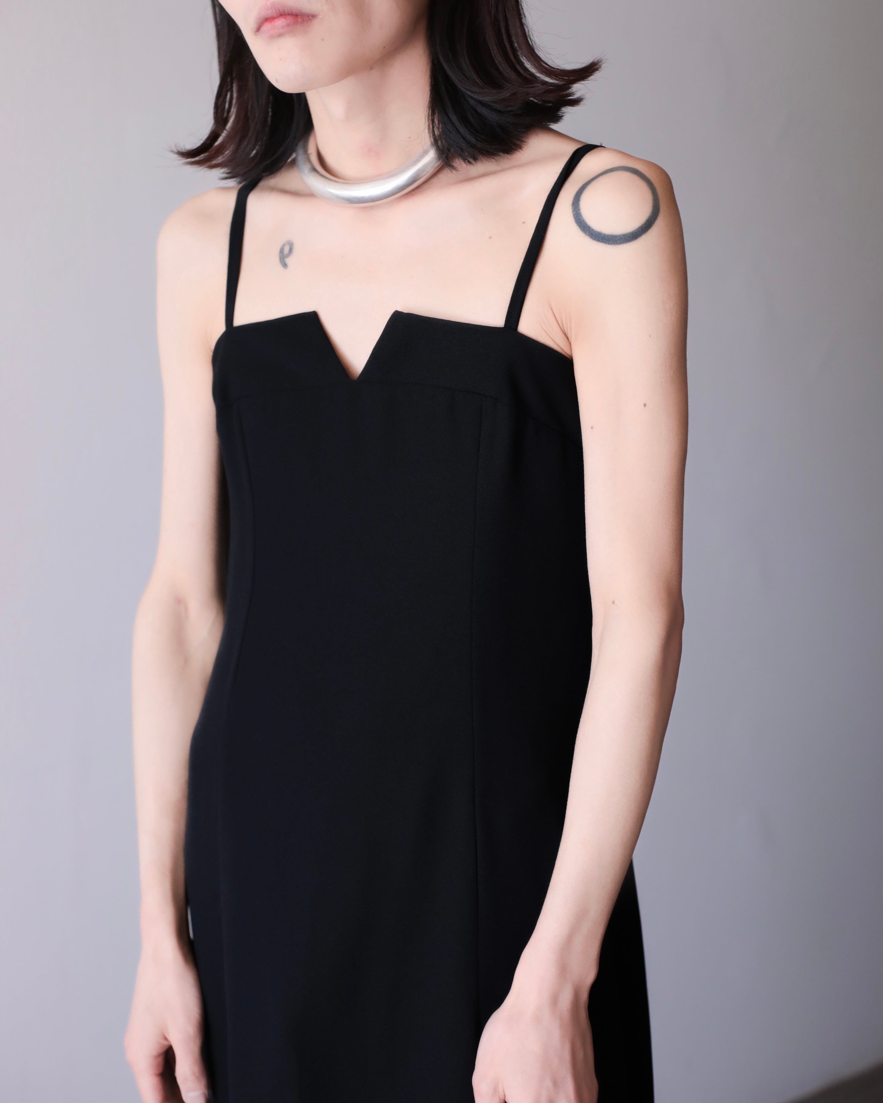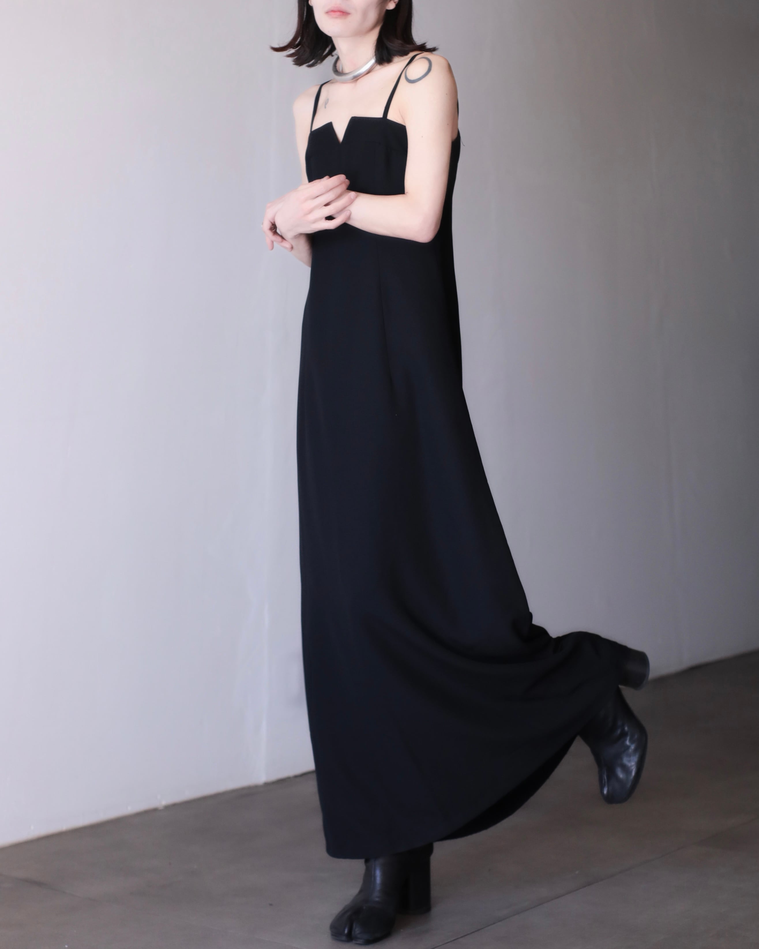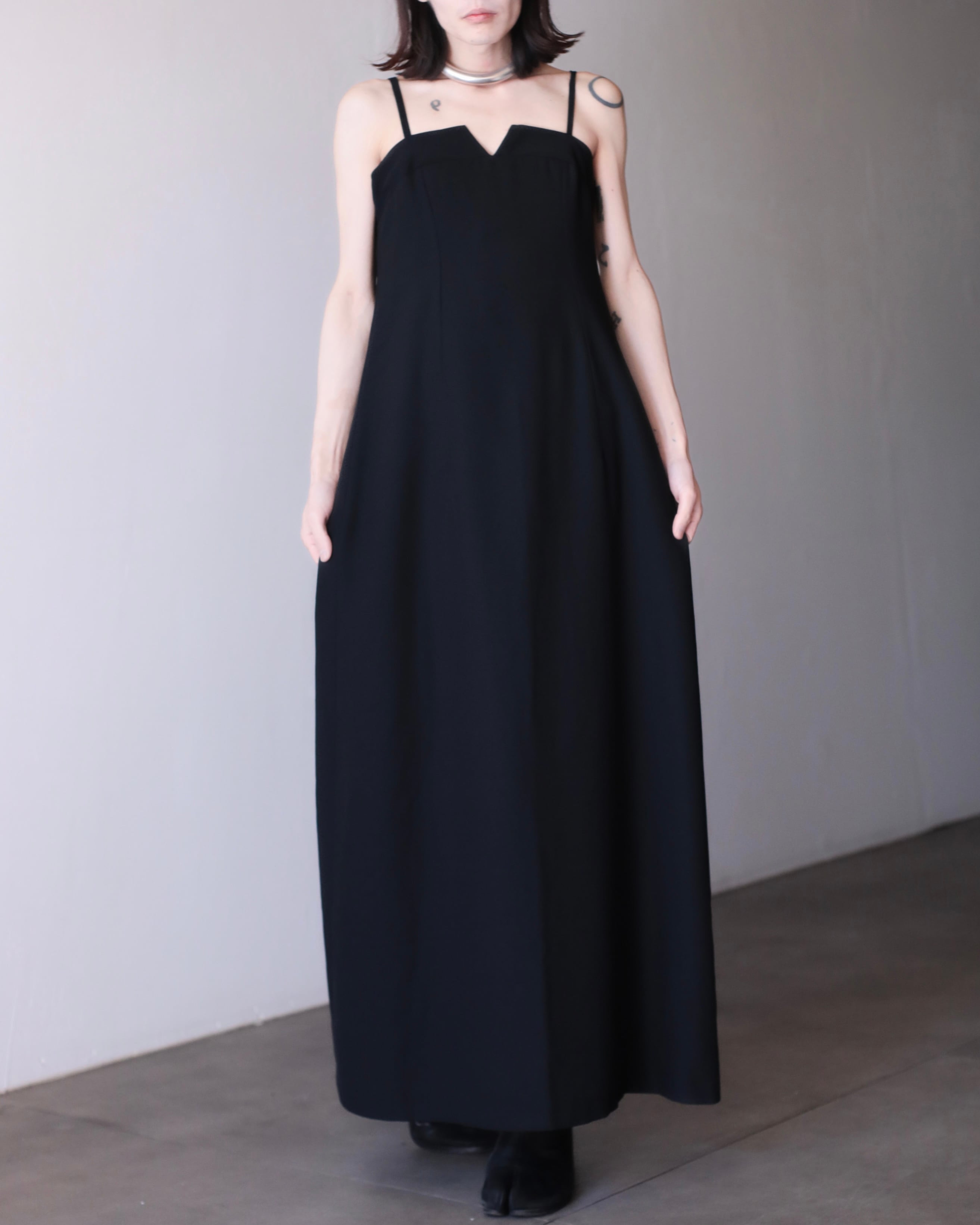 1990s euro front V kurinuki design maxi length camisole dress one piece