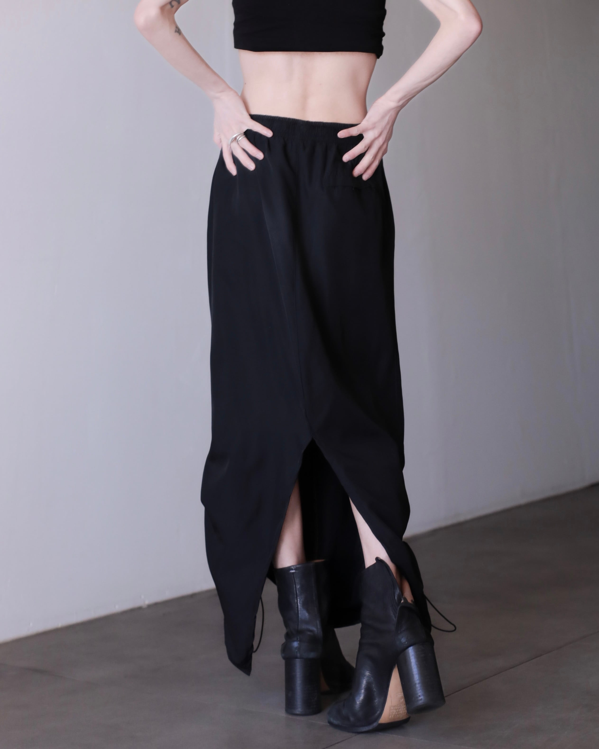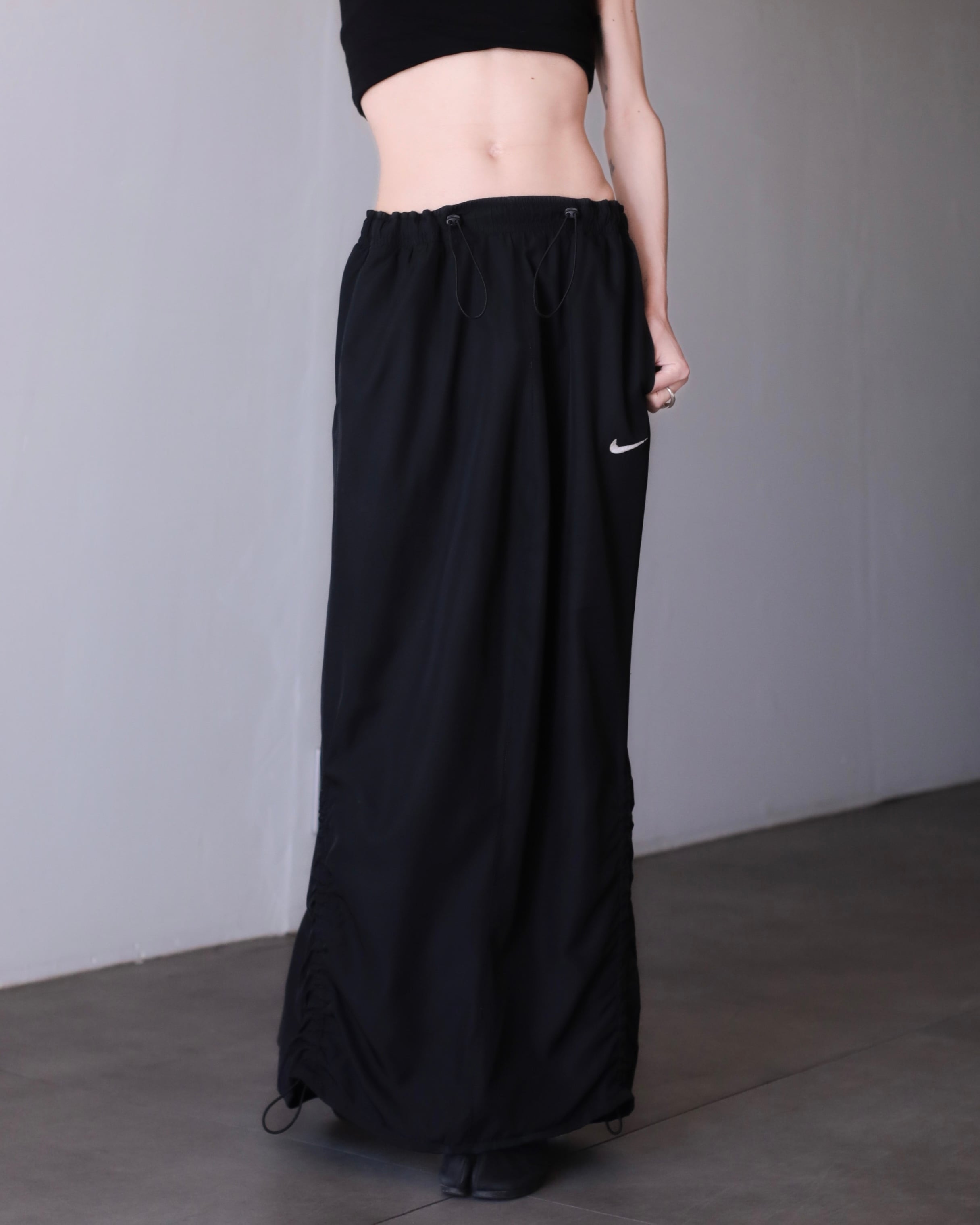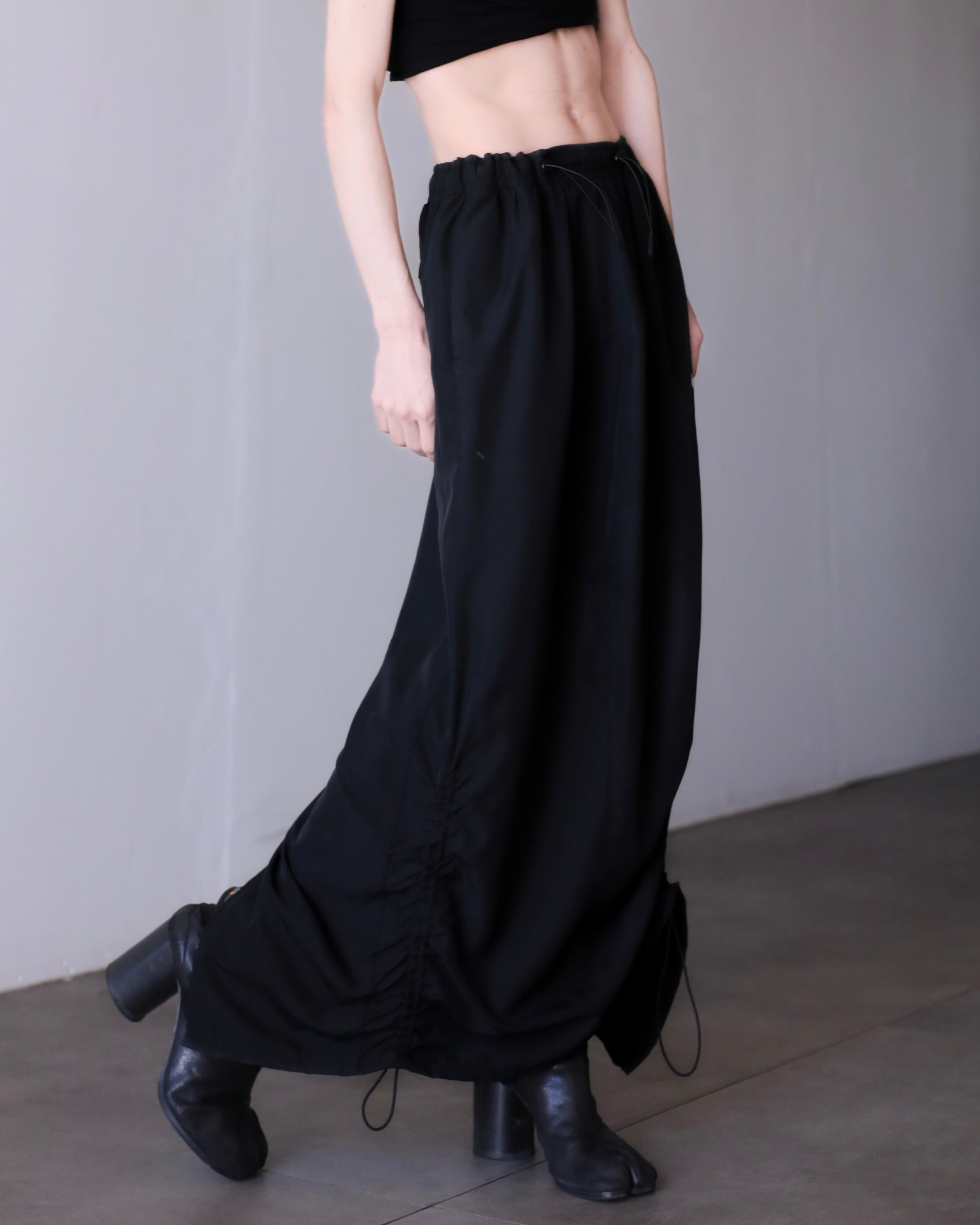 ウエストと両サイド裾にドローコードが仕込まれているディテールで裾のドローはしぼると縦にクシュクシュとしてくれてデザイン性もバッチリです。