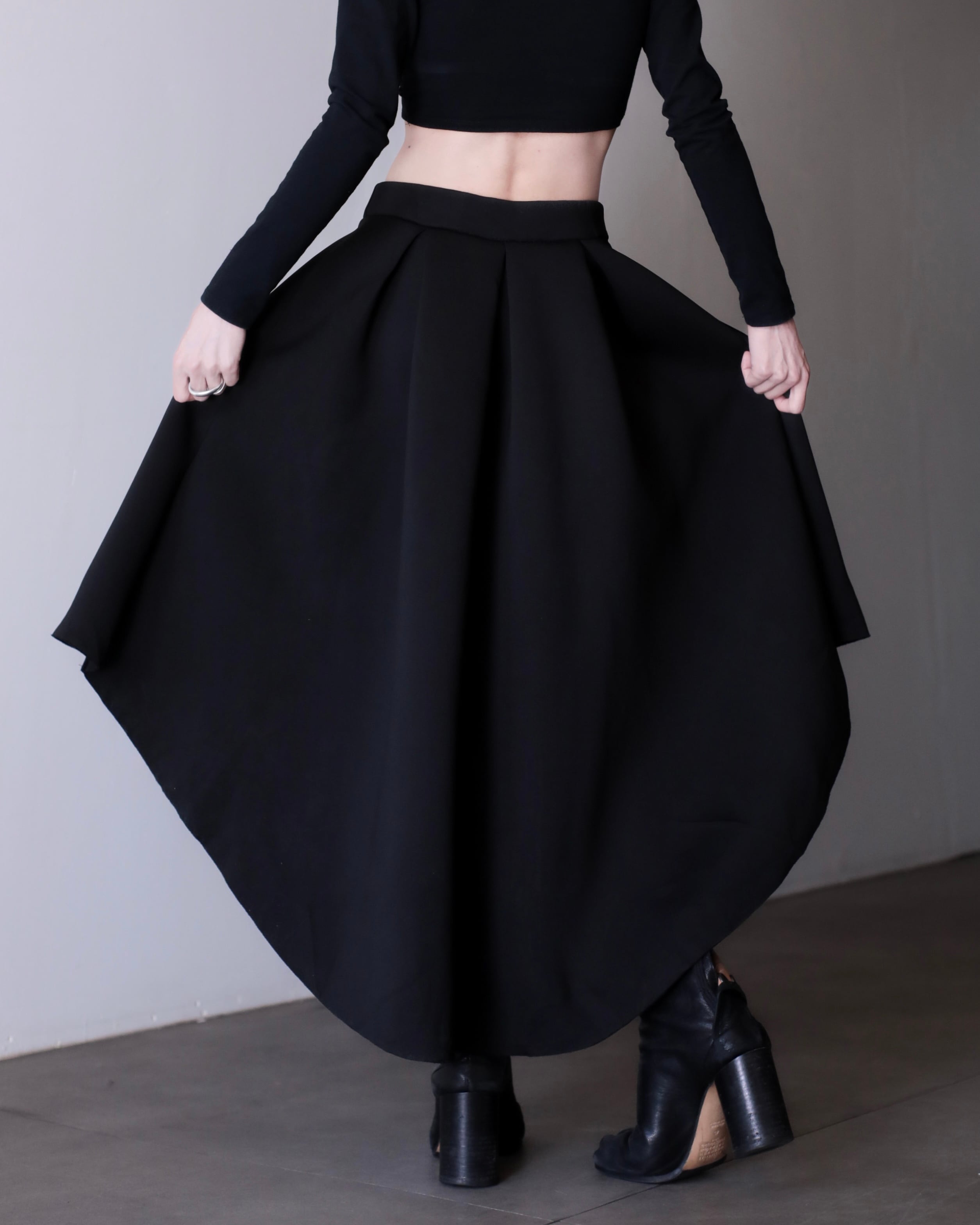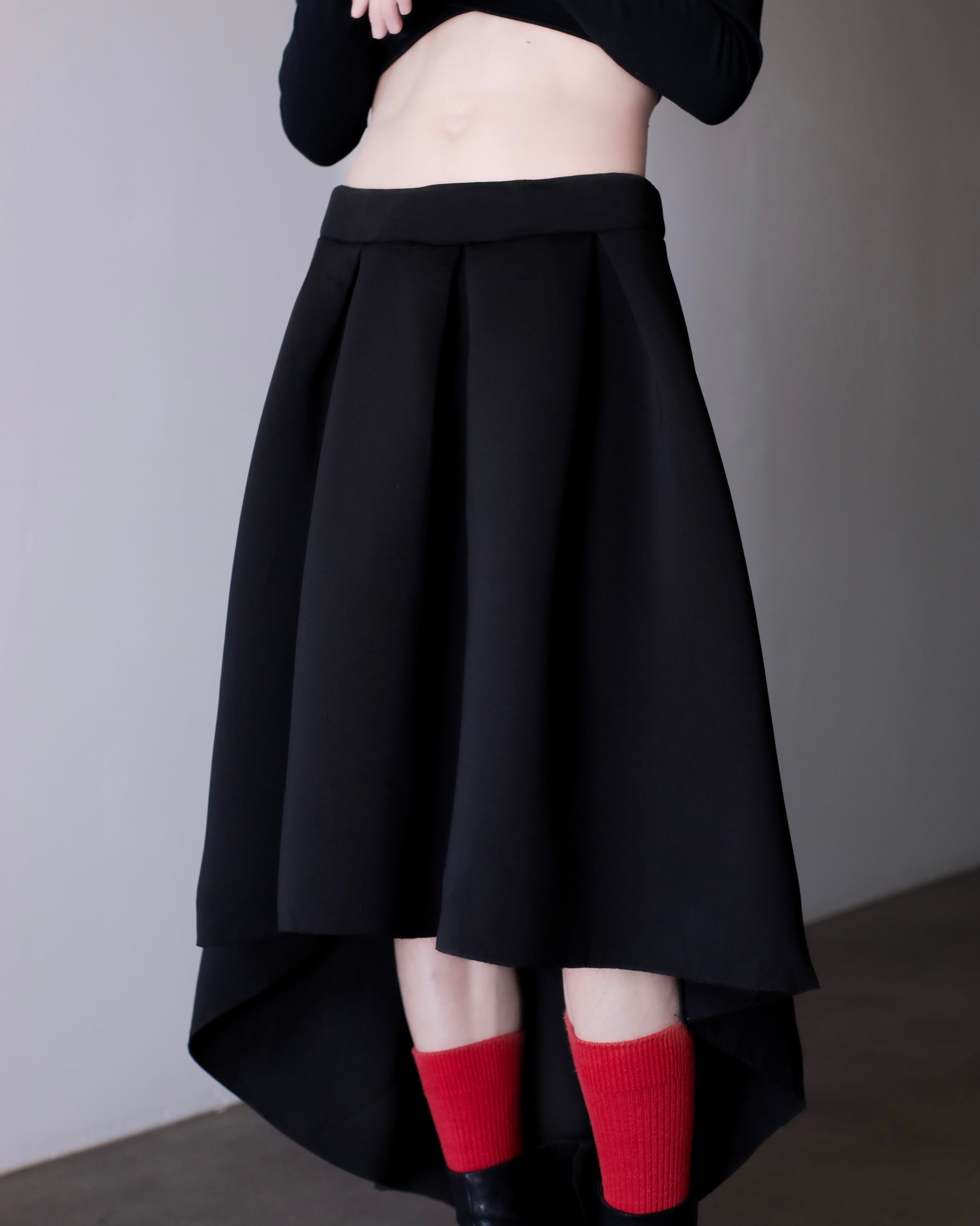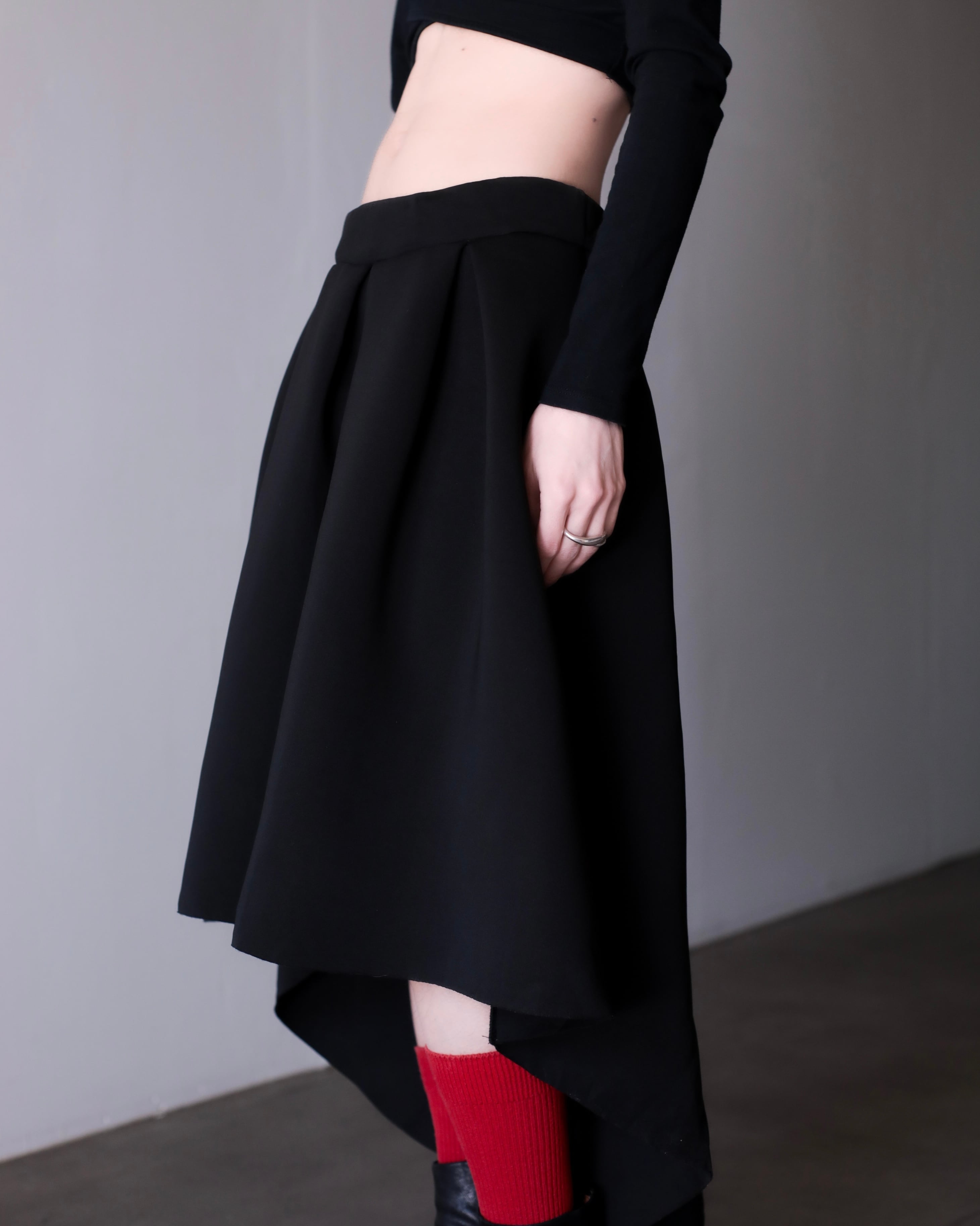 1990s bonding fabric 360° tuck asymmetry design volume skirt Made In USA
