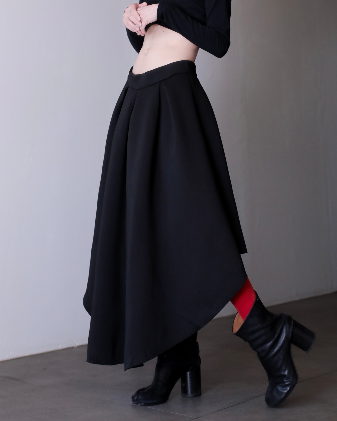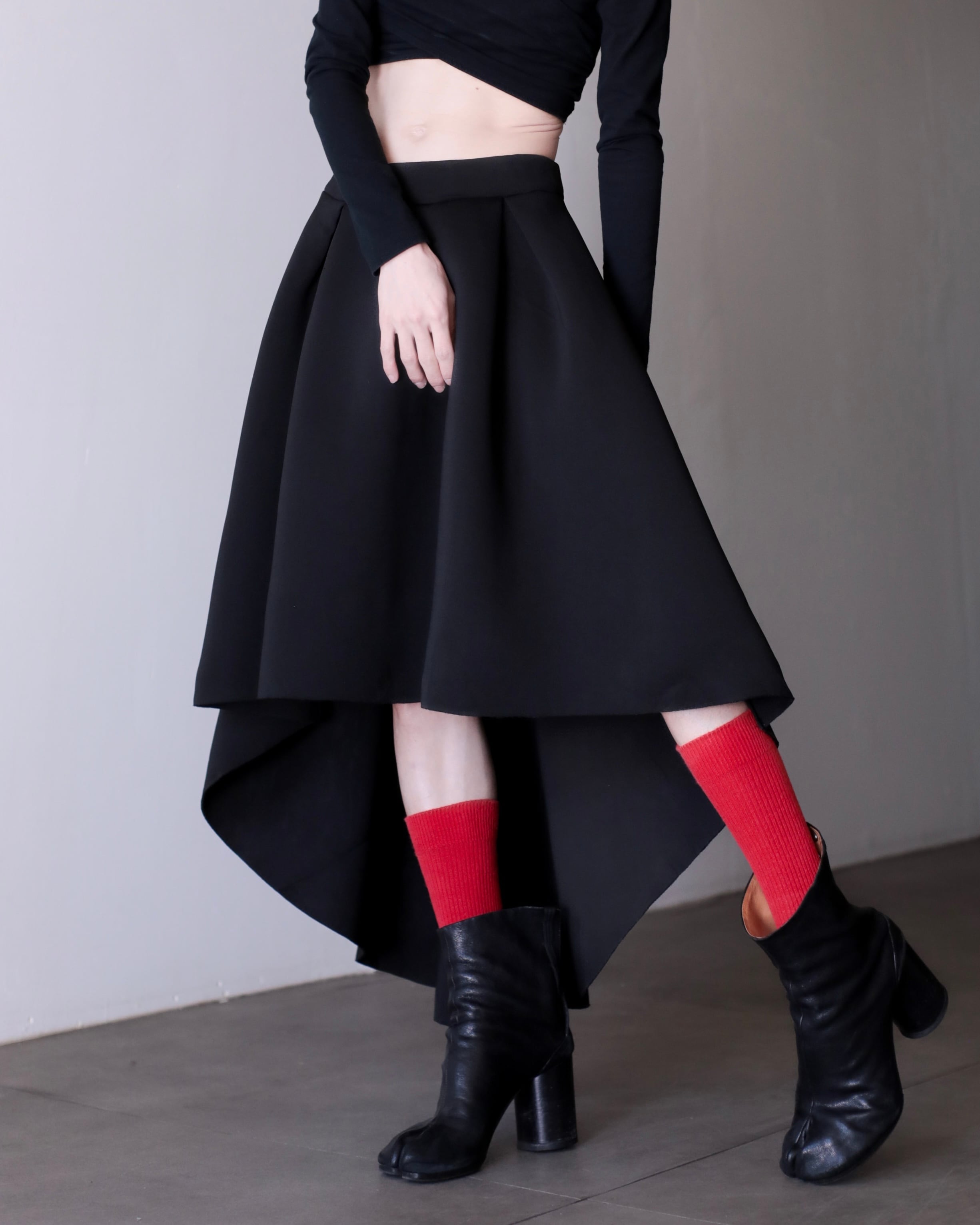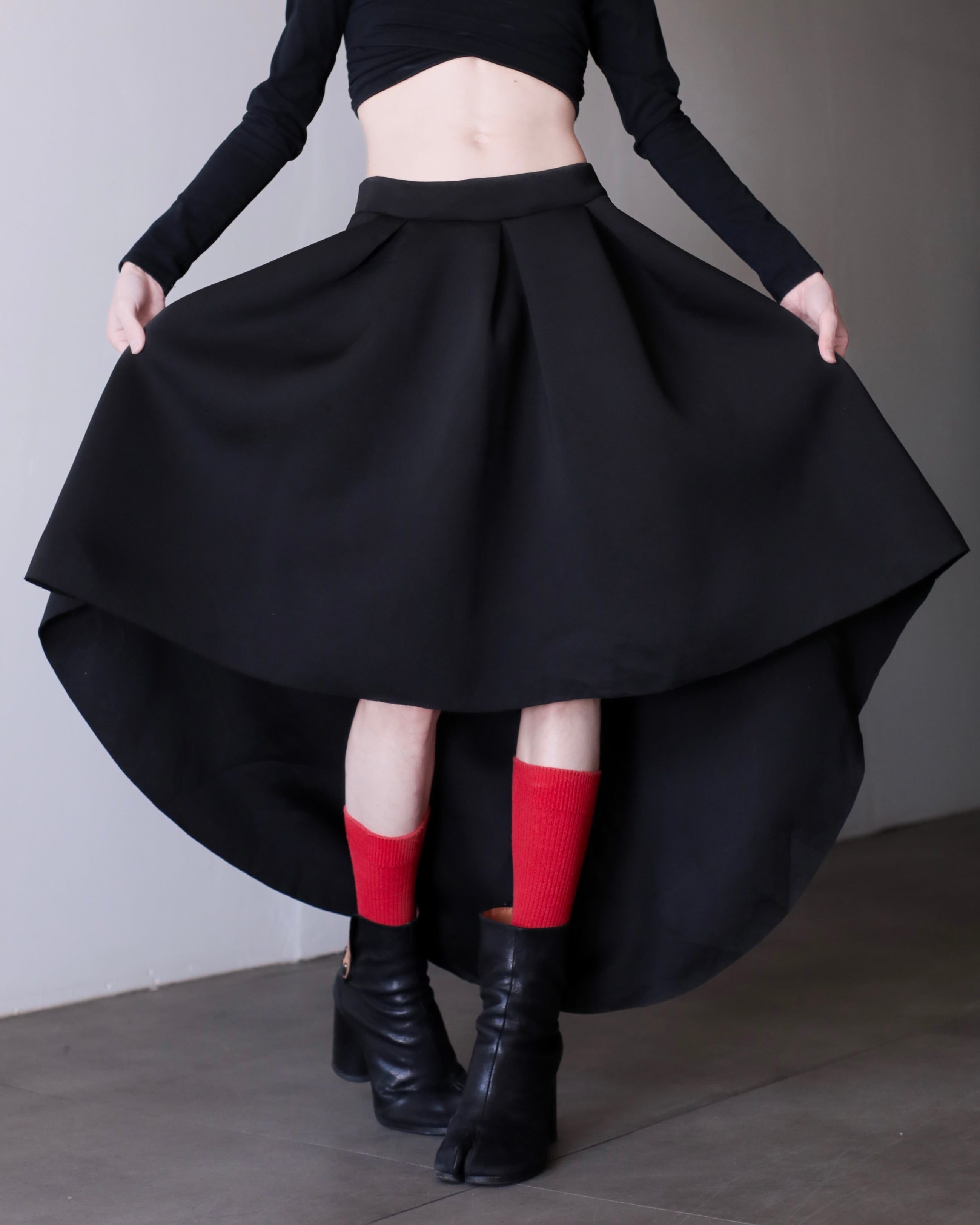 1990s bonding fabric 360° tuck asymmetry design volume skirt Made In USA