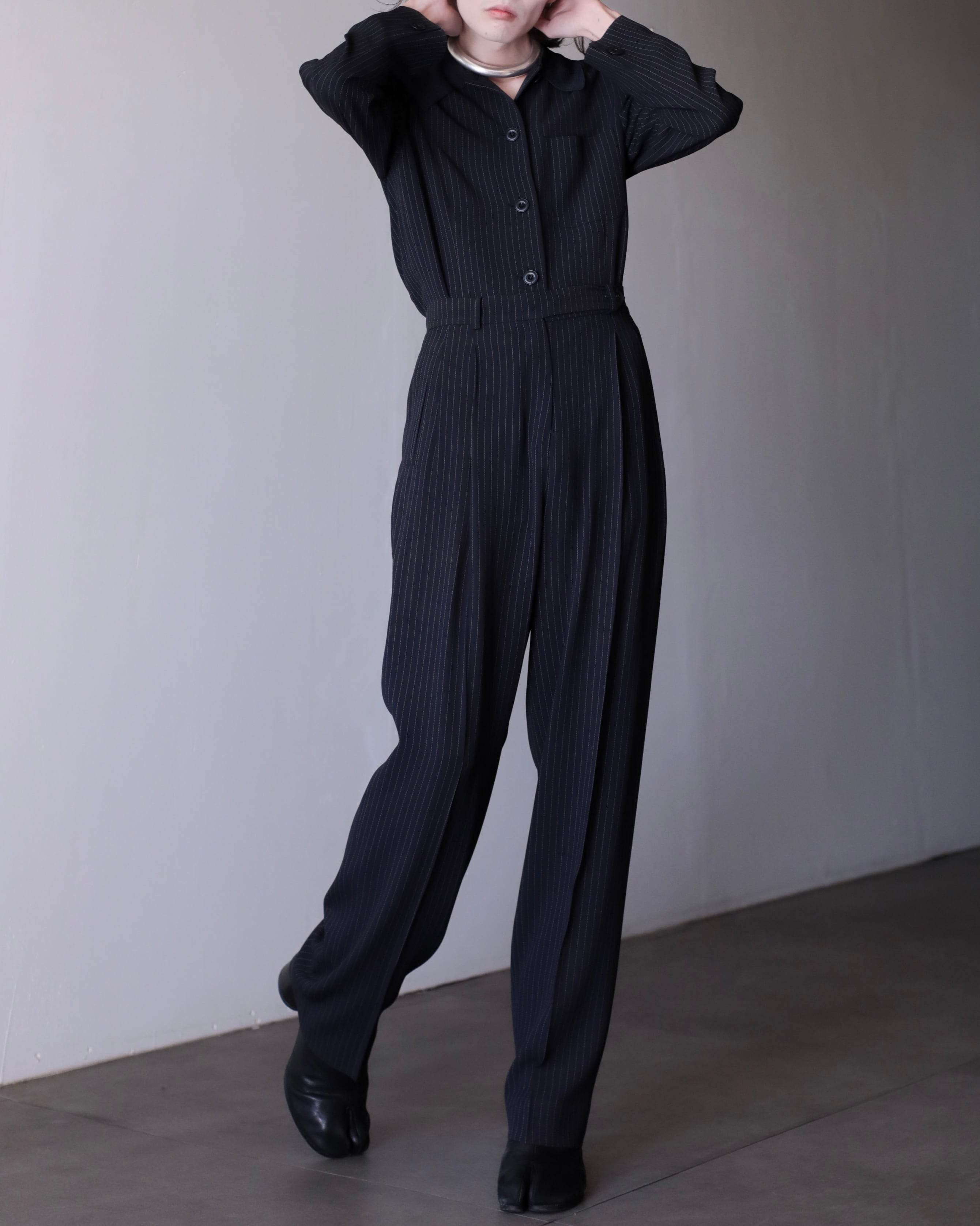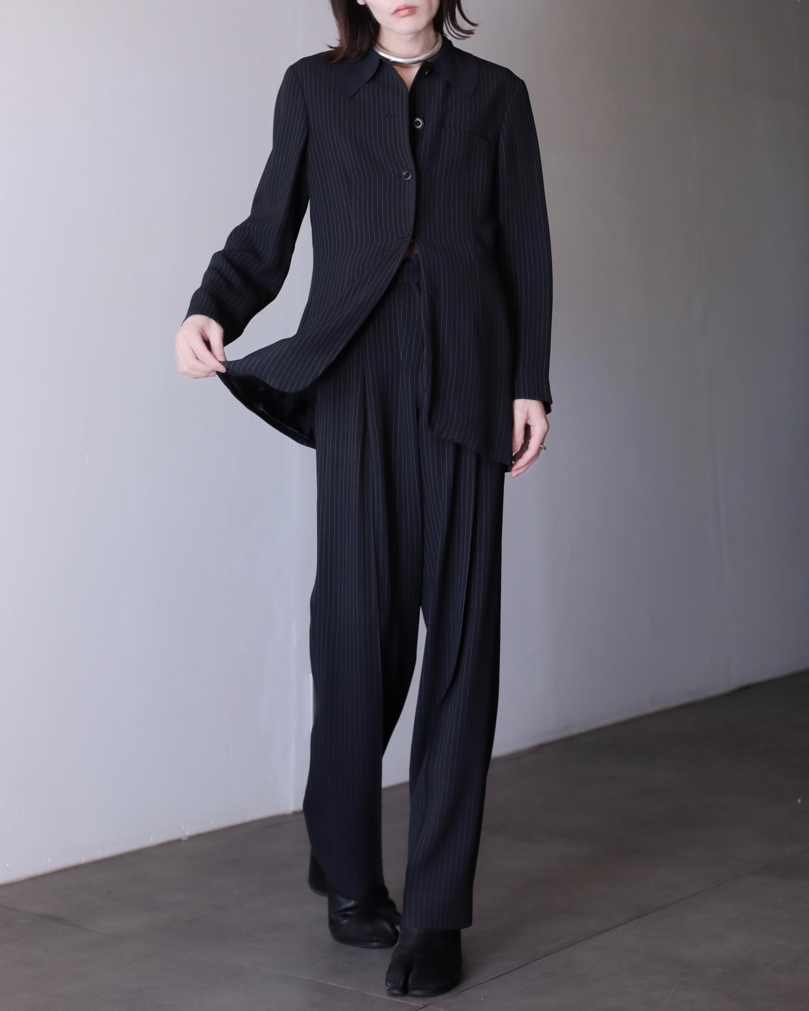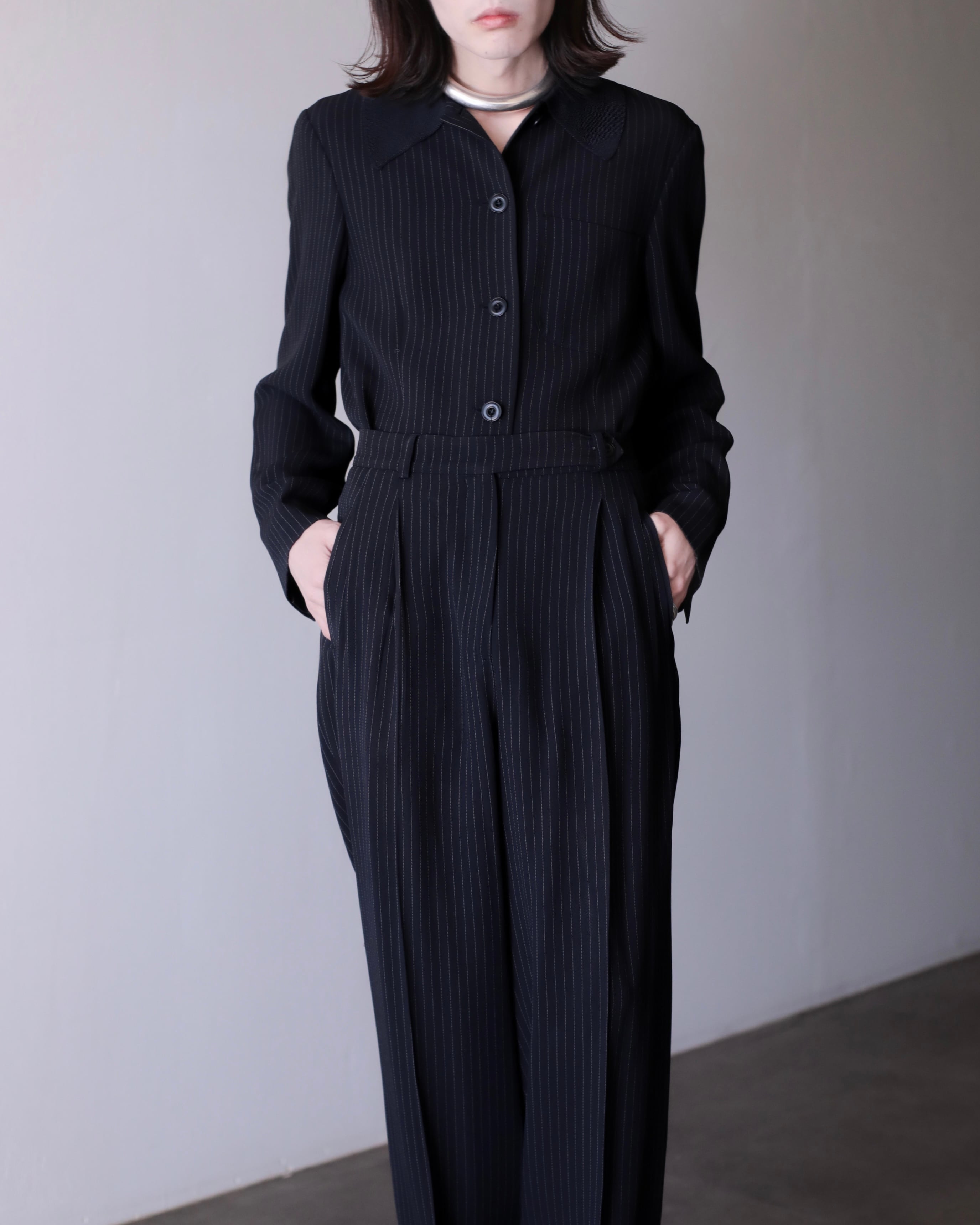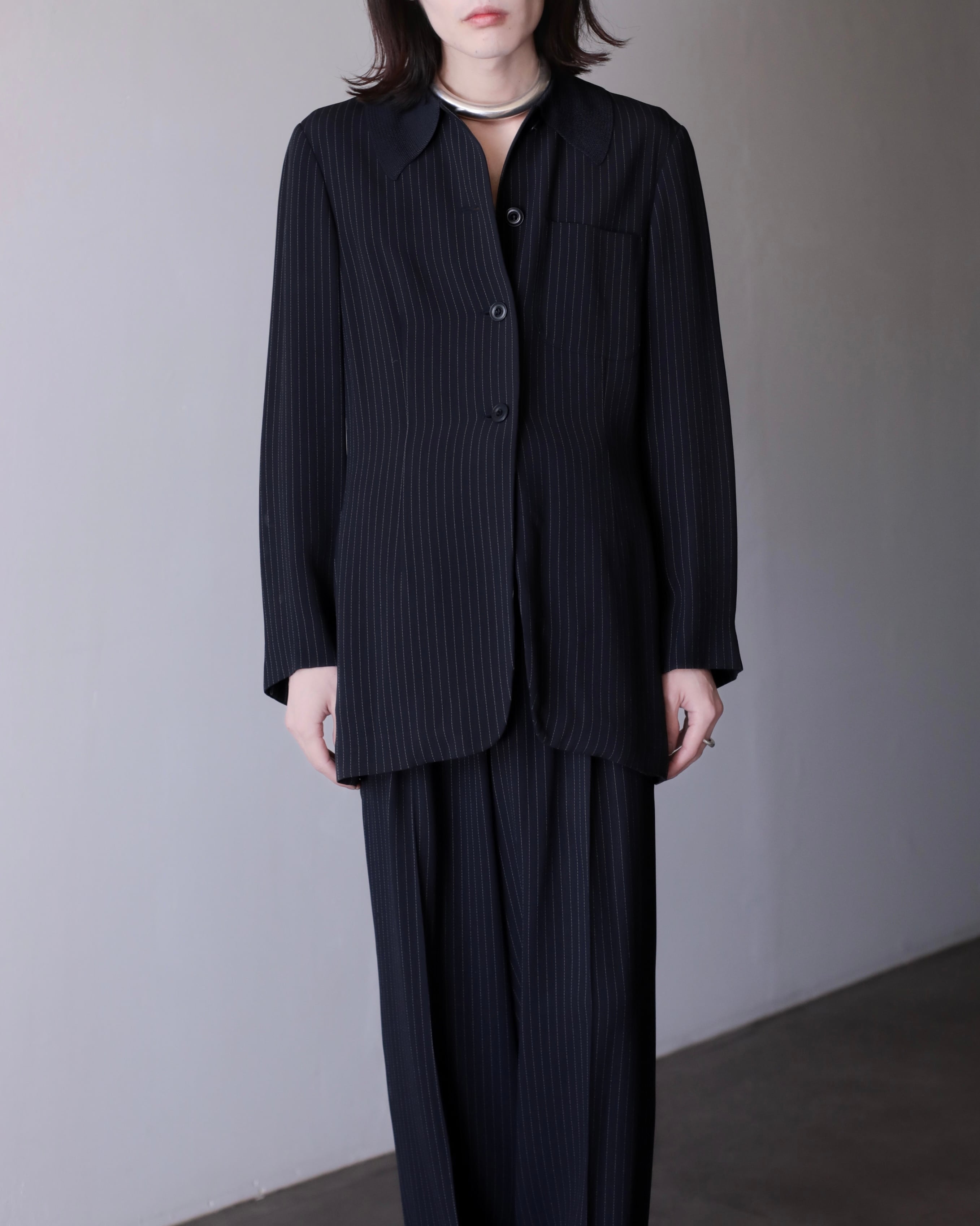 1990s Max Mara 2piece set up coverall jacket & semi wide slacks toromi fabric switching collar Made In Italy