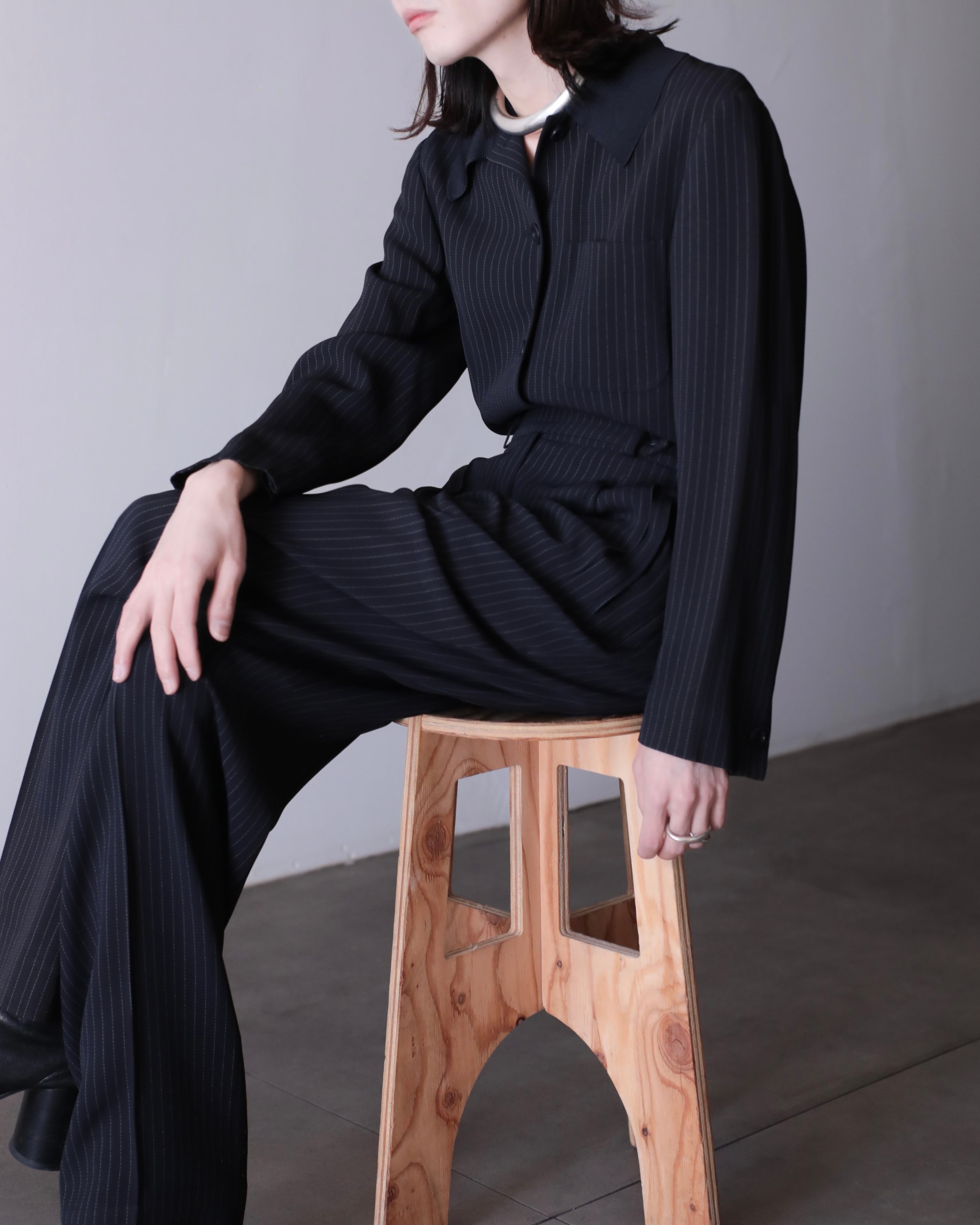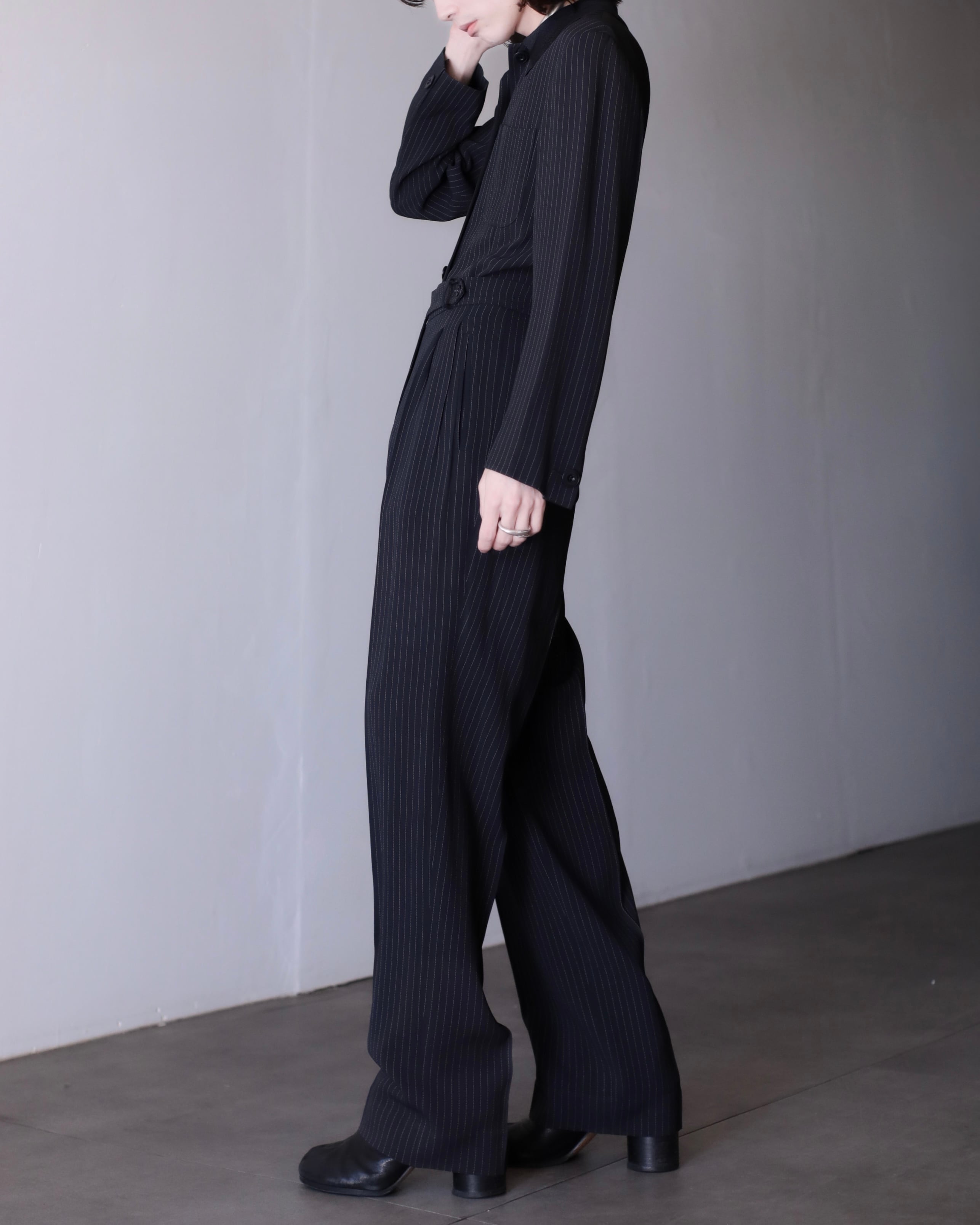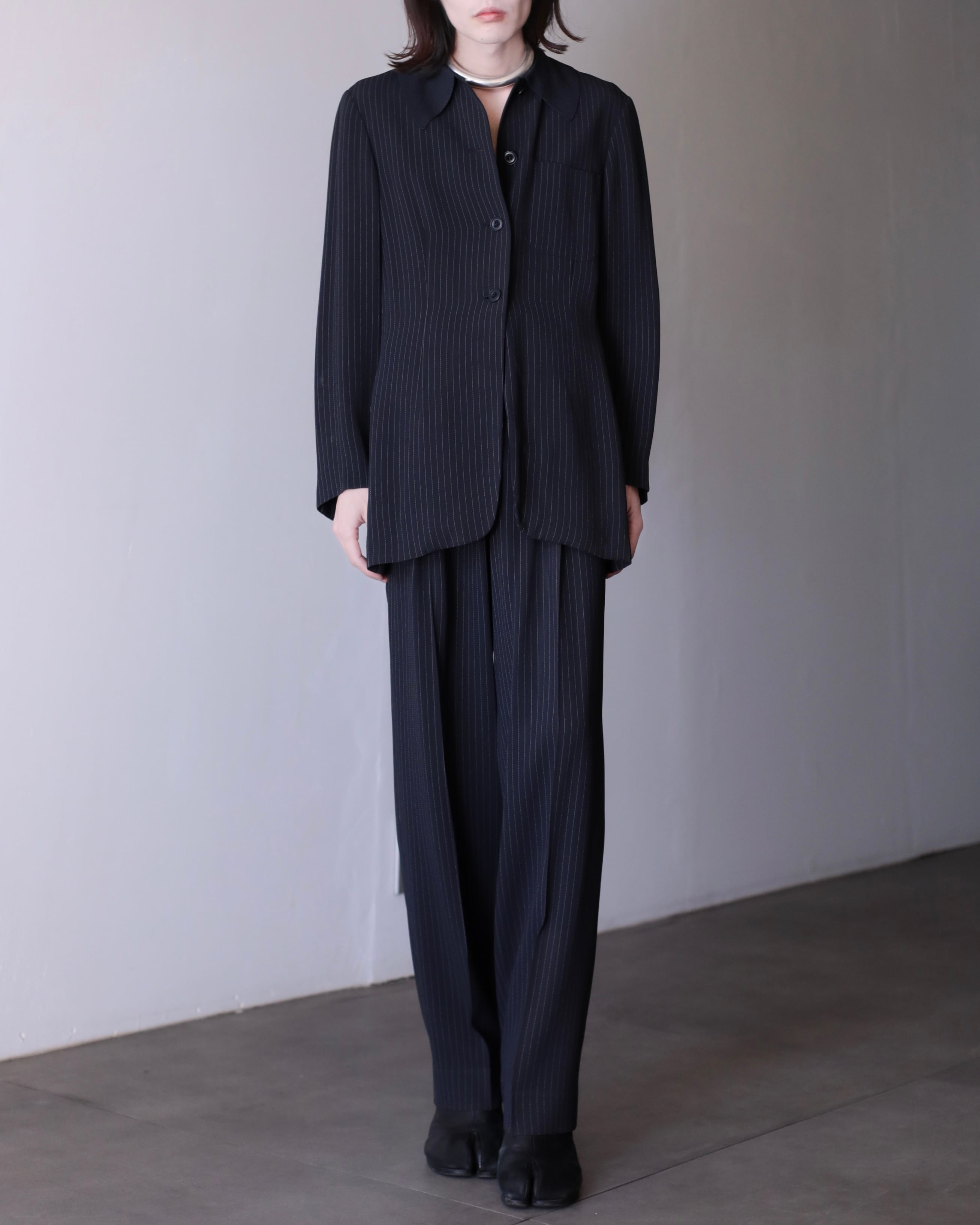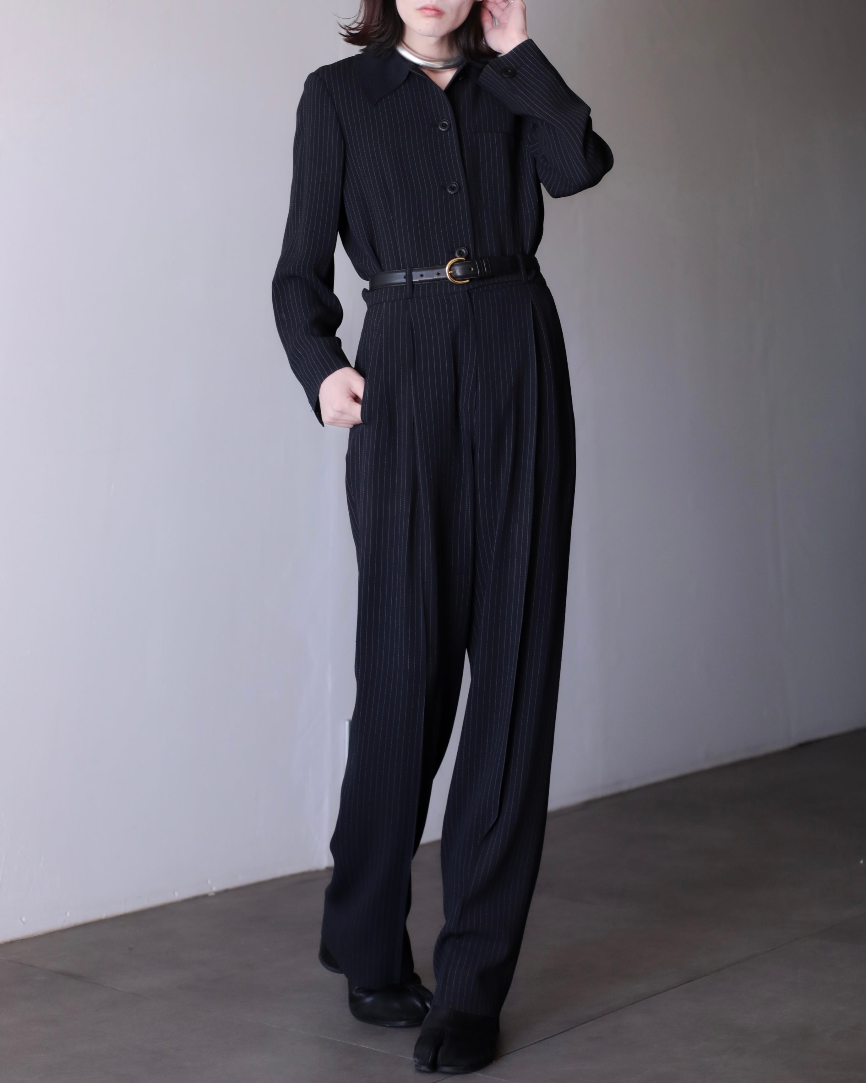 1990s Max Mara 2piece set up coverall jacket & semi wide slacks toromi fabric switching collar Made In Italy
