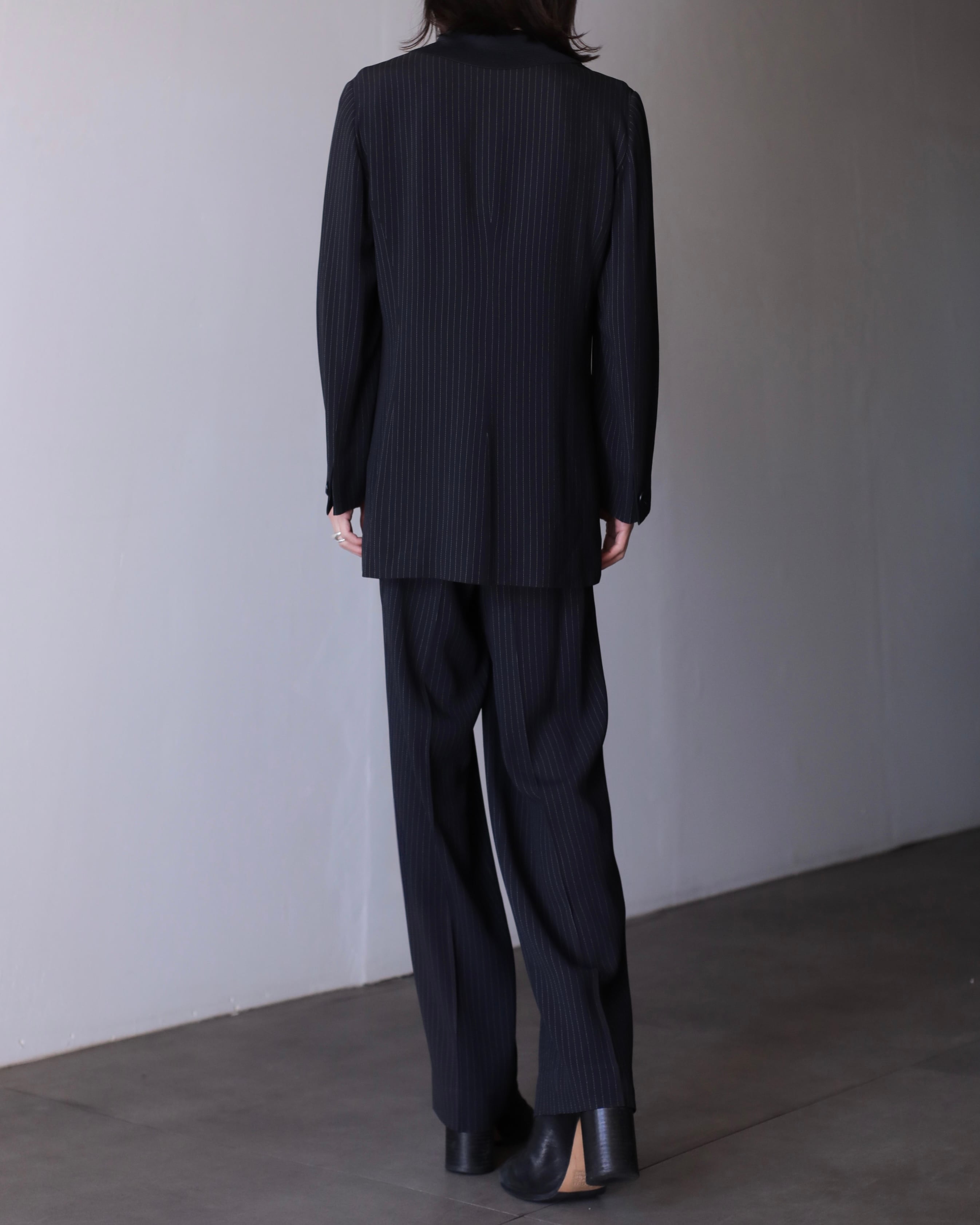 テーラードジャケット×スラックスですが、