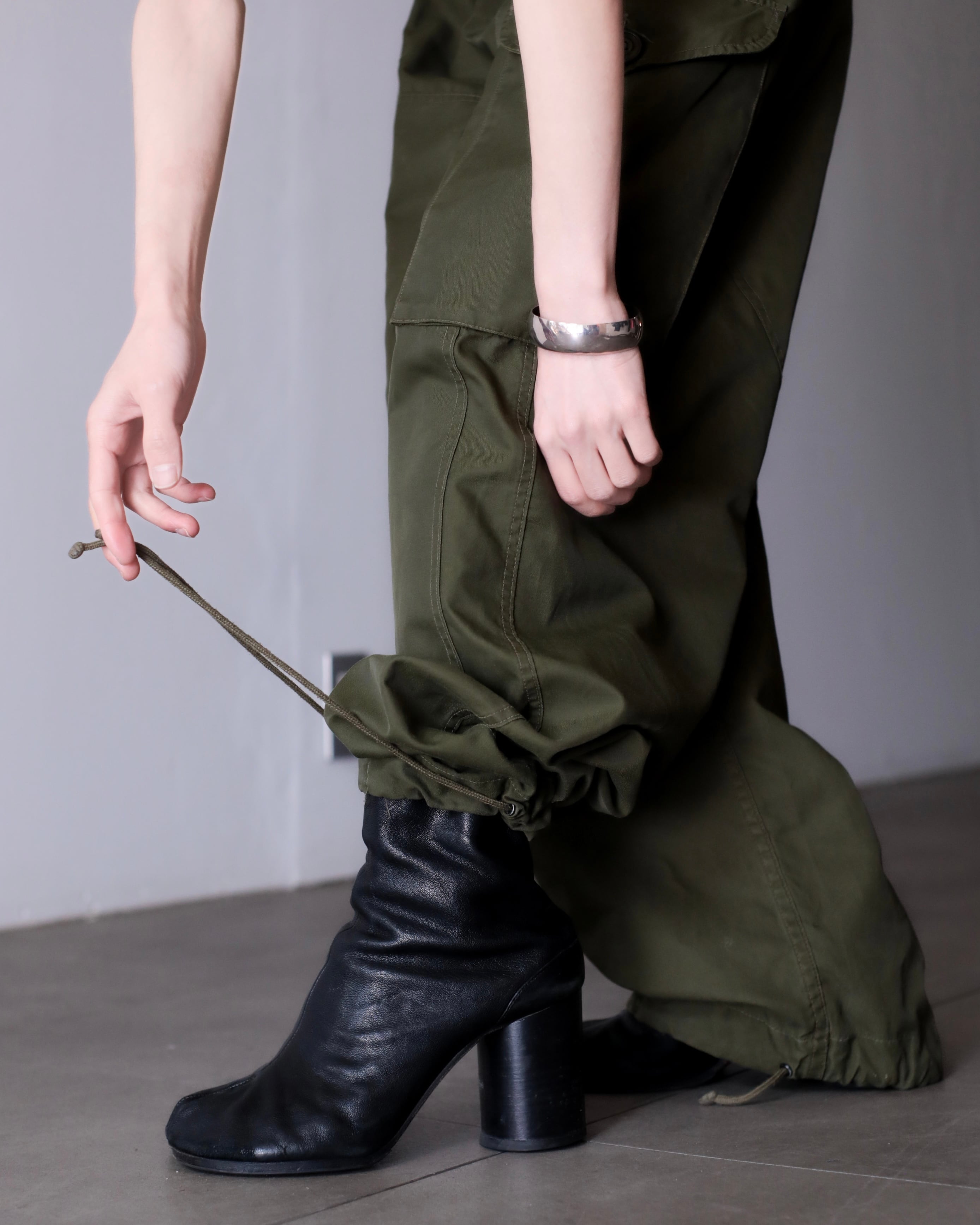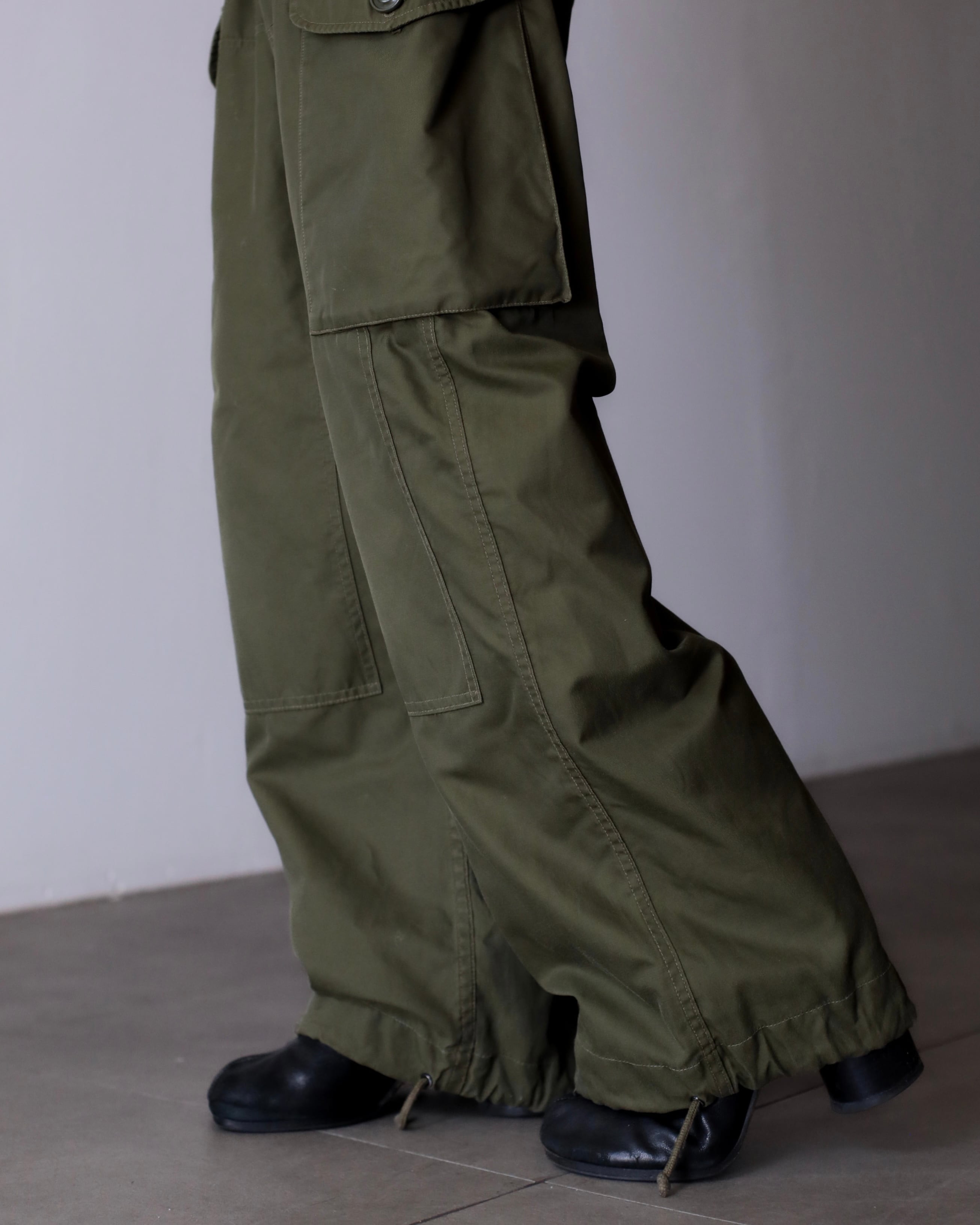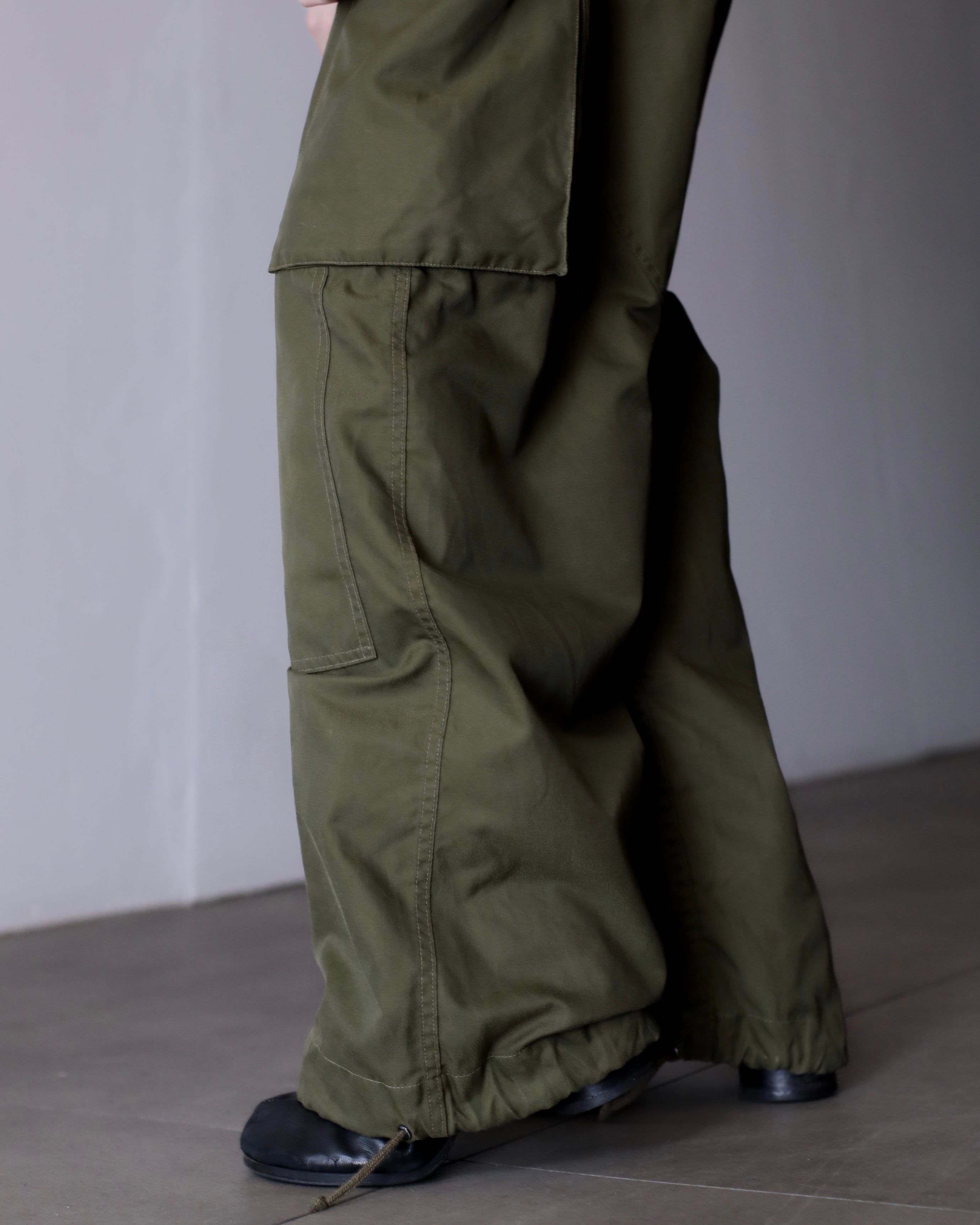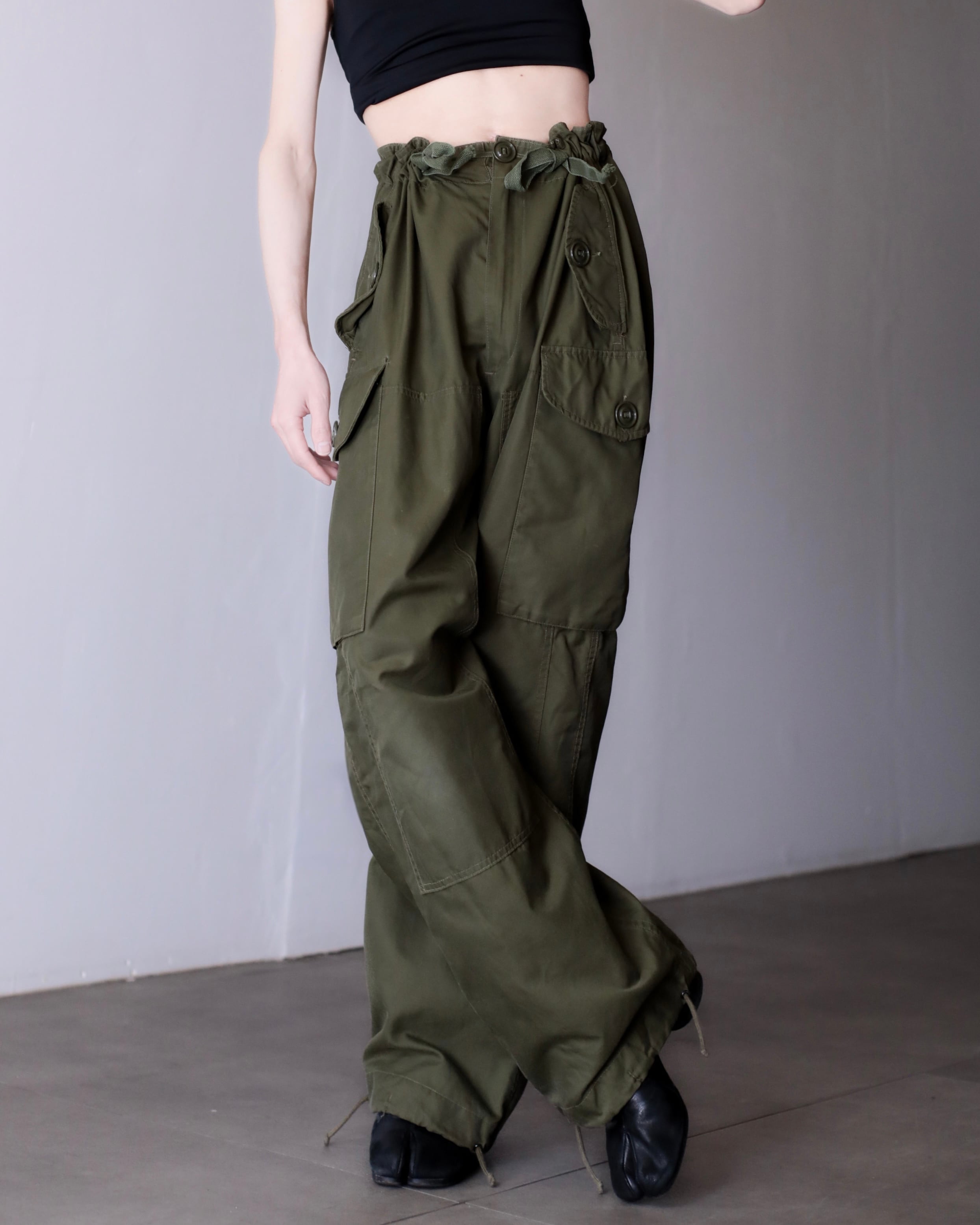ウエスト 〜100cm (紐で最小まで絞れます) / 股下 74cm / 総丈 109cm / 裾幅 〜27cm (紐で絞れます)