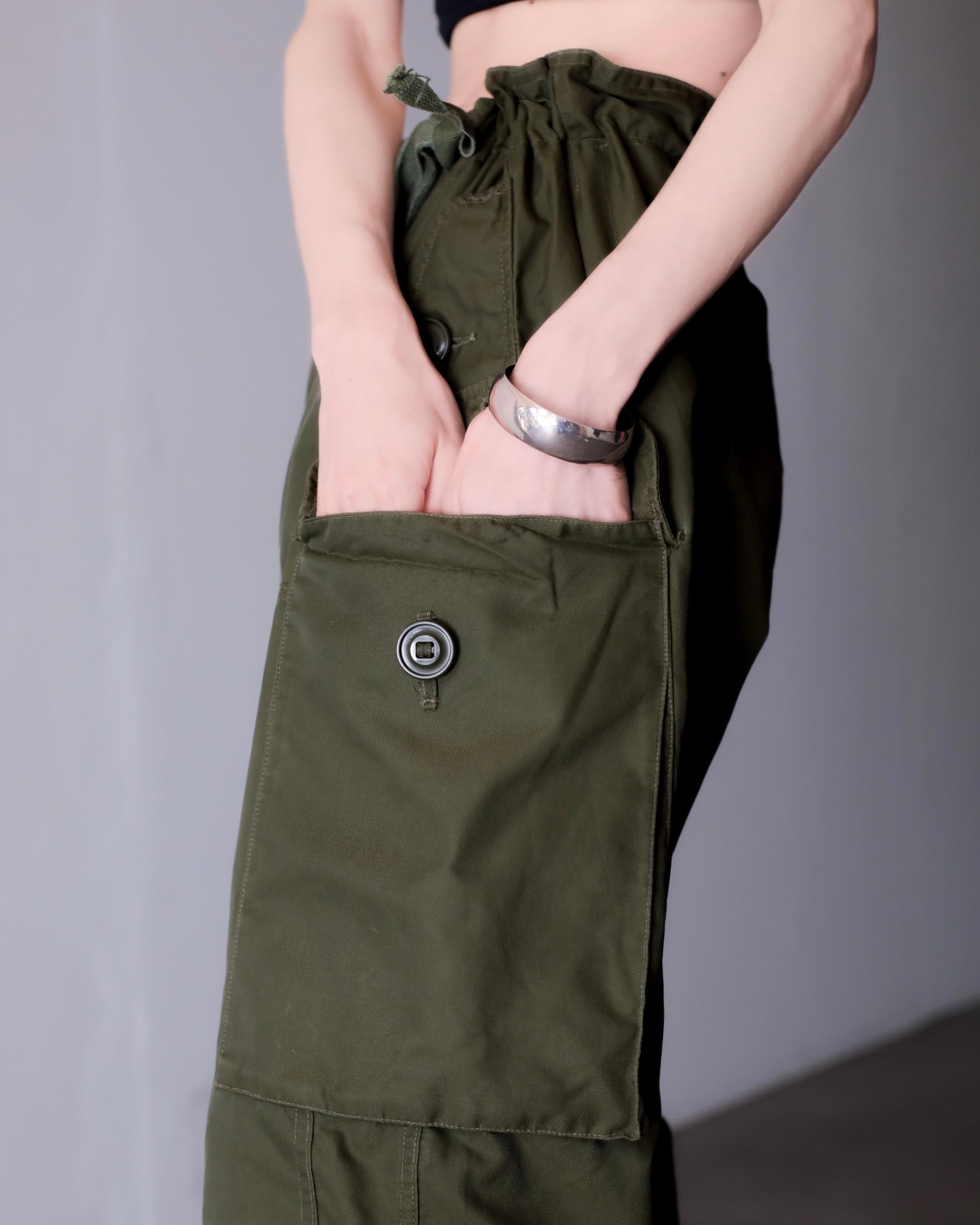 カナダ軍らしい大振りなスロットボタン(パラシュートボタン)が特徴的でタックインした時にもアクセントになります。