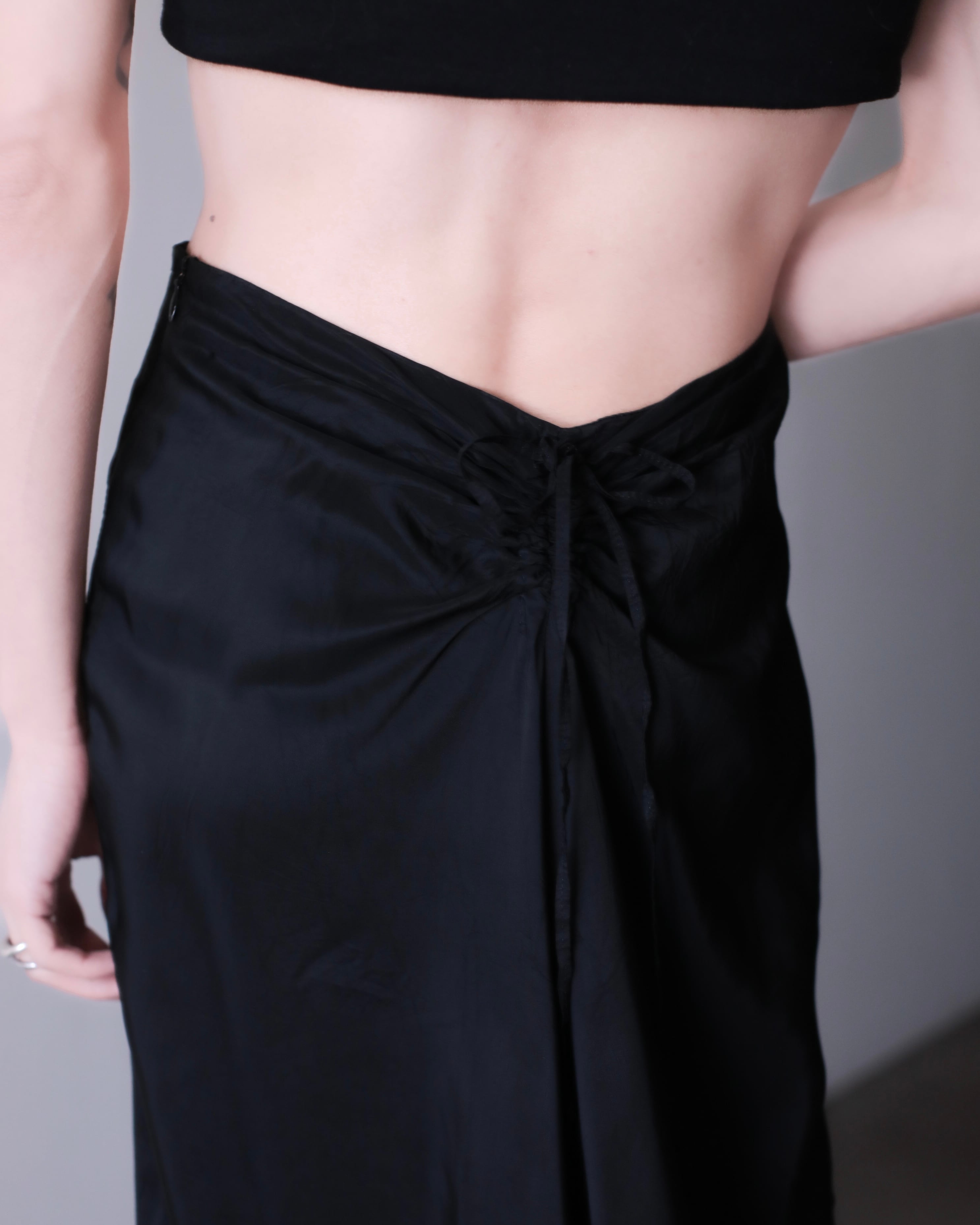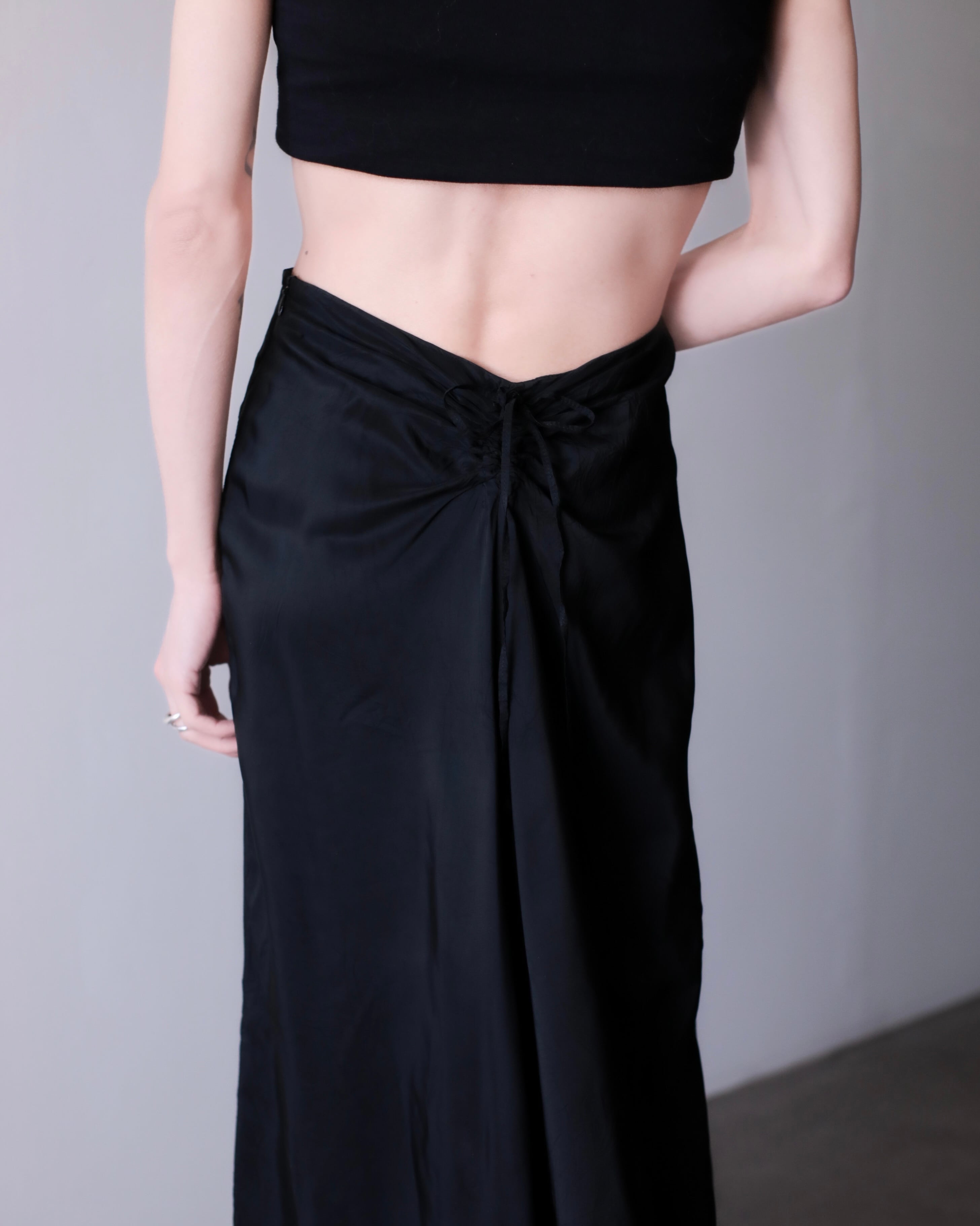 2000s euro back shirring lace up design maxi length maxi length skirt