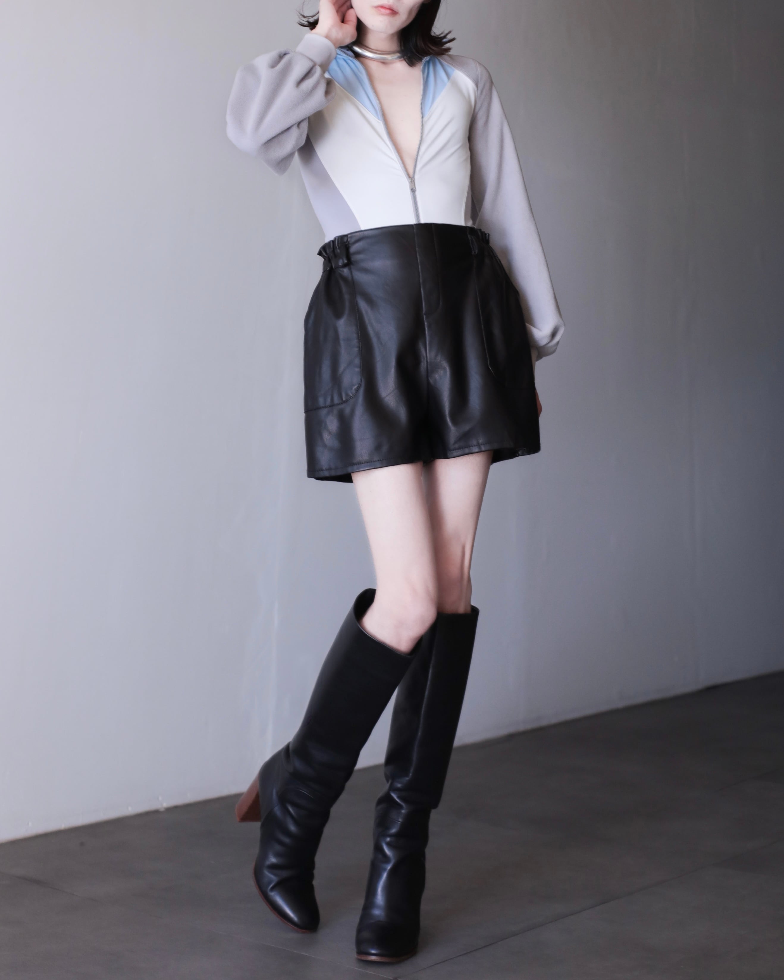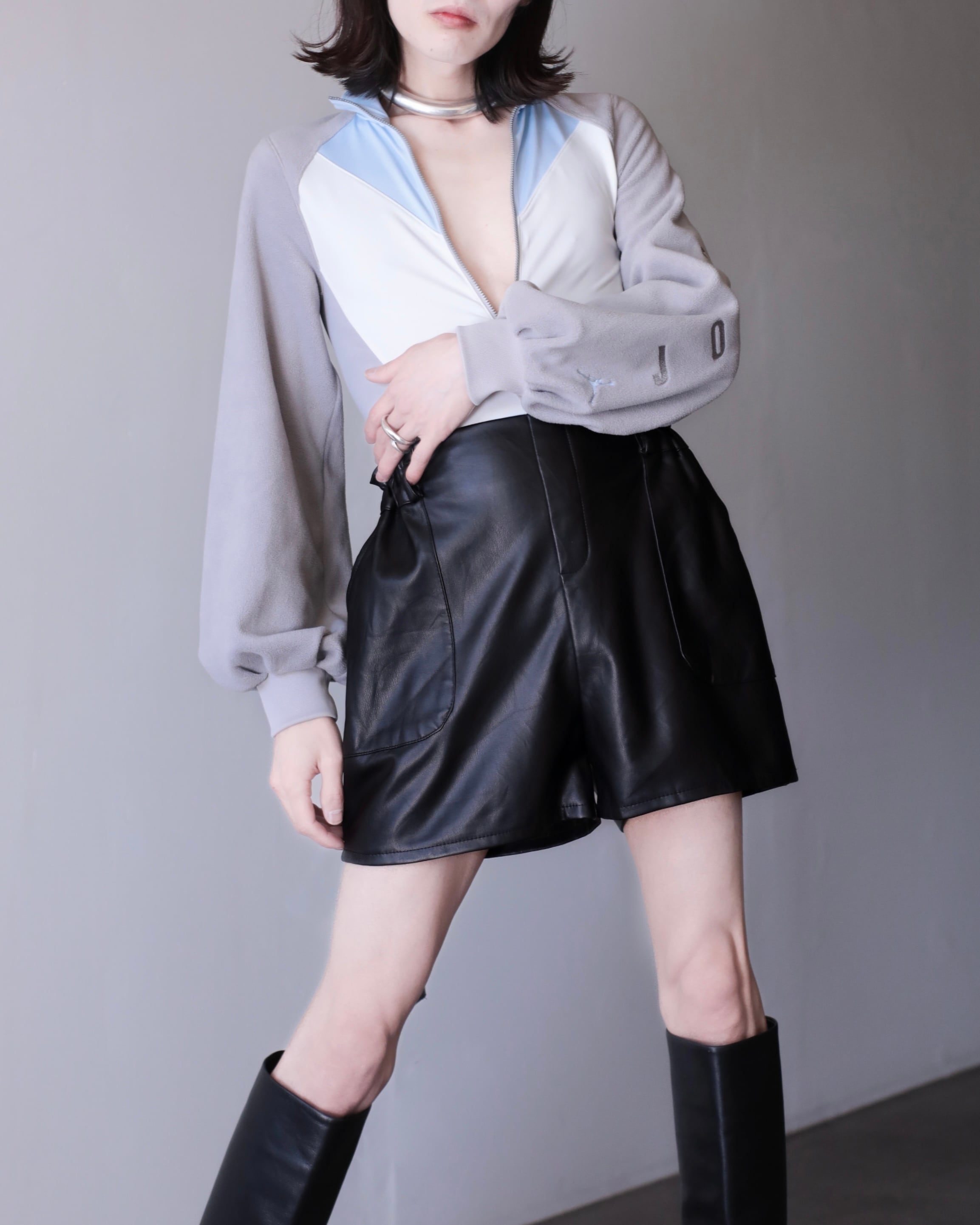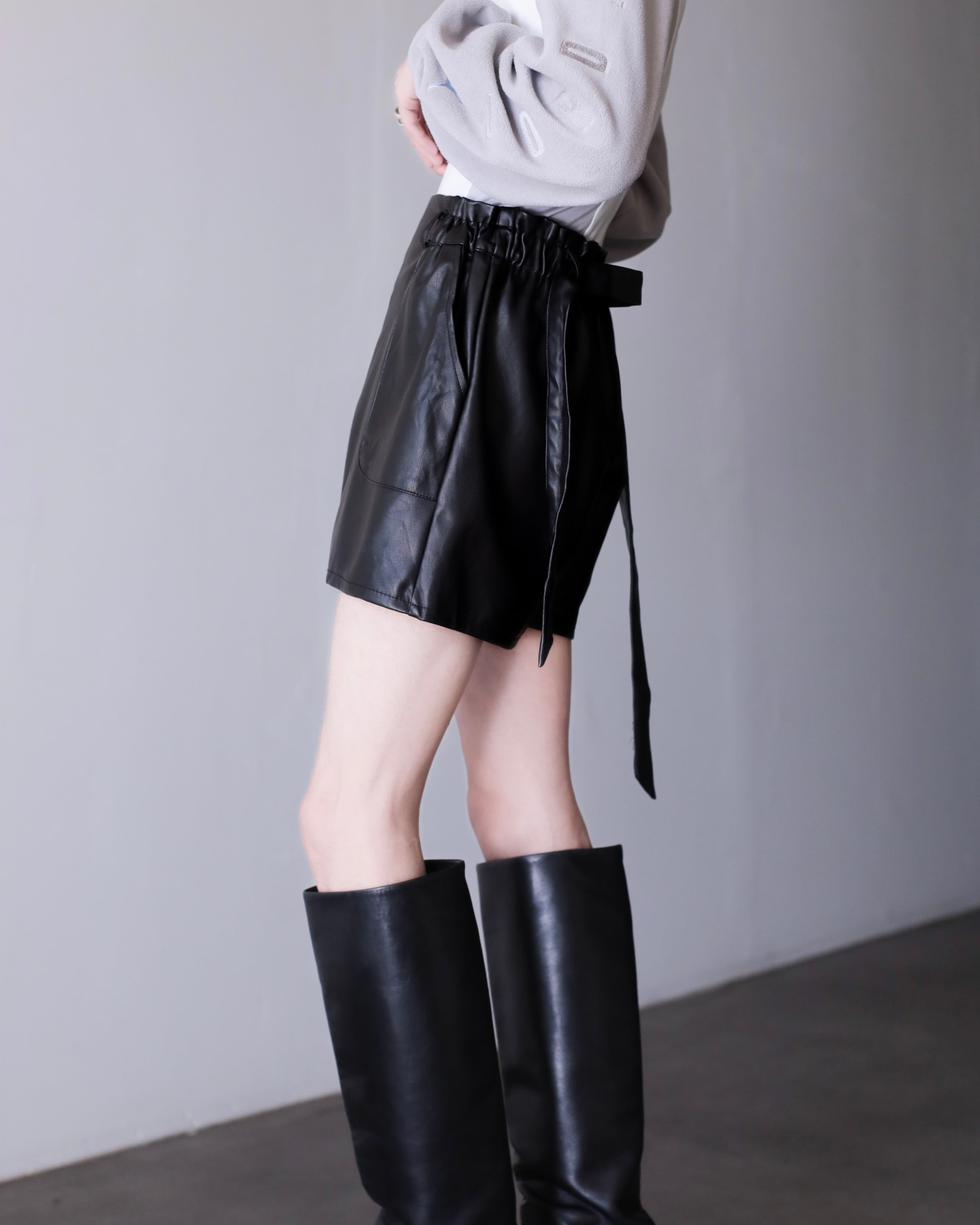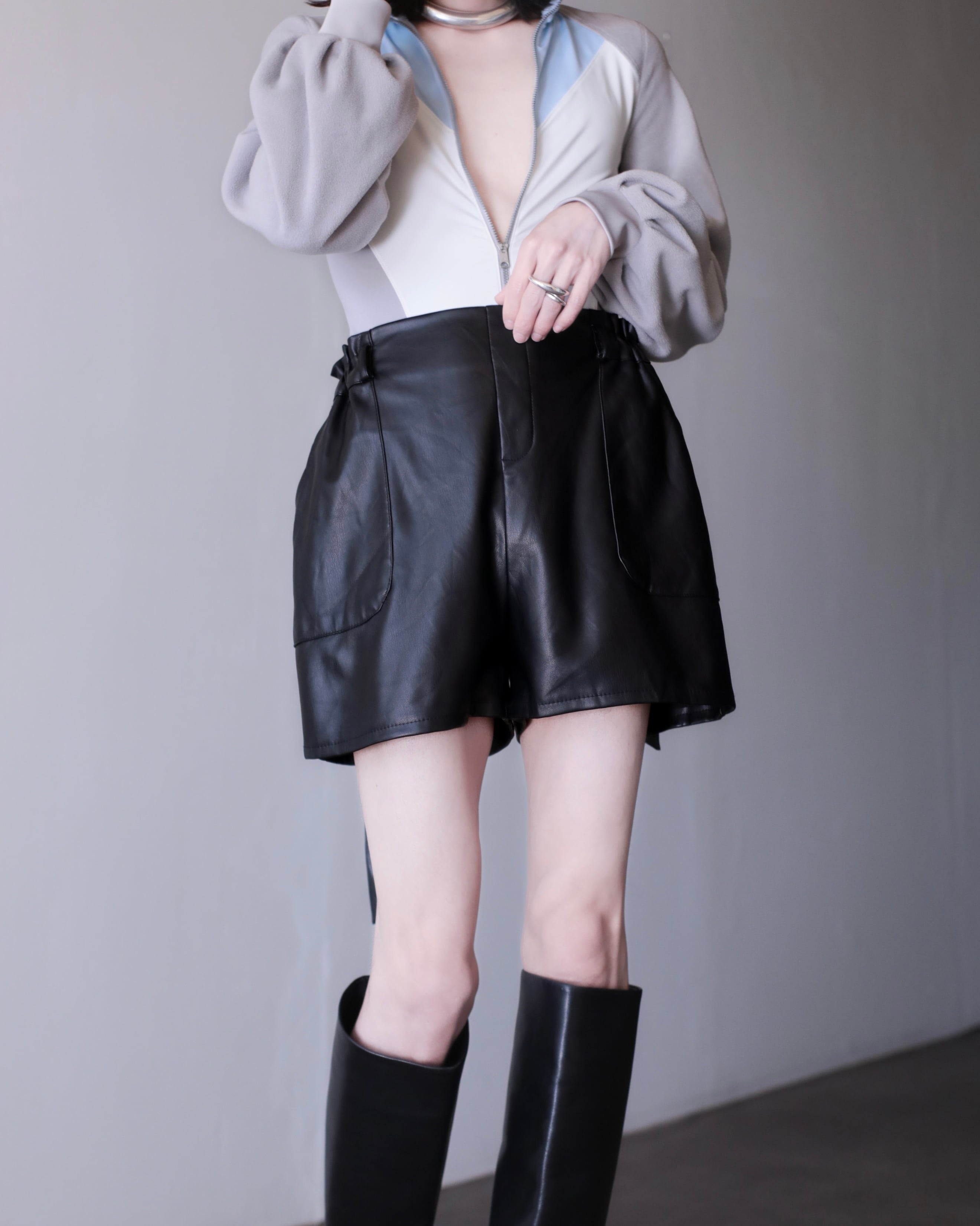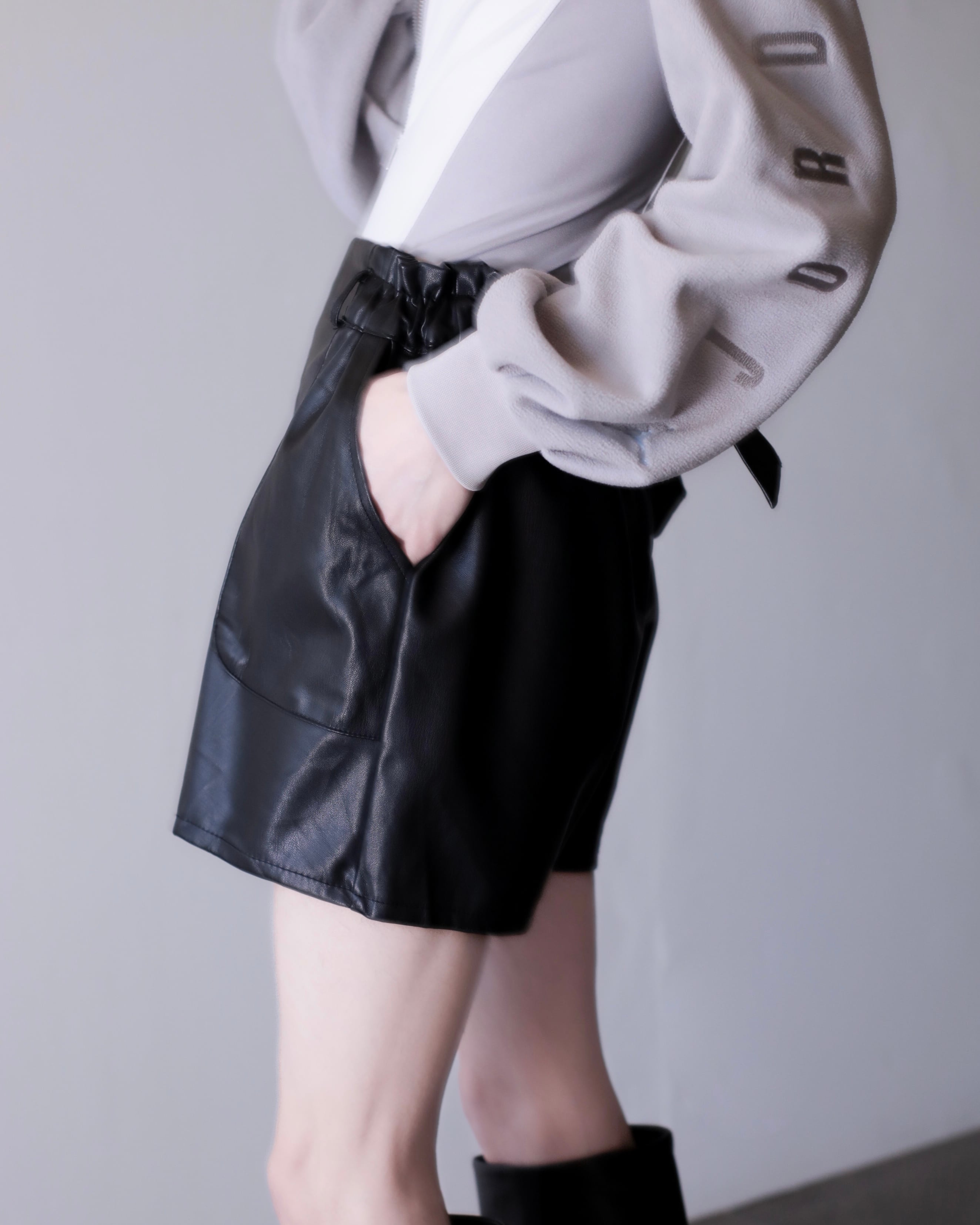 faux leather hi-waist wide baggy silhouette short pants