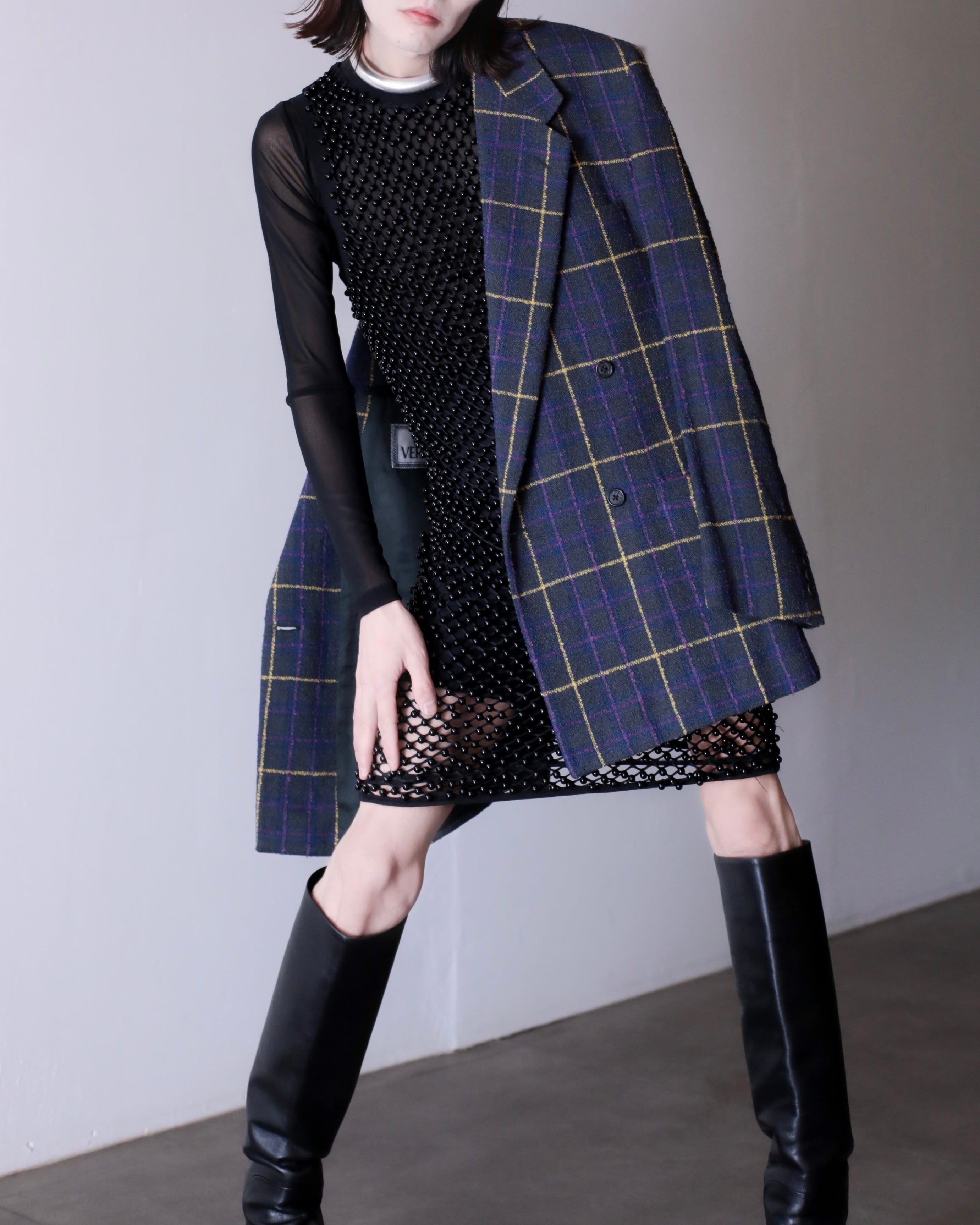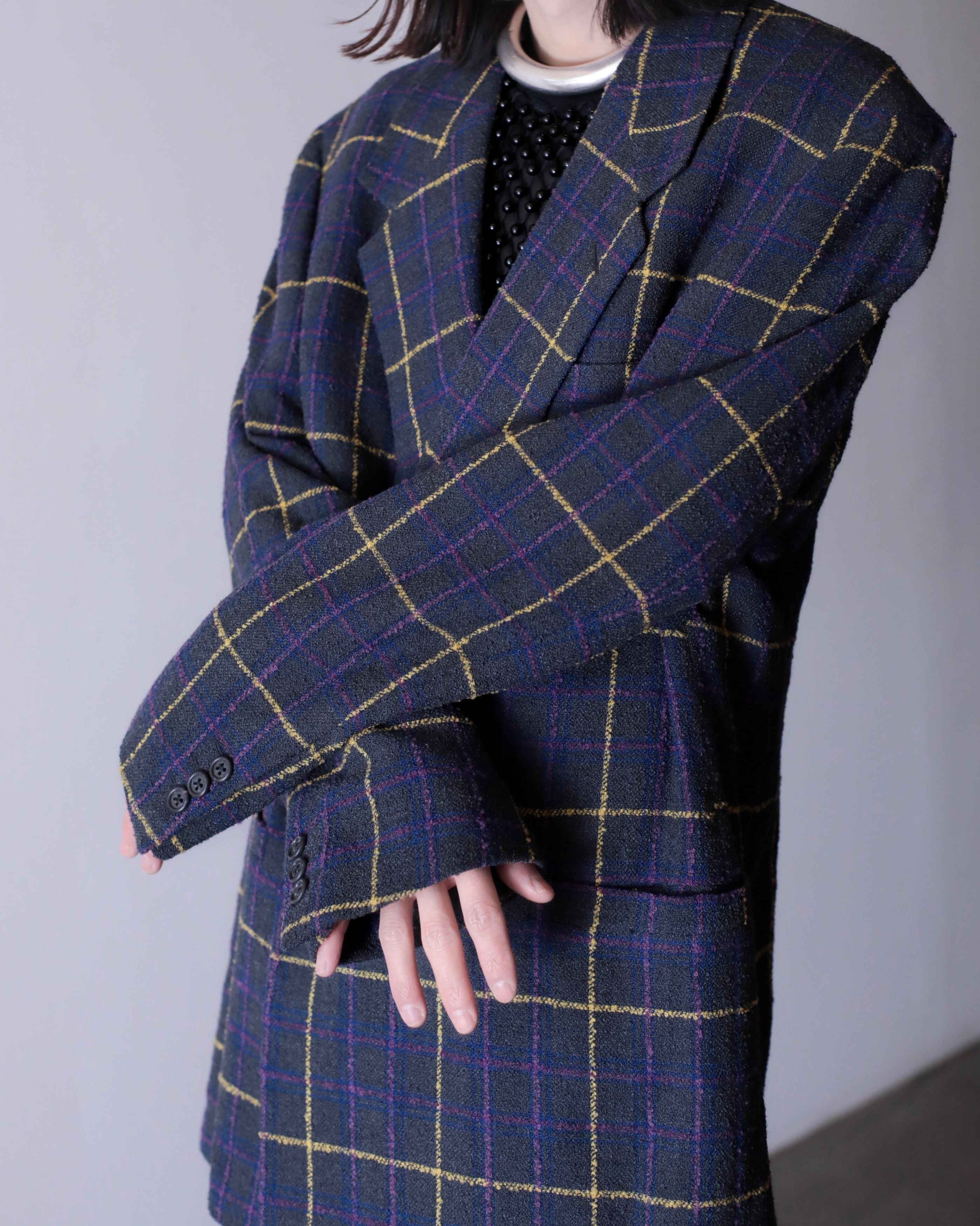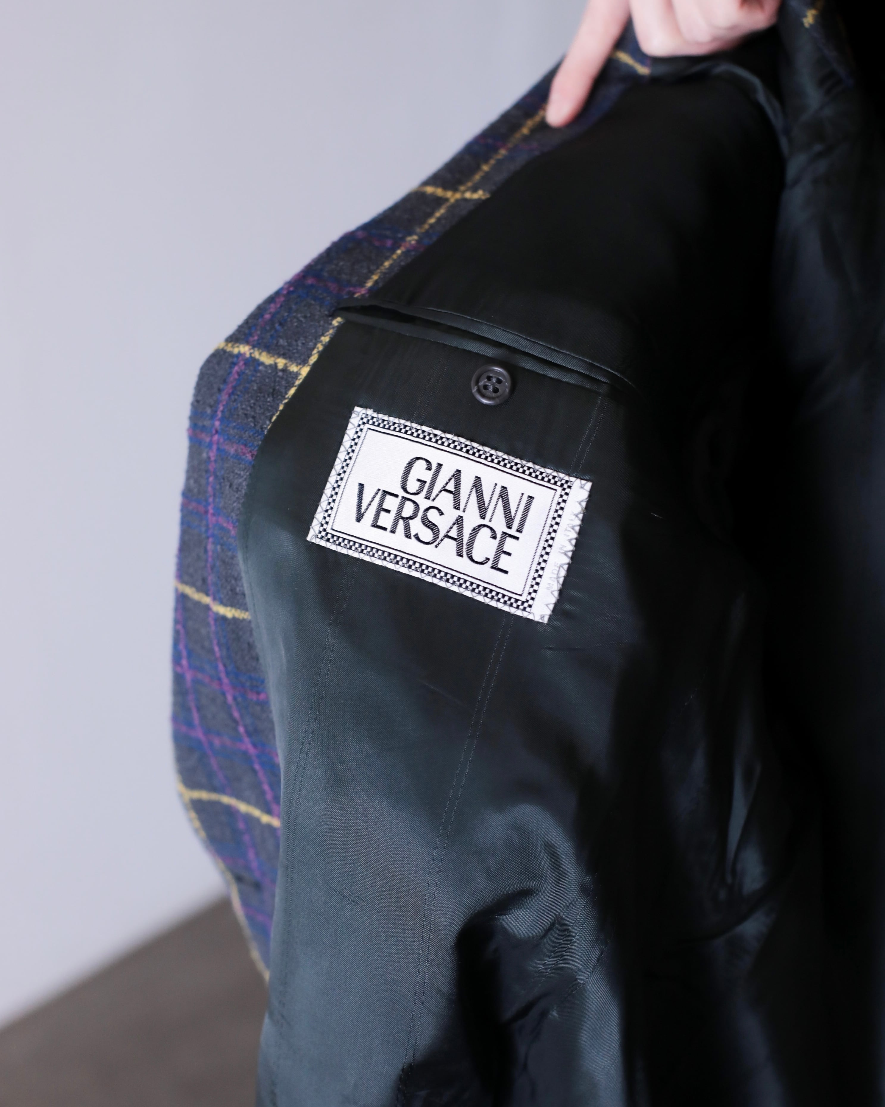 1990s GIANNI VERSACE check design double breasted tailored jacket Made In Italy