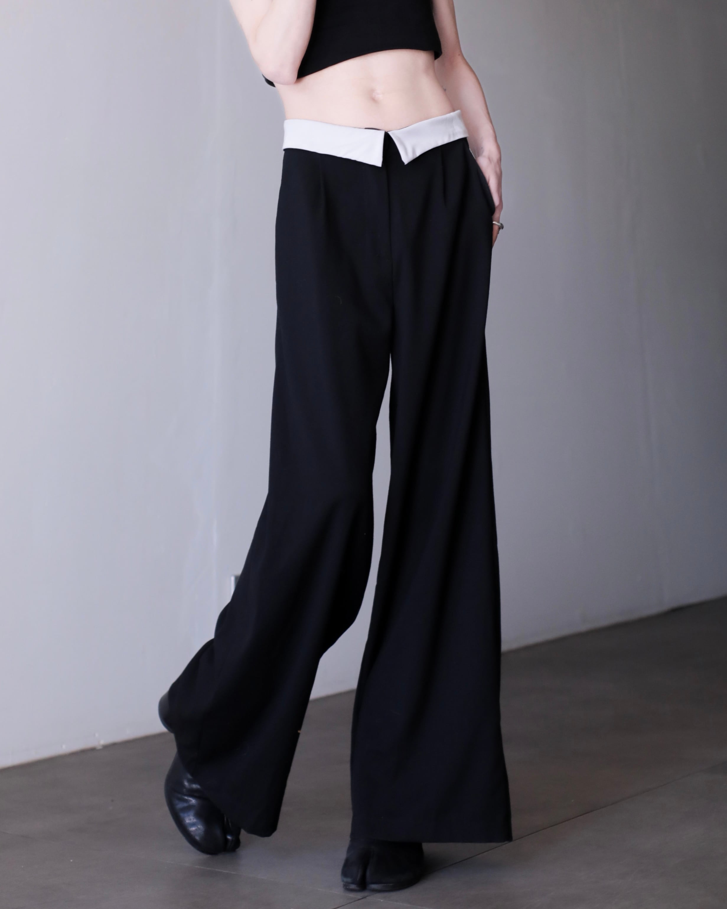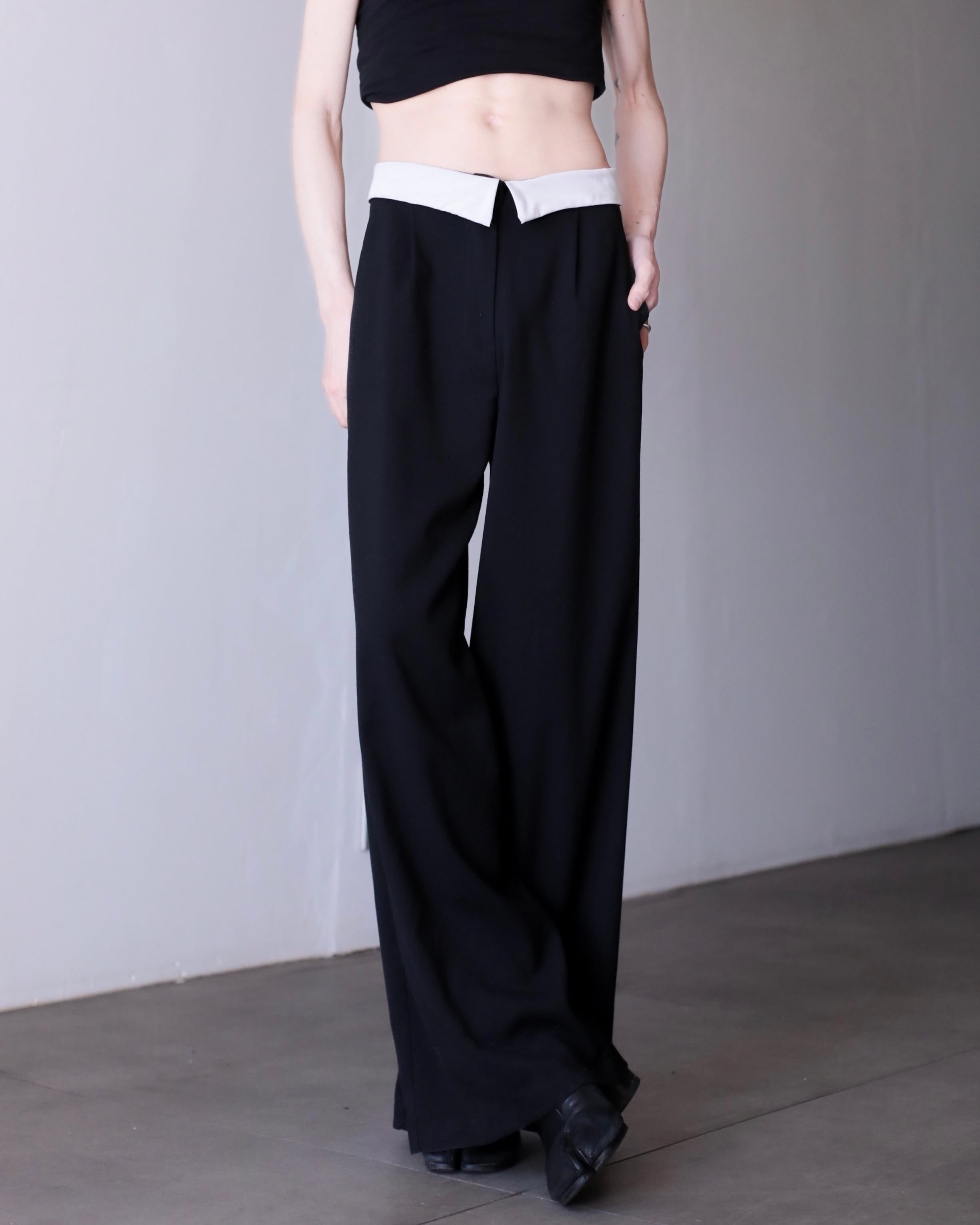 1990s~ bi-color design tuck wide straight slacks Made In Italy