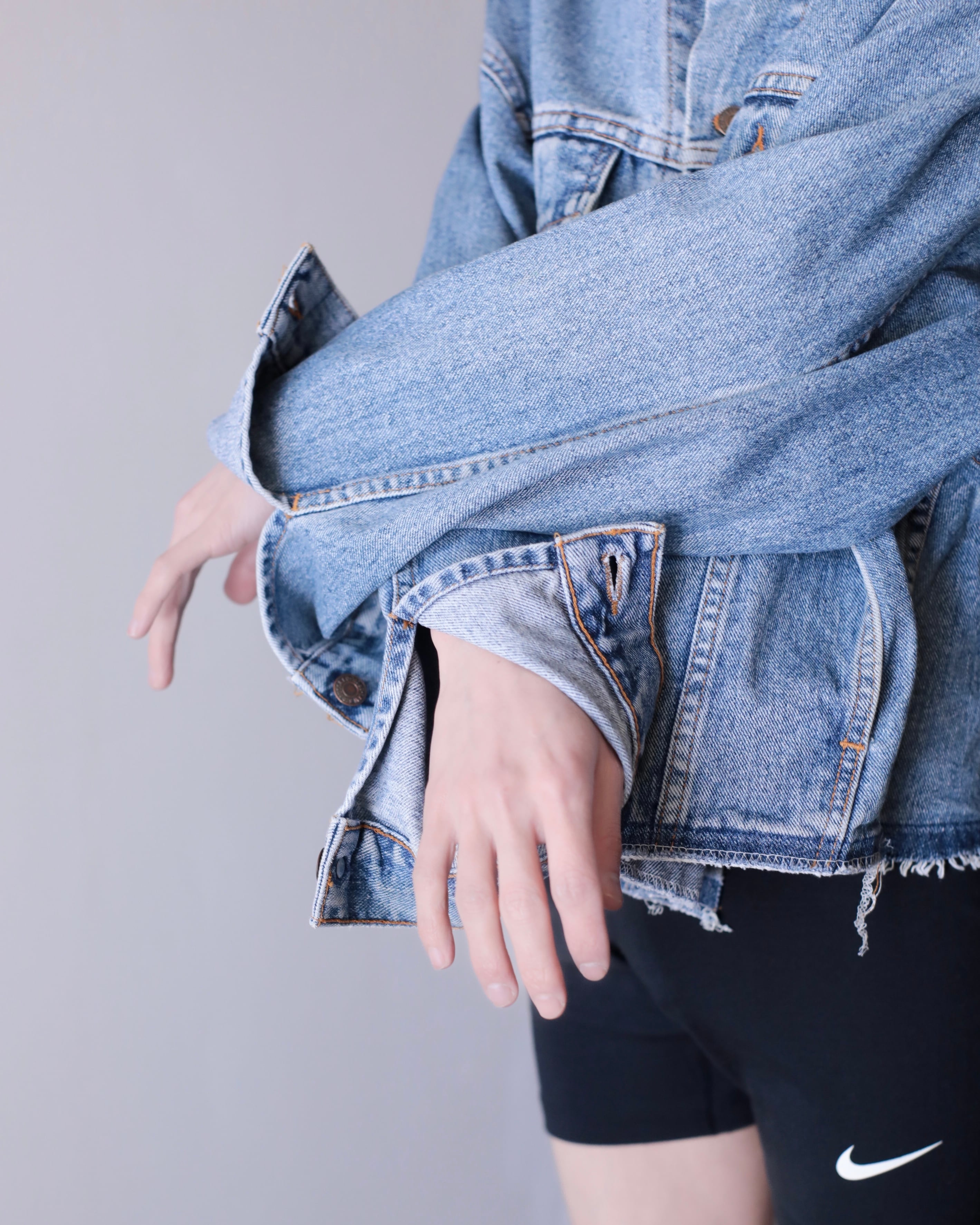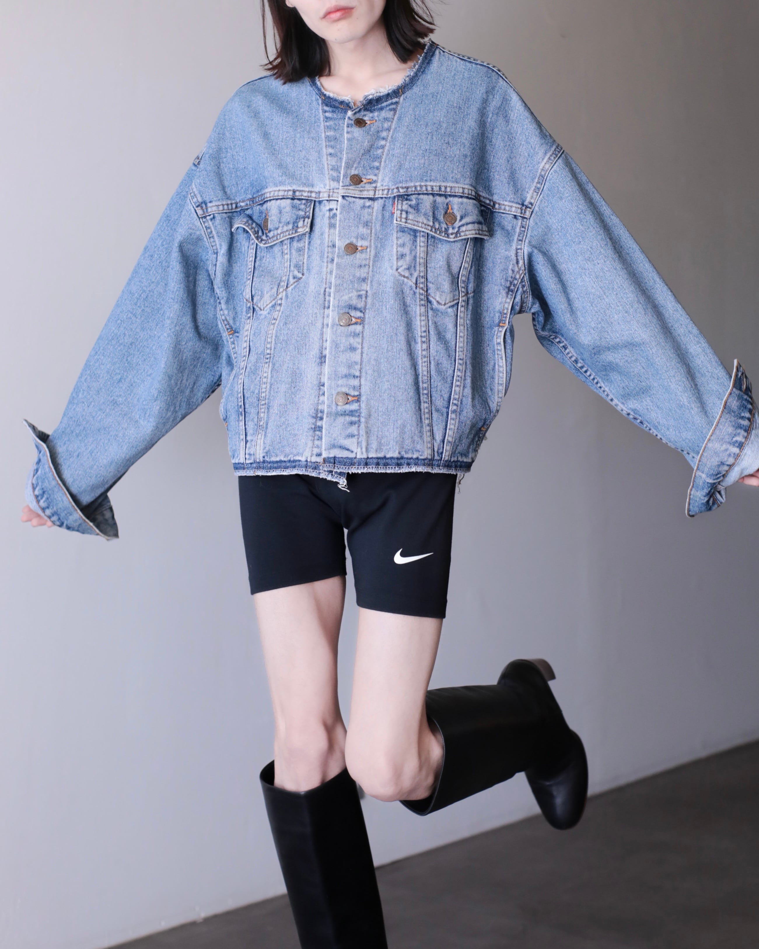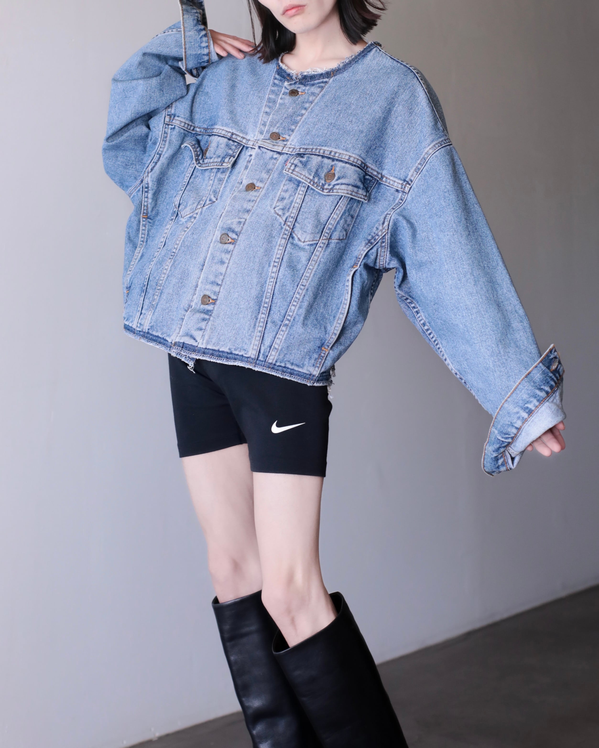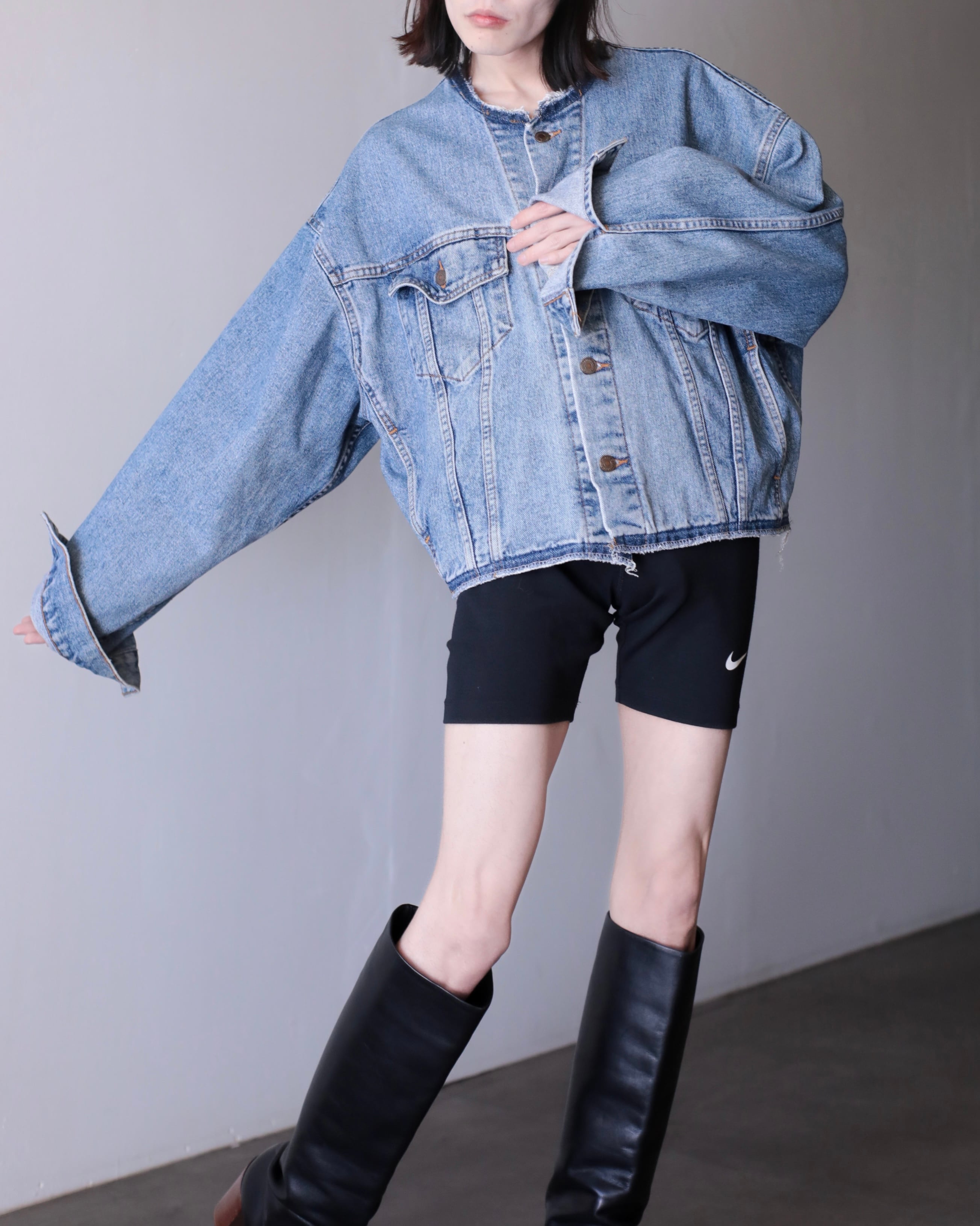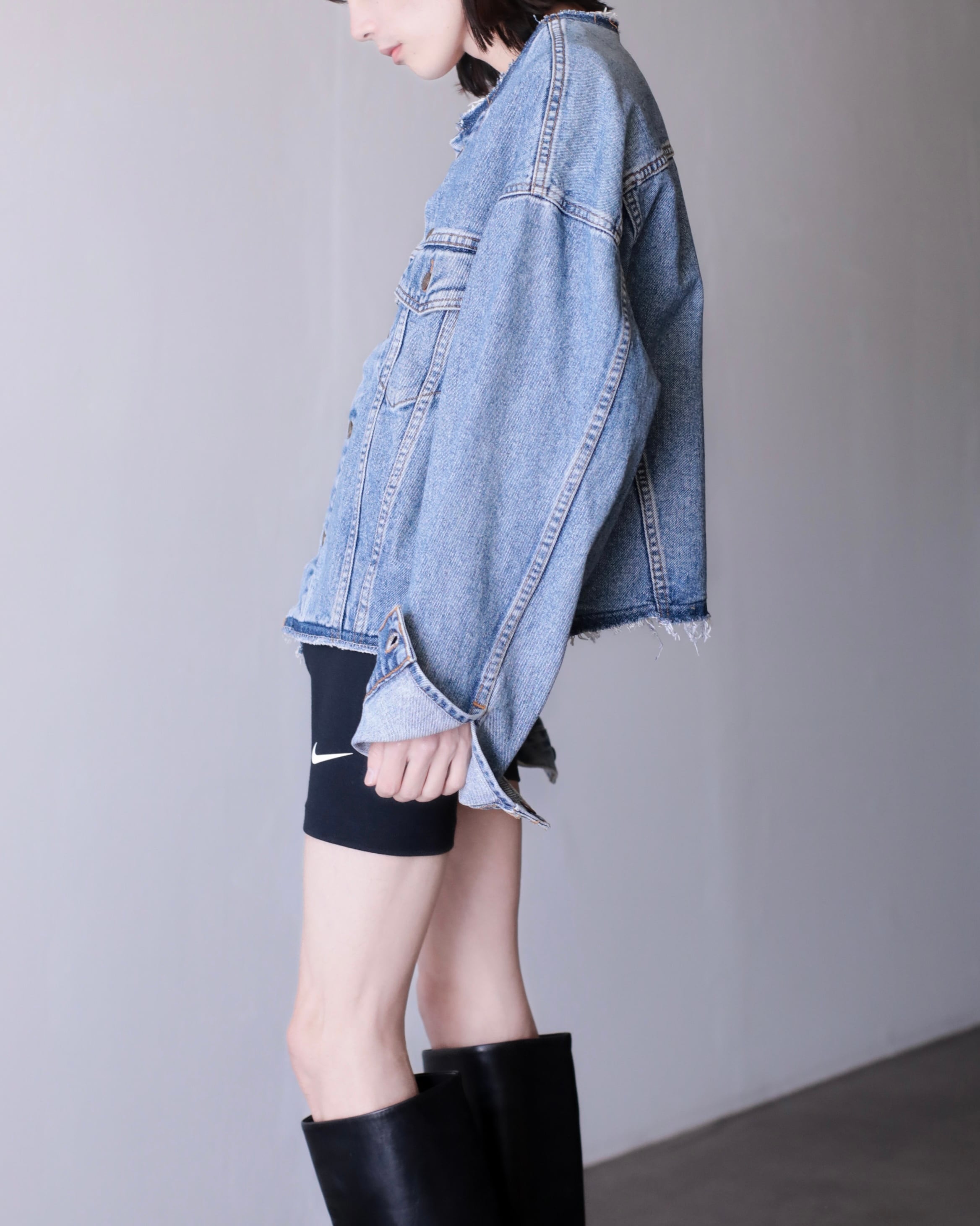 現代ファッションに正にハマる短丈ワイドシルエットの此方は今最も輝きを放っているデニムジャケットのように感じます。