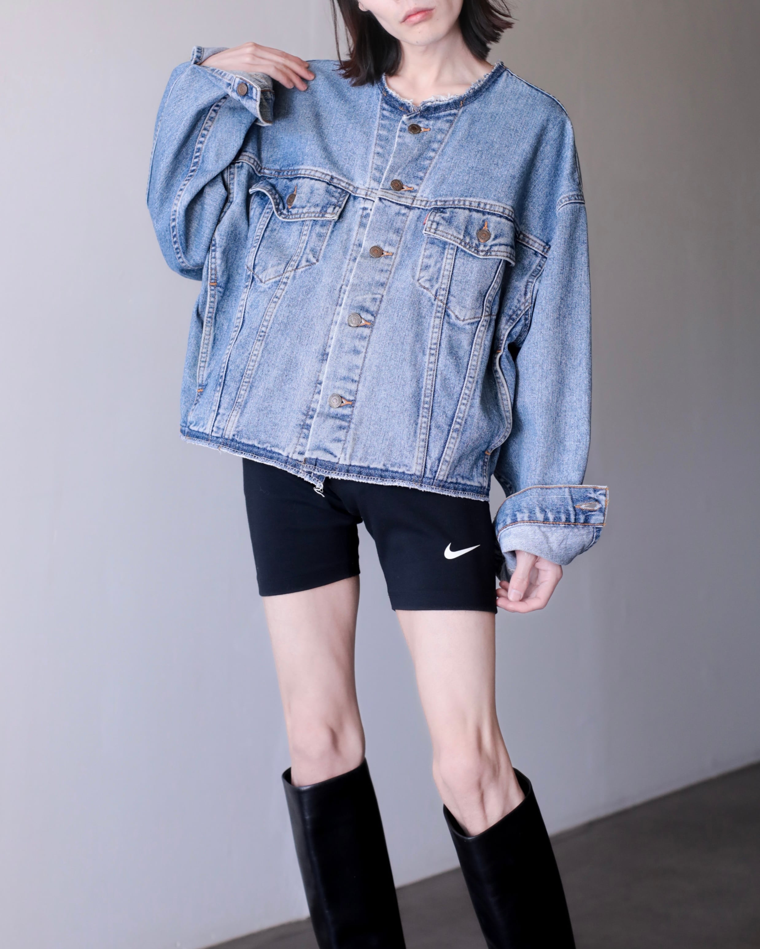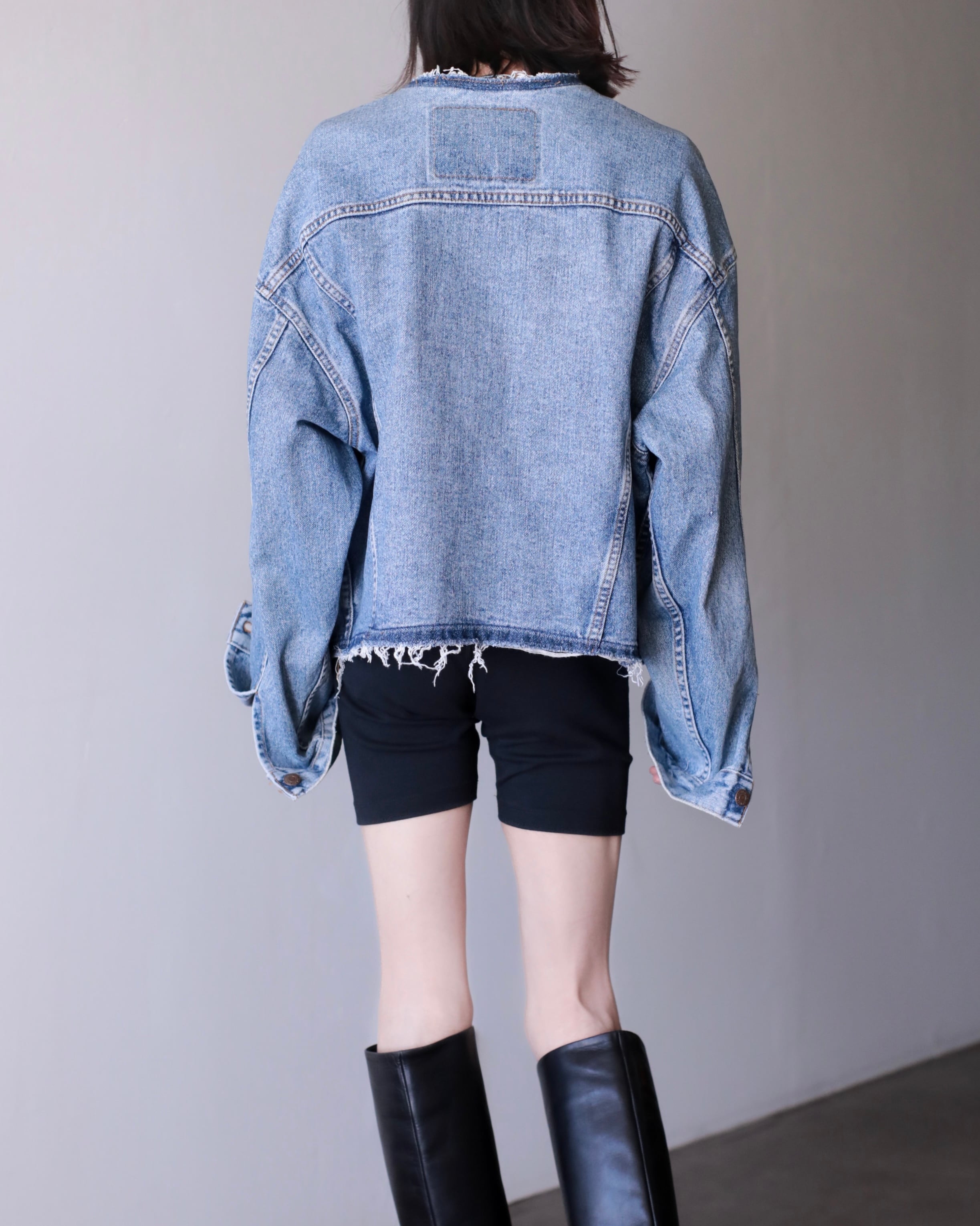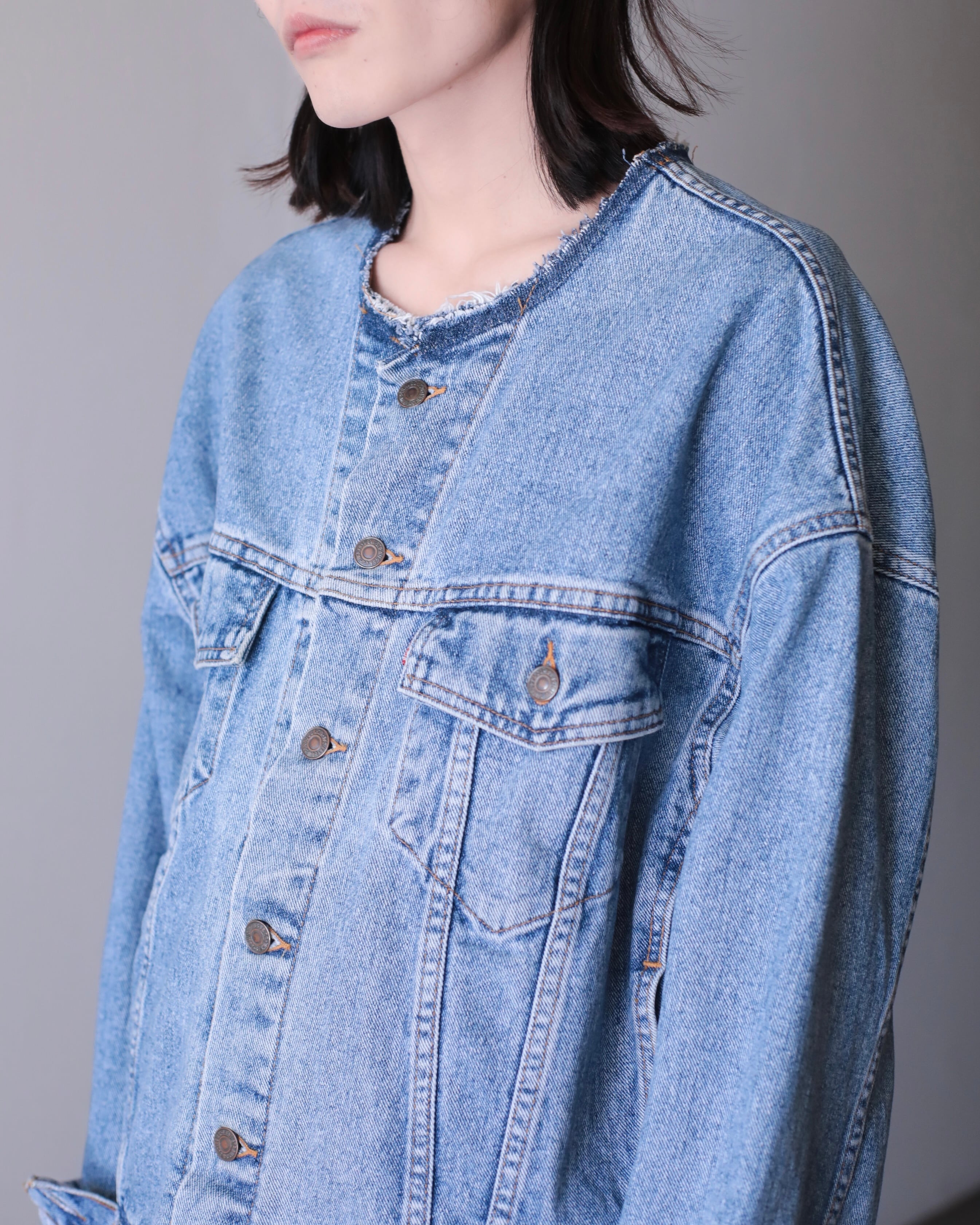 ノーカラーデニムジャケットになります。