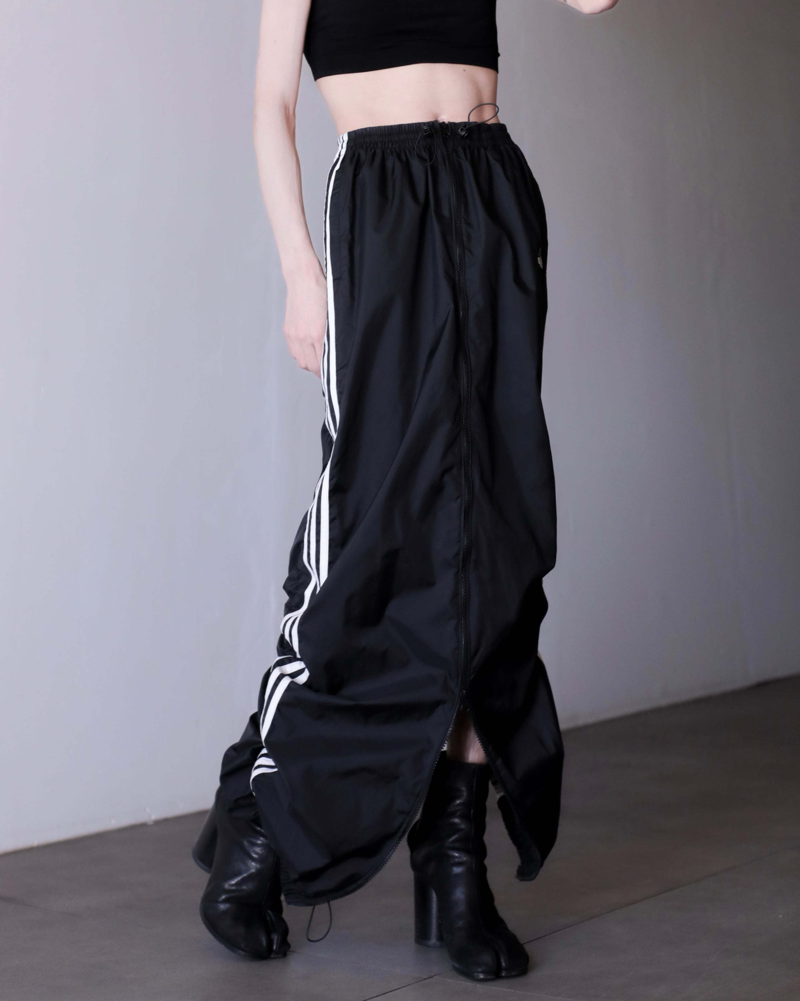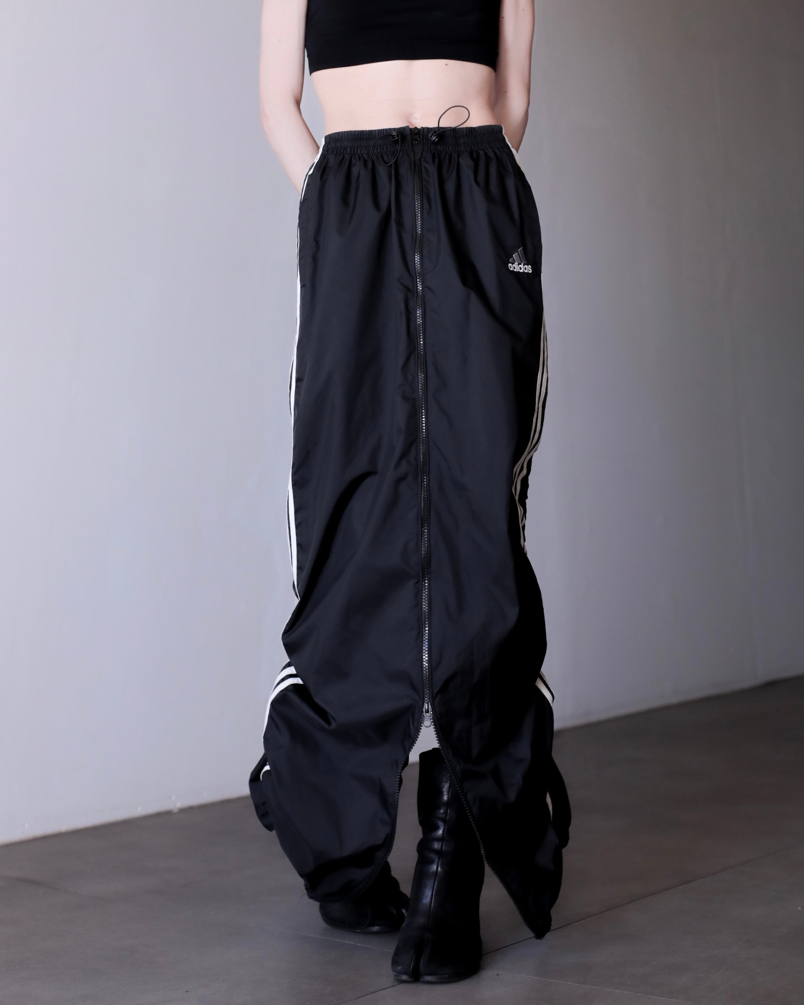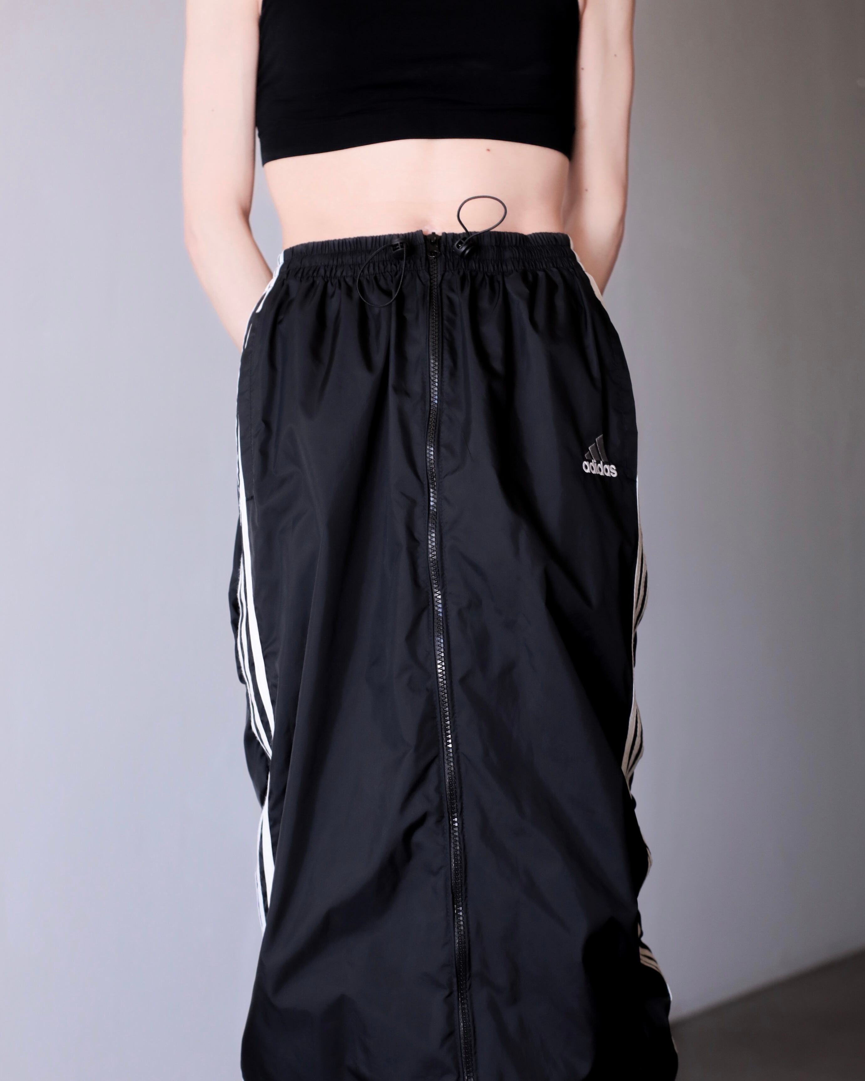 1990s adidas nylon center zip tech drawstring design maxi skirt