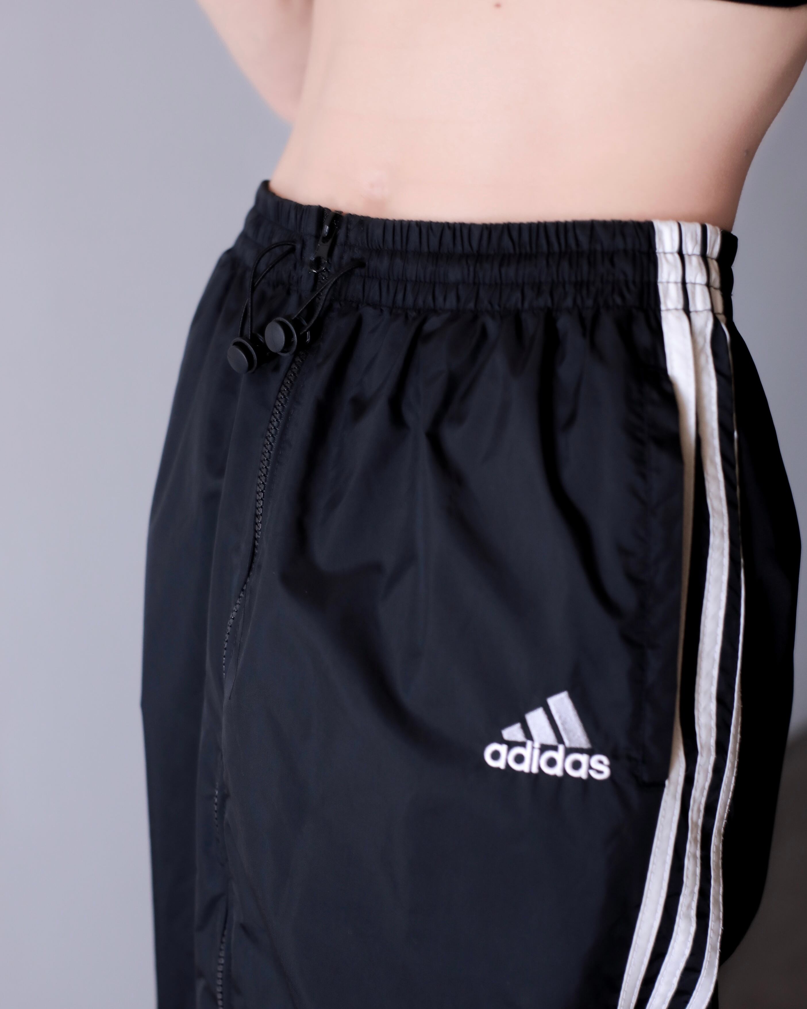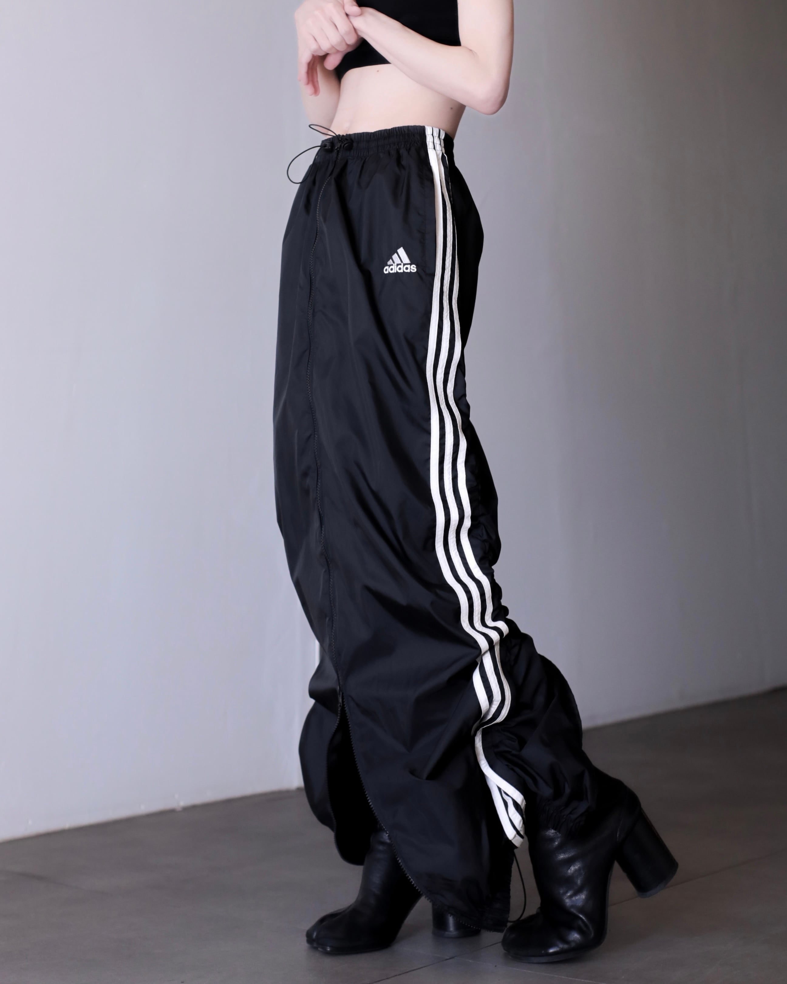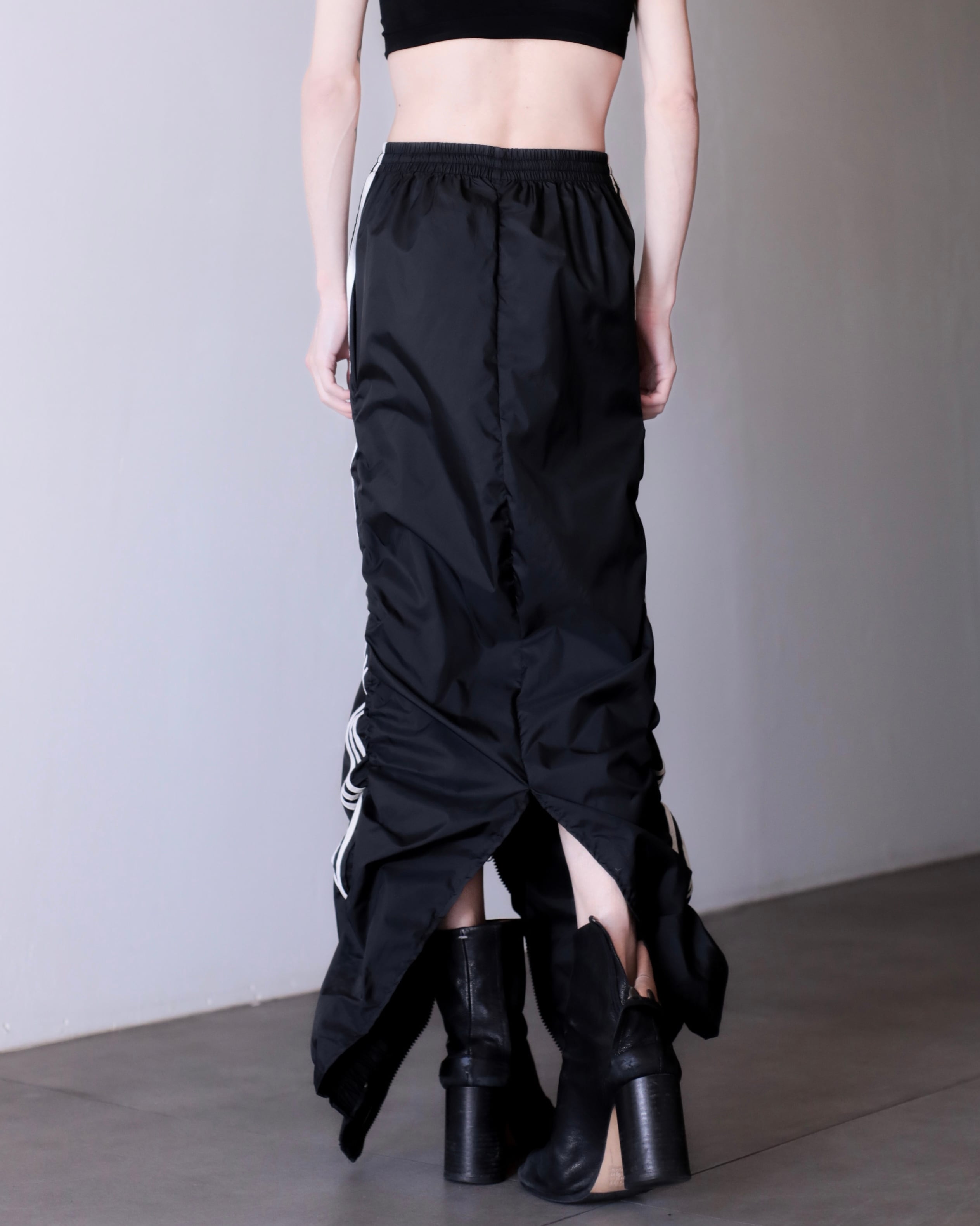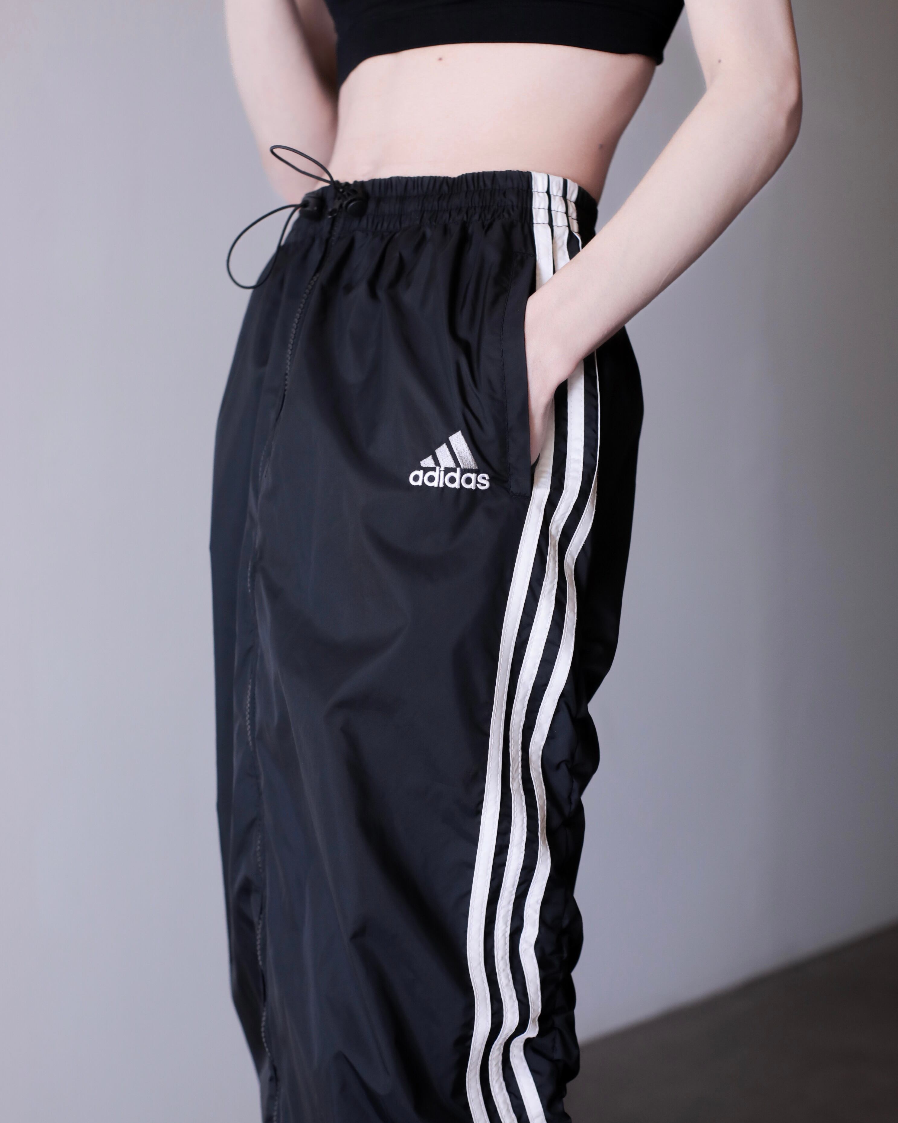 1990s adidas nylon center zip tech drawstring design maxi skirt