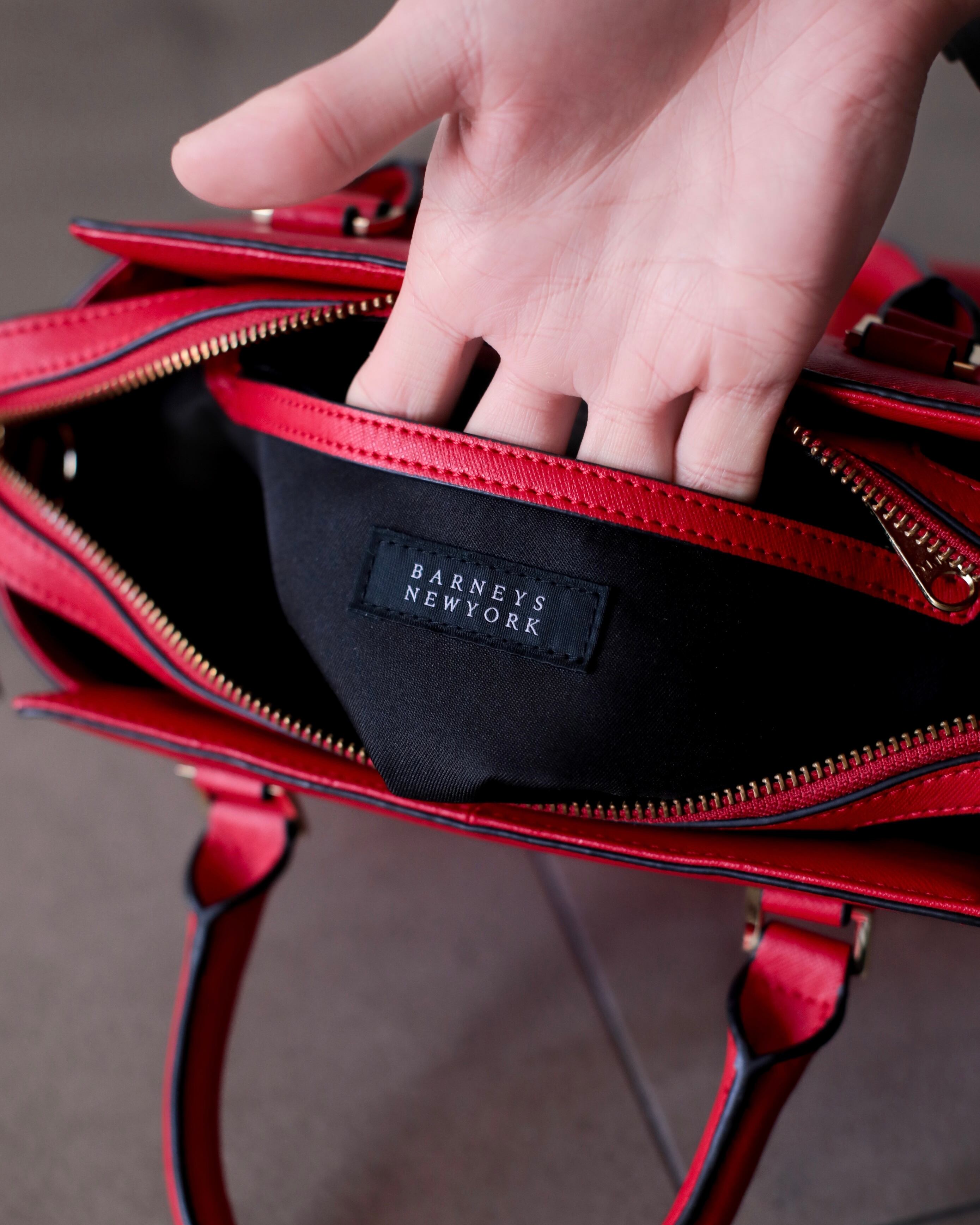 BARNEYS NEW YORK leather 2way hand bag vivit red color