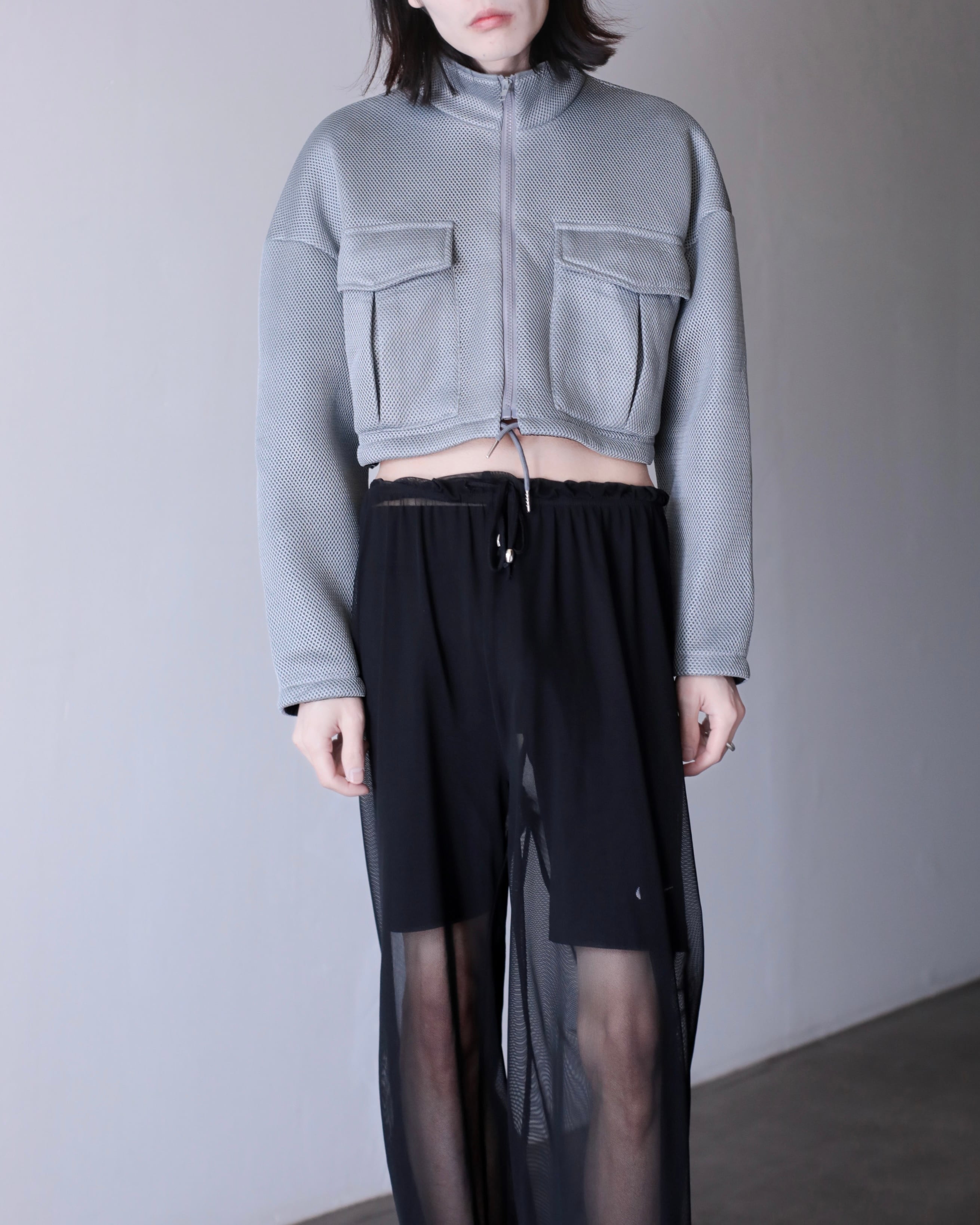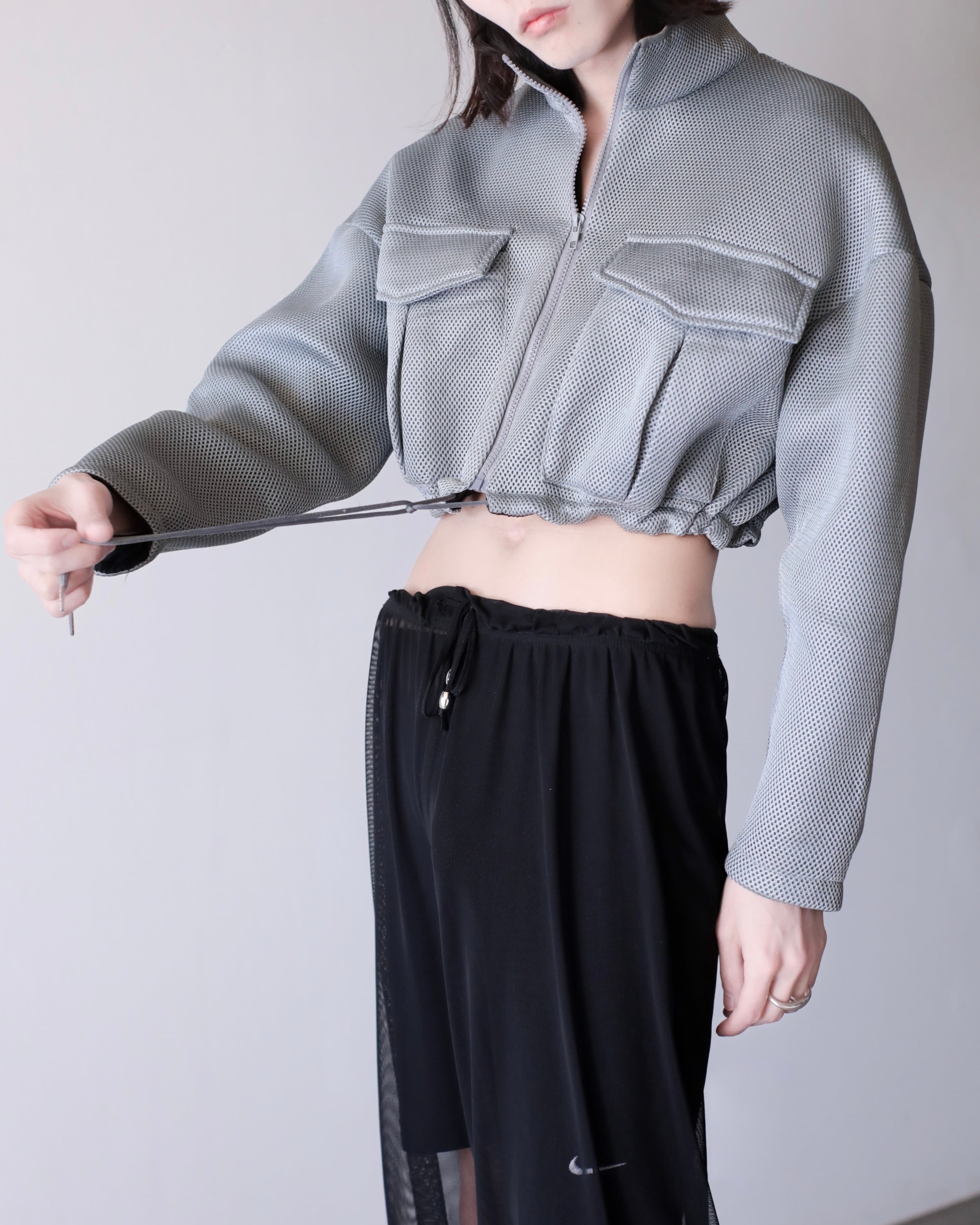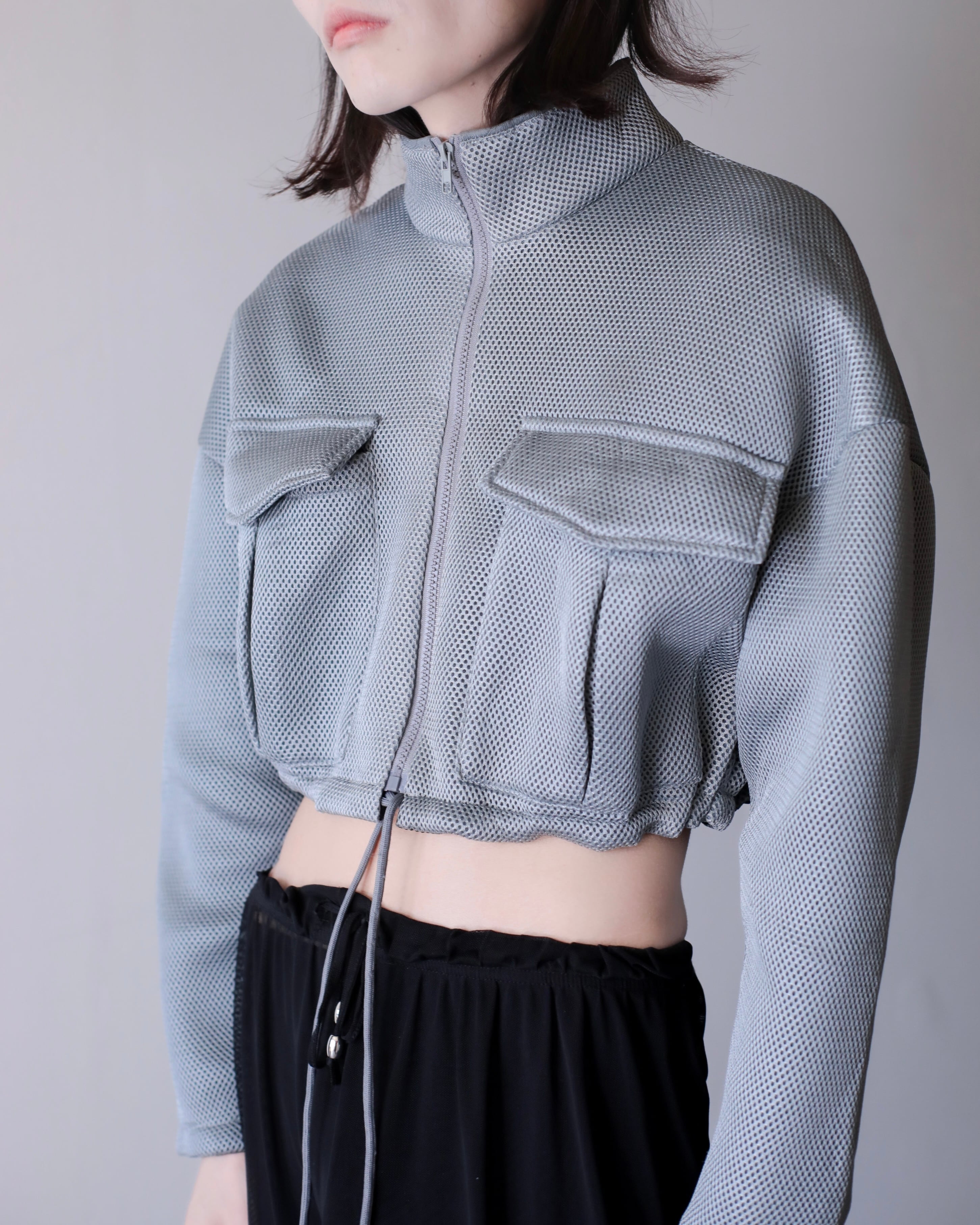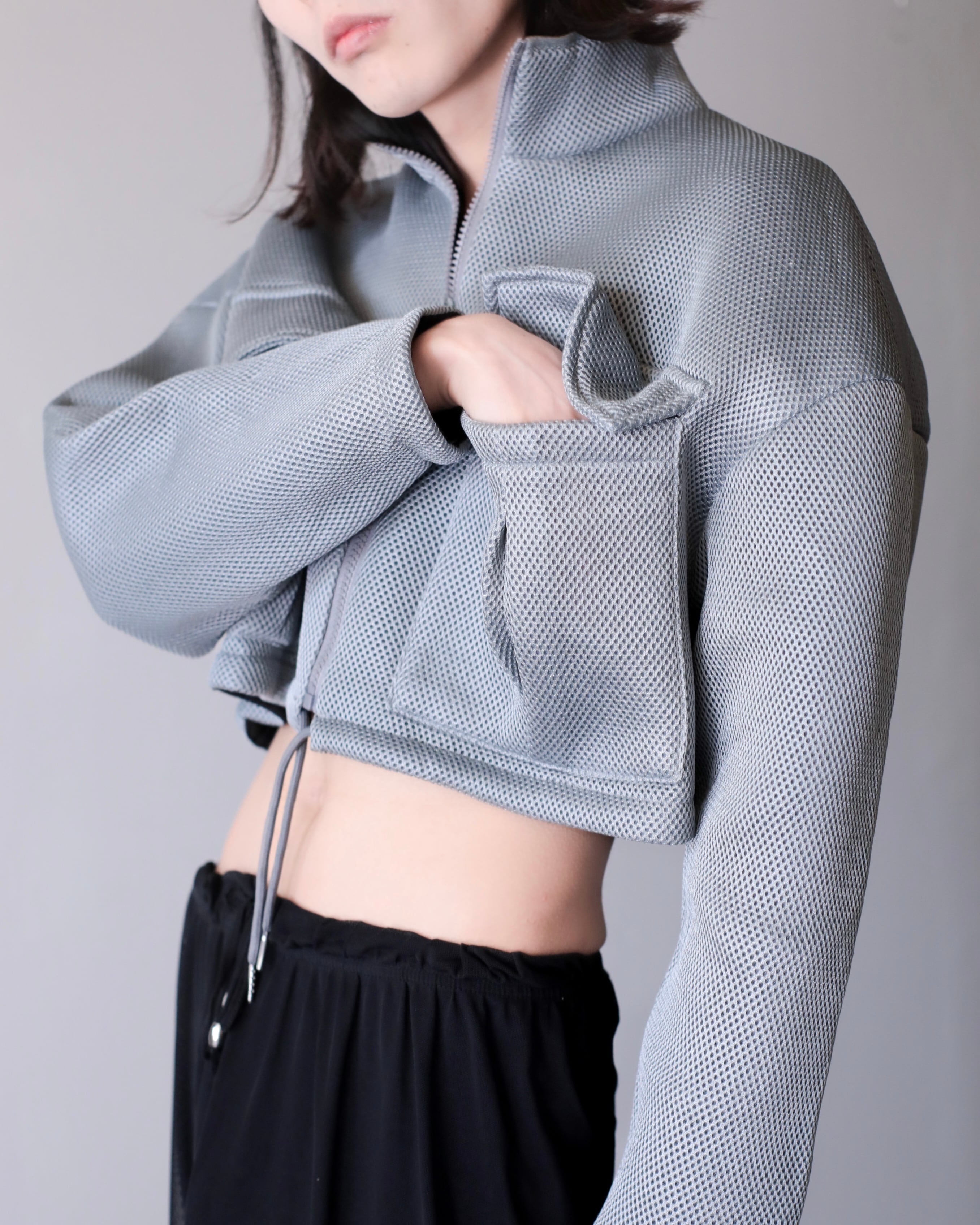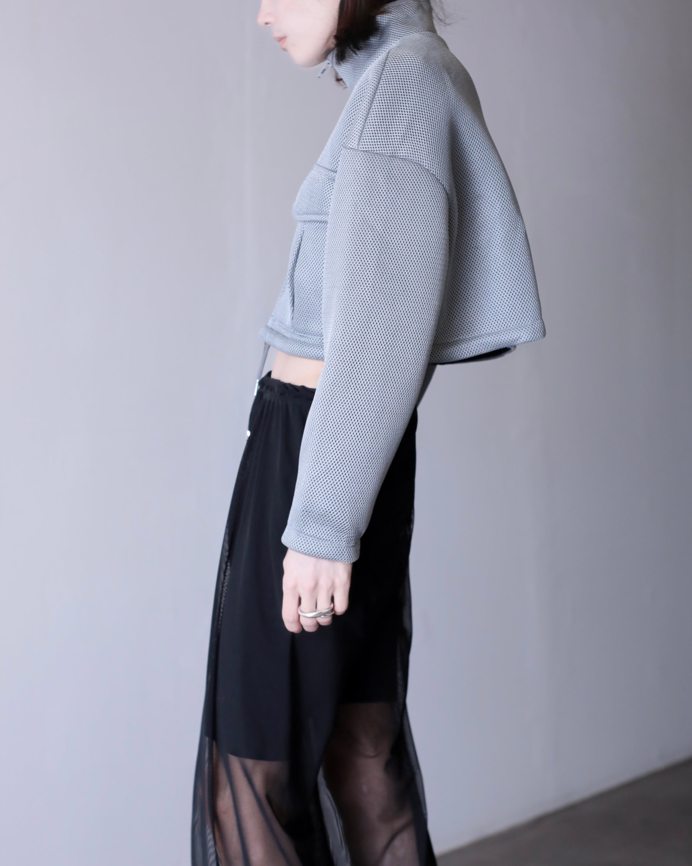 mesh bonding fabric short & wide silhouette hi-neck blouson