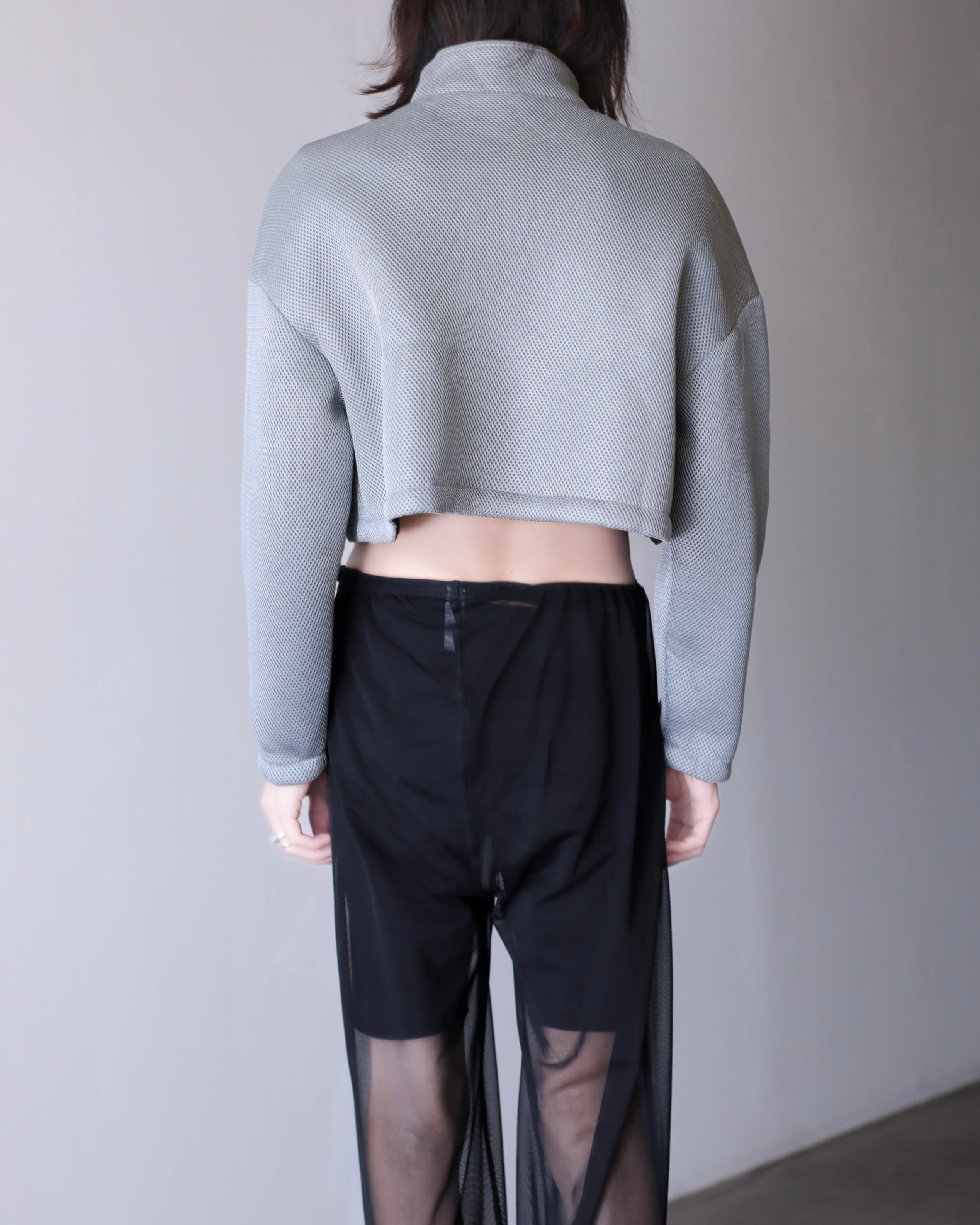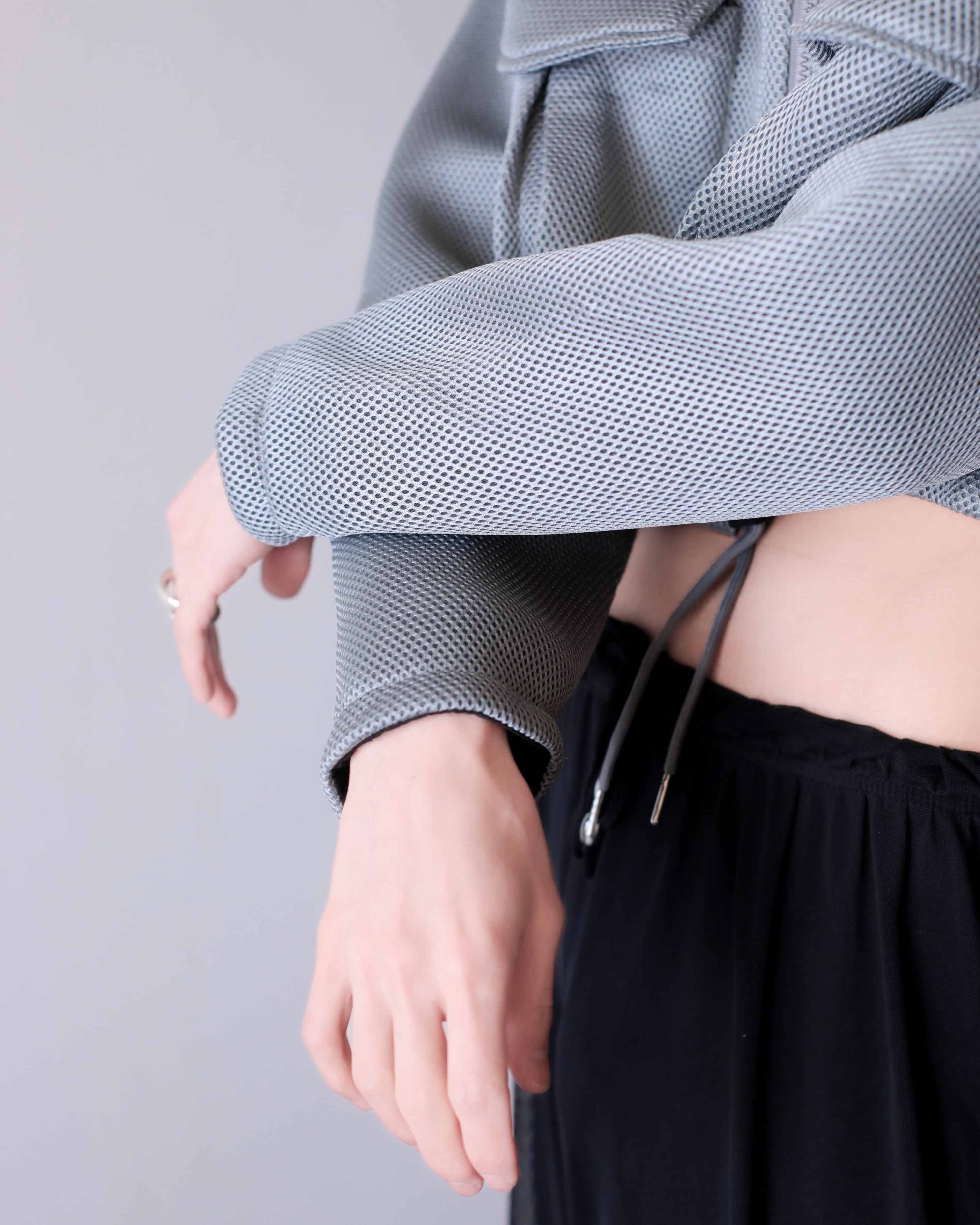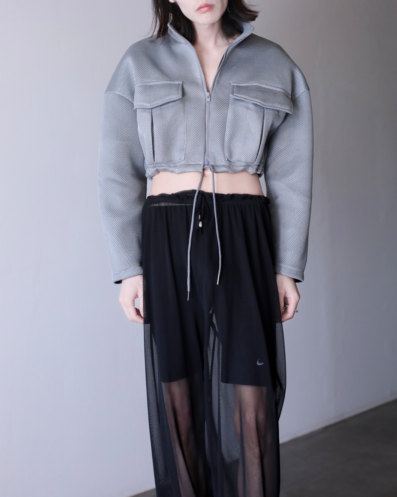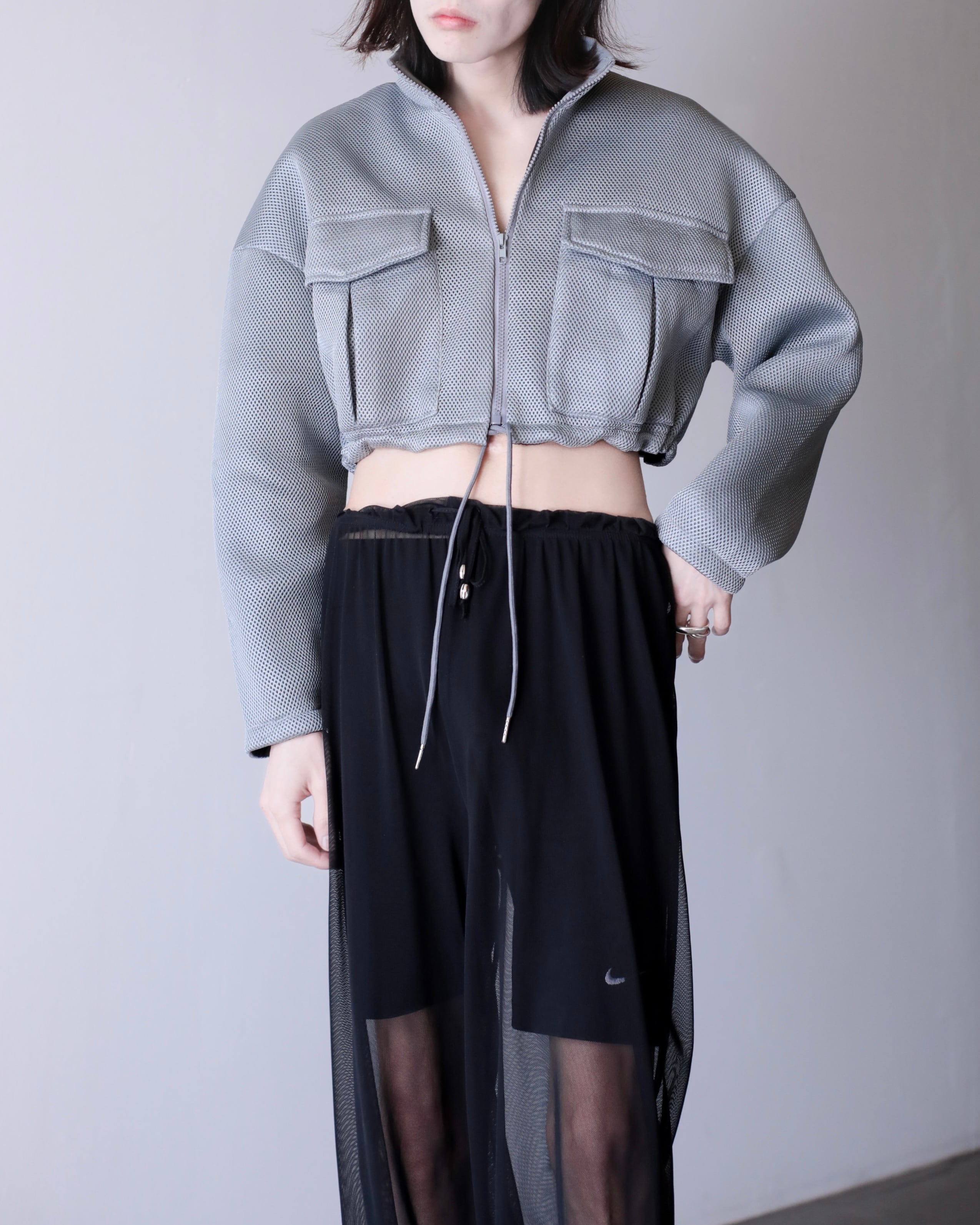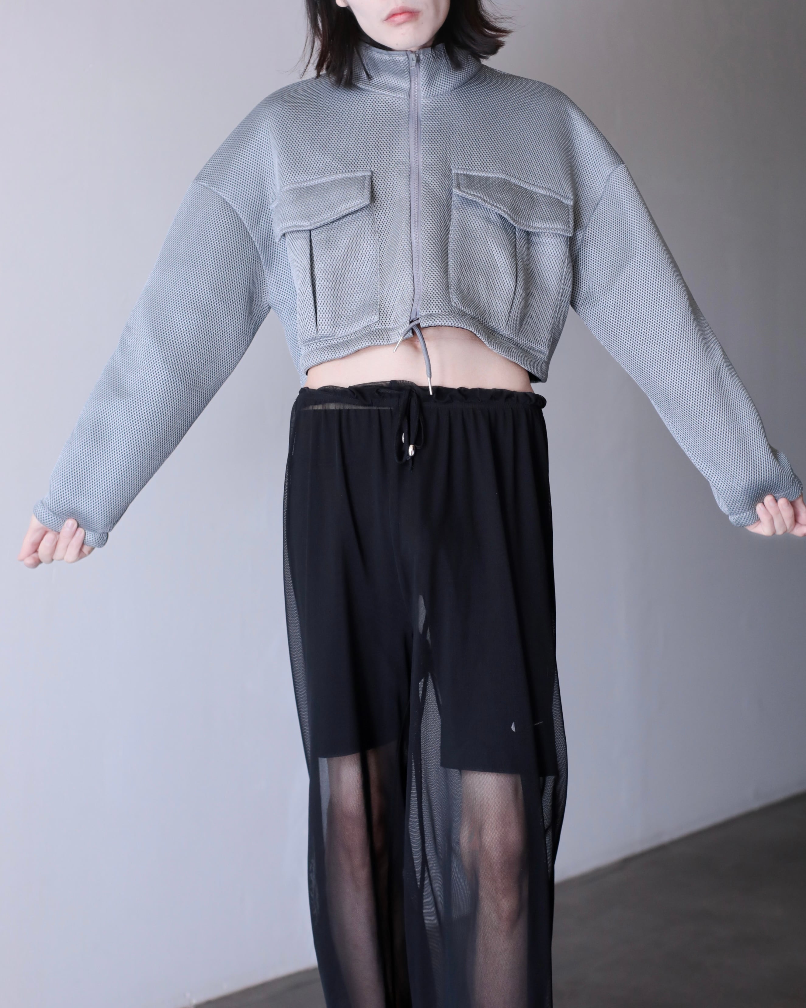 mesh bonding fabric short & wide silhouette hi-neck blouson