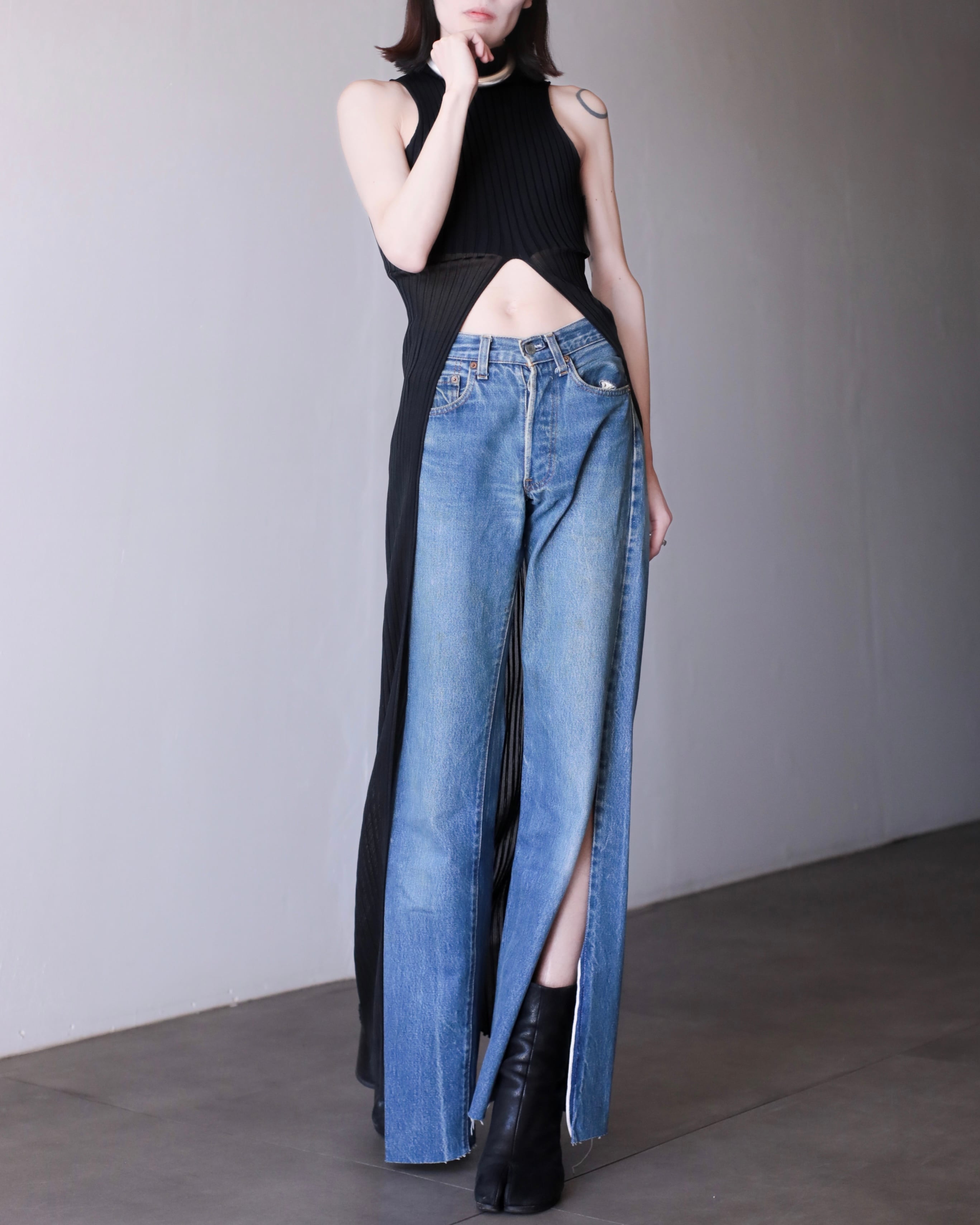 1980s Levi's 501 "nezire" red line selvedge deep slit design denim pants Made In USA