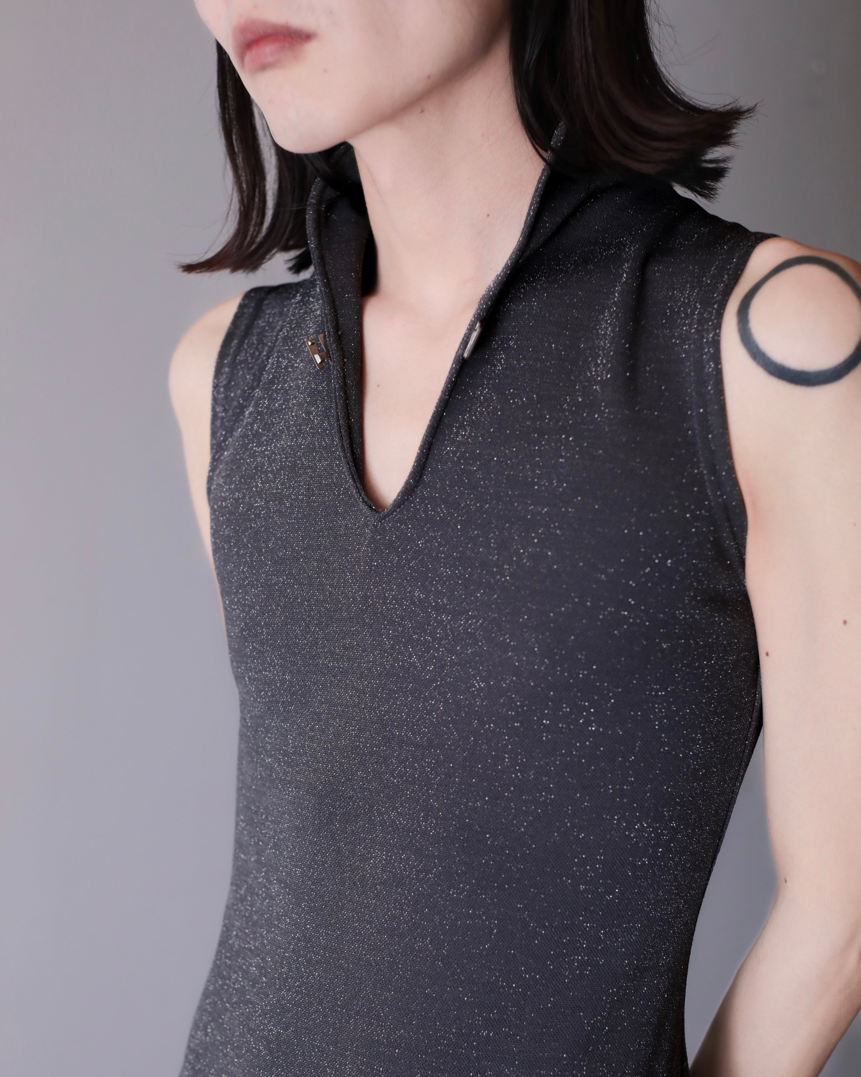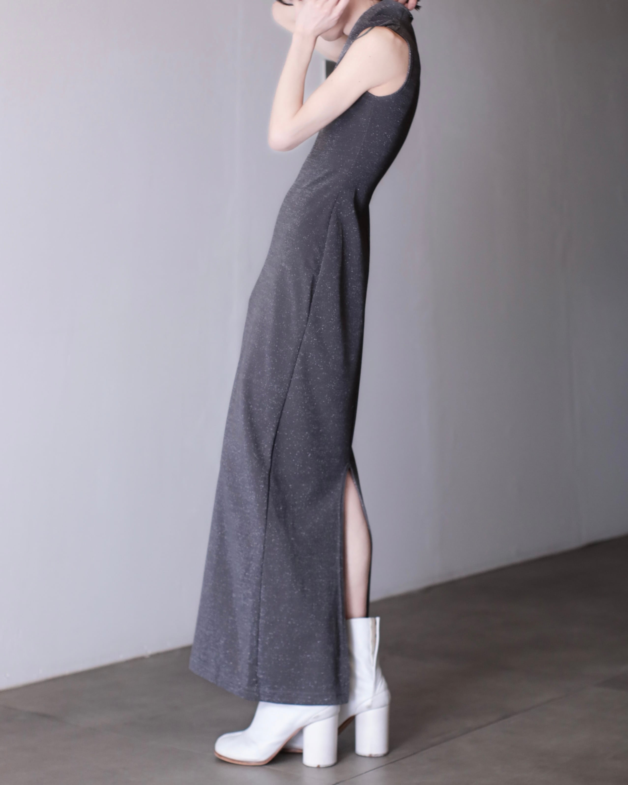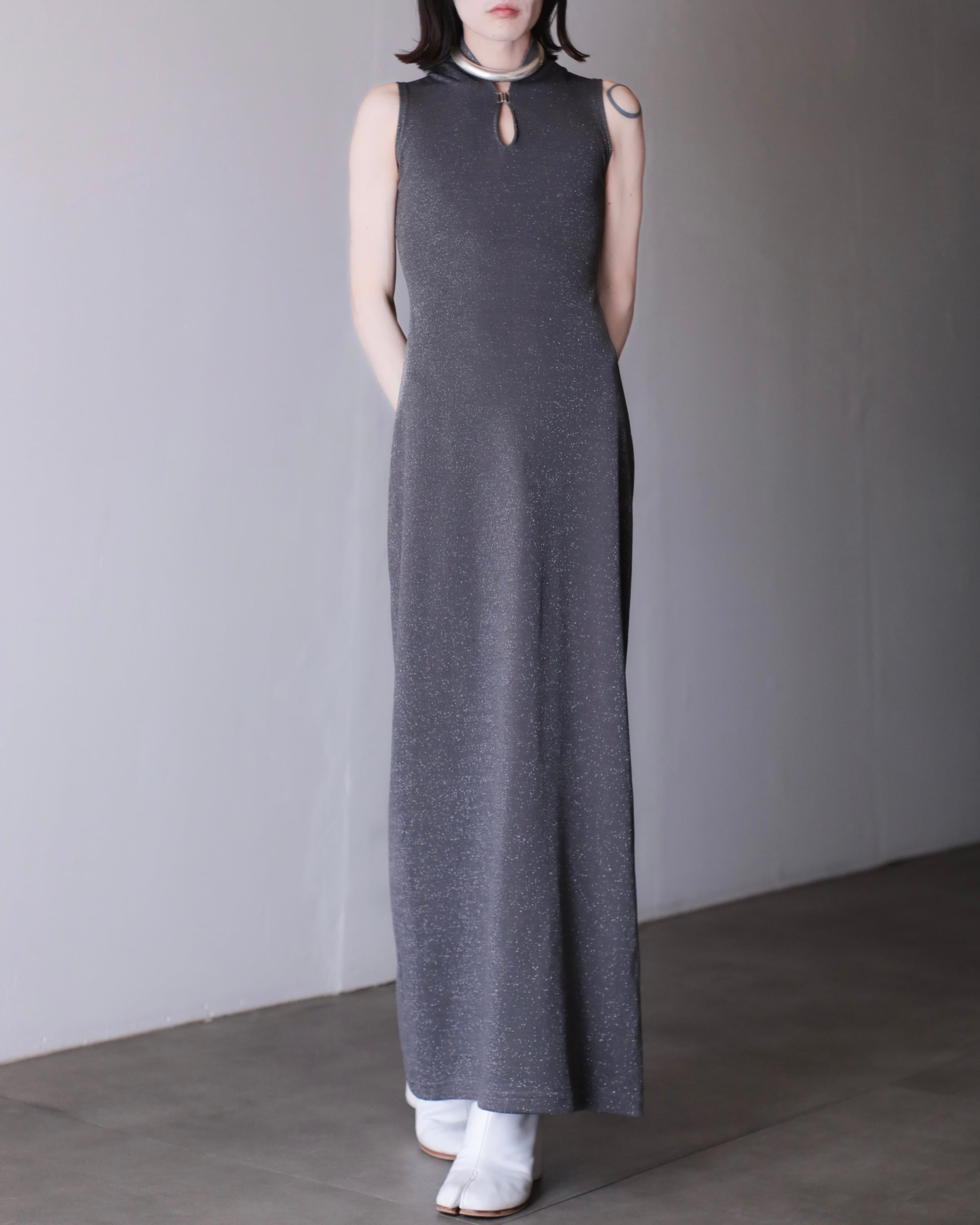 1990s lamé jersey fabric maxi dress one piece