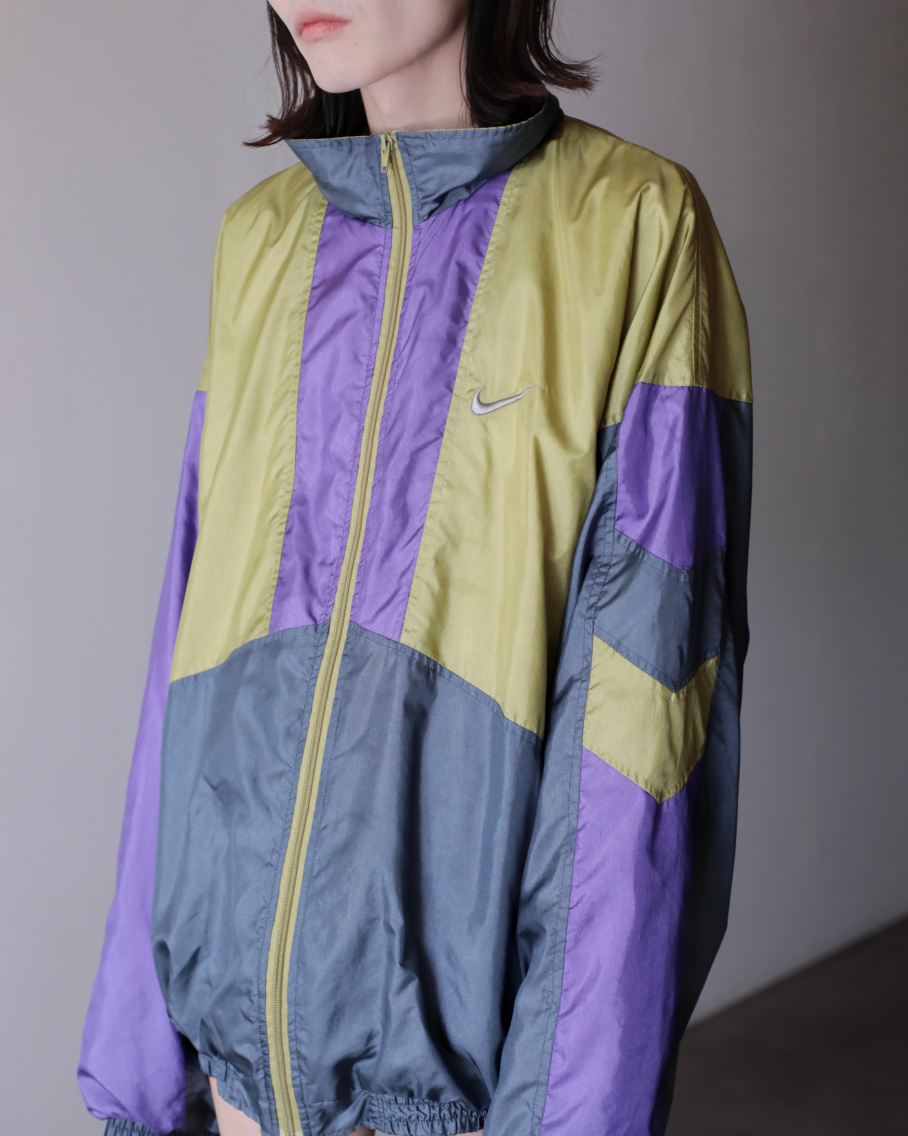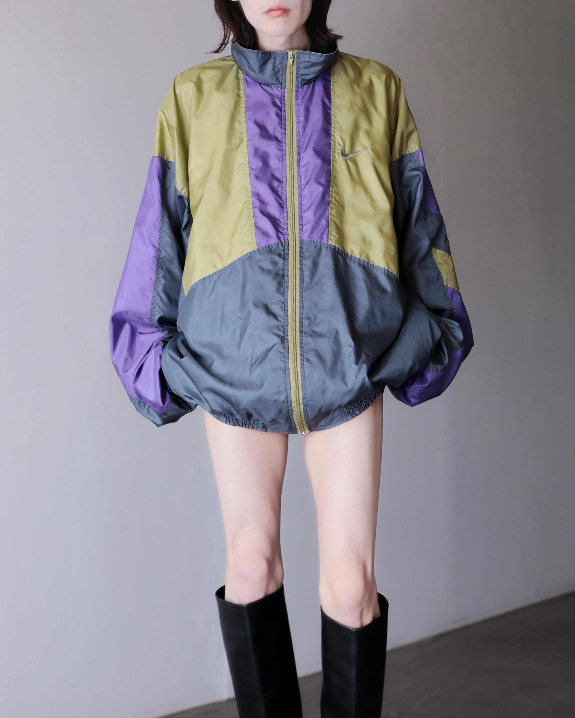 1990s NIKE mulch pattern center swoosh embroidery design half zlp nylon top oversized