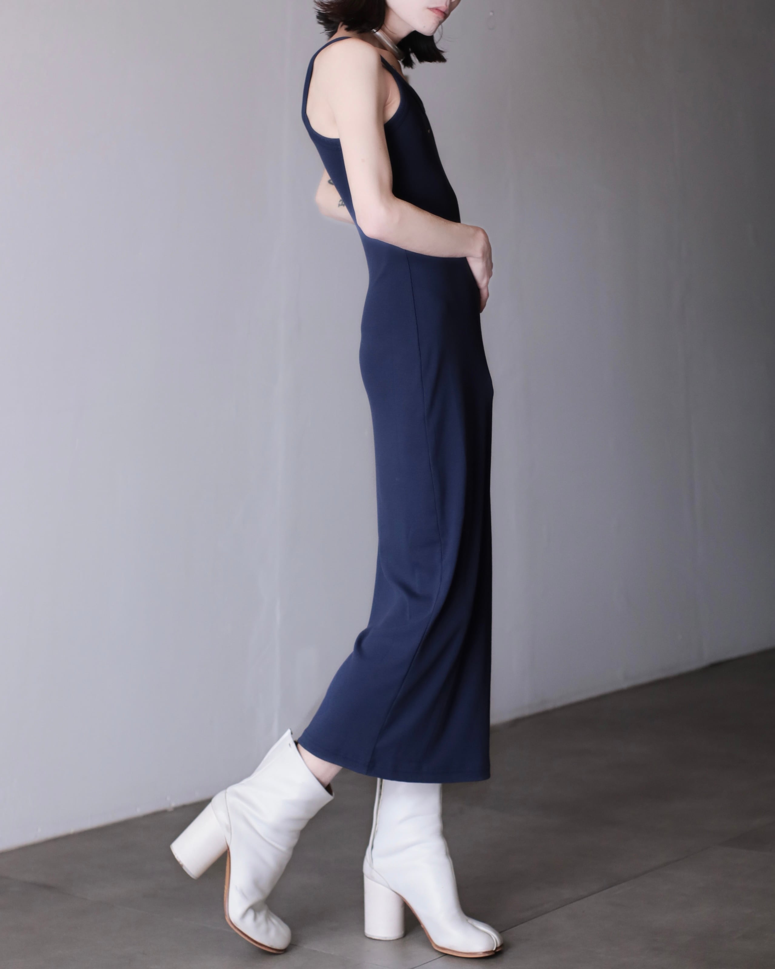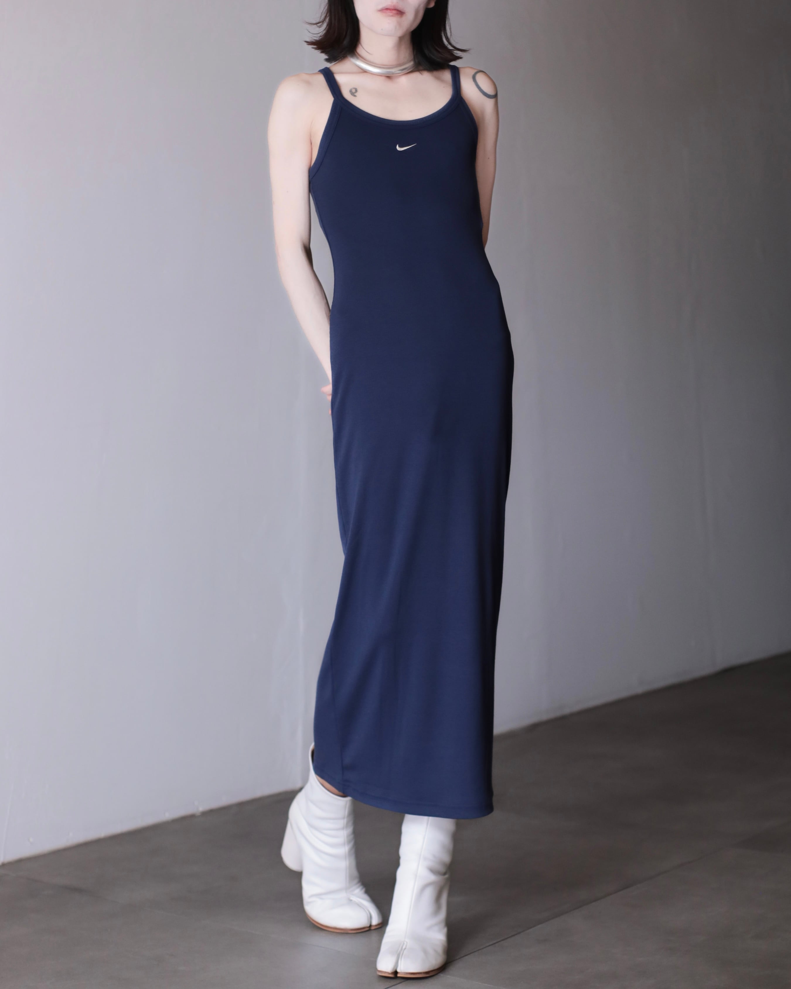 deadstock NIKE rib knit fabric "center swoosh embroidery" camisole type long dress one-piece