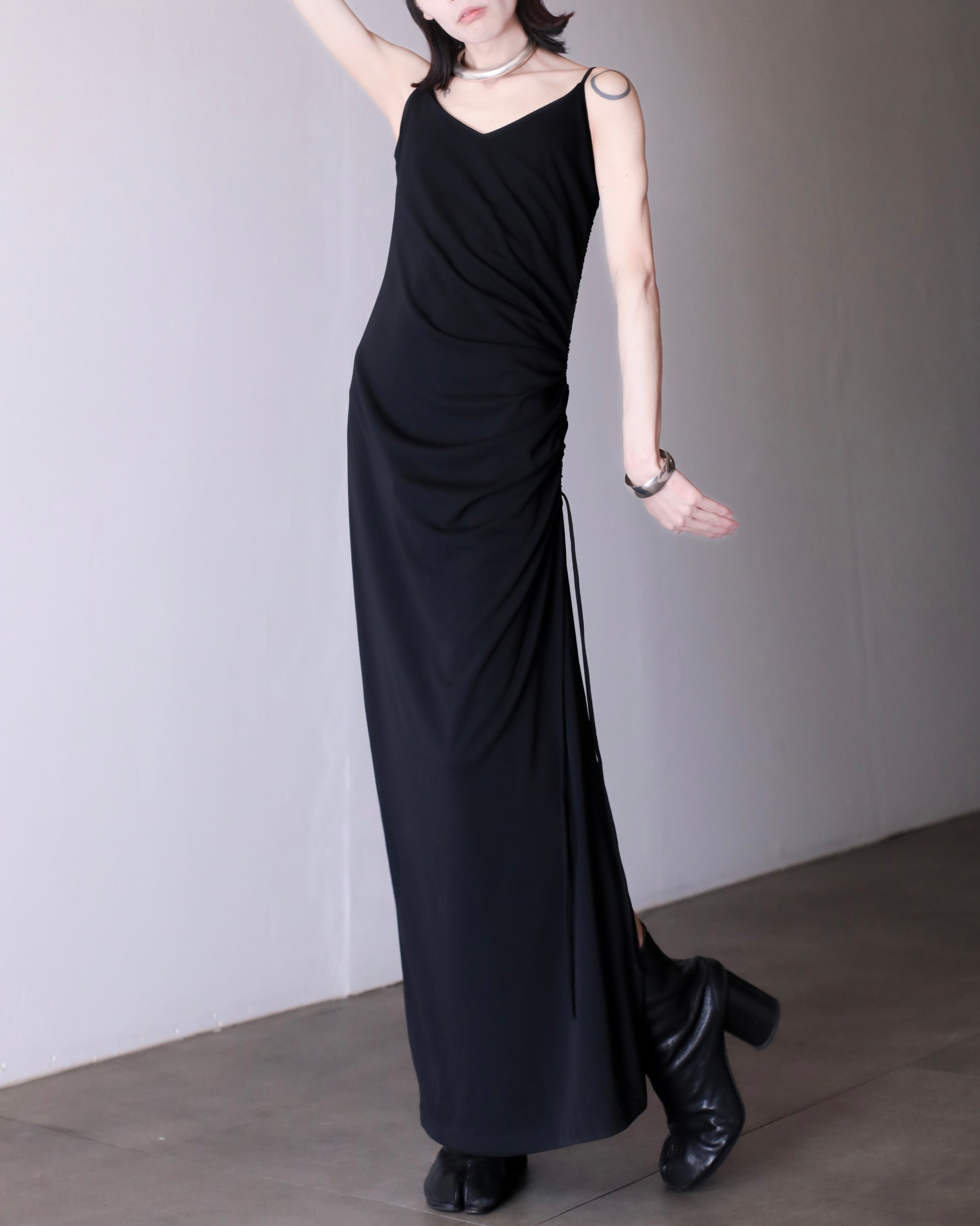 1990s drawthings shirring design maxi length dress one piece Made In Canada