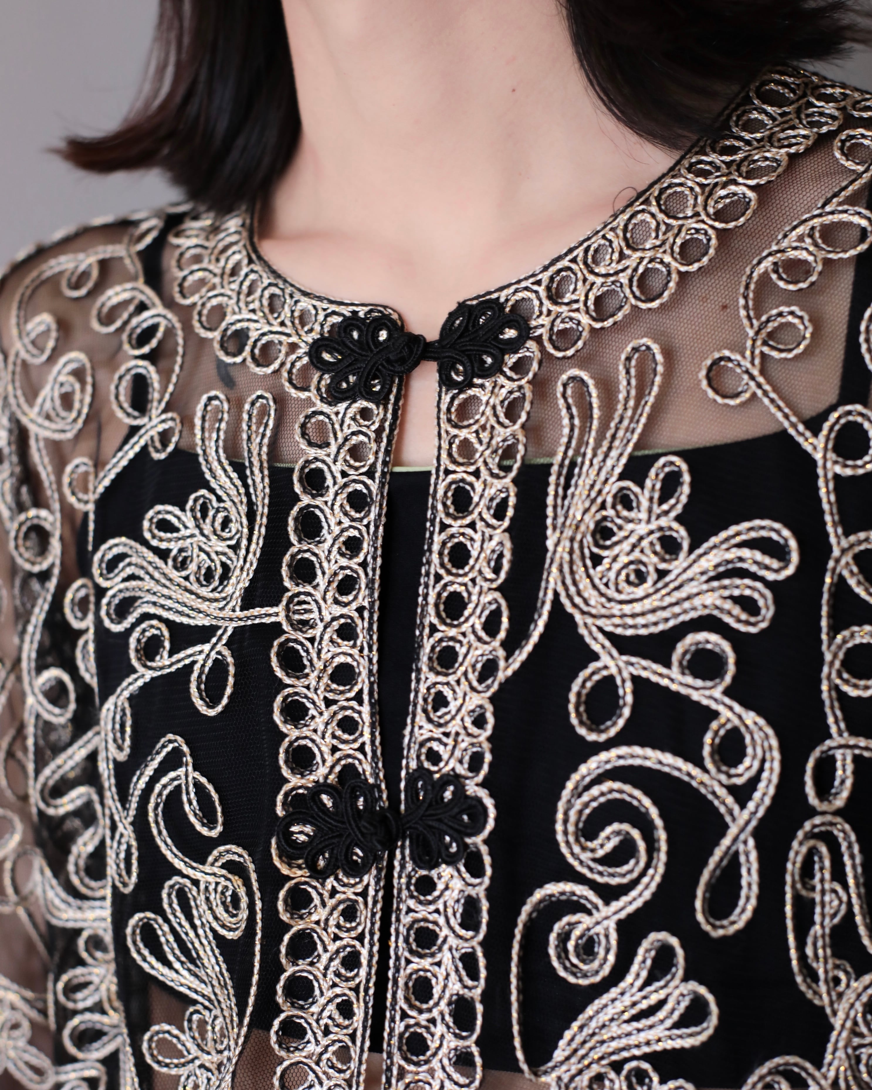 1990s~ sheer × embroidery kang-fu design no collar jacket