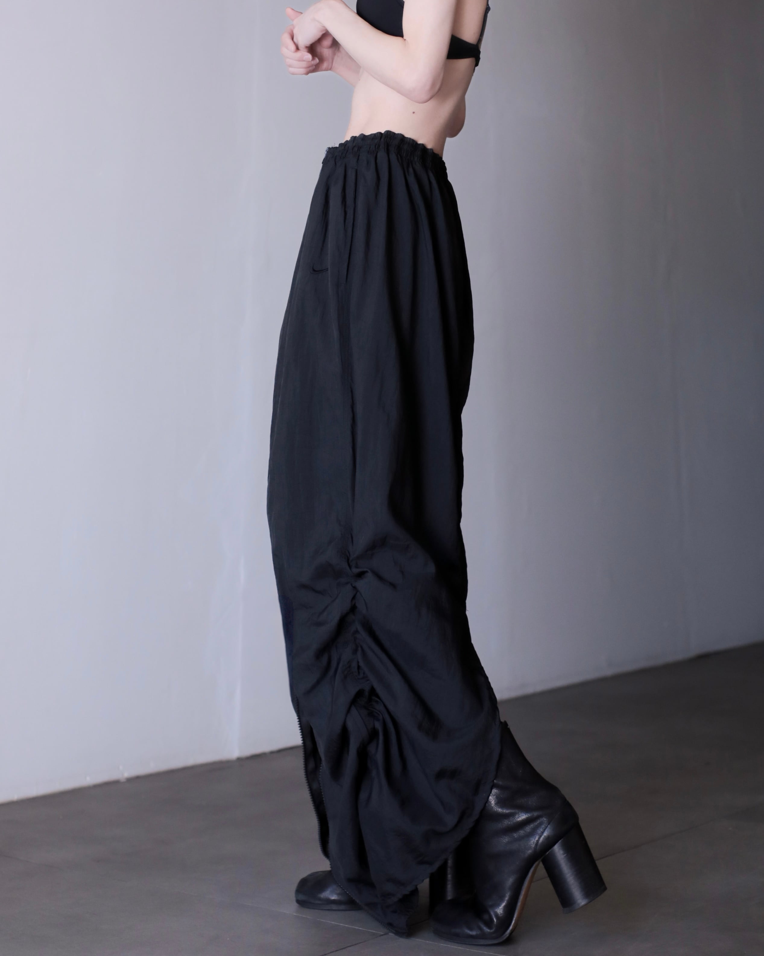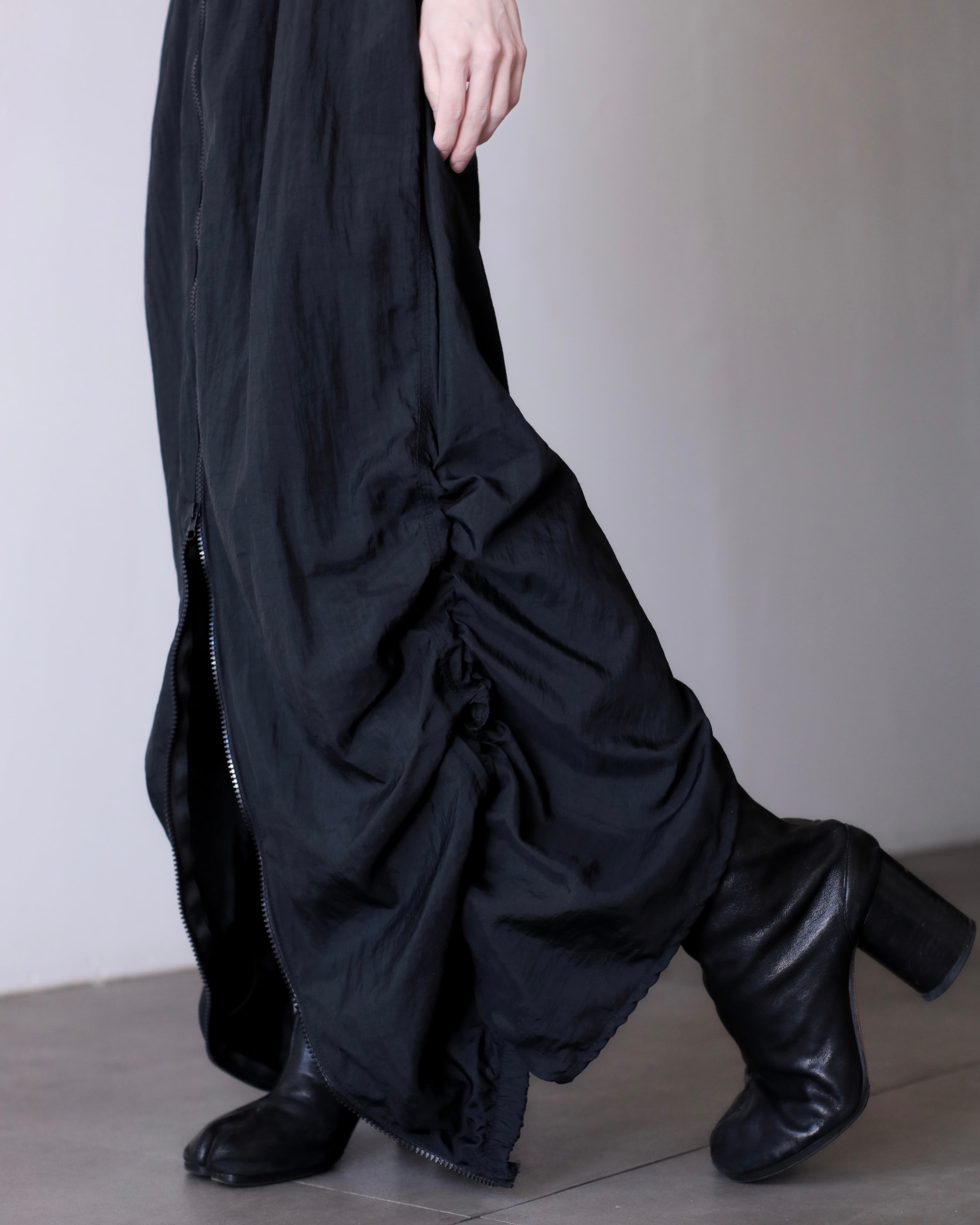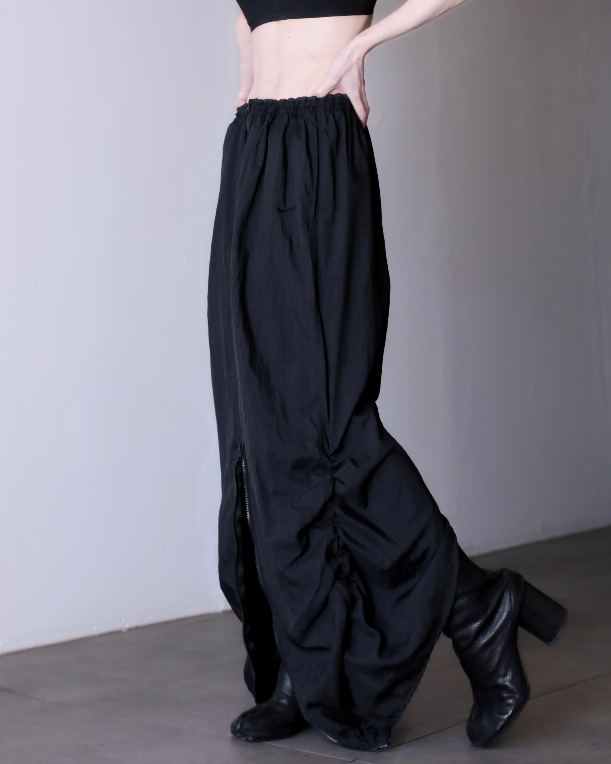 1990s NIKE nylon tech drawstring design center zip maxi skirt