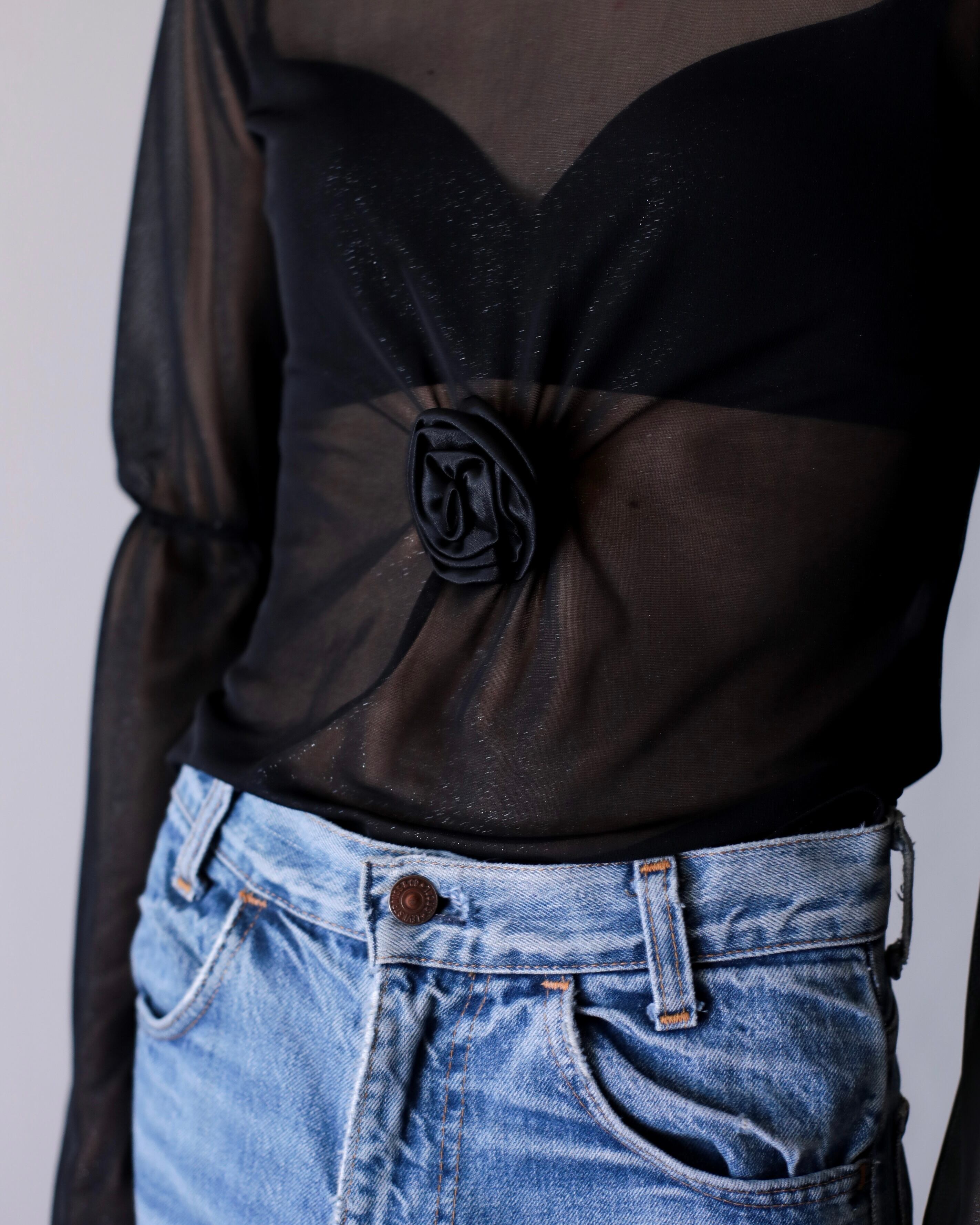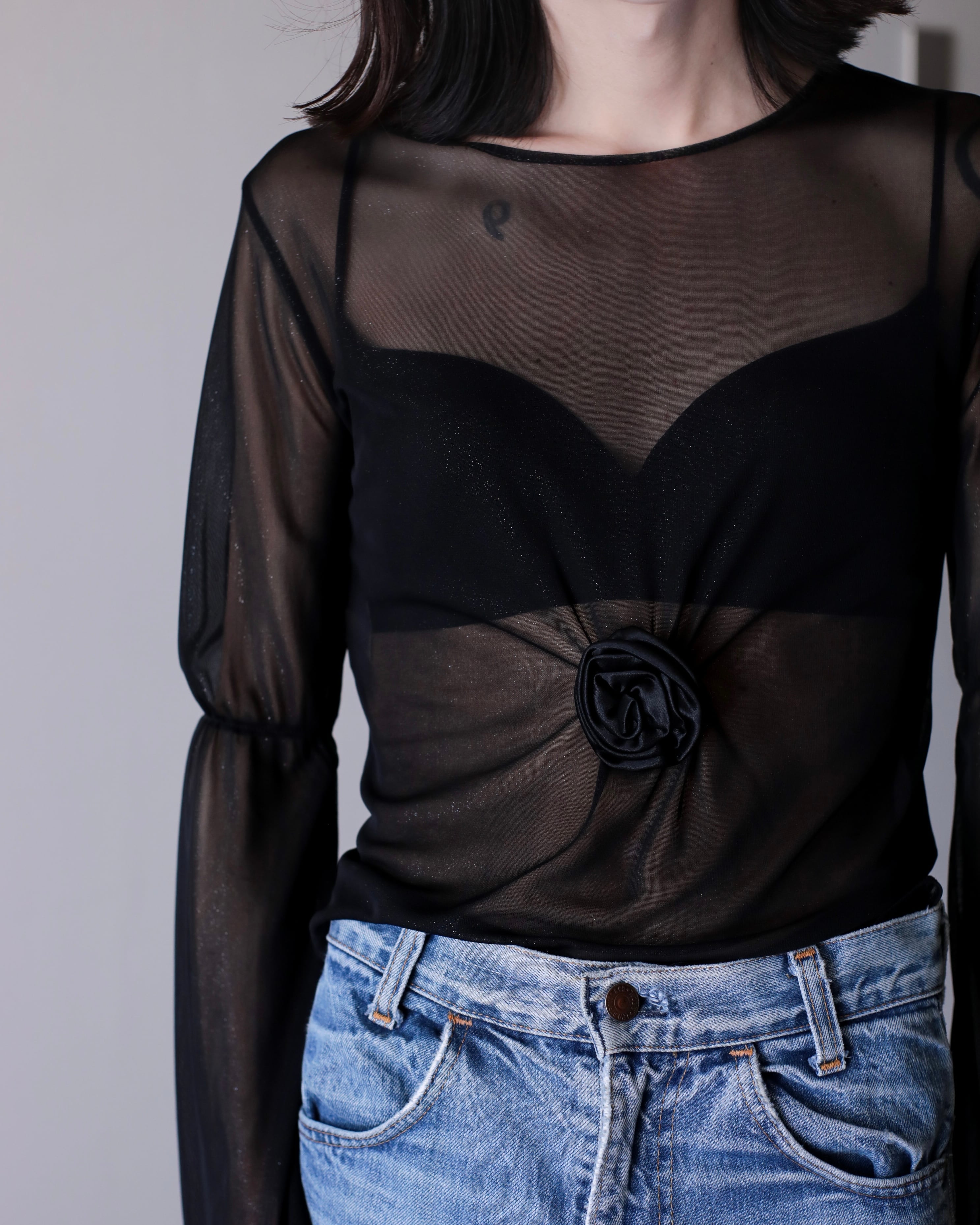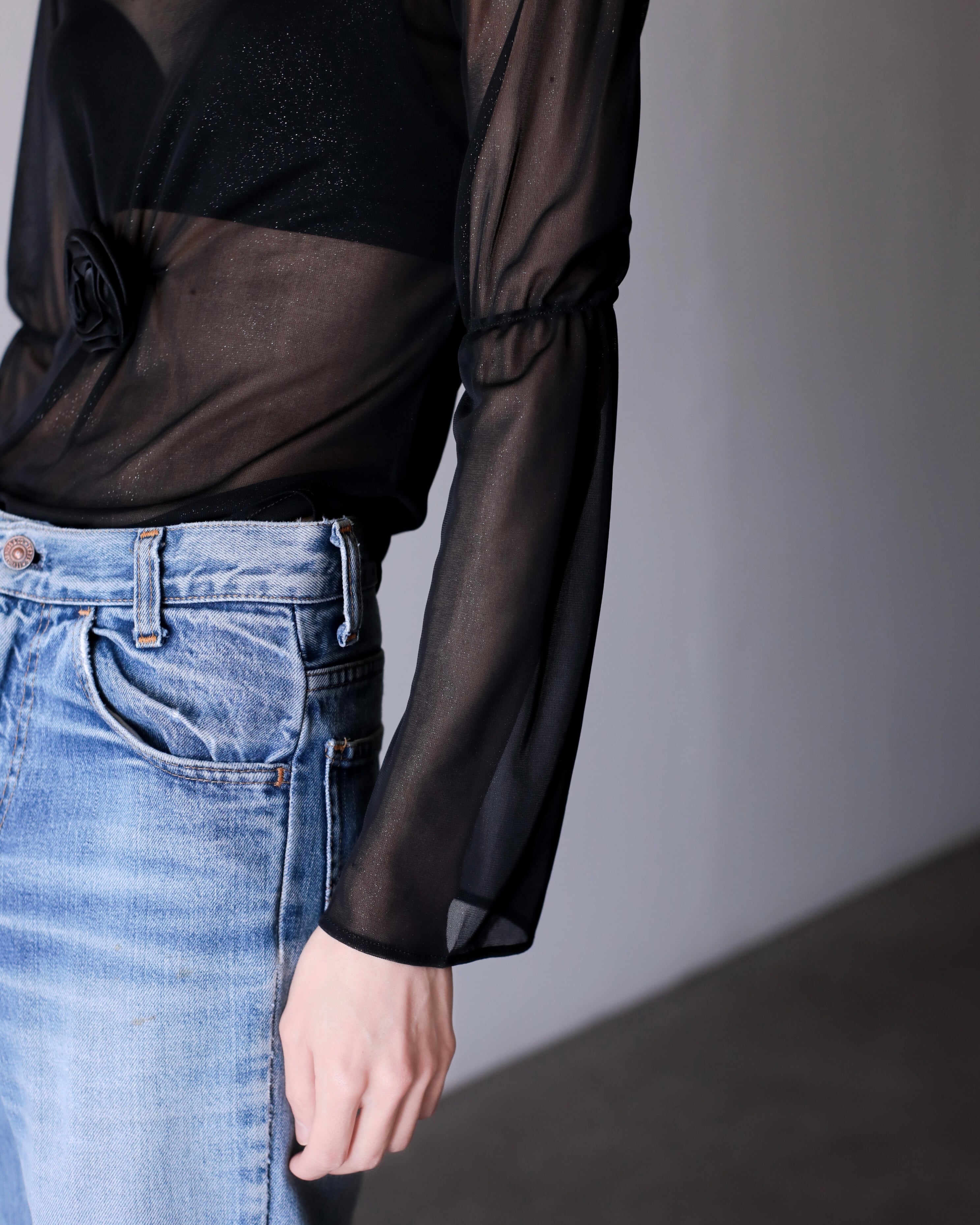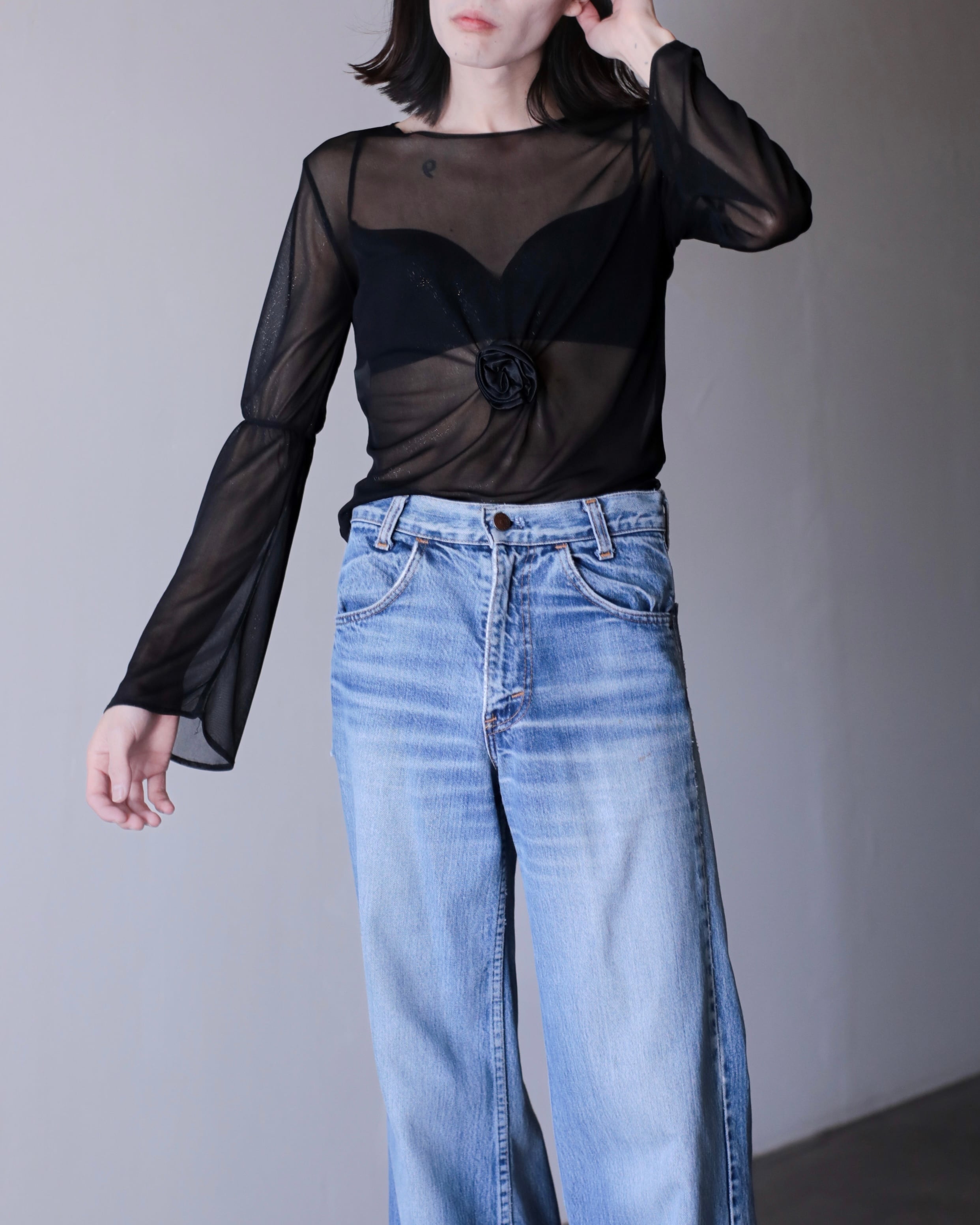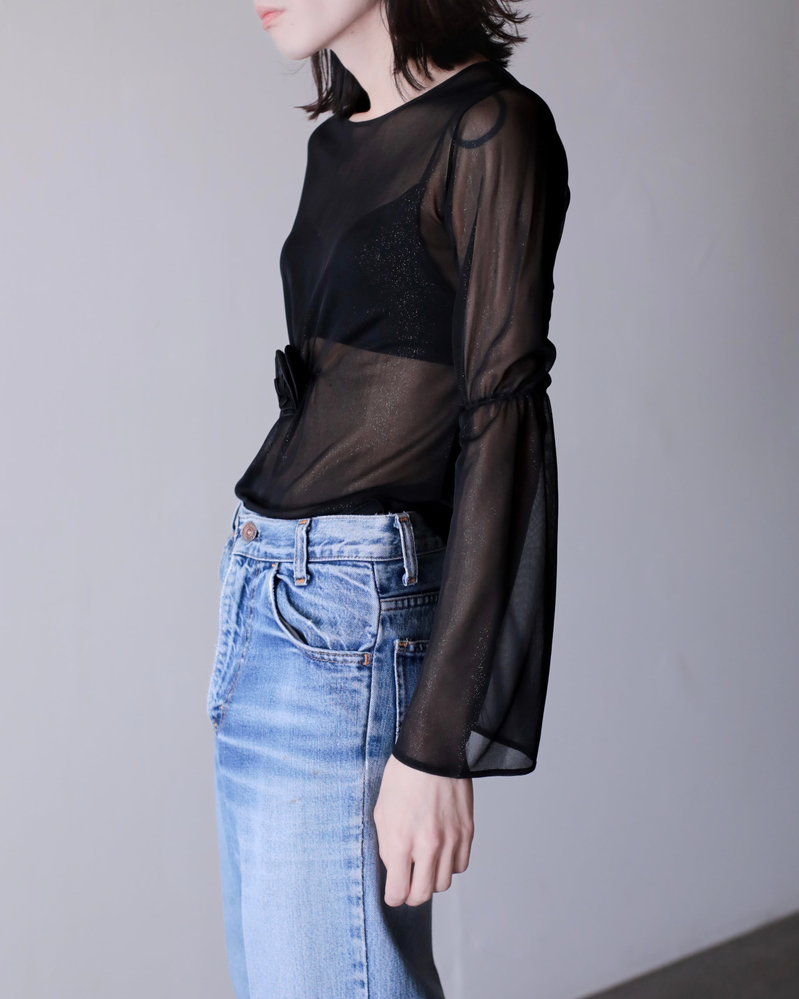 1990s sheer fabric flare sleeve power net top Made In Italy