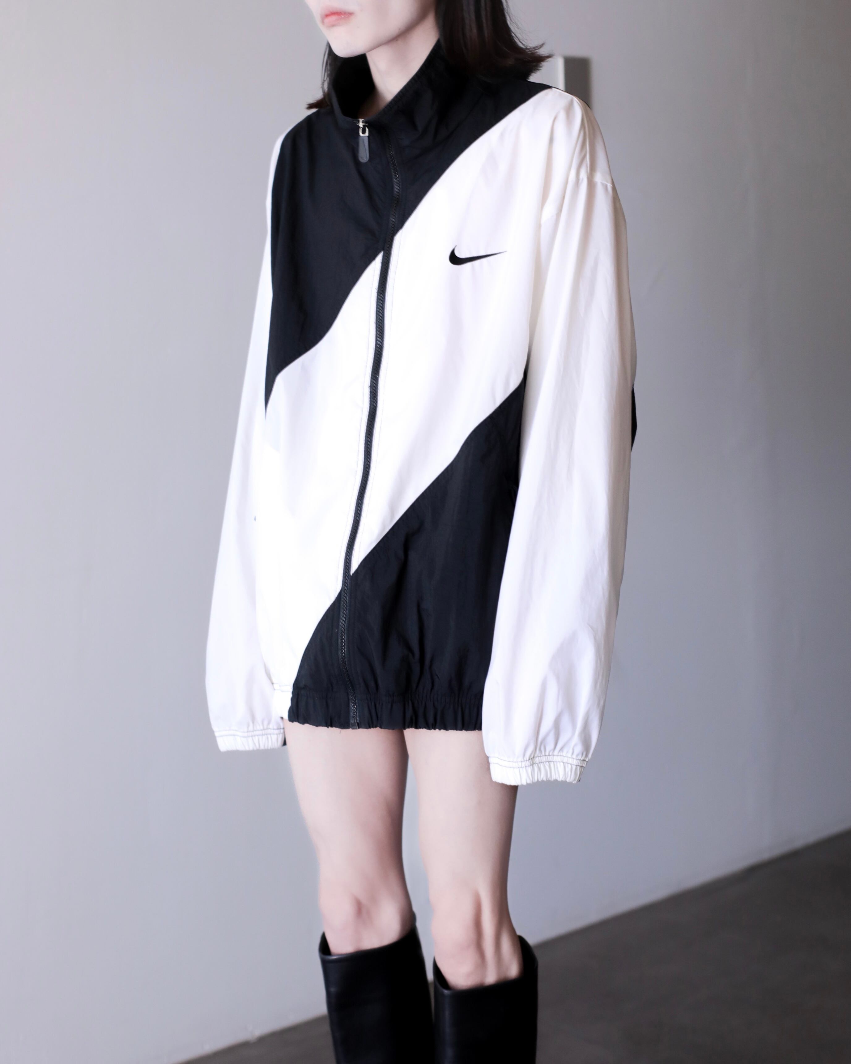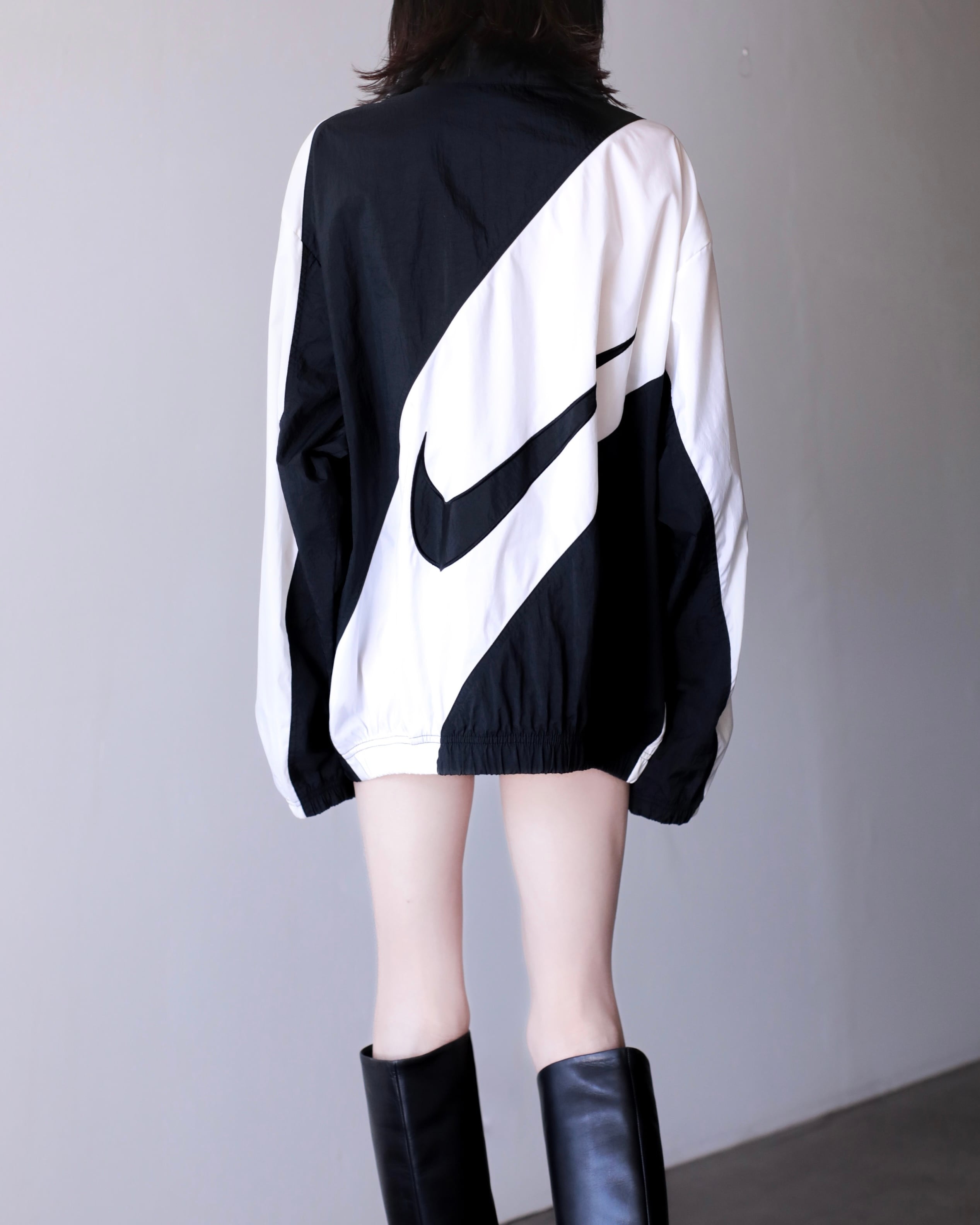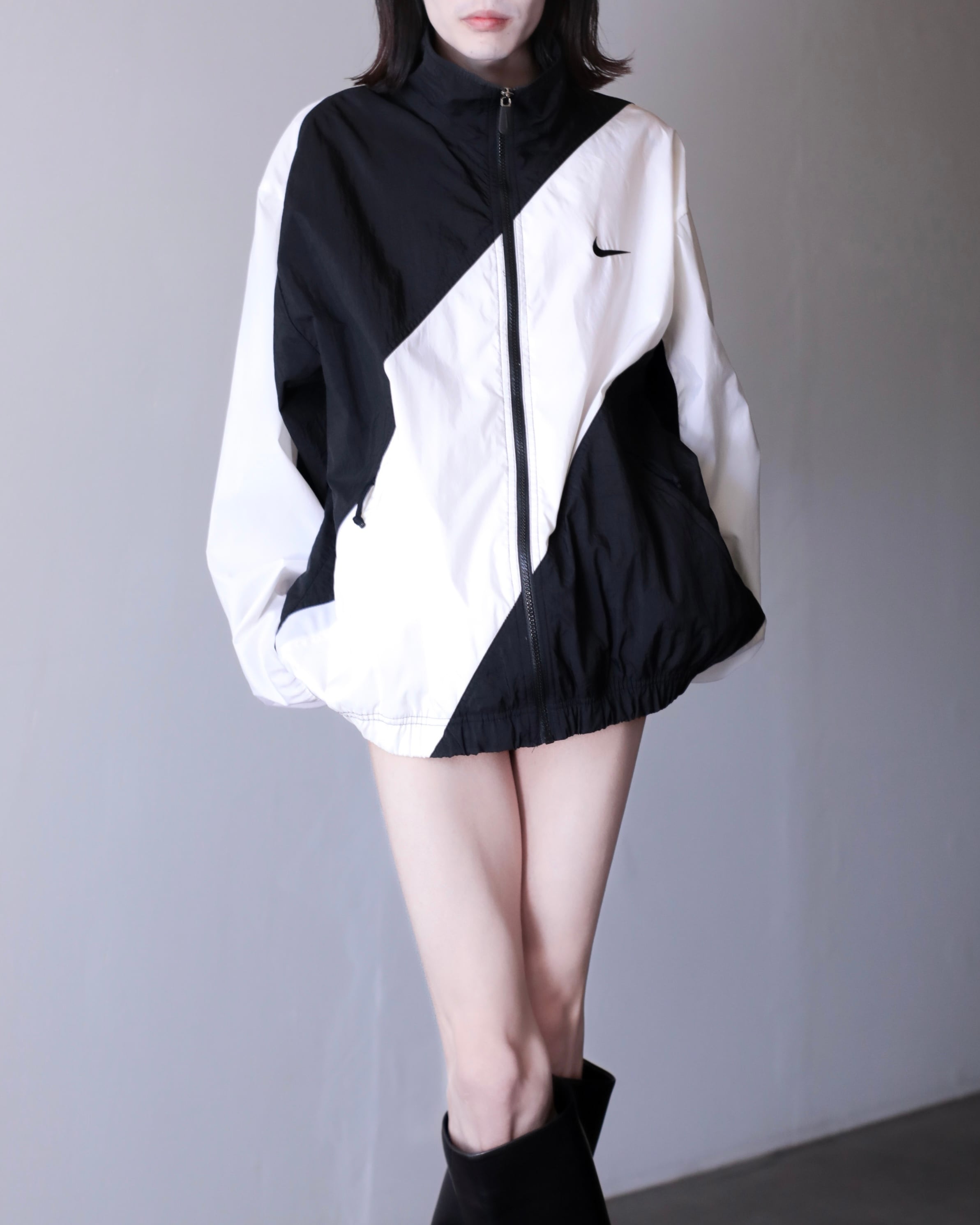 1990s NIKE bi-color "naname" back big swoosh design nylon jacket oversized