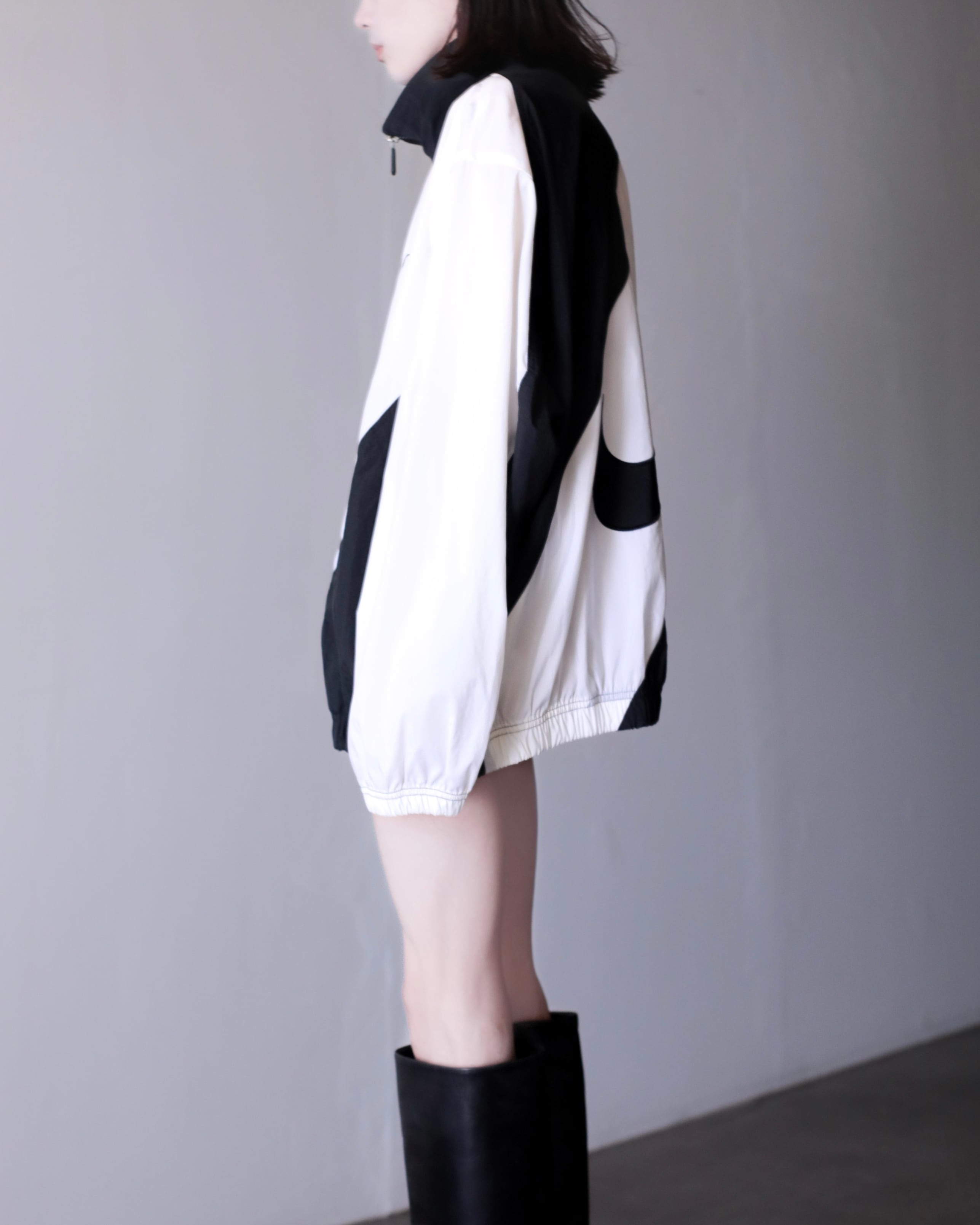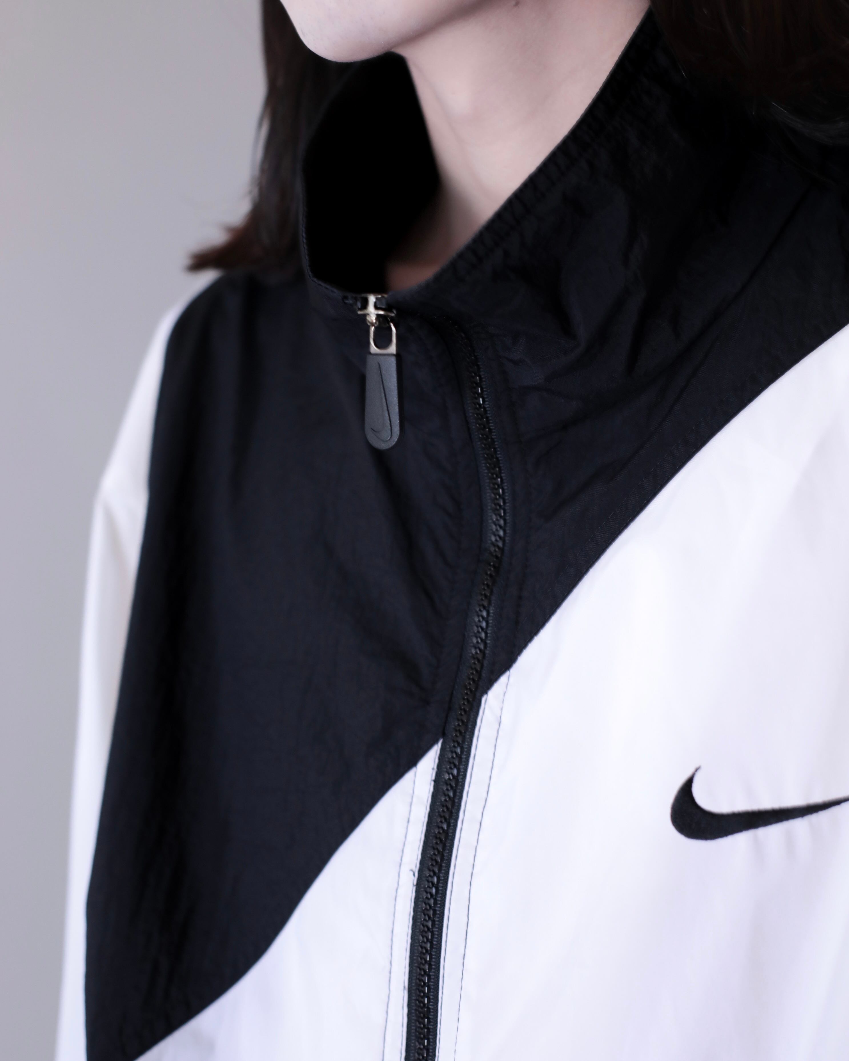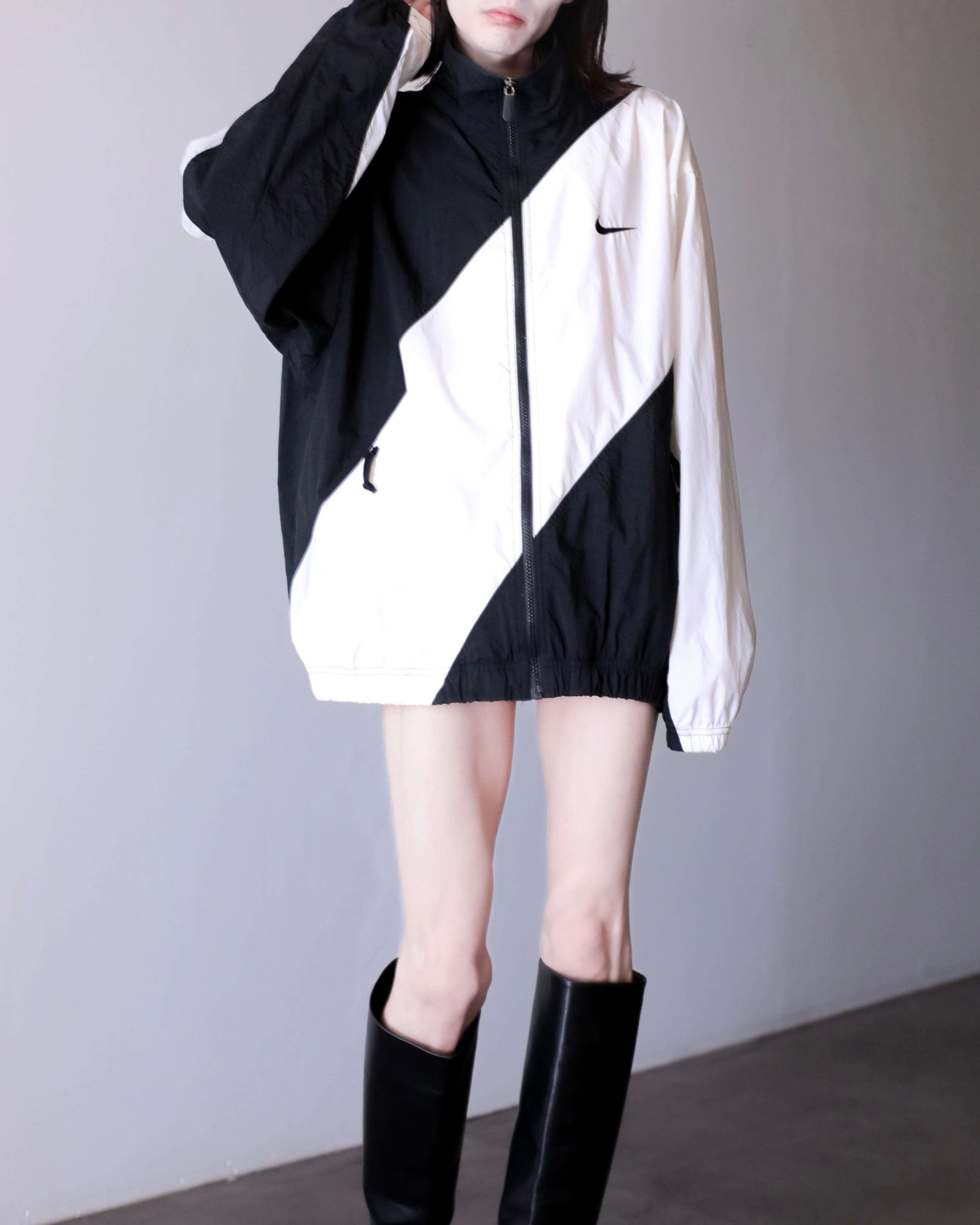 1990s NIKE bi-color "naname" back big swoosh design nylon jacket oversized