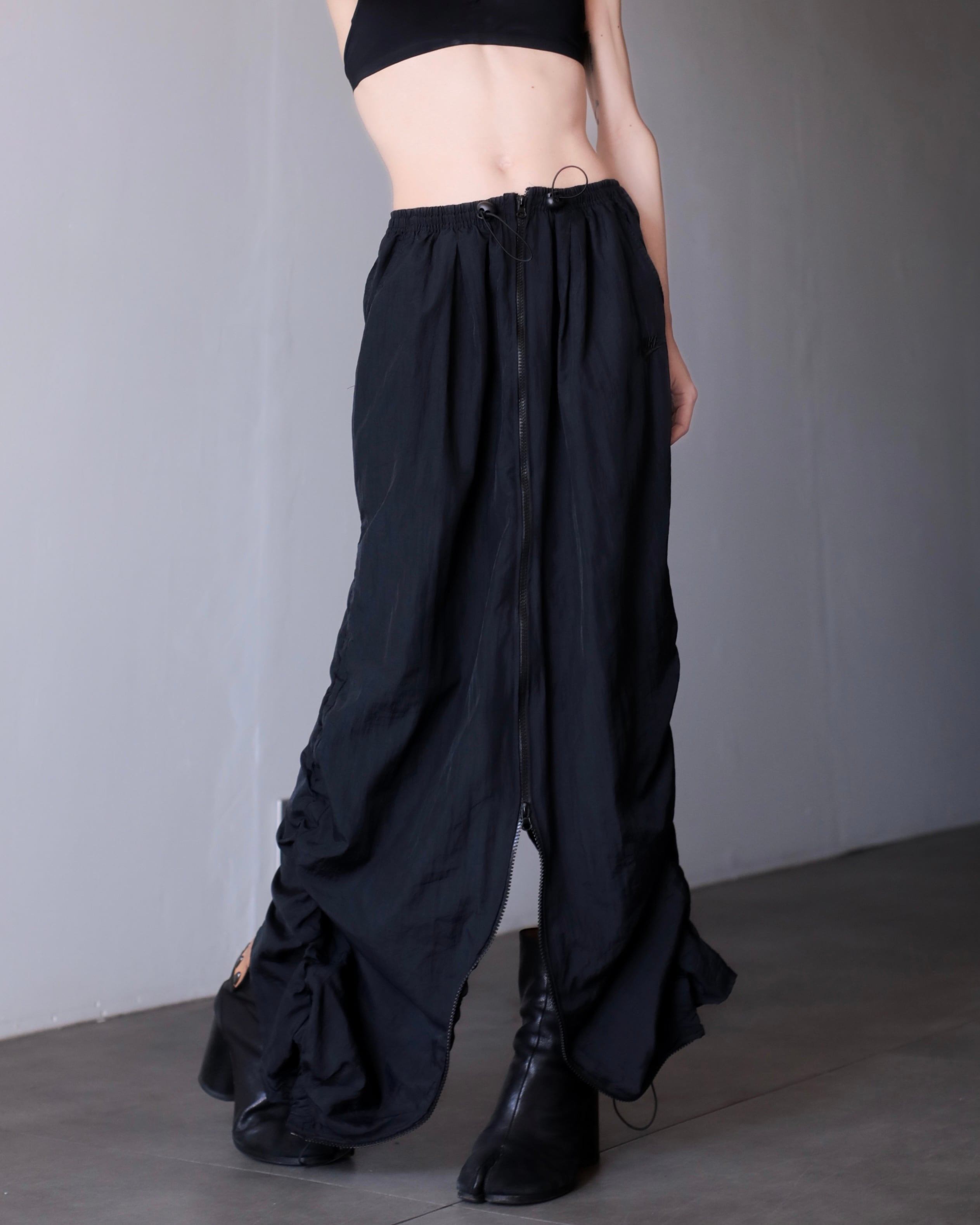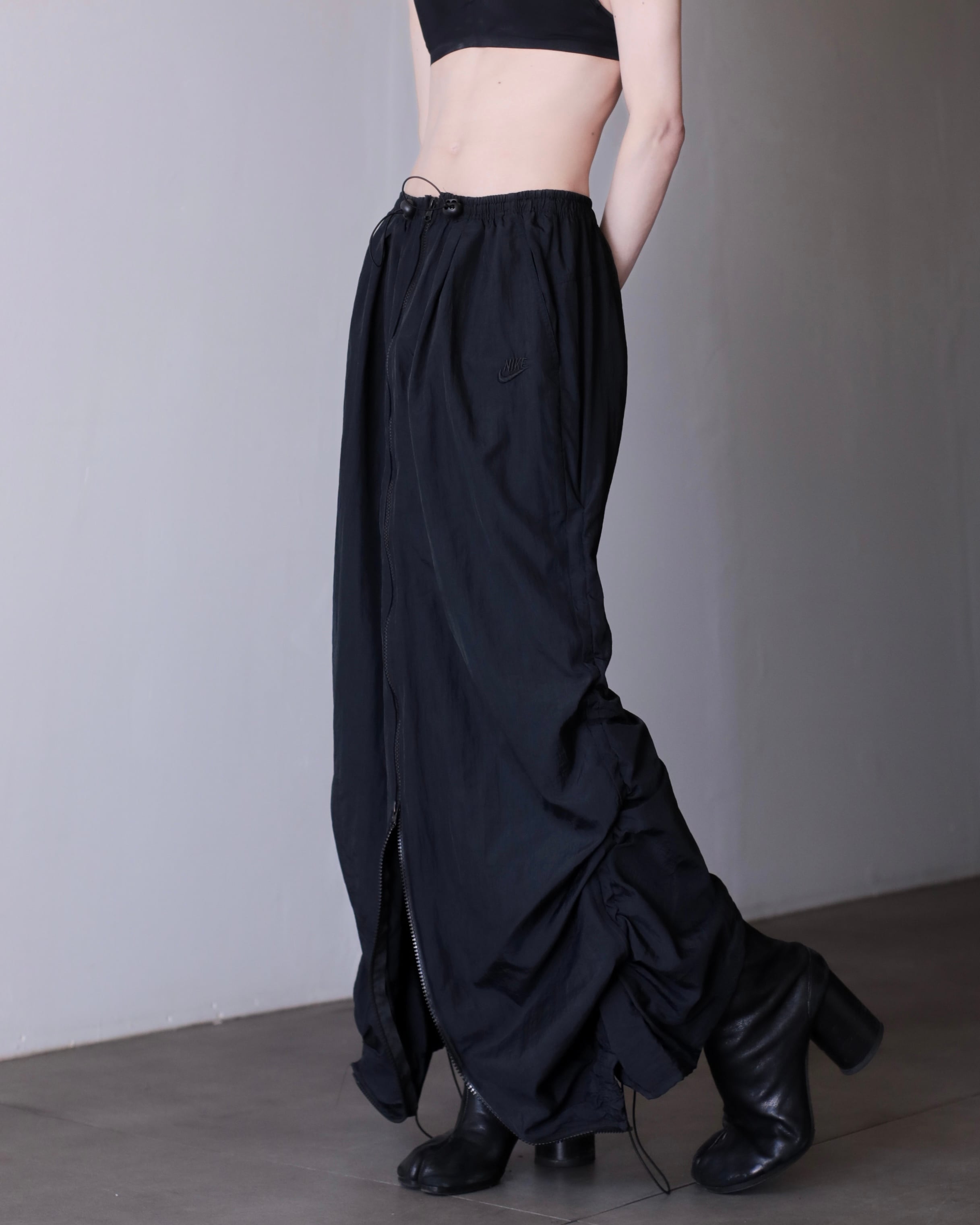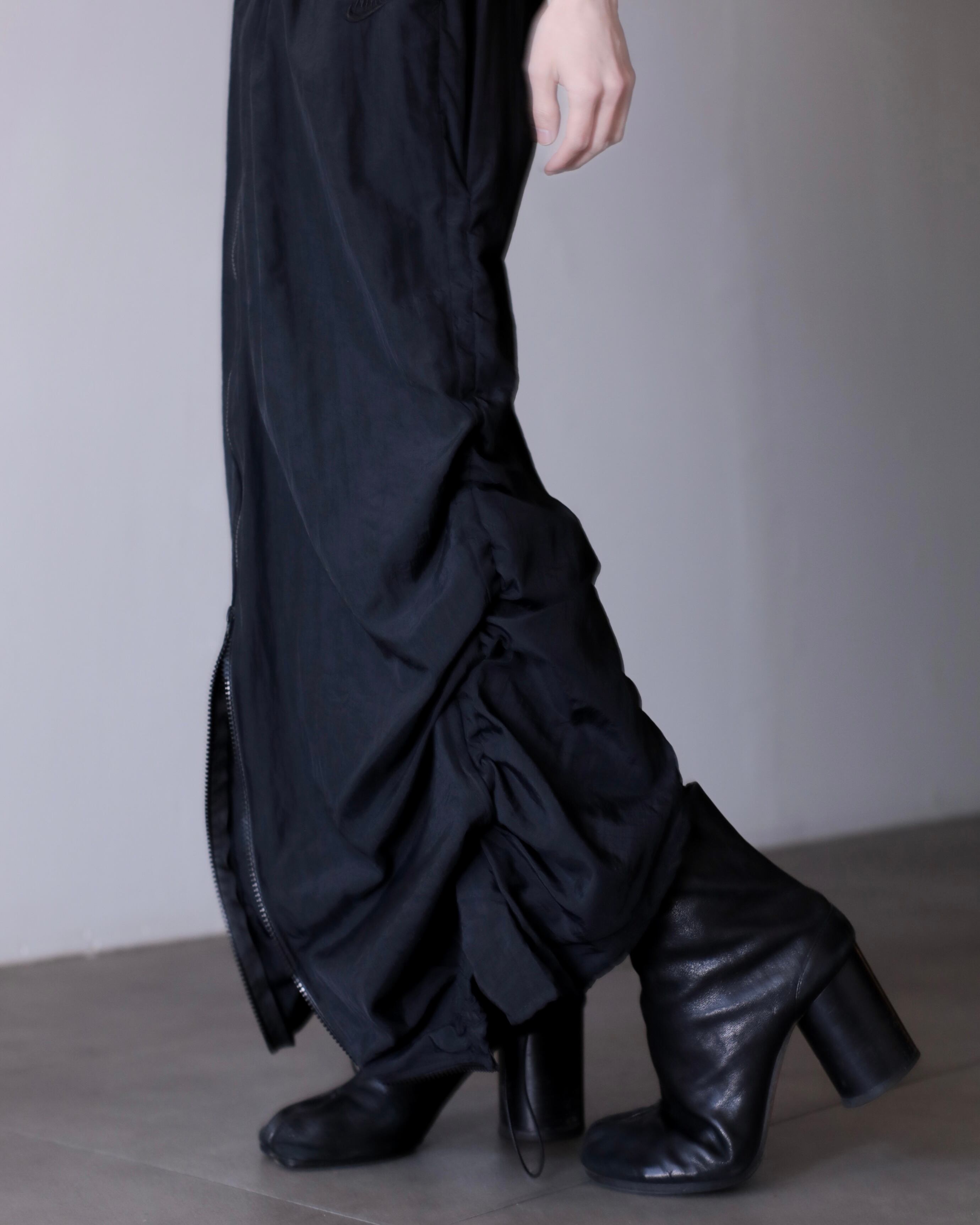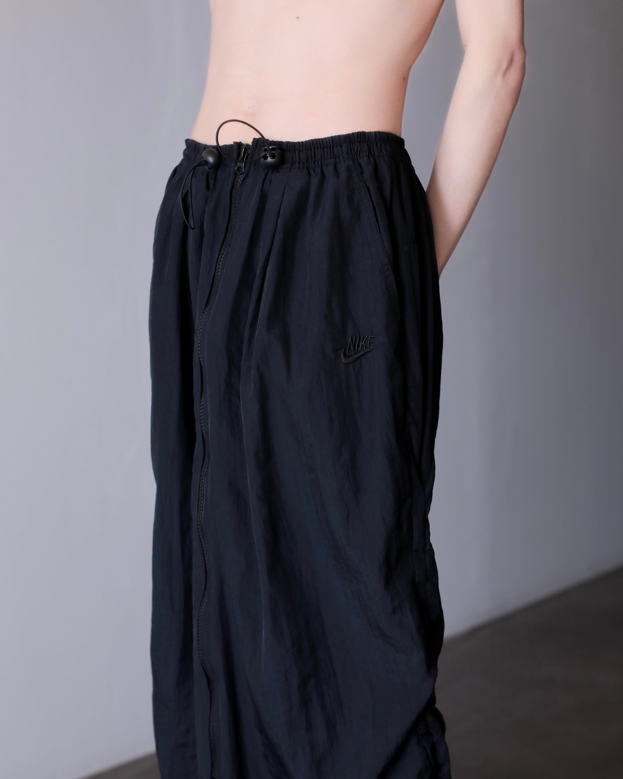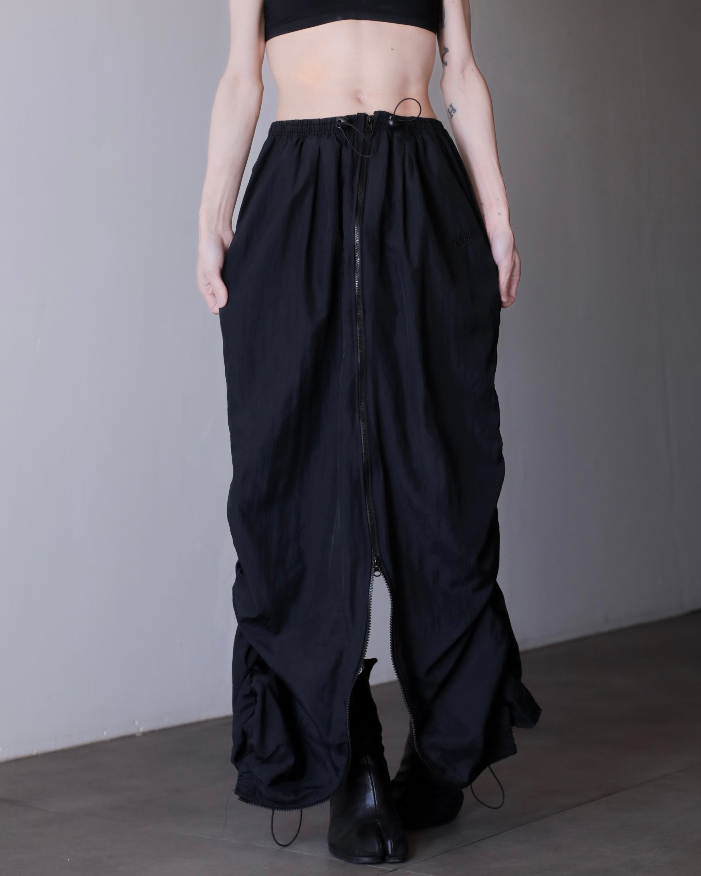 1990s NIKE nylon tech drawstring design center zip maxi skirt