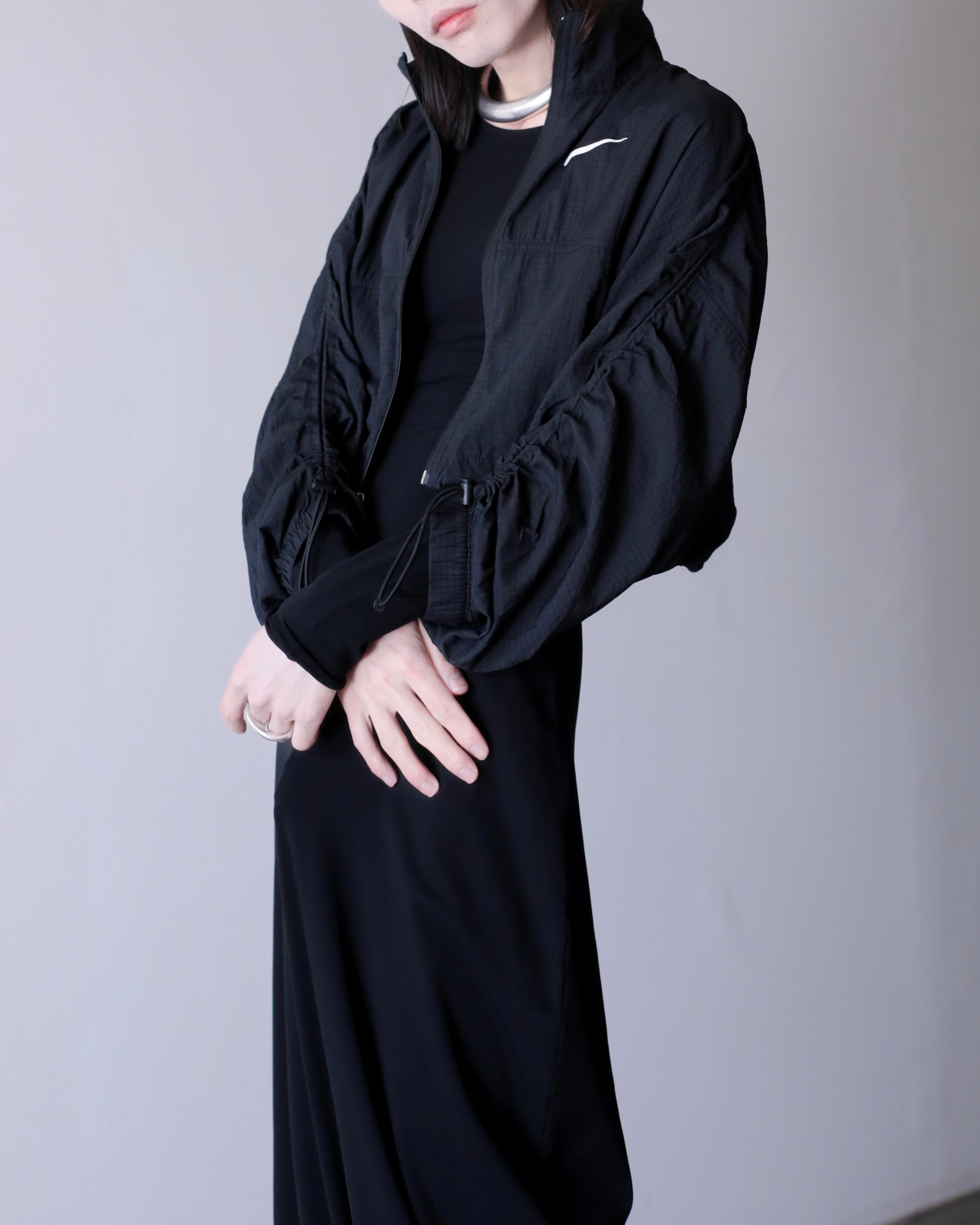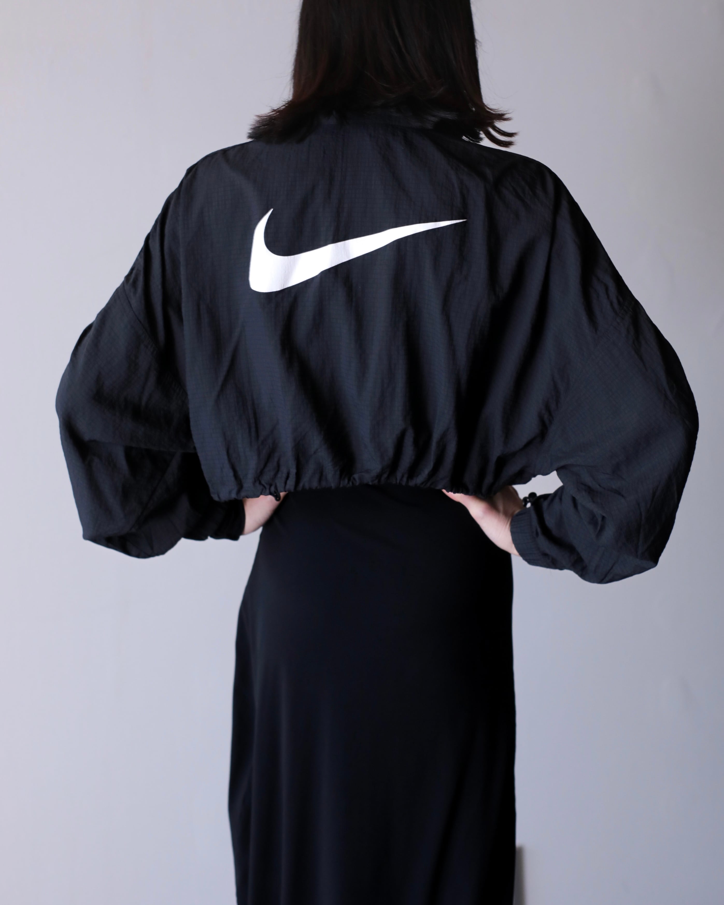 NIKE shirring drawstring design dolman sleeve design short length nylon jacket