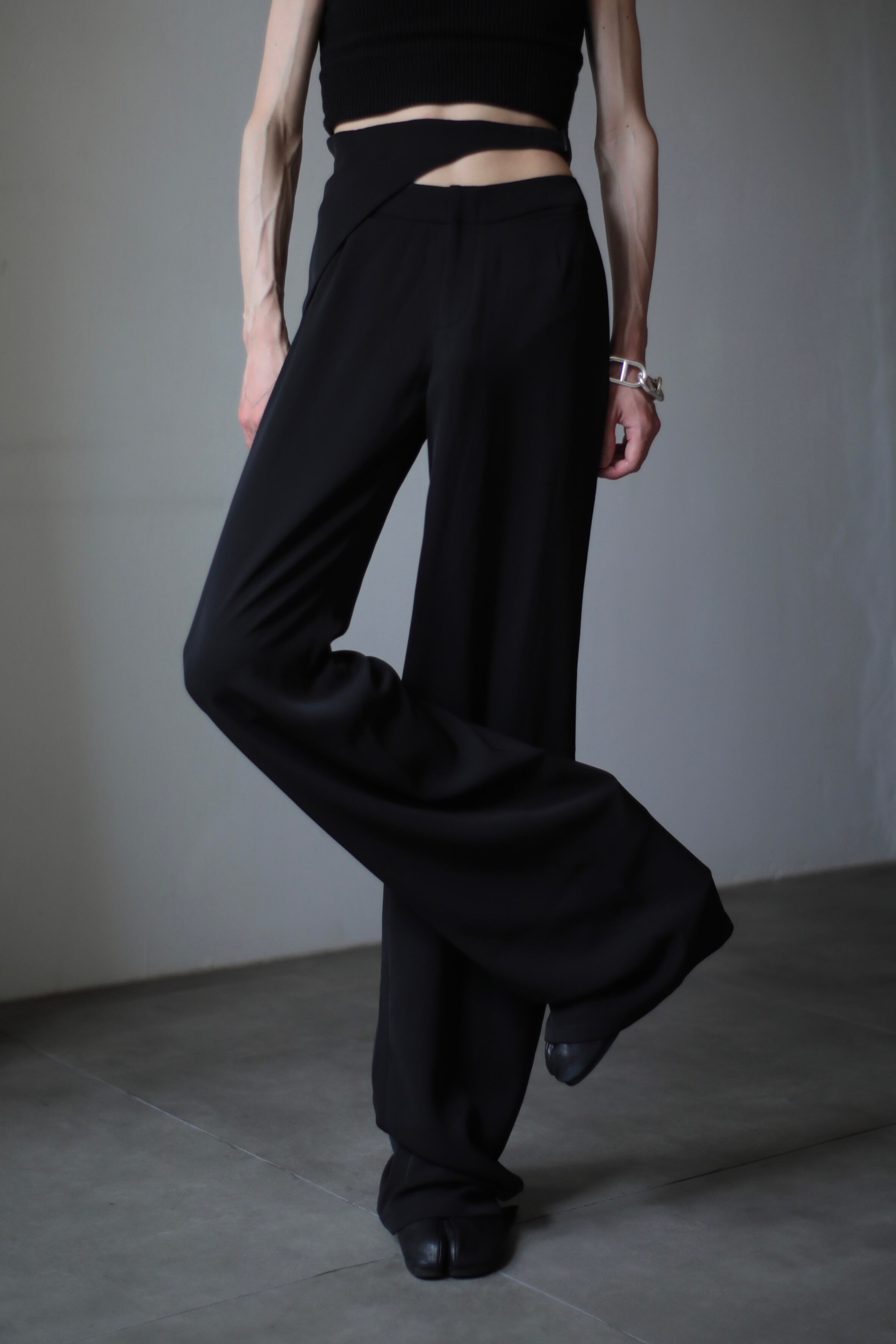 ウエストポーチのようなレイヤーがハイウエストでつくデザイン。
