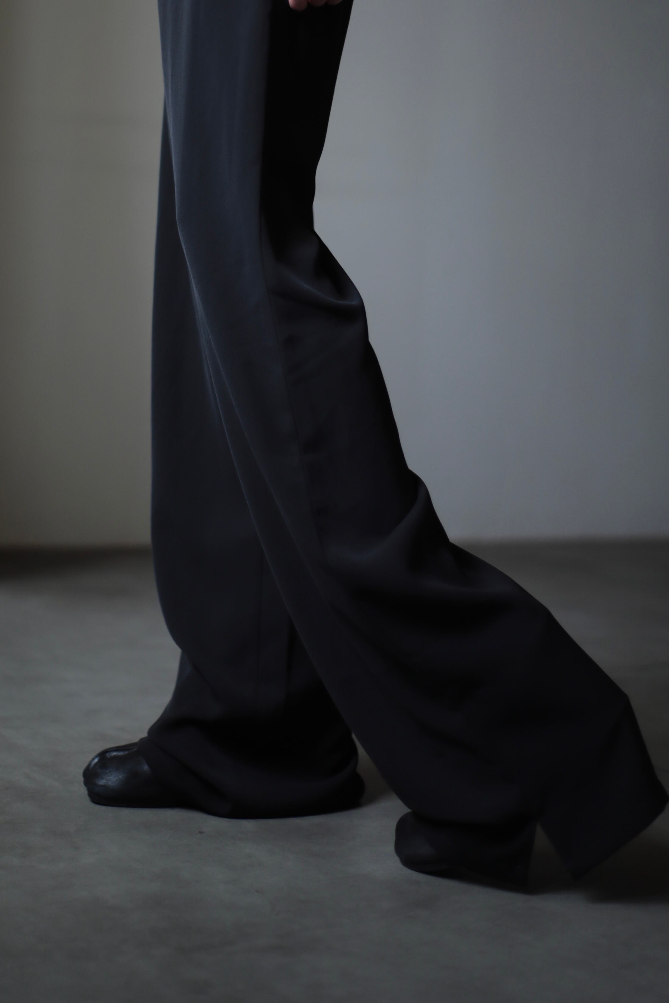 裾まで一直線にストンと落ちるワイドストレートシルエット。とろんとしているかつもちもちとしたファブリックで高級感もあります。