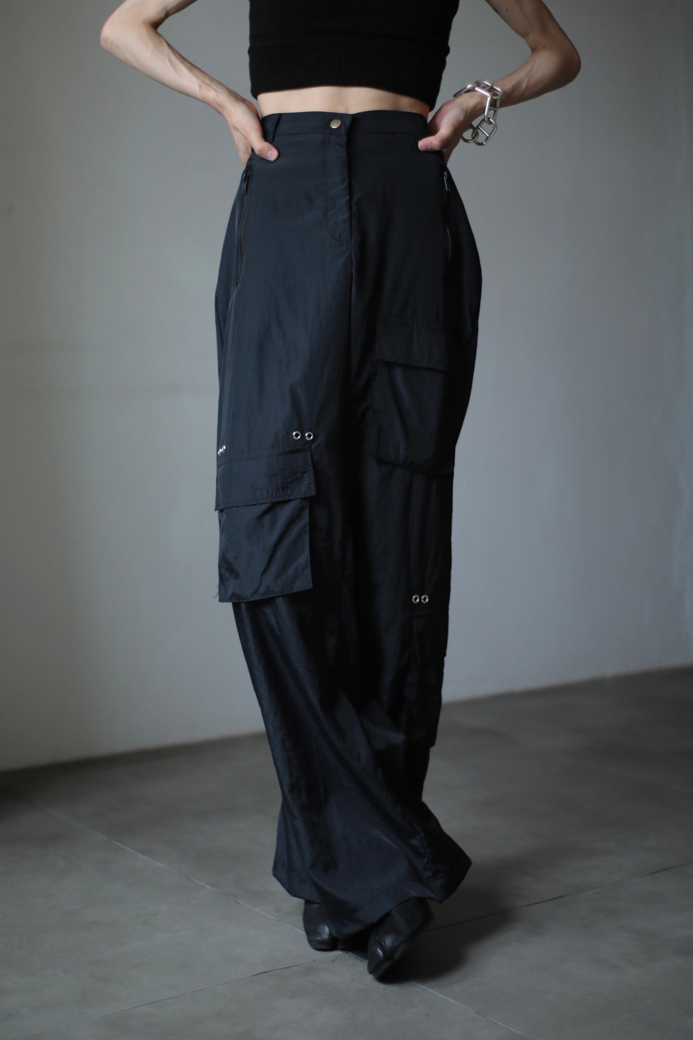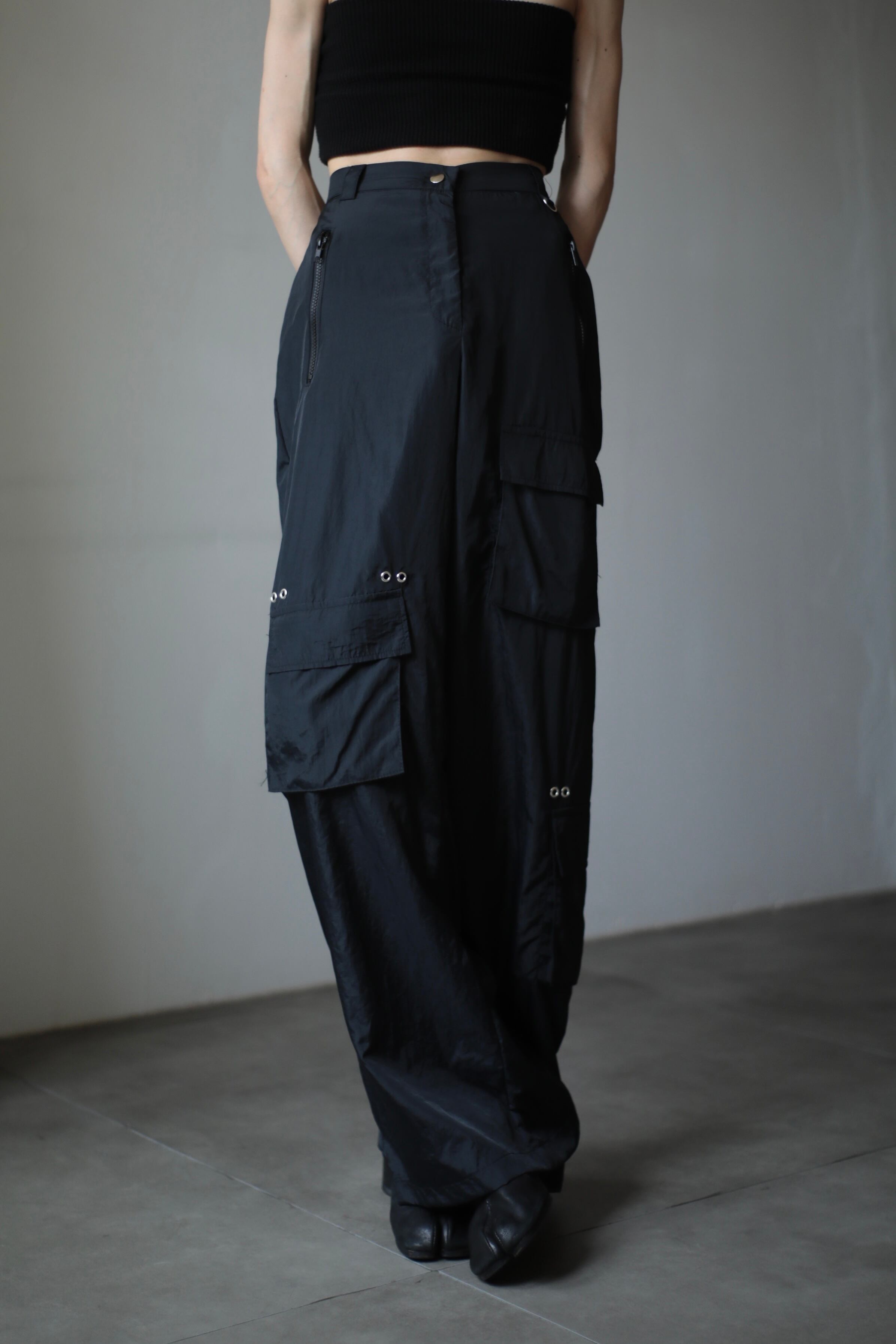nylon tech design wide straight cargo pants