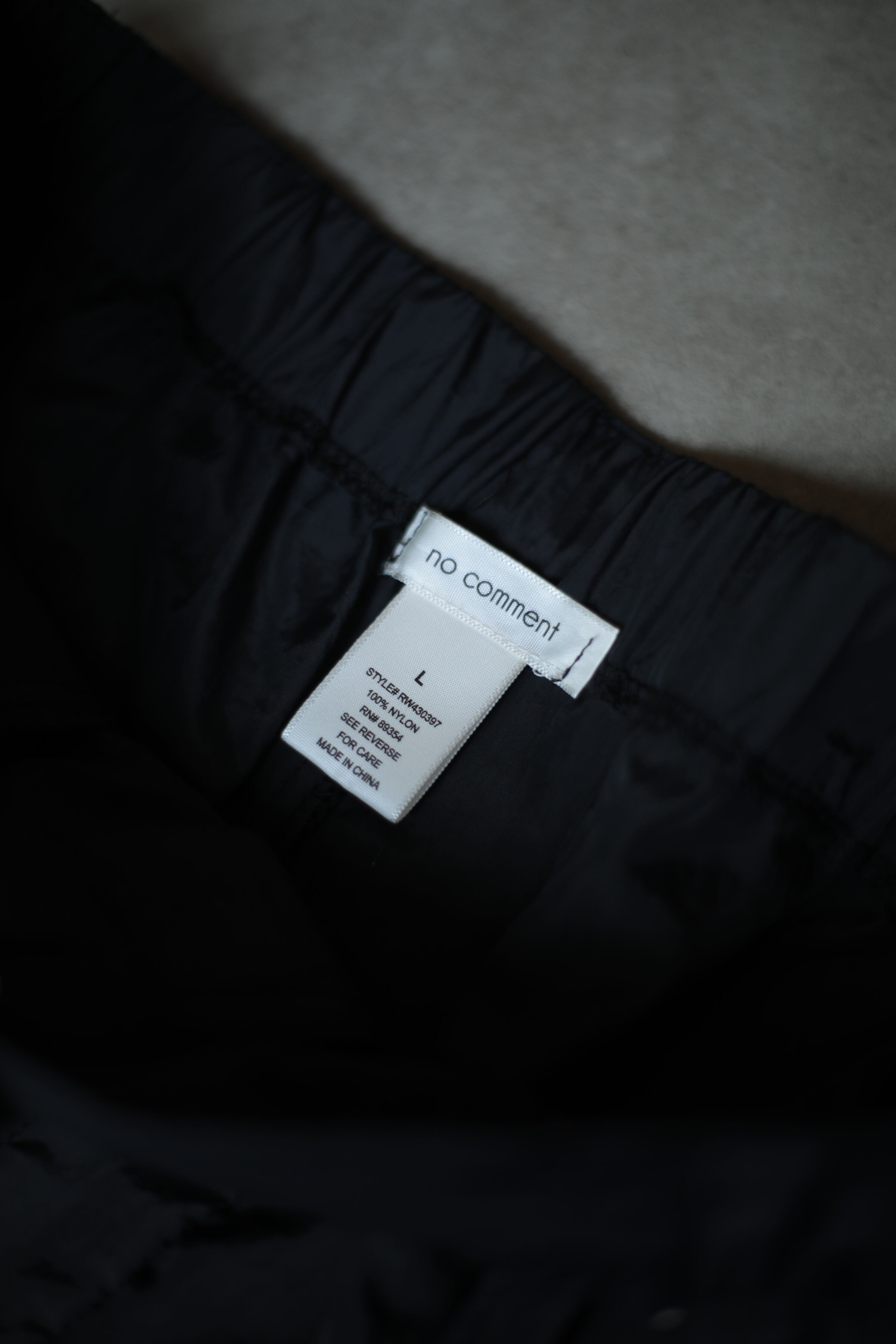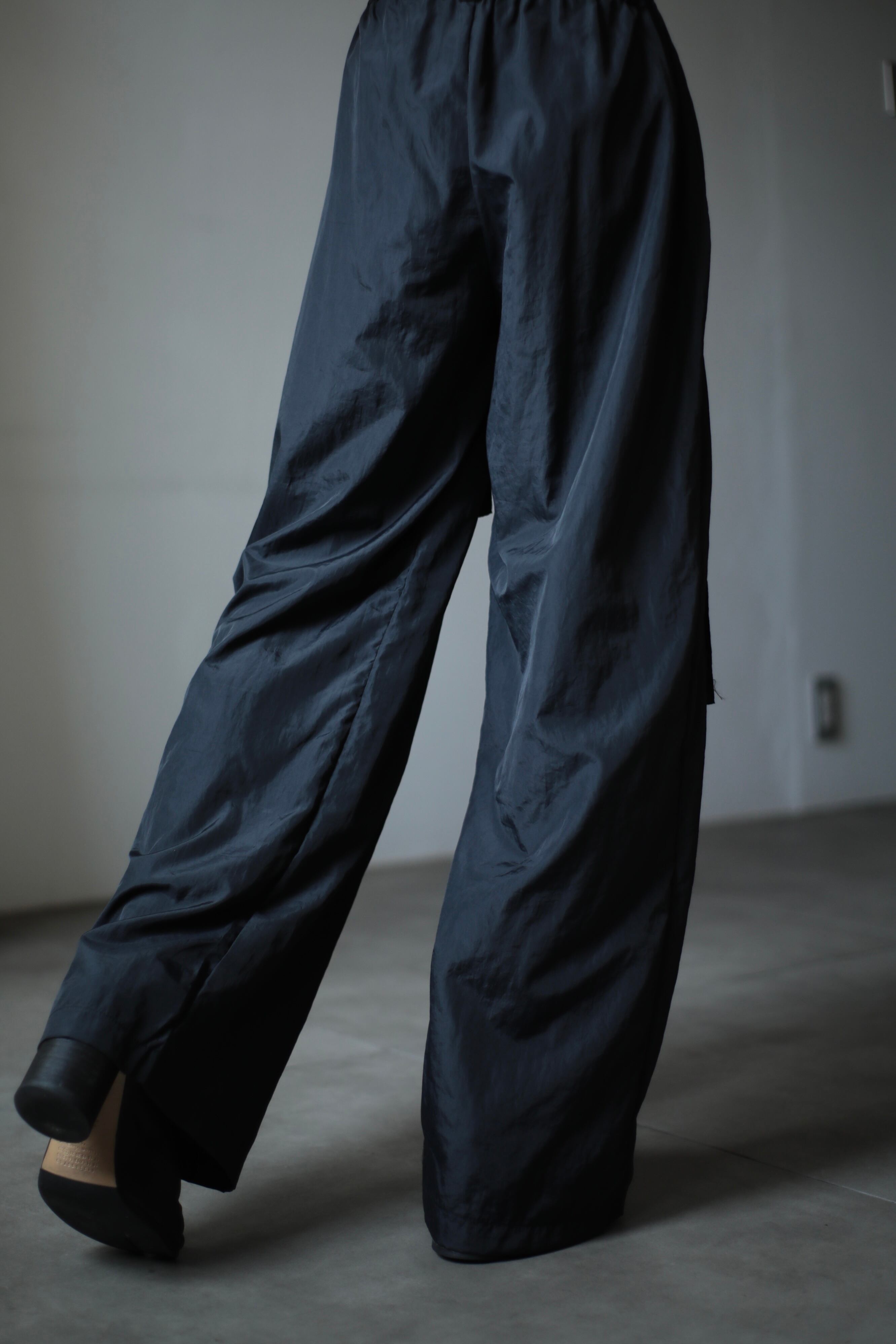 ブラックカラーのナイロンパンツは