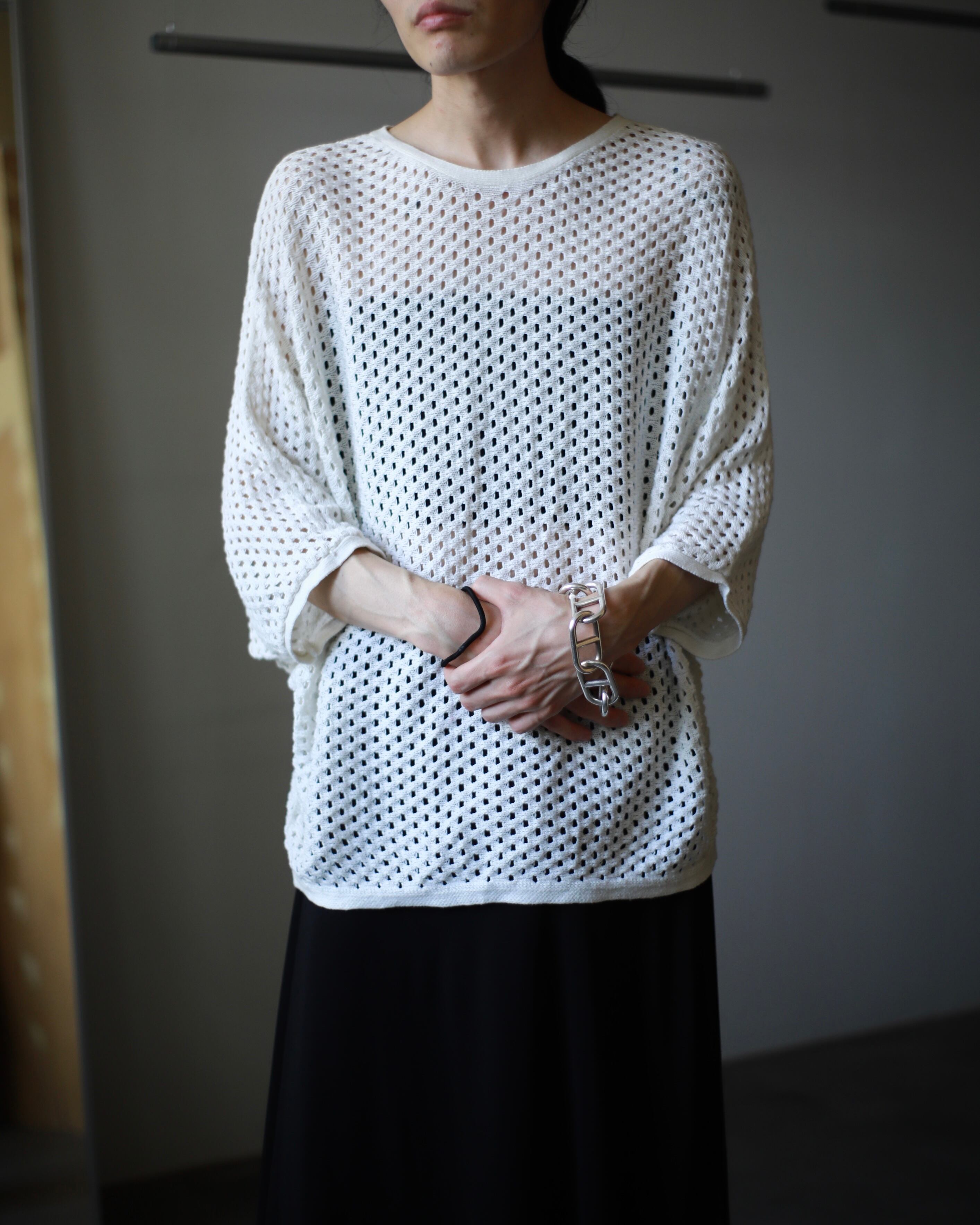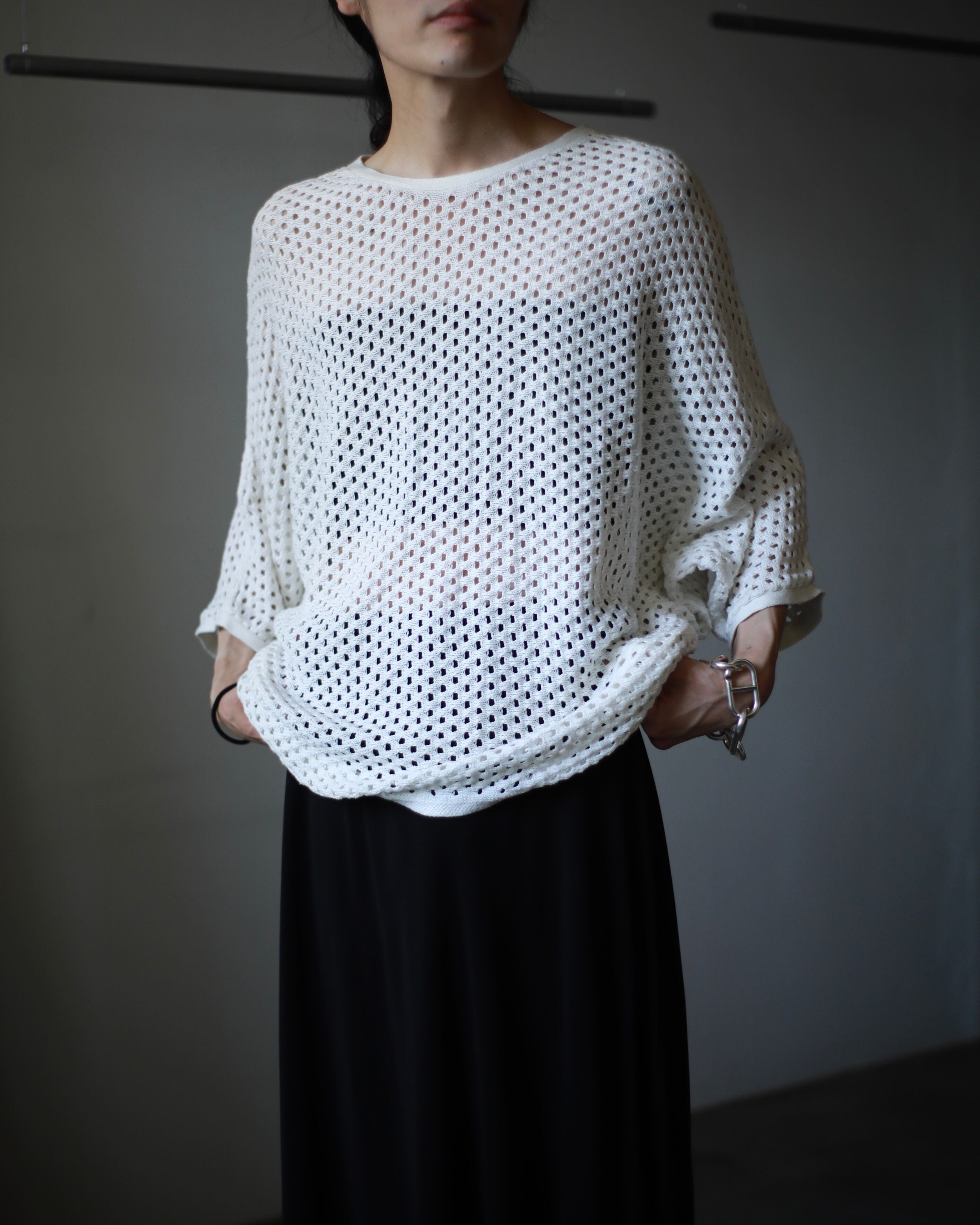 1980s~ euro mesh dolman sleeve design summer knit top