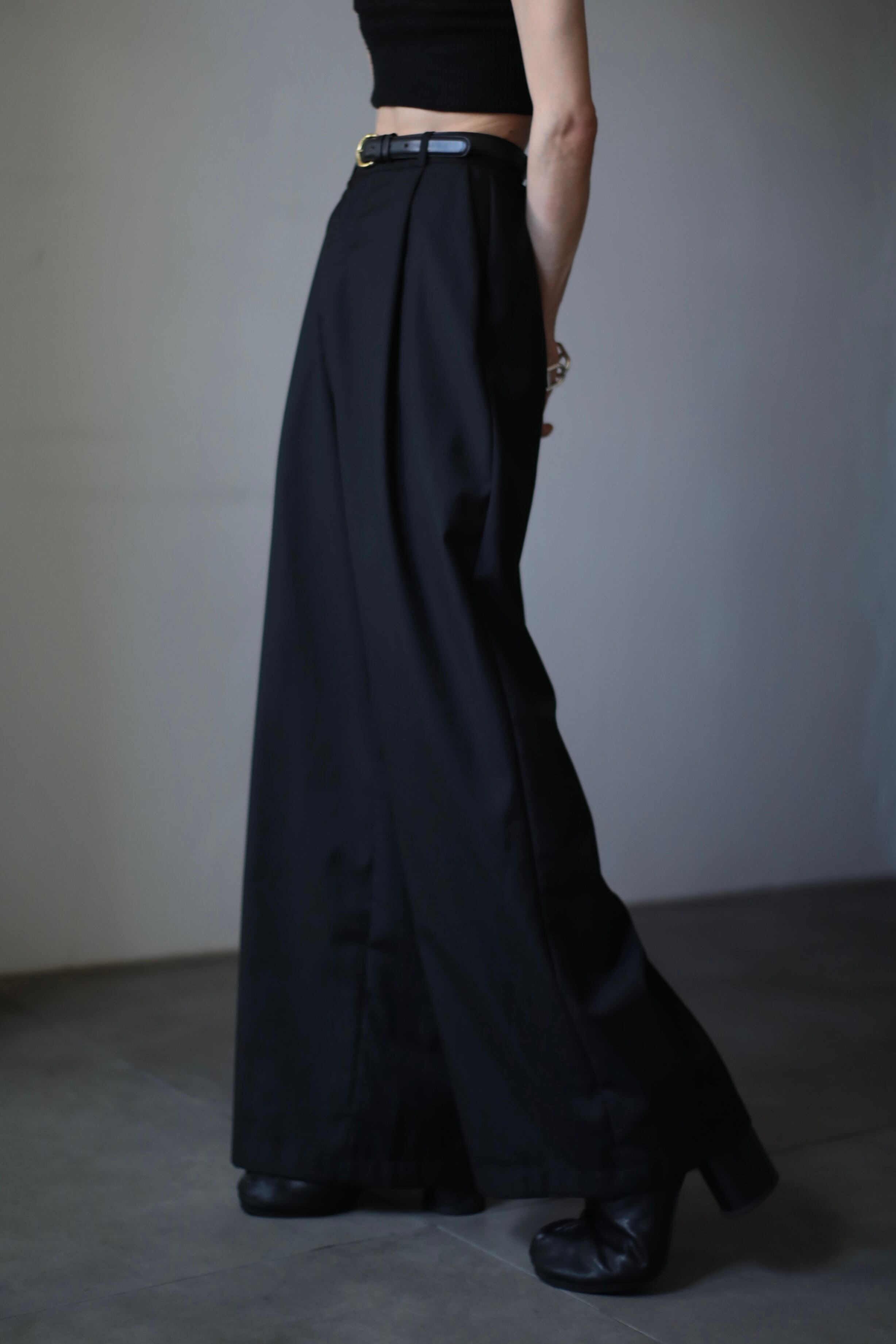 履くだけでスタイルがよく見える美しいシルエットで裾にボリュームがあるので足元の自由度も高く、スニーカーやサンダル、レザー系と何を合わせてもバッチリです。