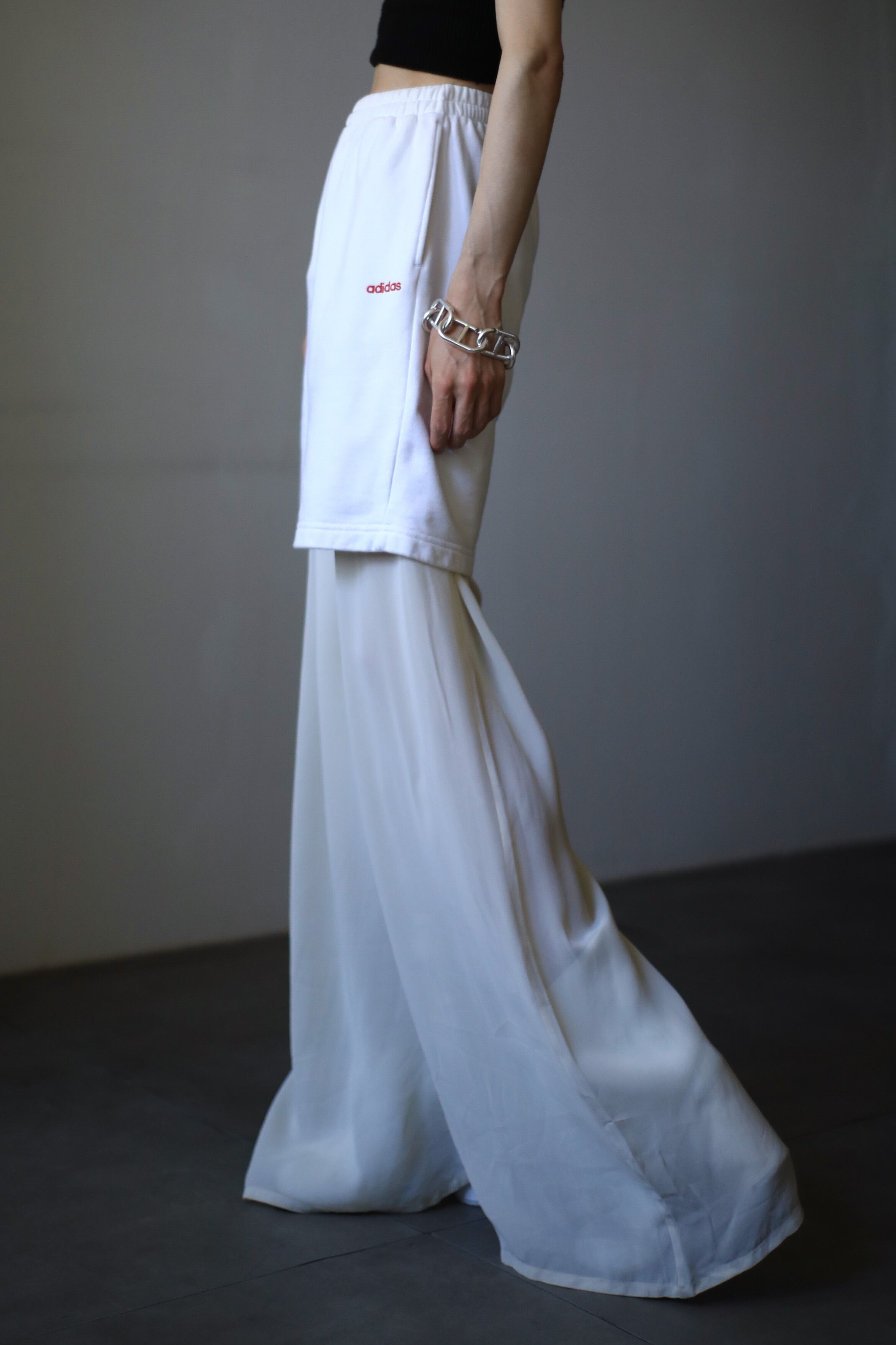 白Tなんか合わせてオールホワイト調のスタイリングや写真のように上からショートパンツなんかを重ねるスタイリングもおすすめです。